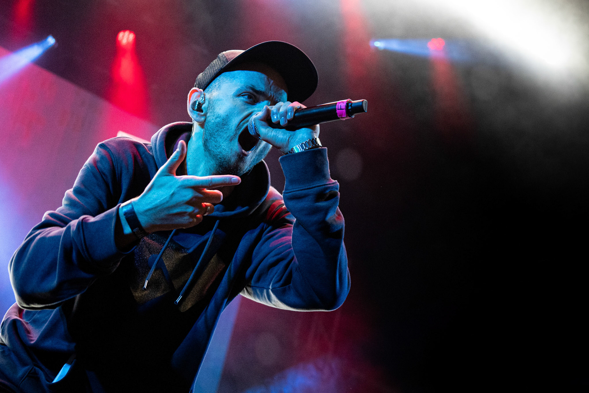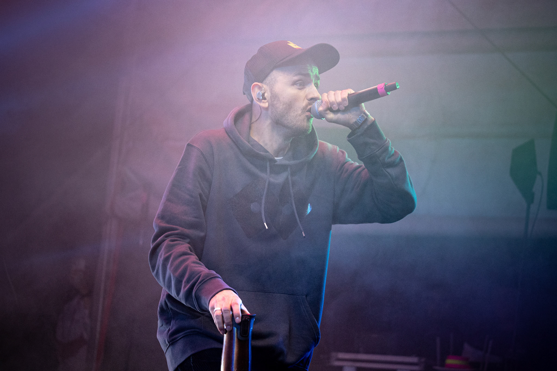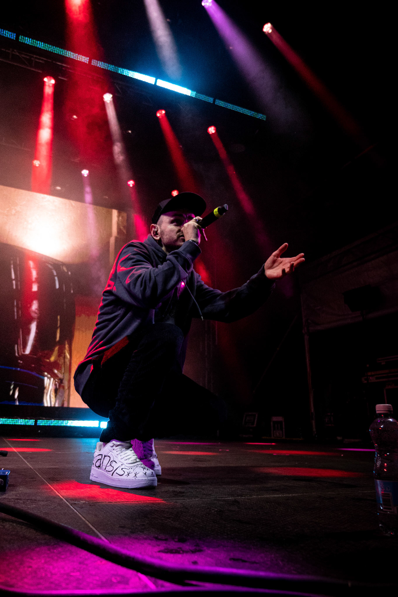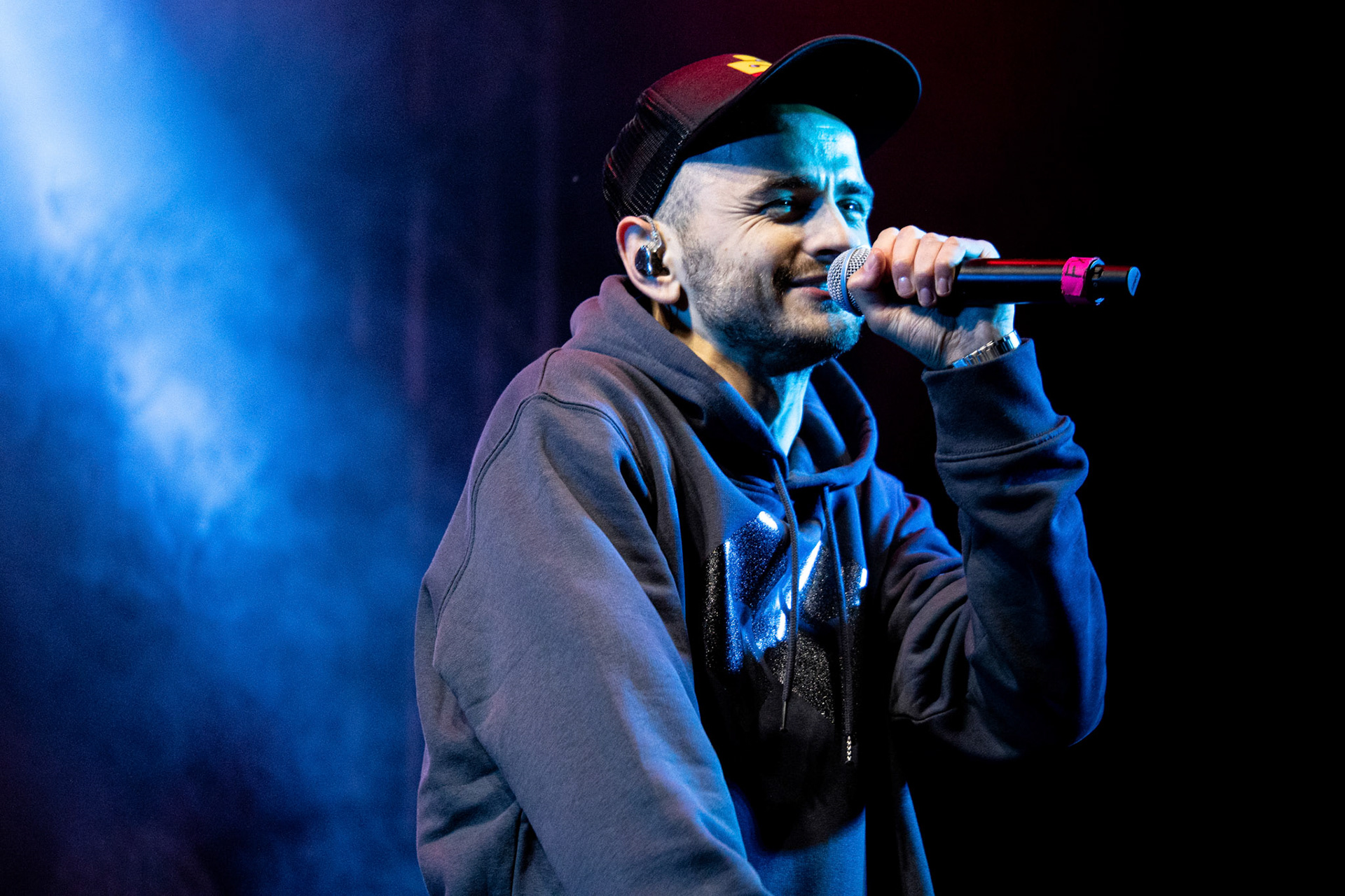 Concert photography from ansis performance at Mežaparks Green Theatre, capturing his sharp lyricism, strong presence, and the open-air energy of a summer evening show.