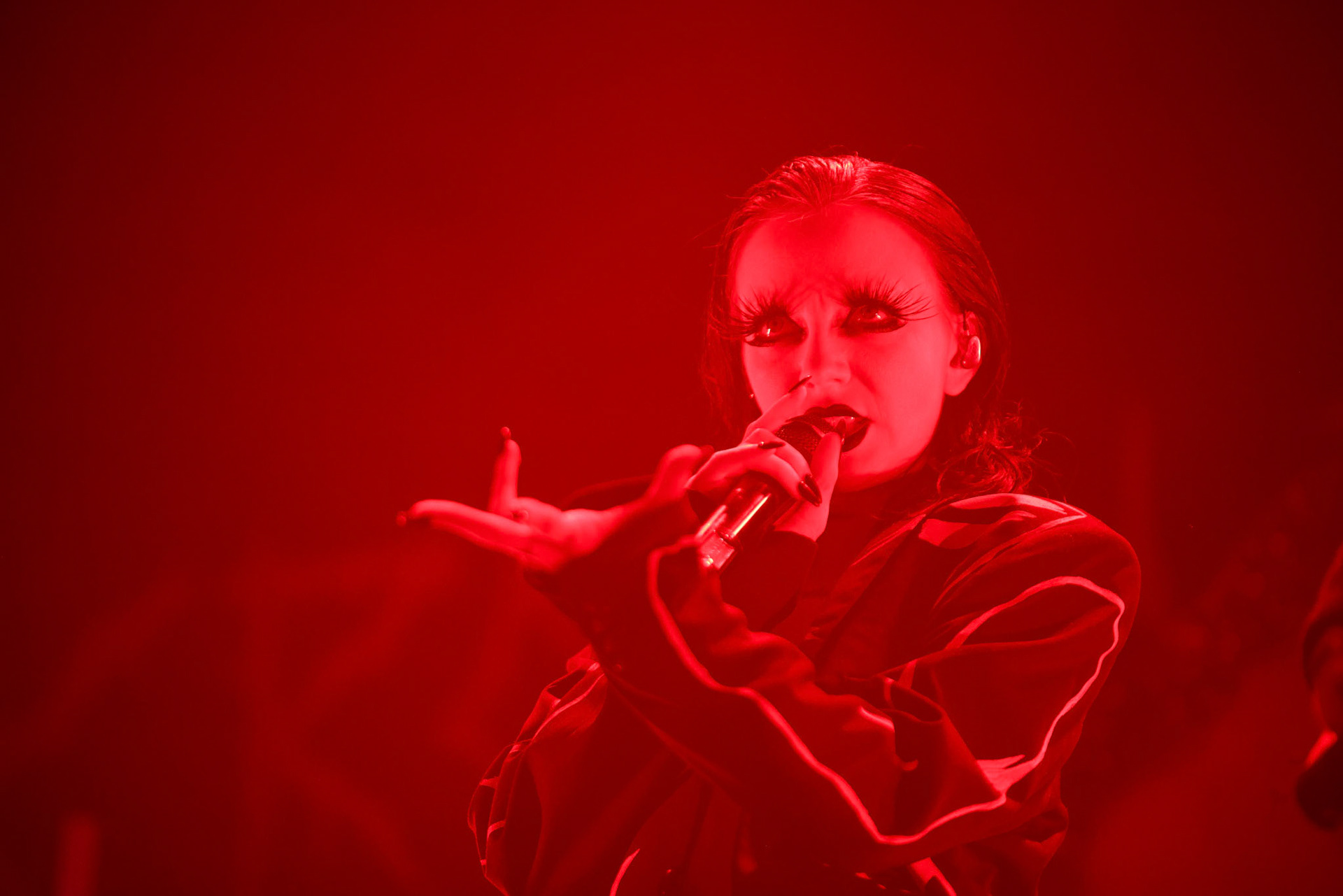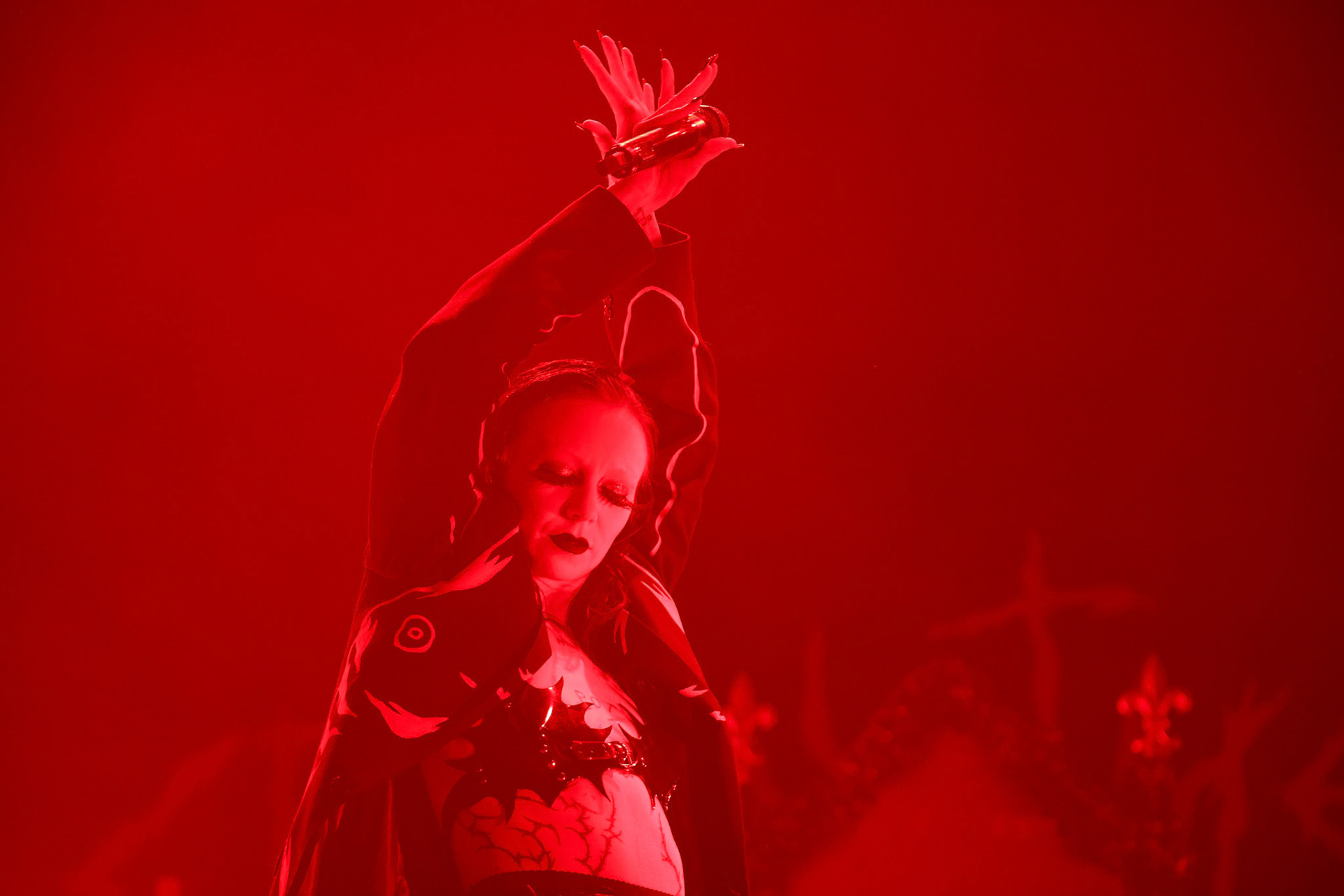 Concert photography from Bambie Thug performance at Palladium Riga, capturing their theatrical presence, bold aesthetics, and the intense, genre-blending atmosphere of the show.