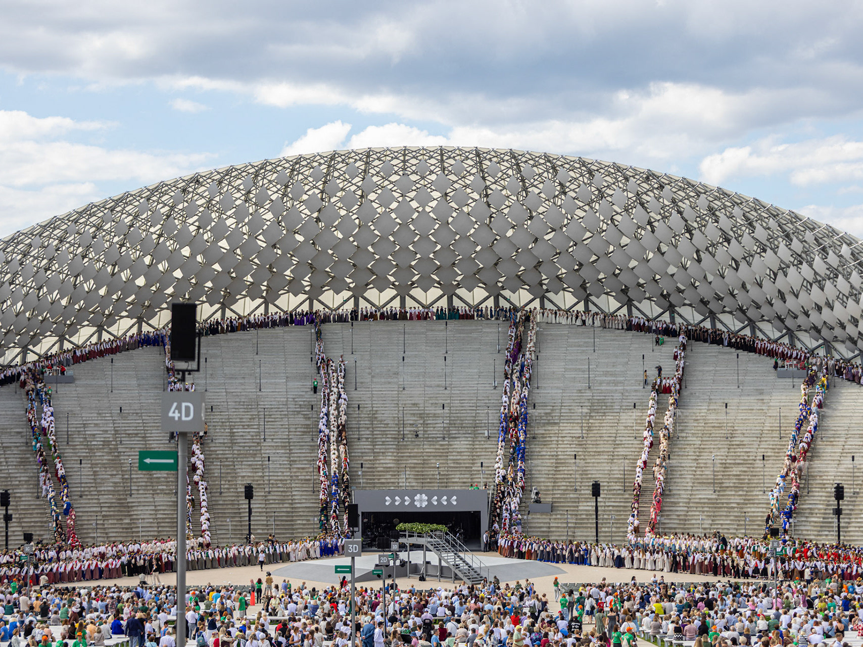 Photography from the XXVII Latvian Song and XVII Dance Festival concert “Kopā augšup” at Mežaparks Great Stage, capturing unity, tradition, powerful voices, and the uplifting spirit shared by thousands of performers.