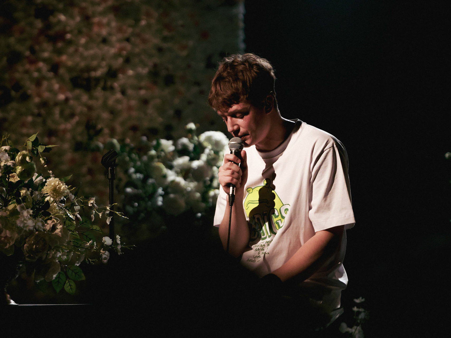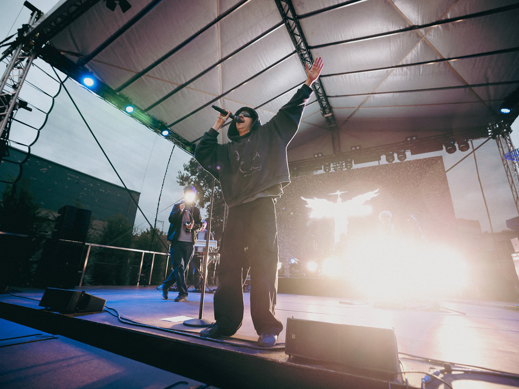 Concert photography from Artemas performance at VEF Kvartāls, capturing his dark-pop intensity, atmospheric staging, and the electrifying connection with the crowd.