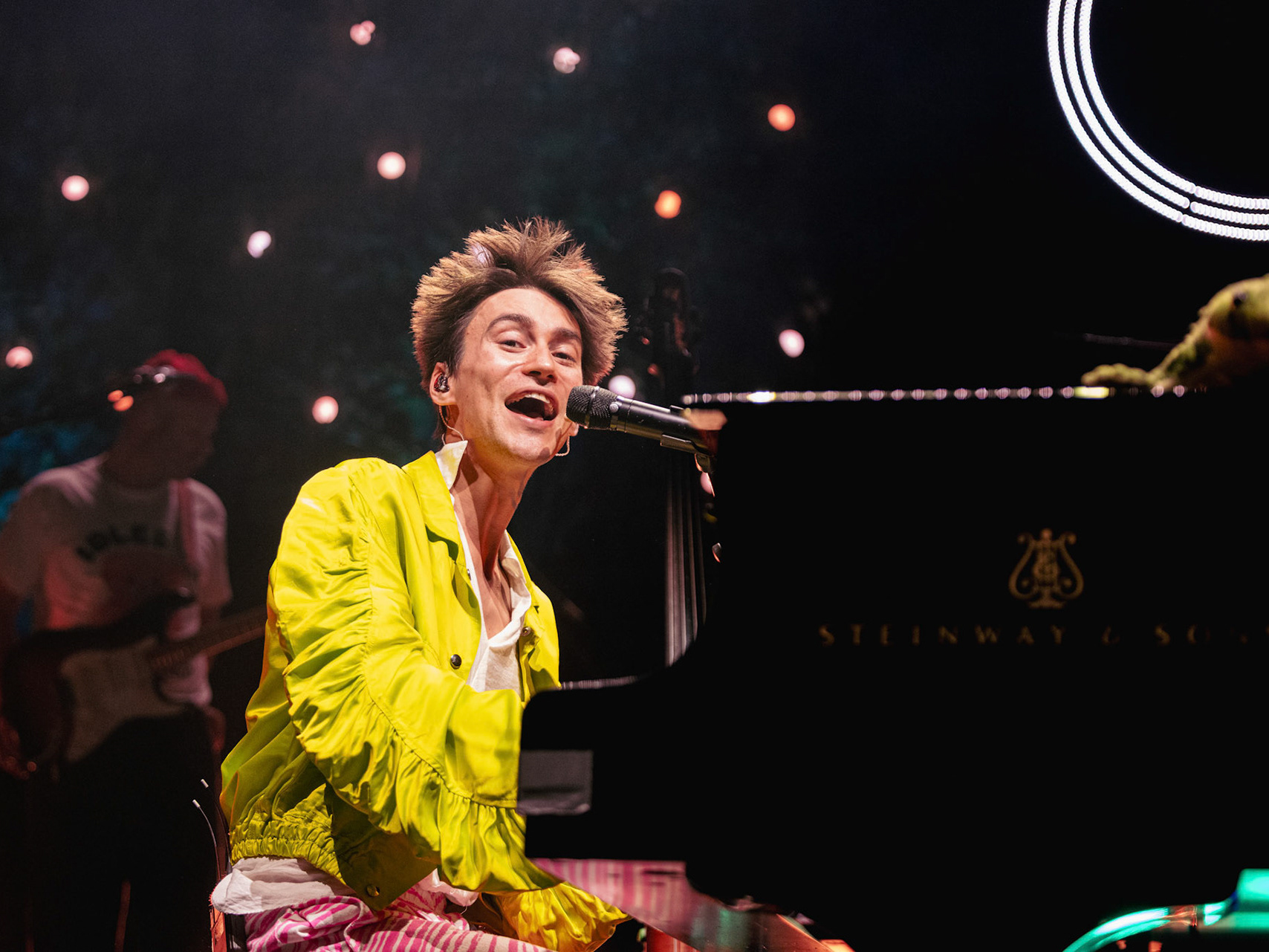 Concert photography from Daði Freyr performance at Palladium Riga, capturing his playful energy, vibrant staging, and the joyful connection with the crowd.