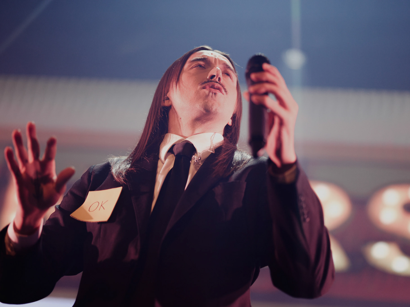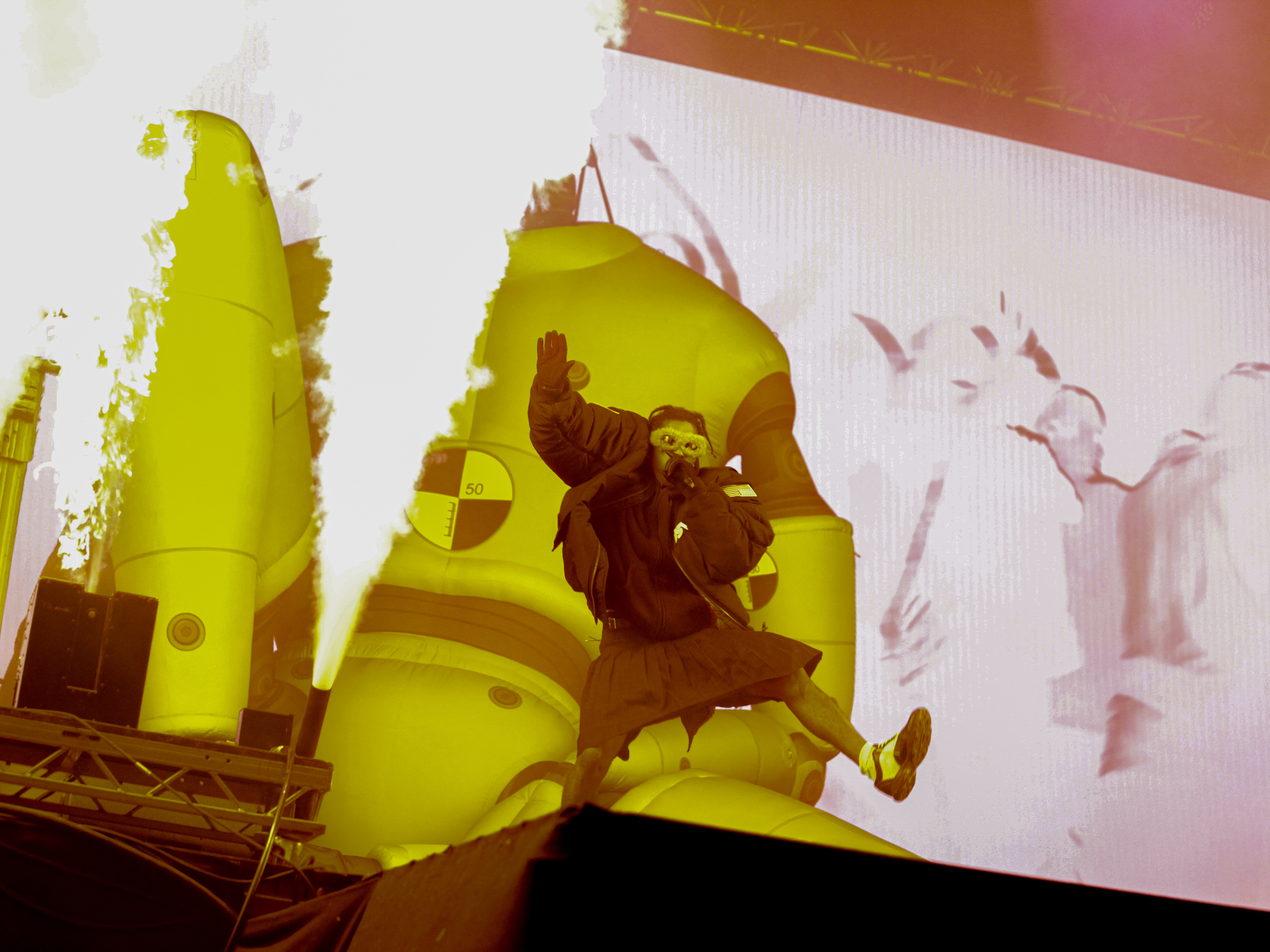 Concert photography from Tommy Cash performance at Palladium Riga, capturing his avant-garde visuals, bold stage presence, and the uniquely surreal atmosphere of the show.