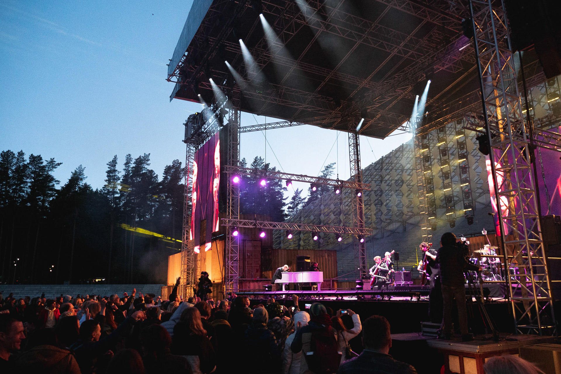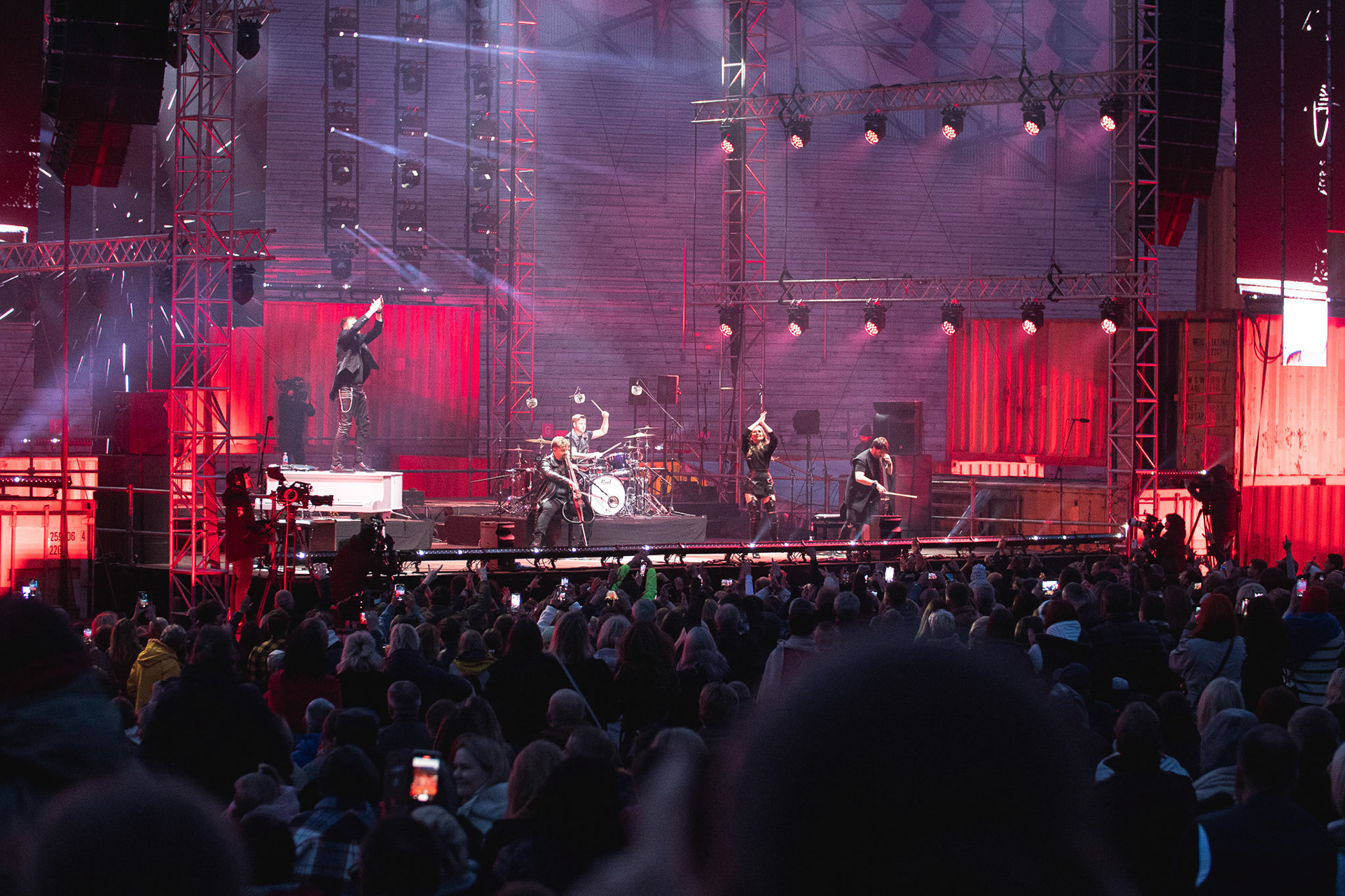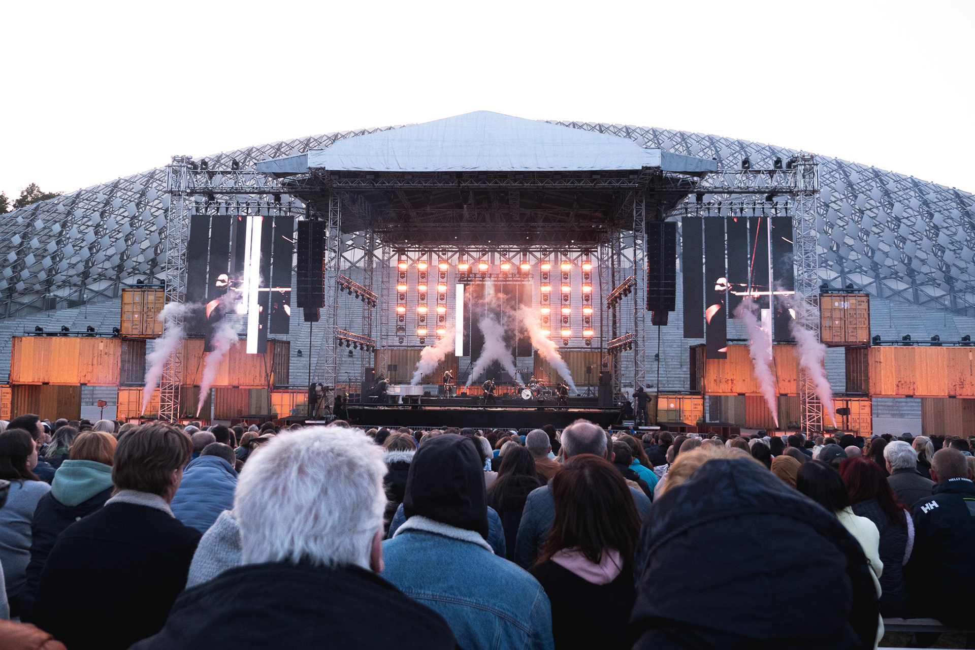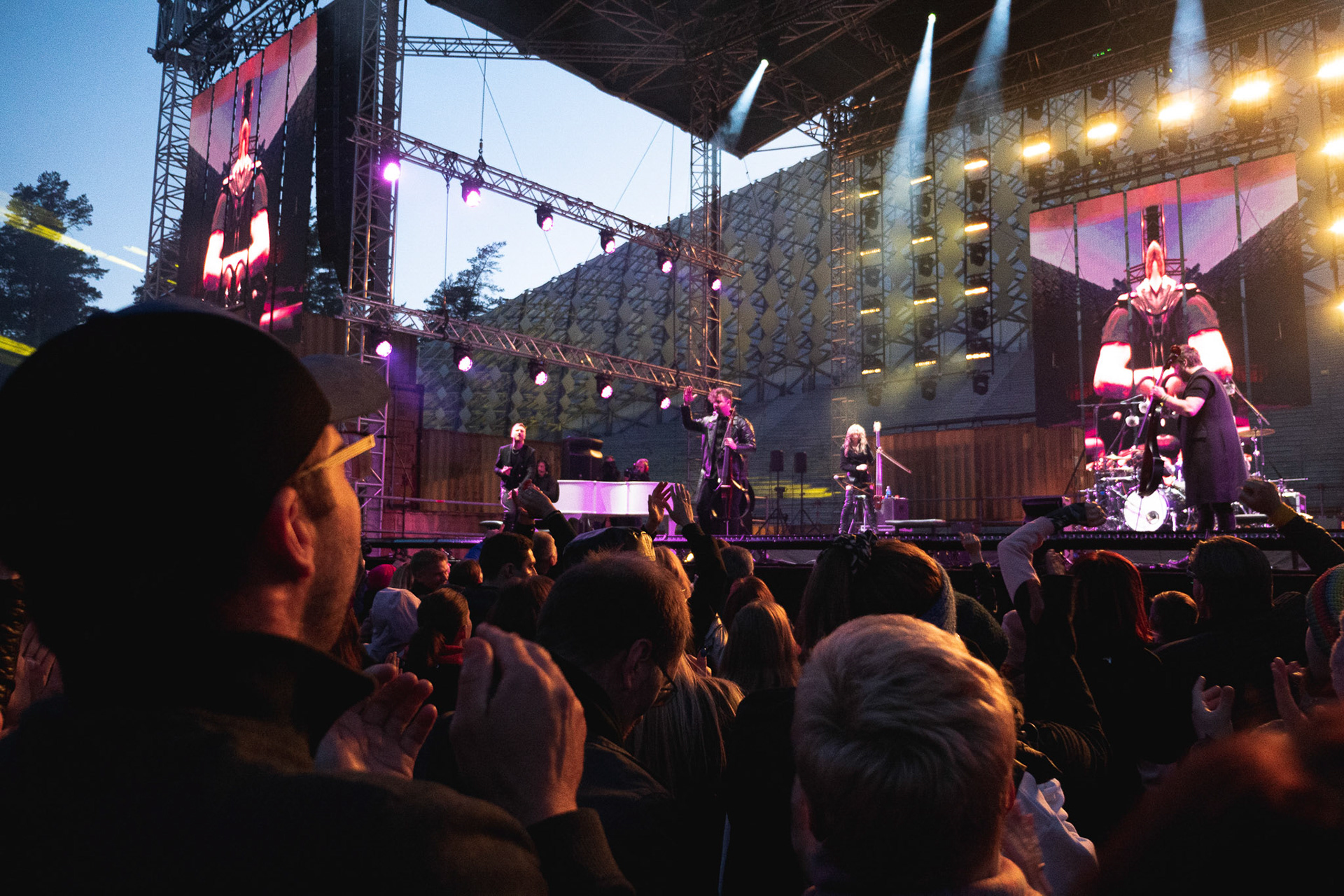 Concert photography from Dagamba performance at Mežaparks Great Stage, capturing their powerful crossover sound, dramatic arrangements, and the grand atmosphere of the open-air venue.