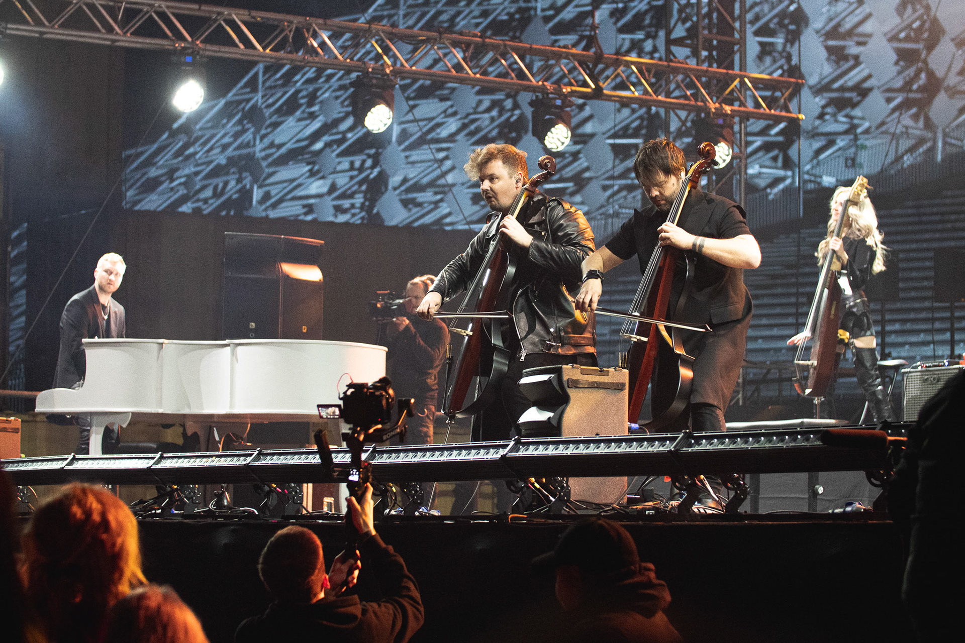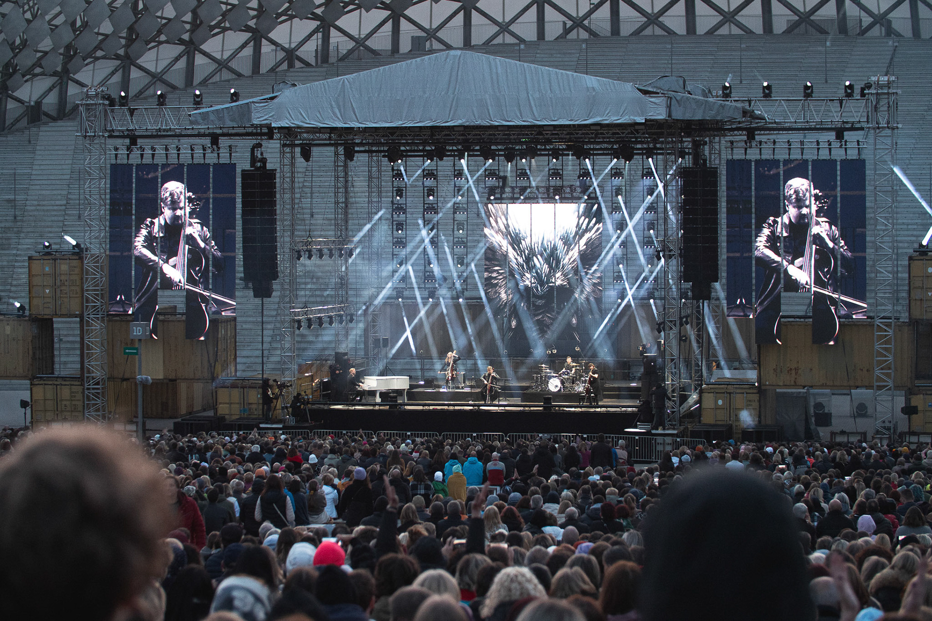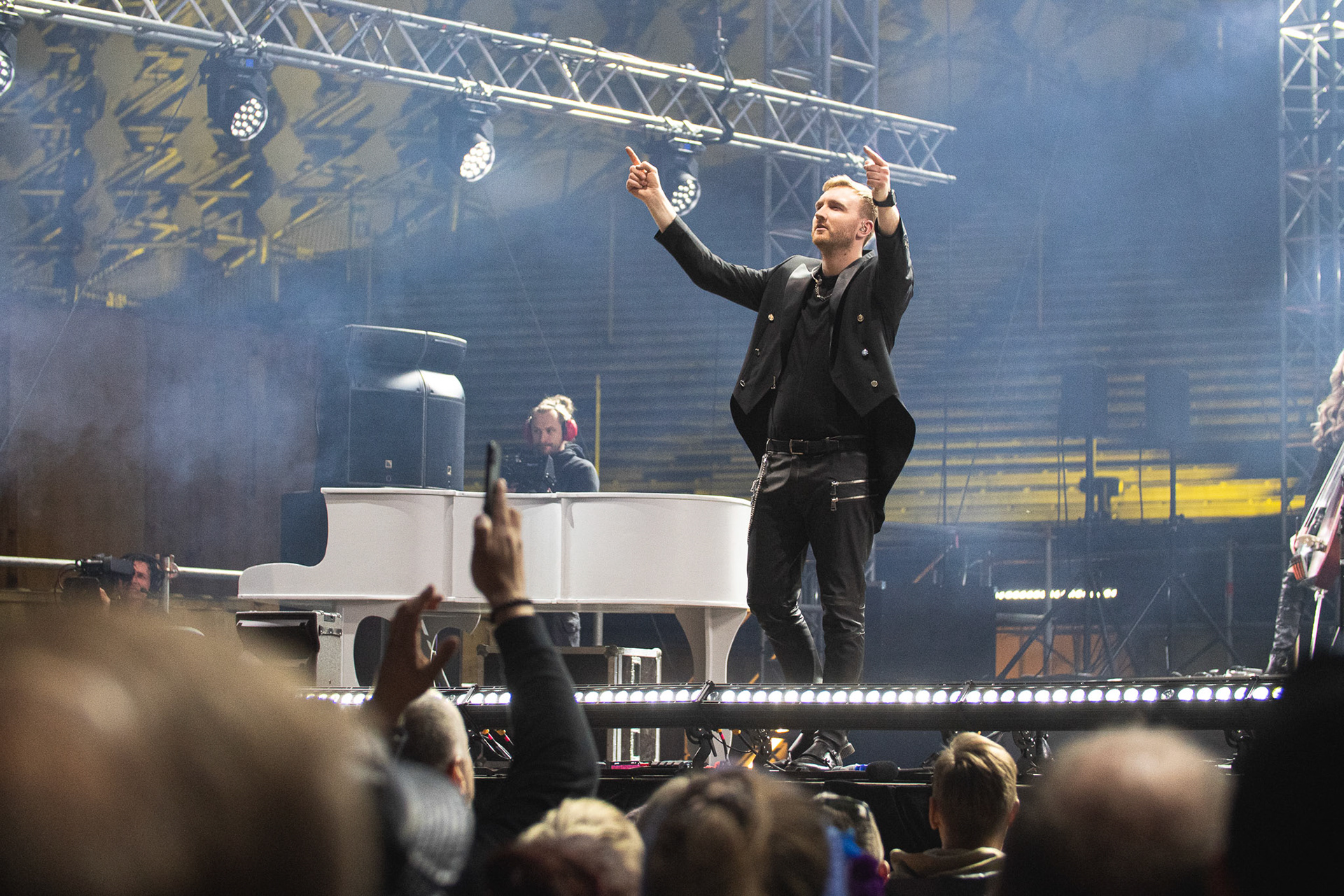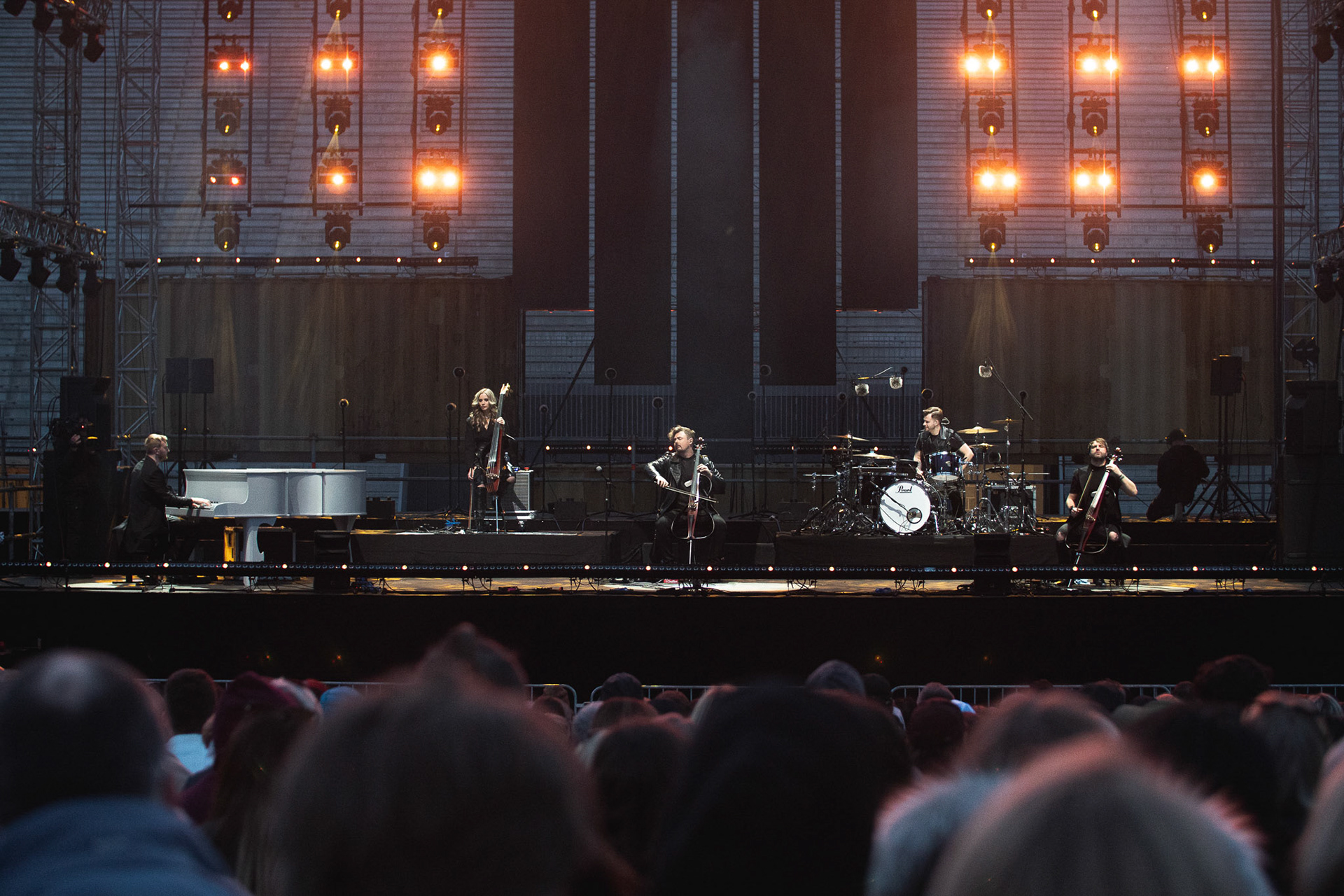 Concert photography from Dagamba performance at Mežaparks Great Stage, capturing their powerful crossover sound, dramatic arrangements, and the grand atmosphere of the open-air venue.
