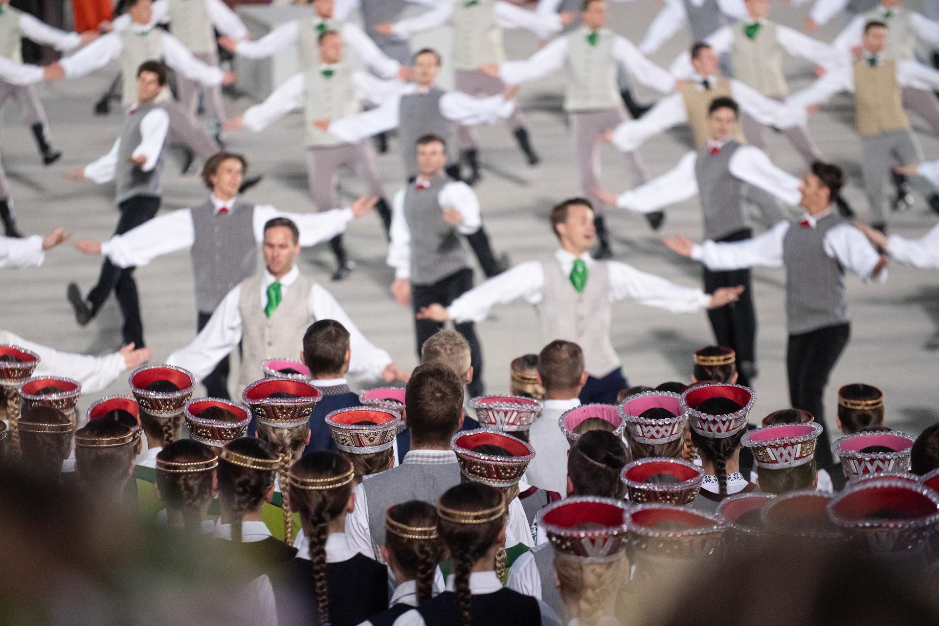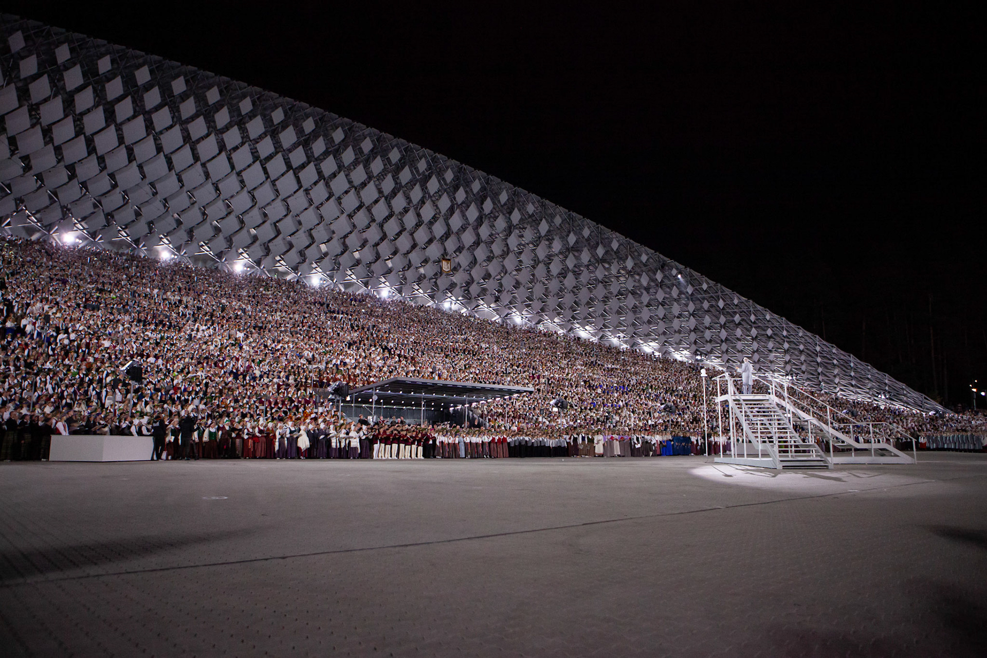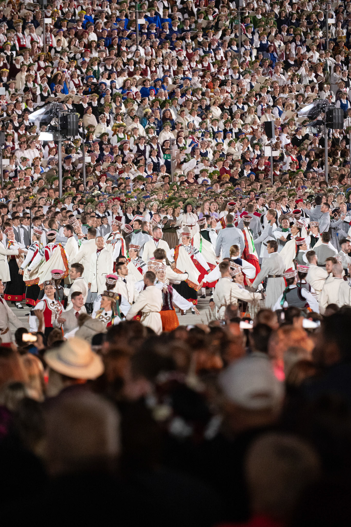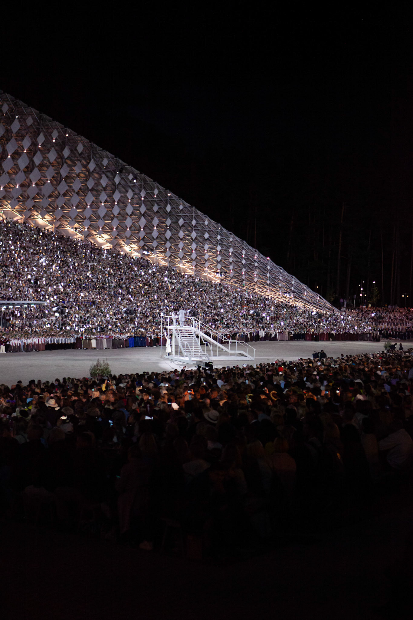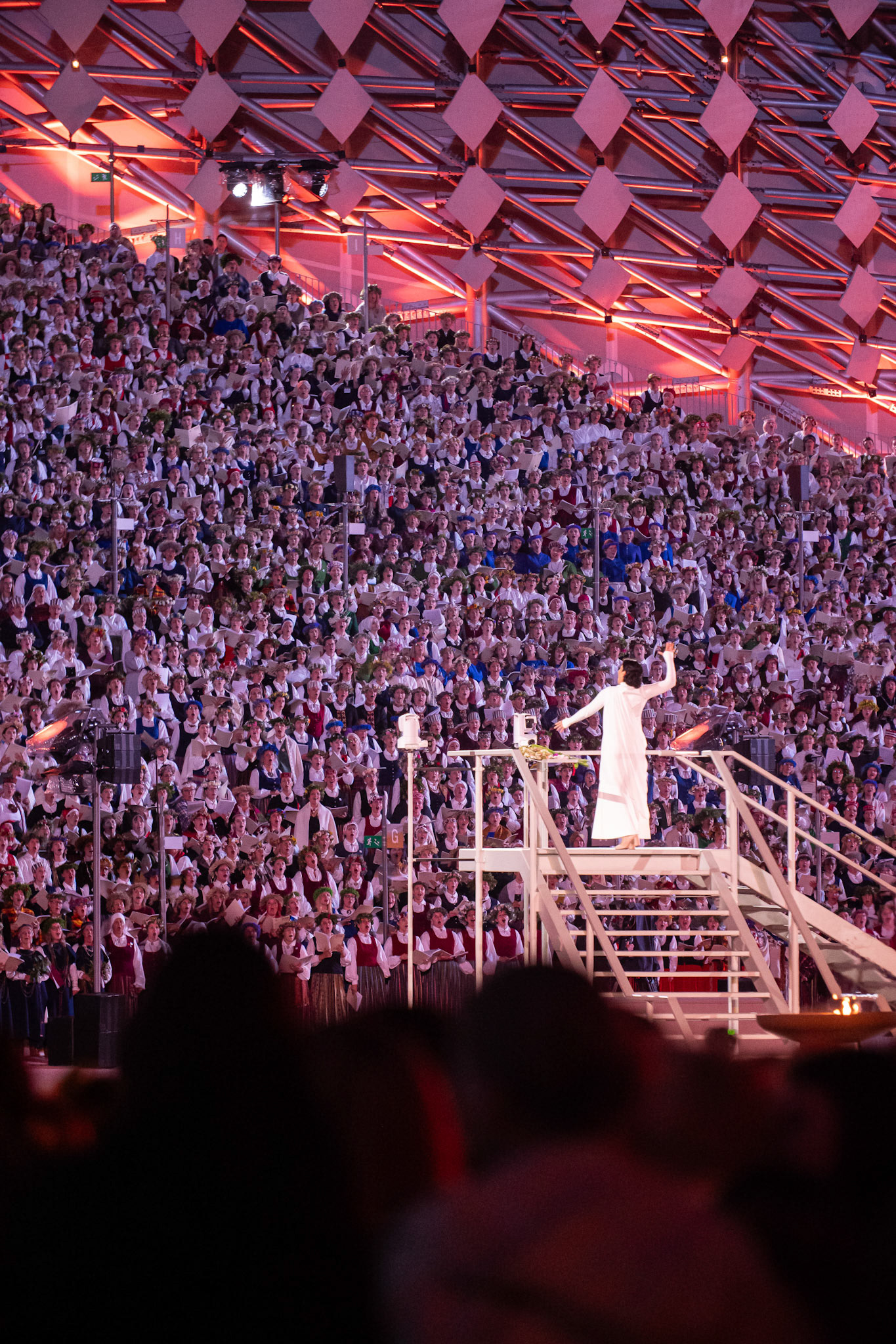 Photography from the XXVII Latvian Song and XVII Dance Festival concert “Kopā augšup” at Mežaparks Great Stage, capturing unity, tradition, powerful voices, and the uplifting spirit shared by thousands of performers.