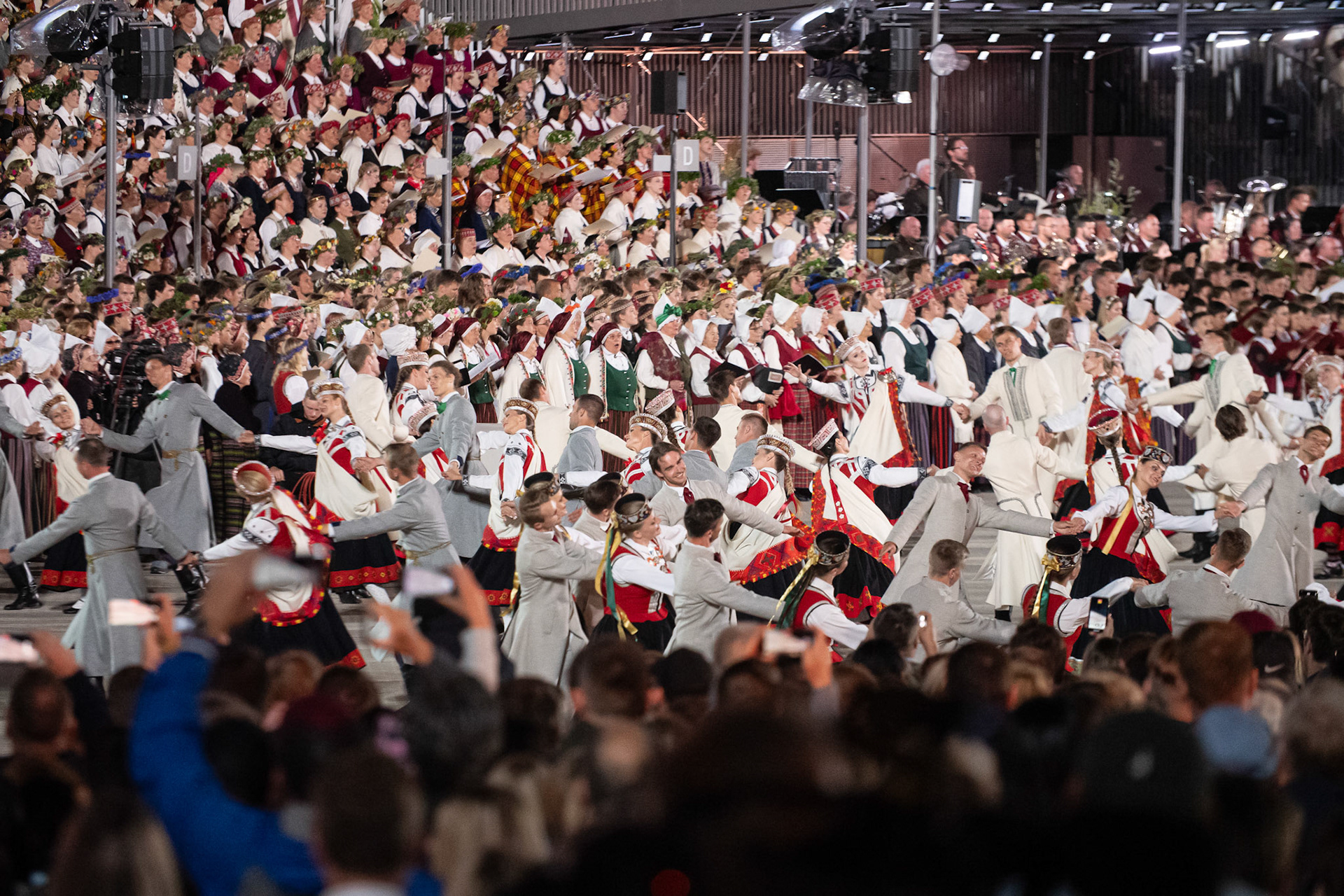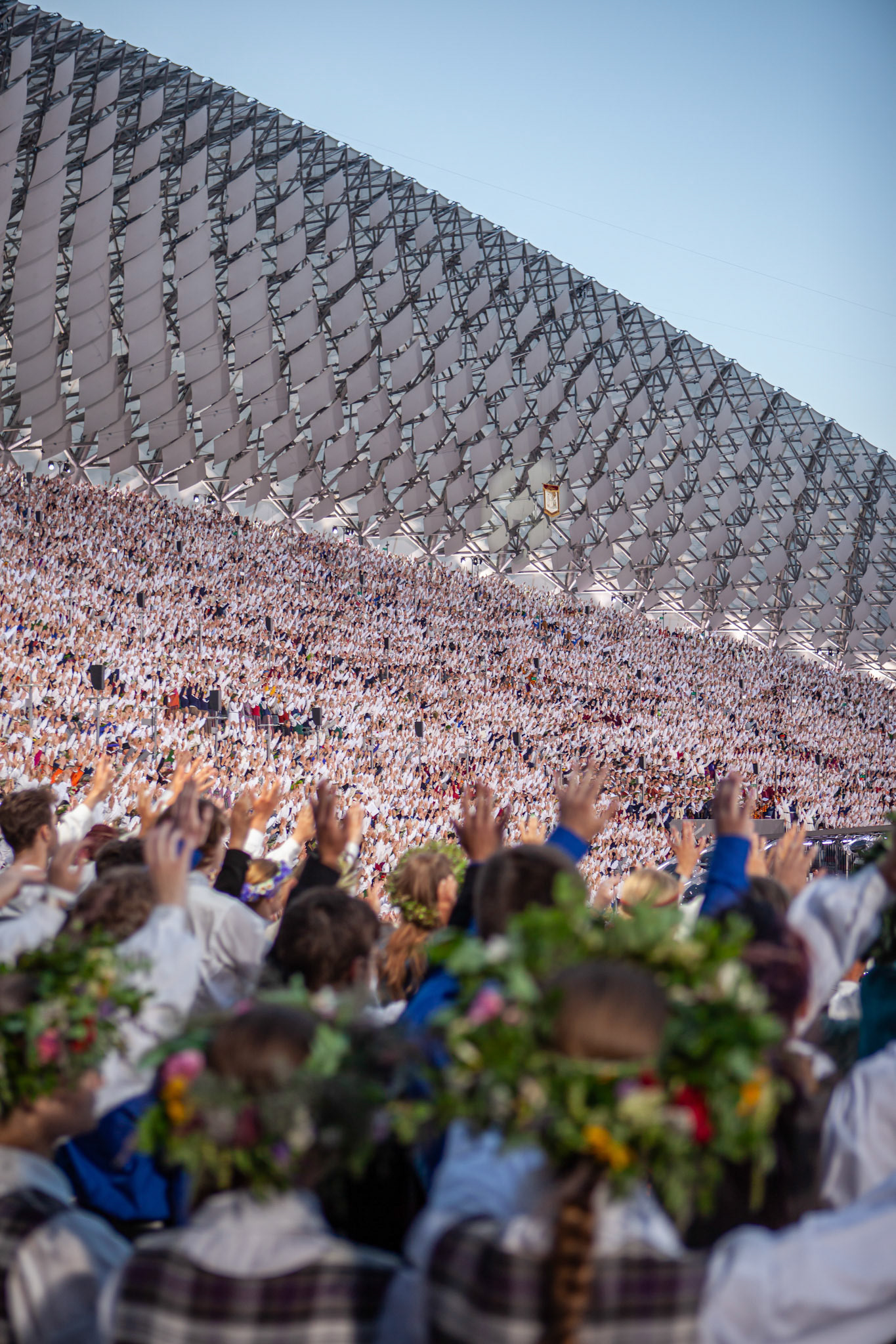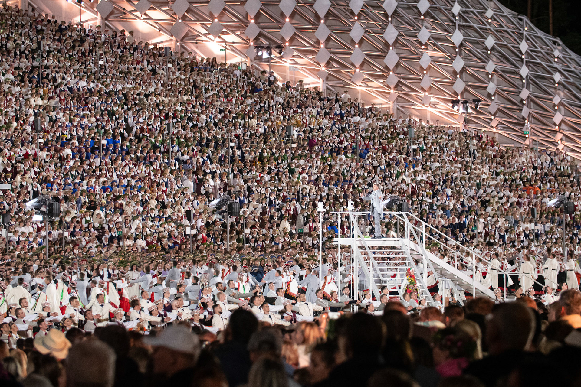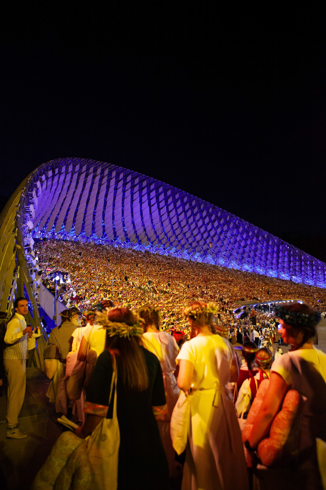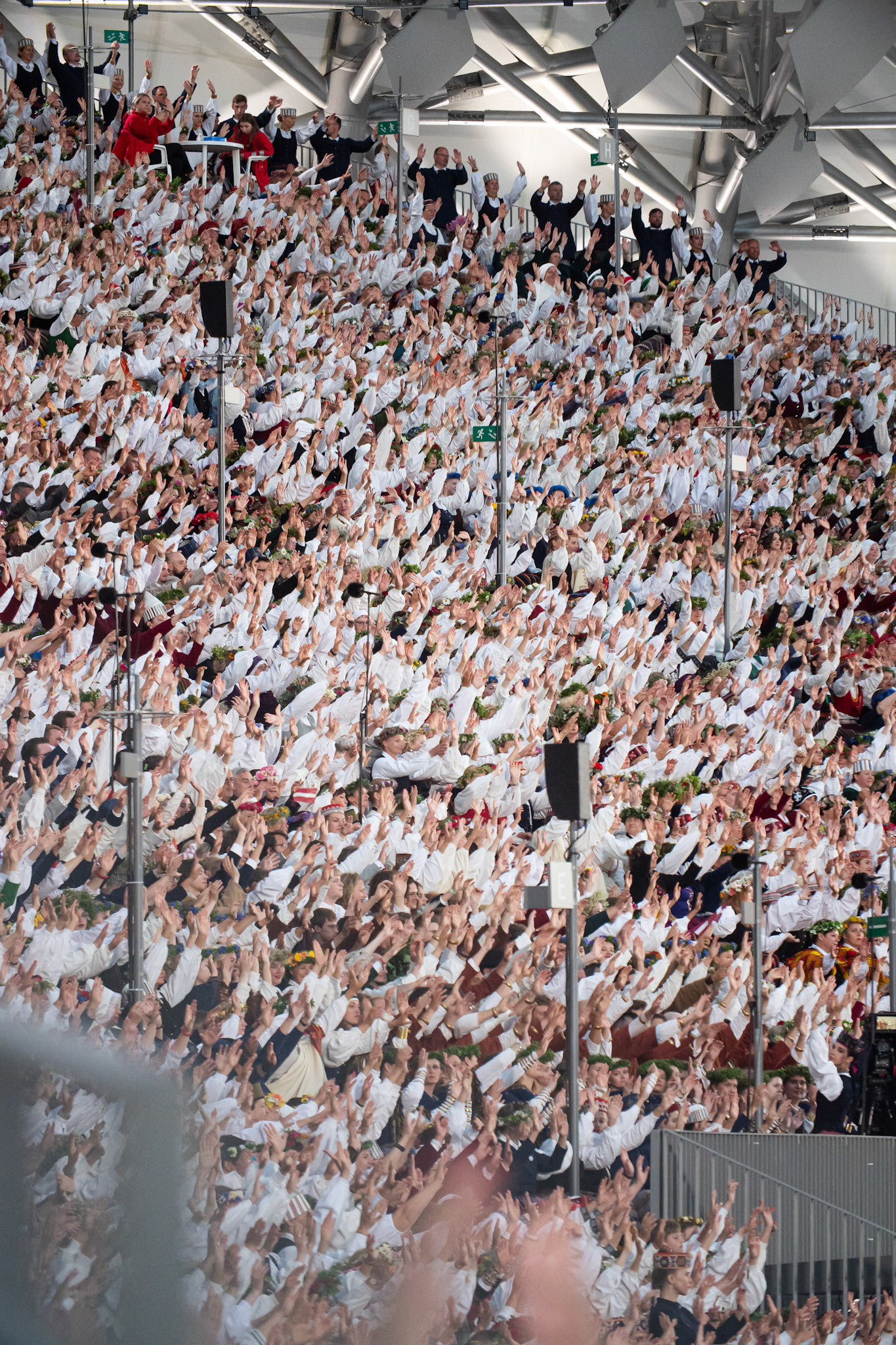 Photography from the XXVII Latvian Song and XVII Dance Festival concert “Kopā augšup” at Mežaparks Great Stage, capturing unity, tradition, powerful voices, and the uplifting spirit shared by thousands of performers.