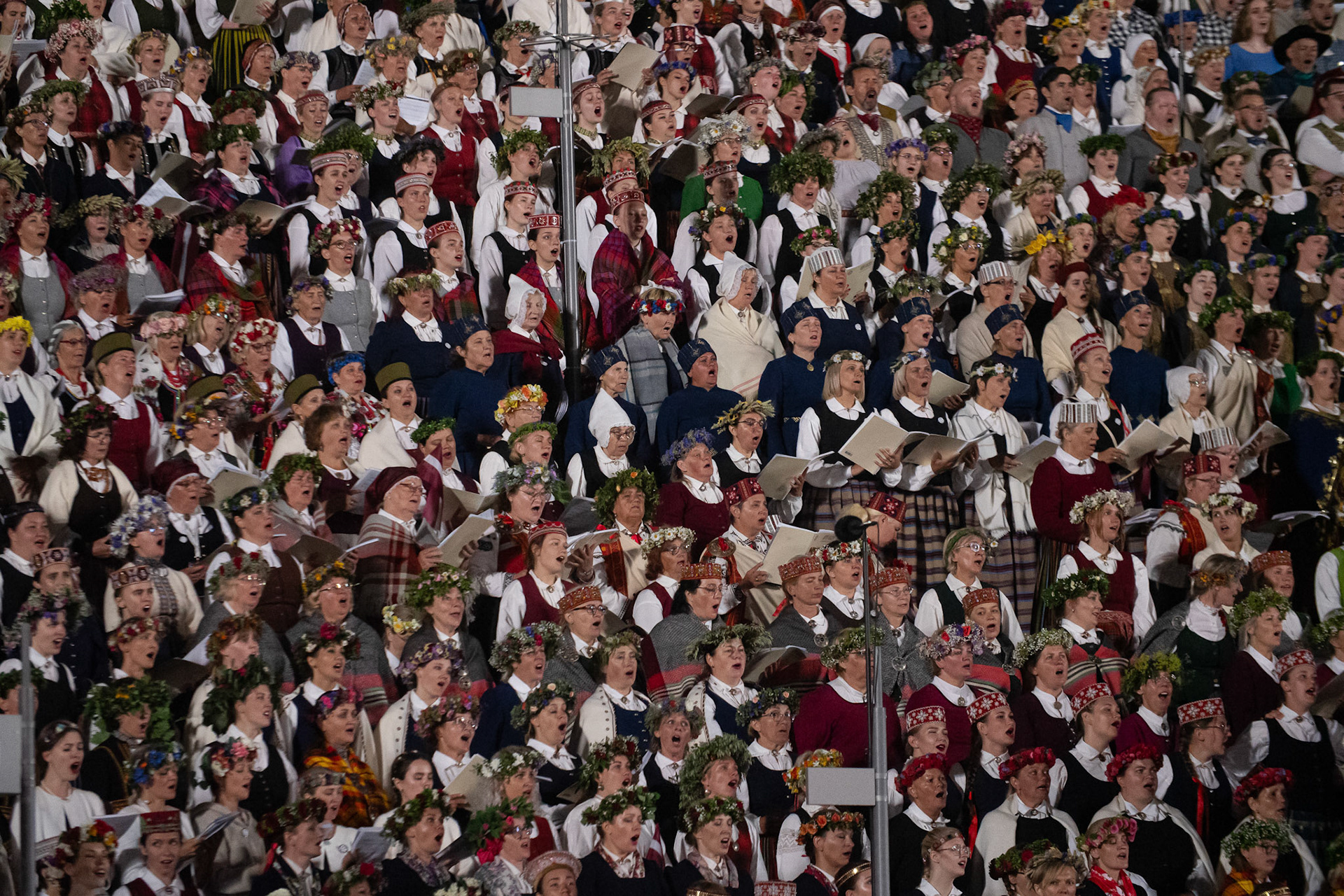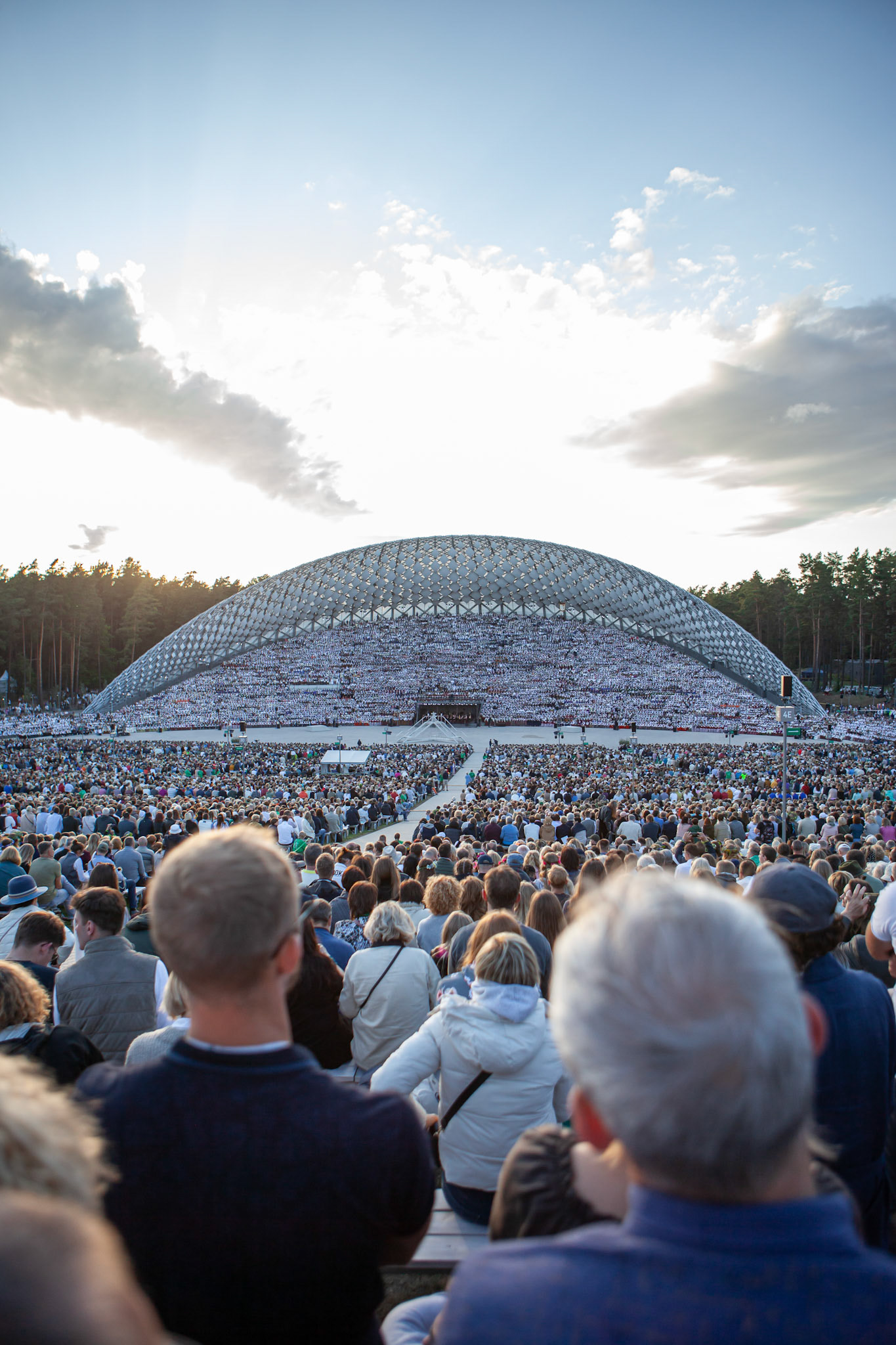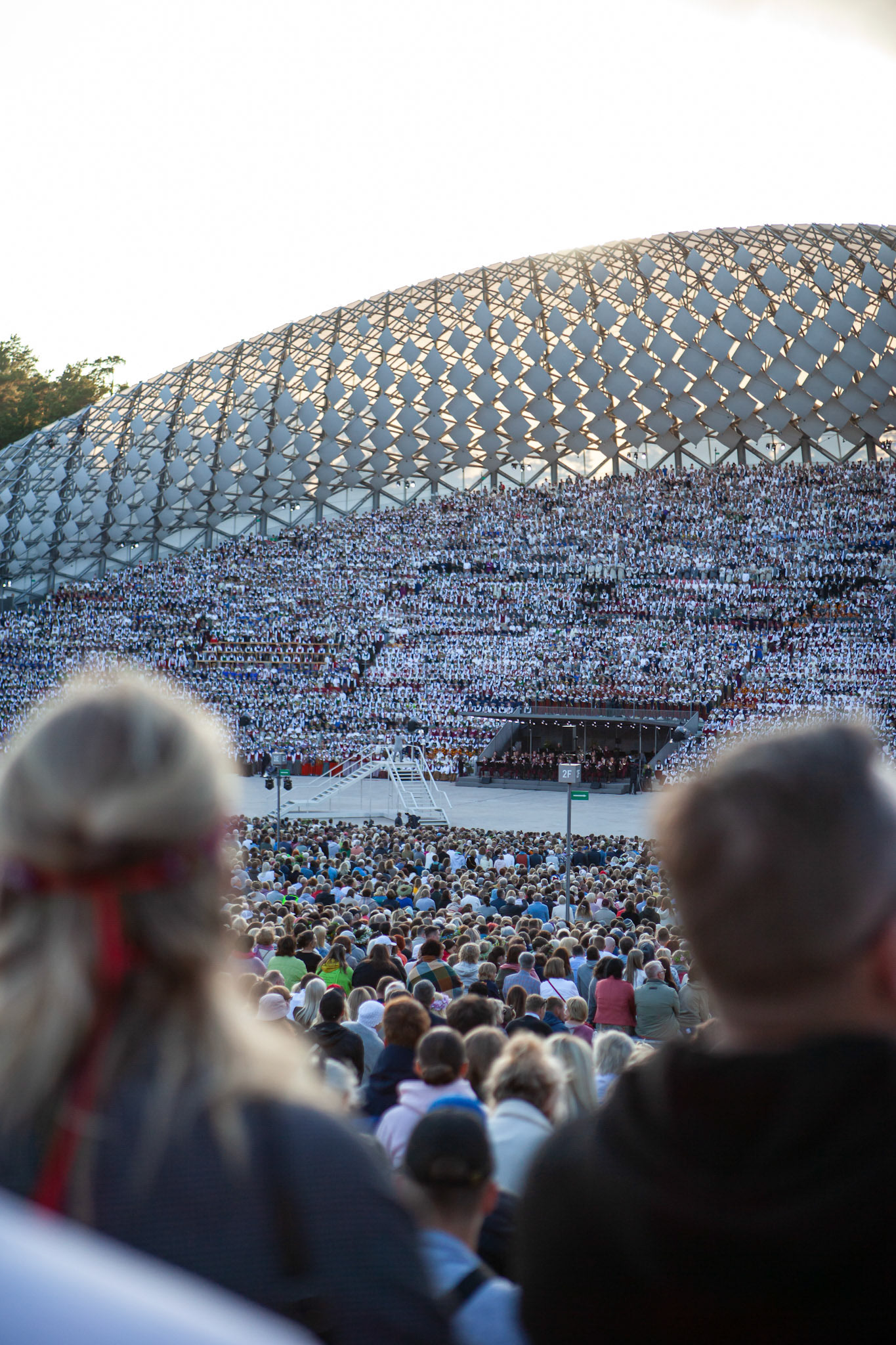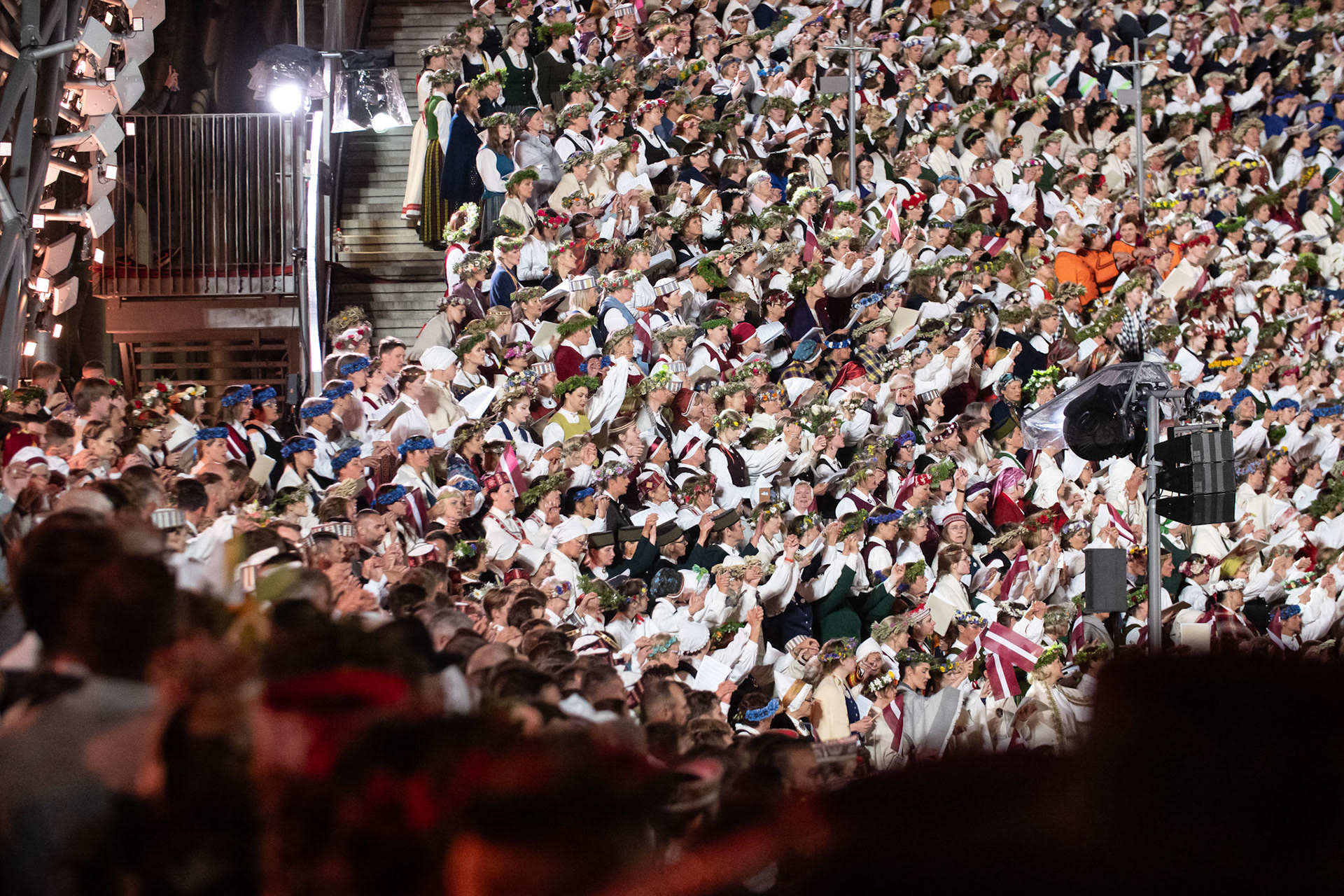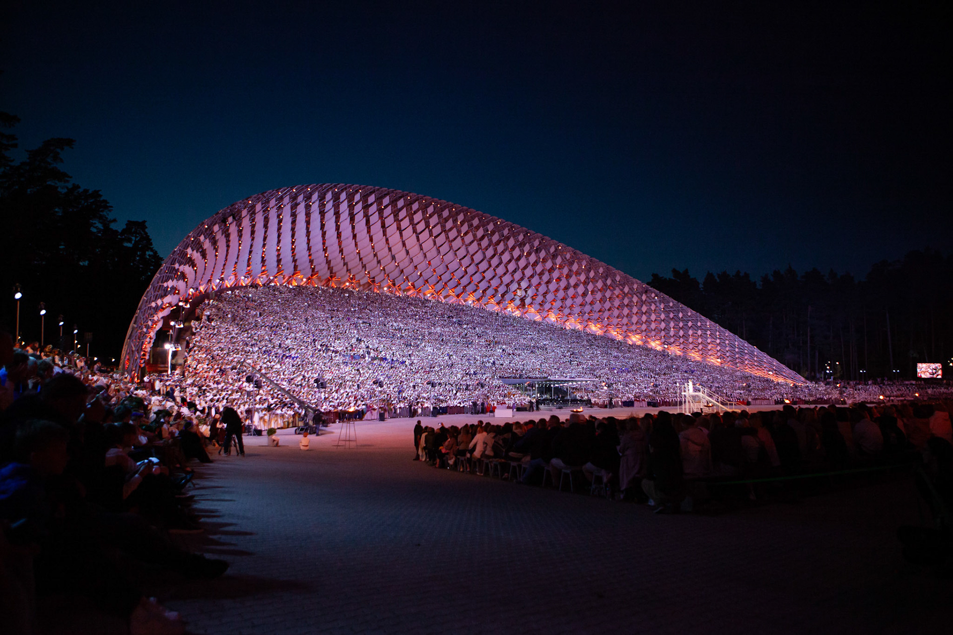 Photography from the XXVII Latvian Song and XVII Dance Festival concert “Kopā augšup” at Mežaparks Great Stage, capturing unity, tradition, powerful voices, and the uplifting spirit shared by thousands of performers.