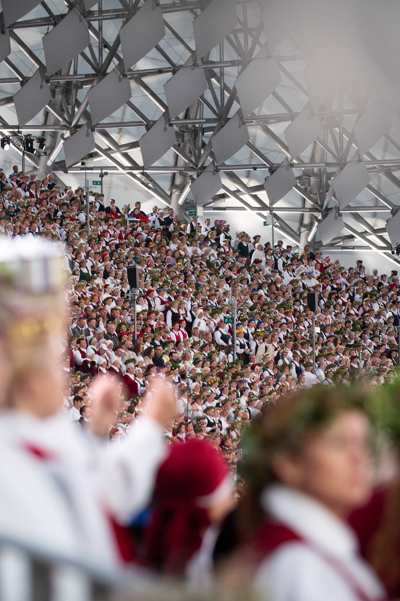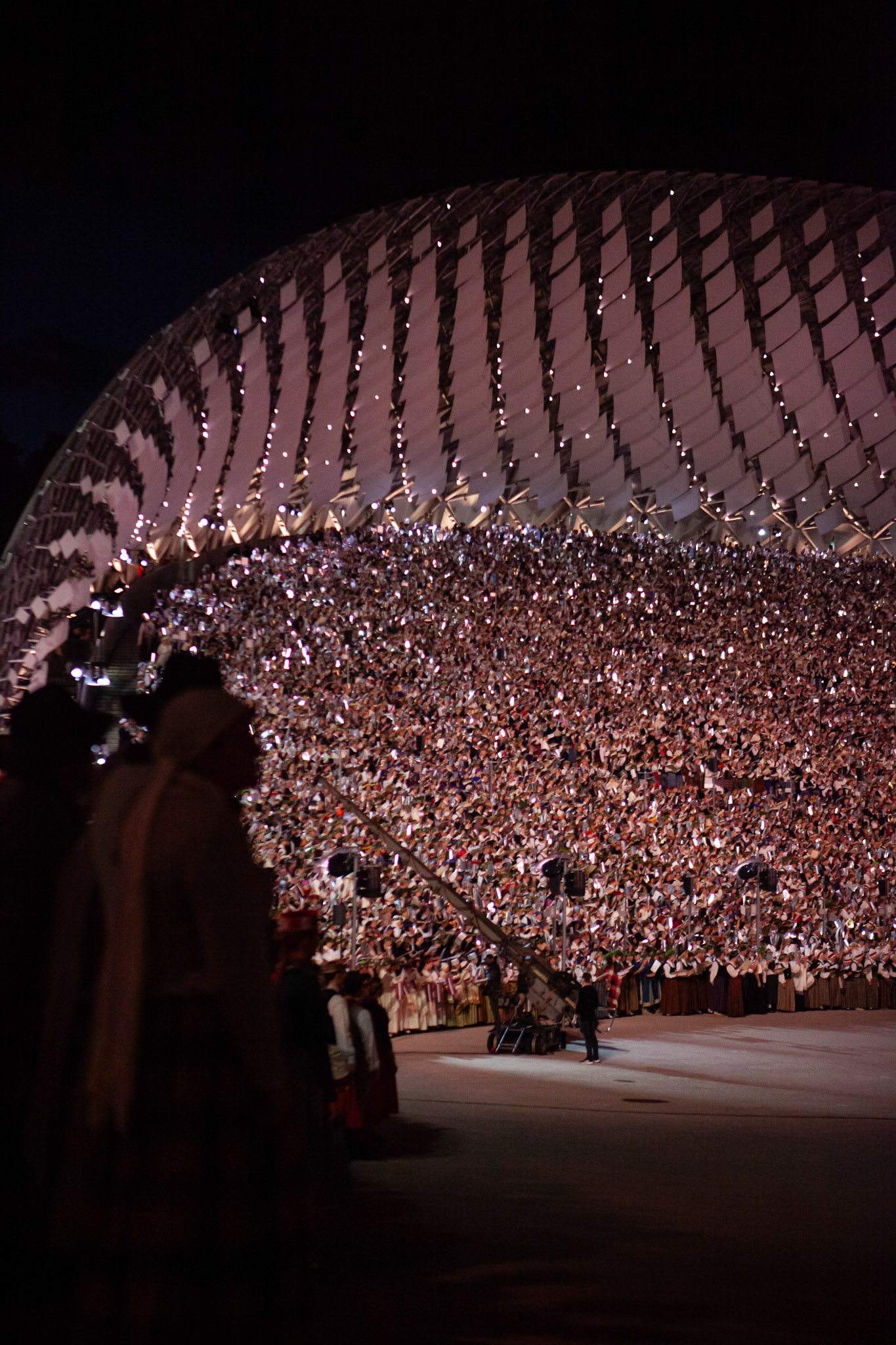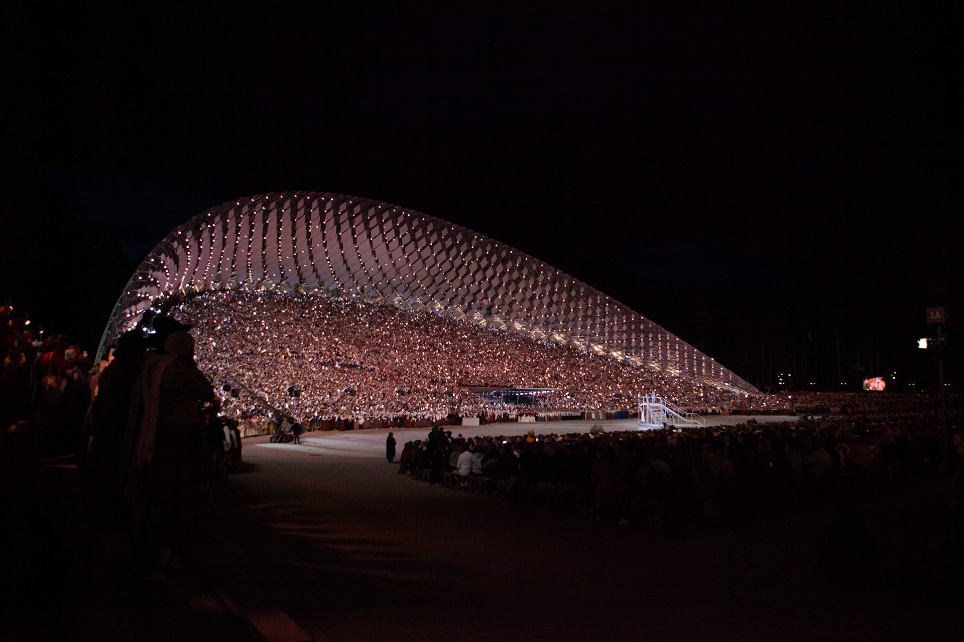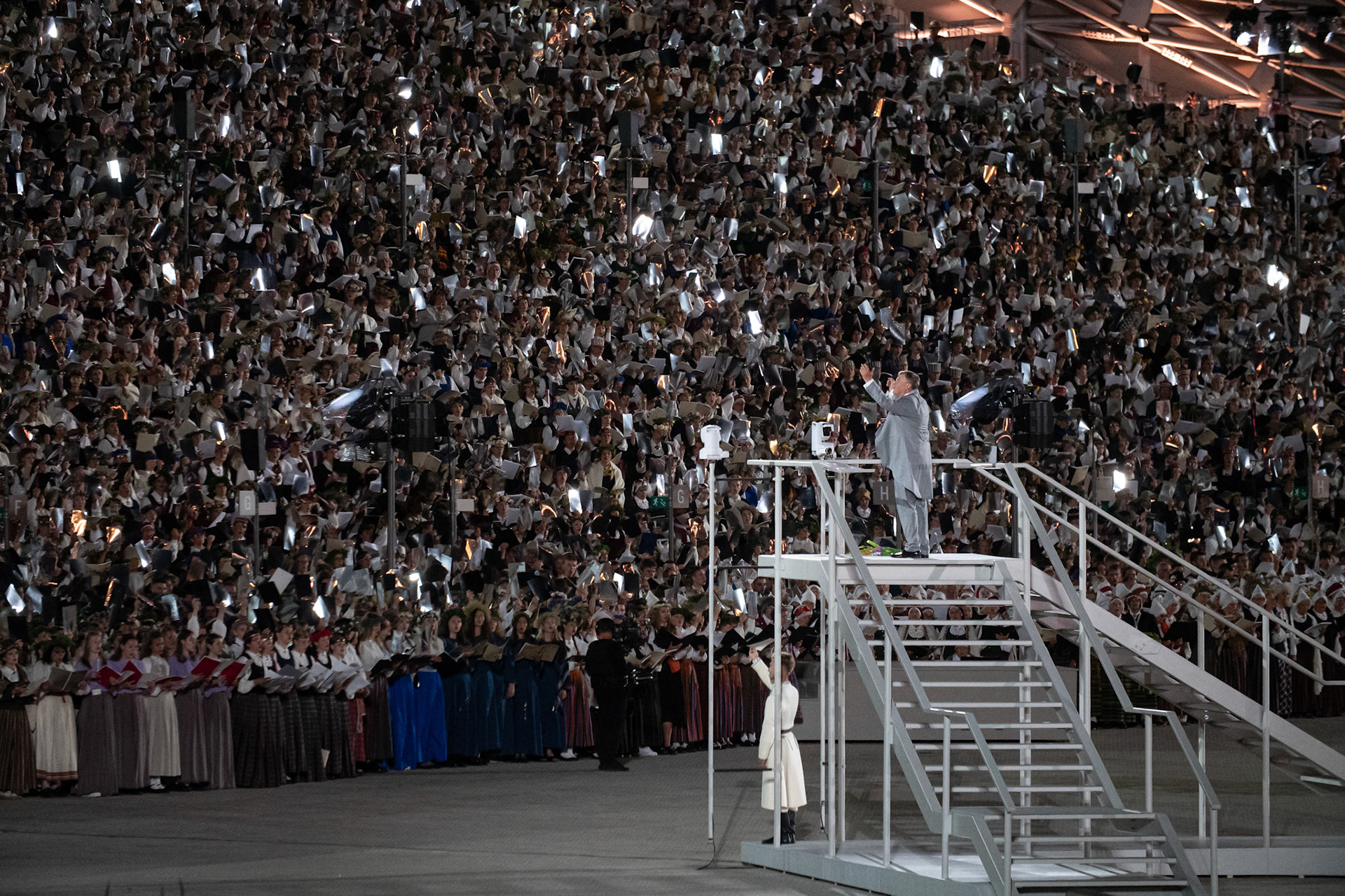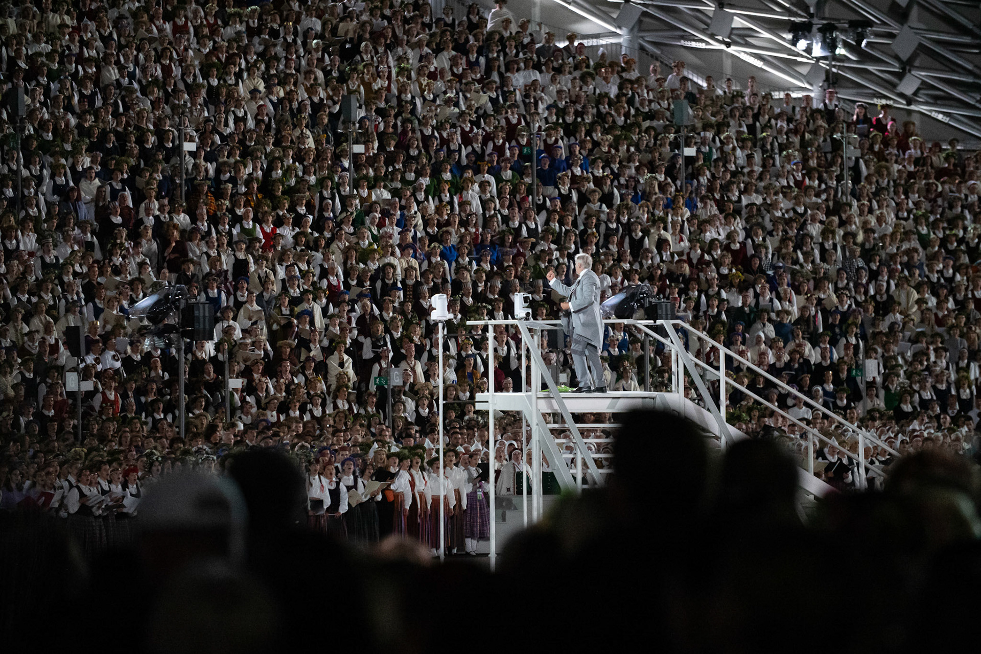 Photography from the XXVII Latvian Song and XVII Dance Festival concert “Kopā augšup” at Mežaparks Great Stage, capturing unity, tradition, powerful voices, and the uplifting spirit shared by thousands of performers.