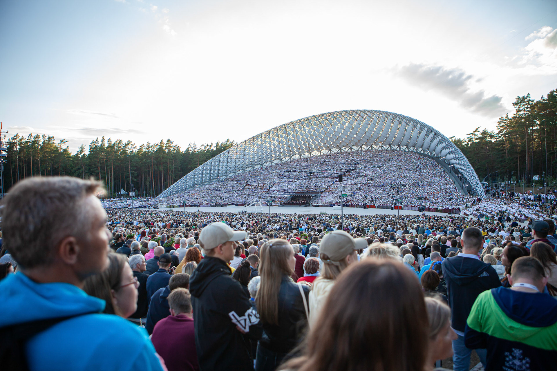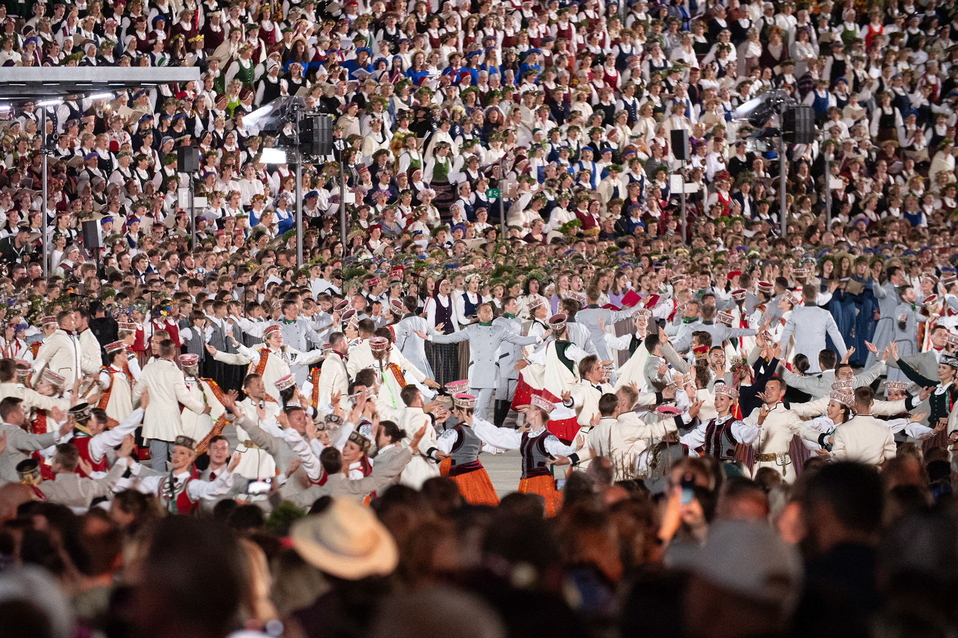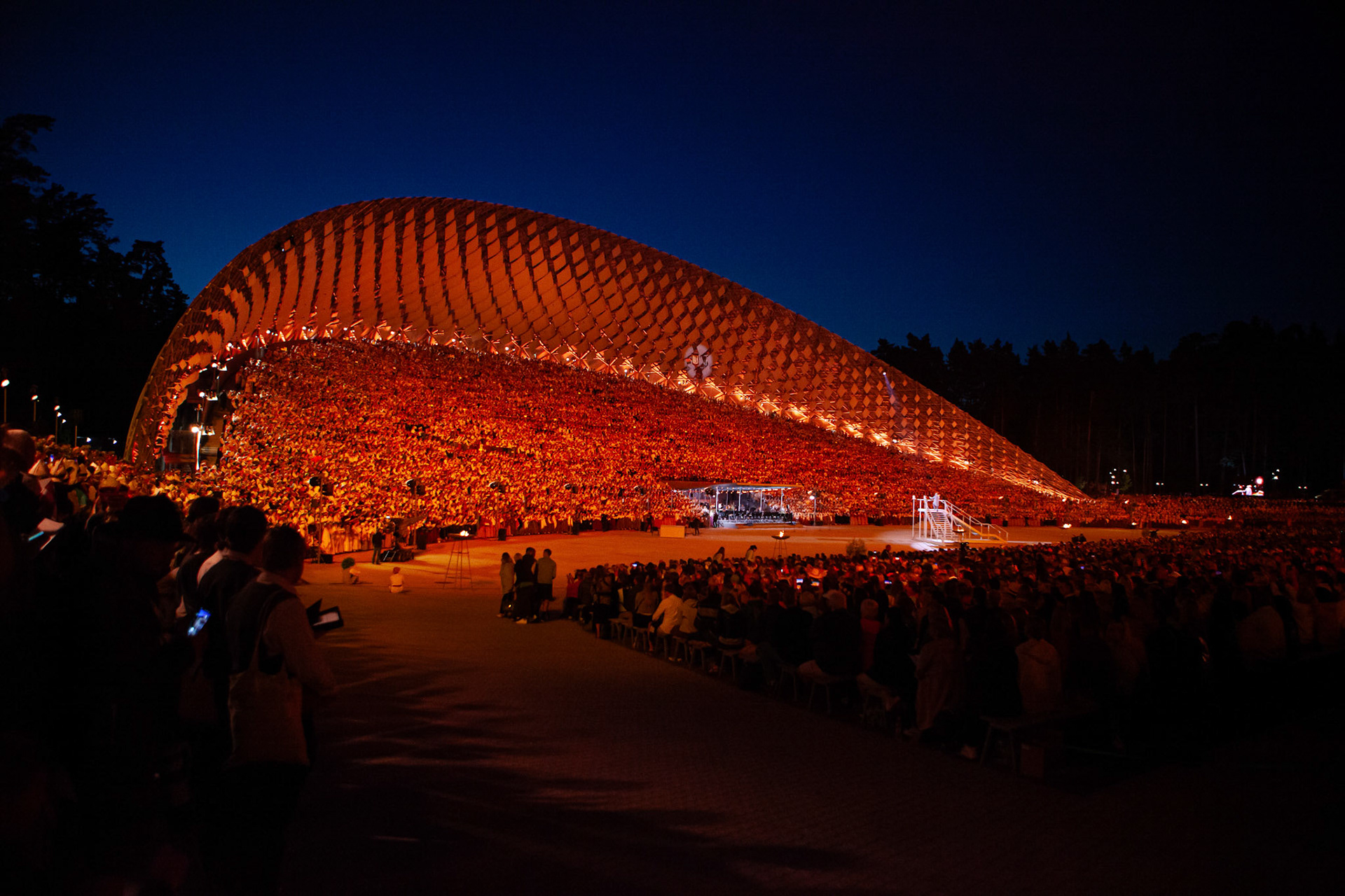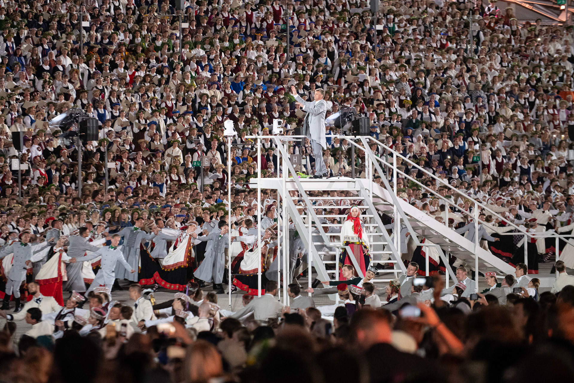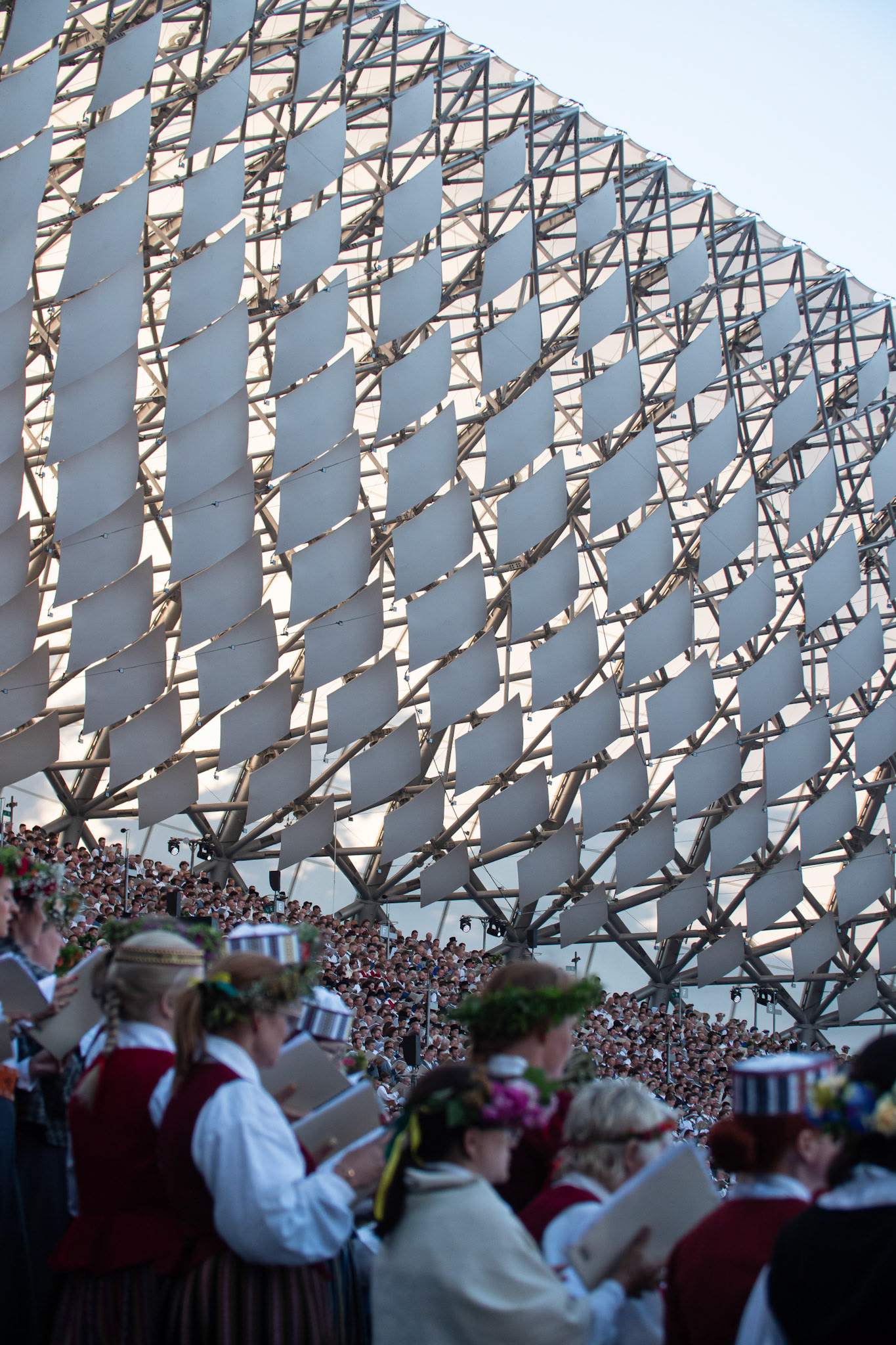 Photography from the XXVII Latvian Song and XVII Dance Festival concert “Kopā augšup” at Mežaparks Great Stage, capturing unity, tradition, powerful voices, and the uplifting spirit shared by thousands of performers.