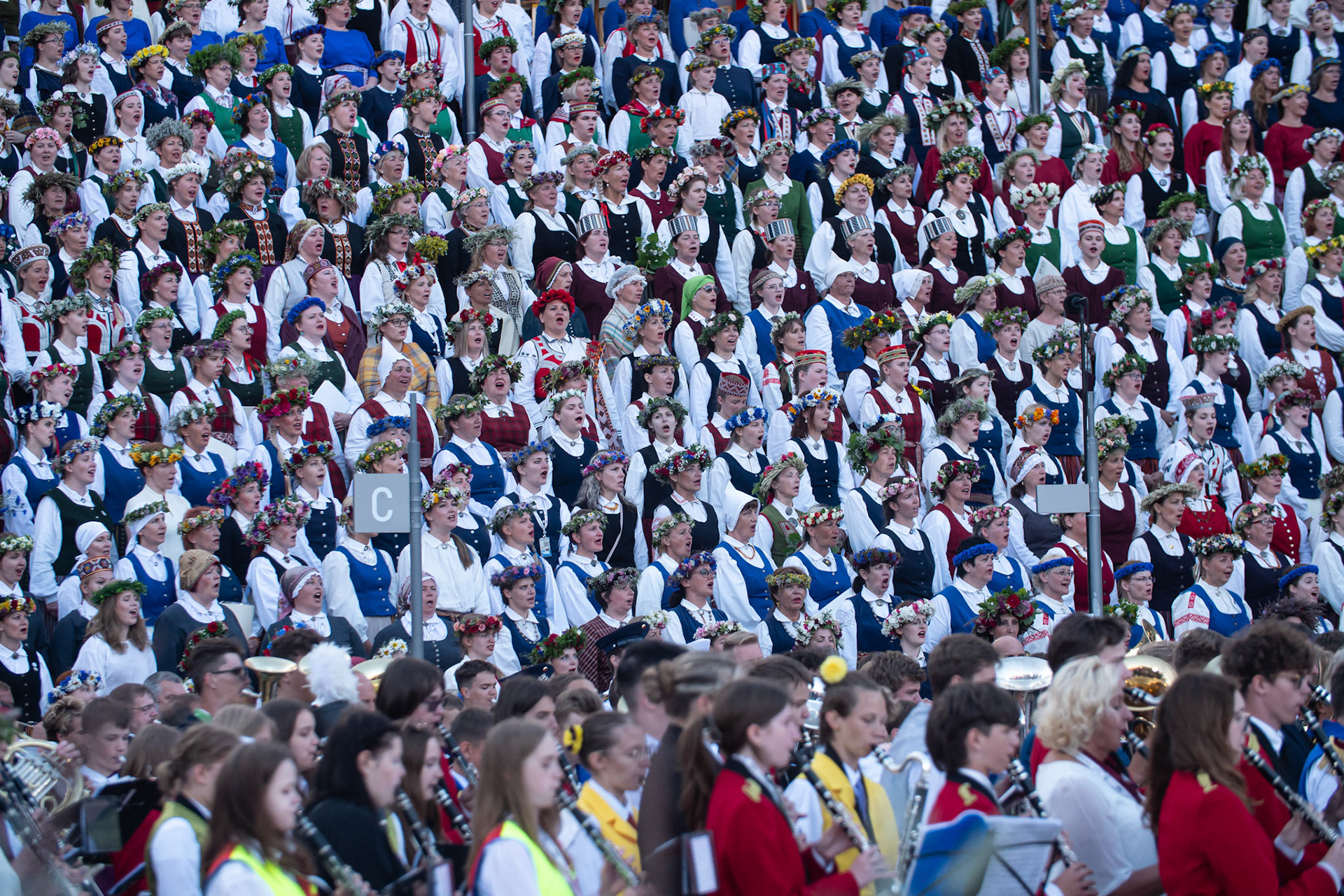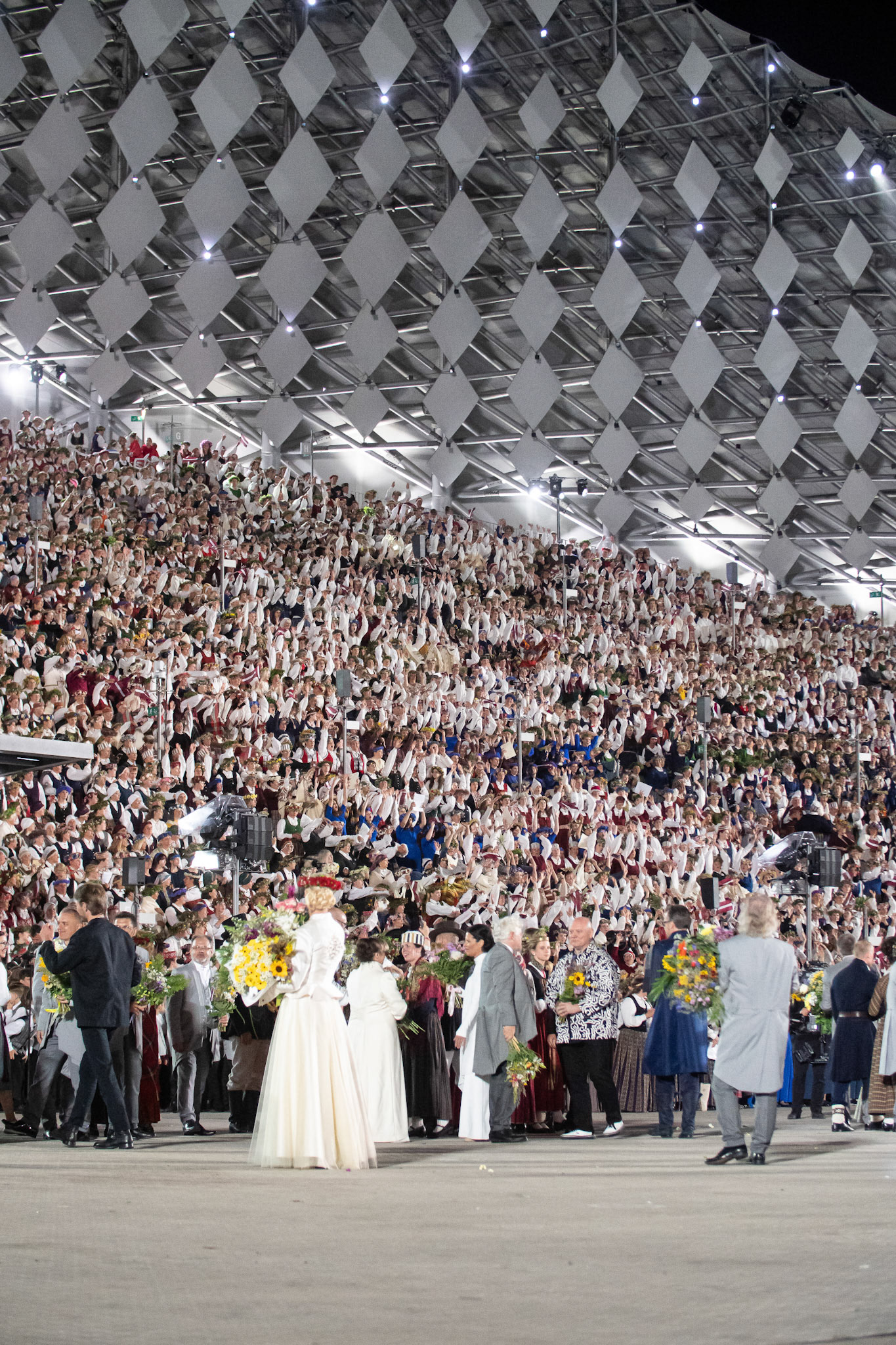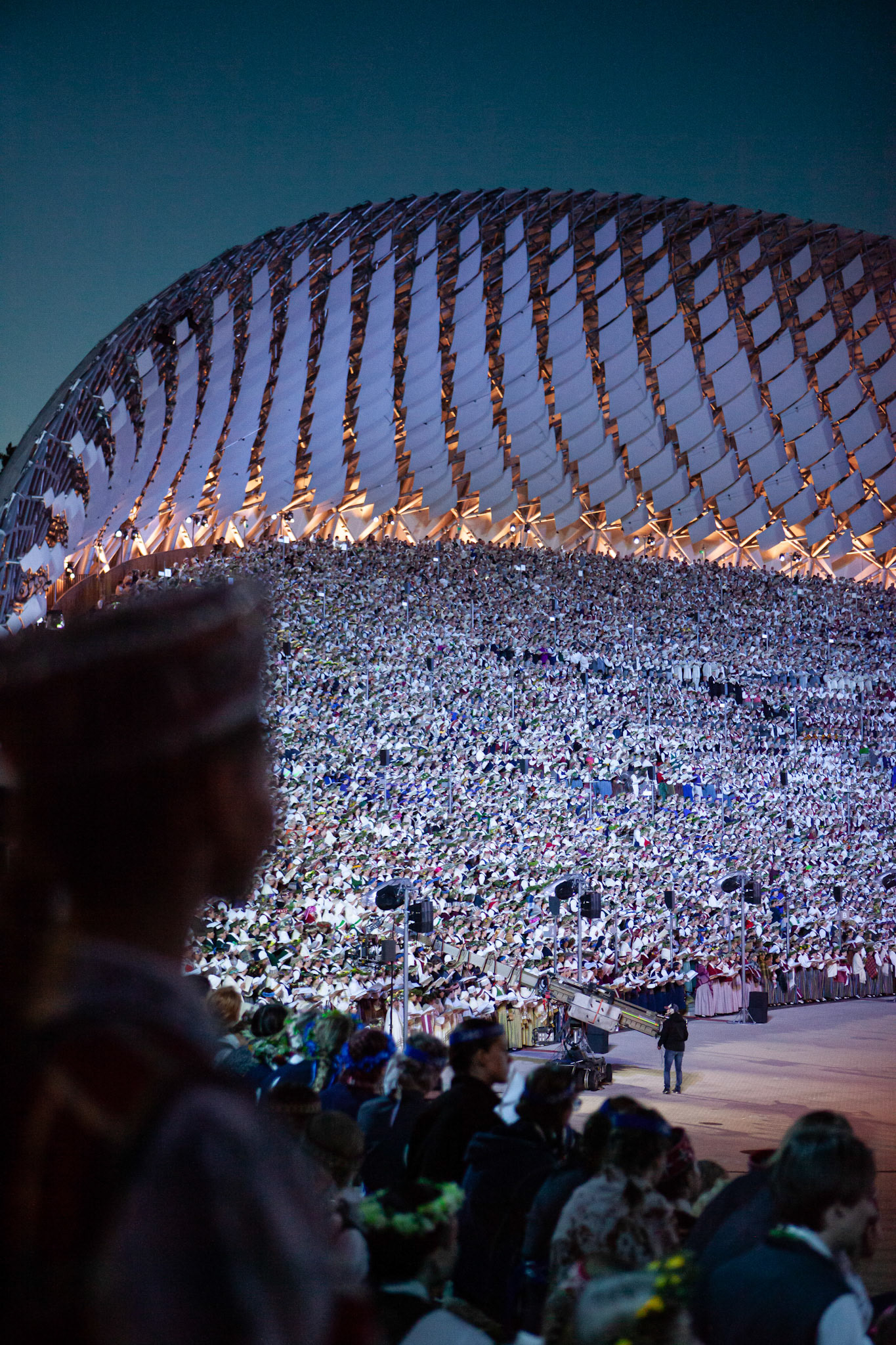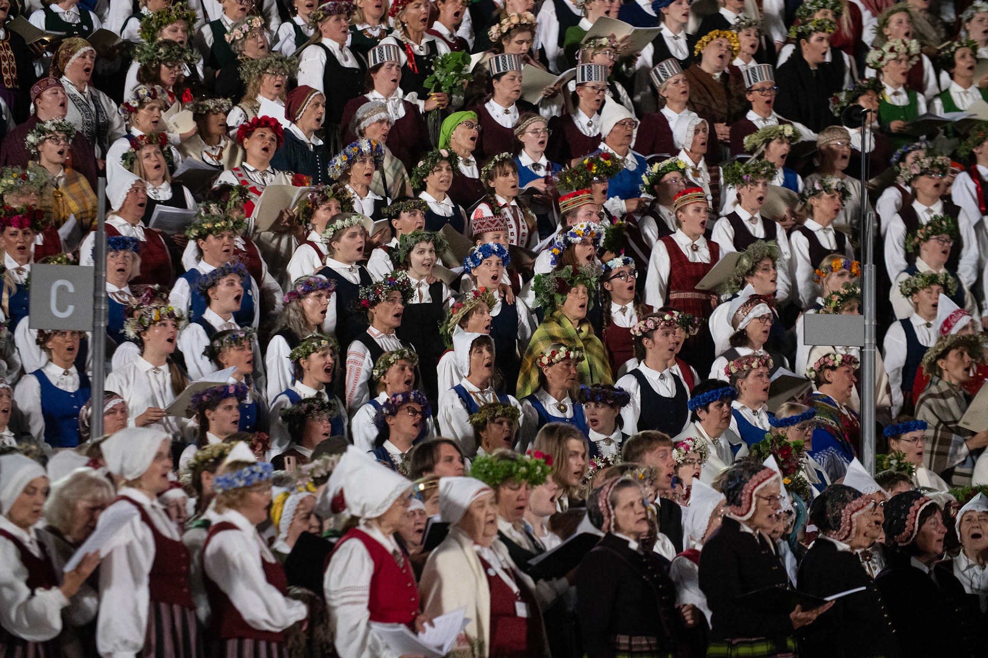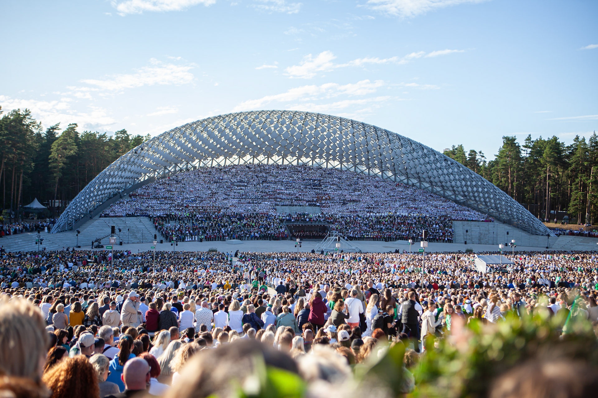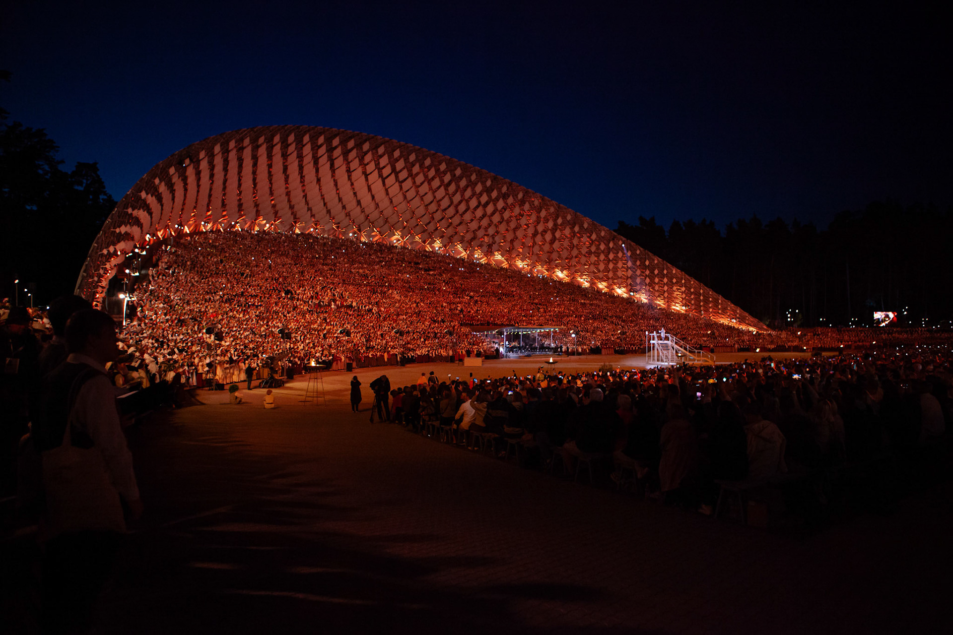 Photography from the XXVII Latvian Song and XVII Dance Festival concert “Kopā augšup” at Mežaparks Great Stage, capturing unity, tradition, powerful voices, and the uplifting spirit shared by thousands of performers.