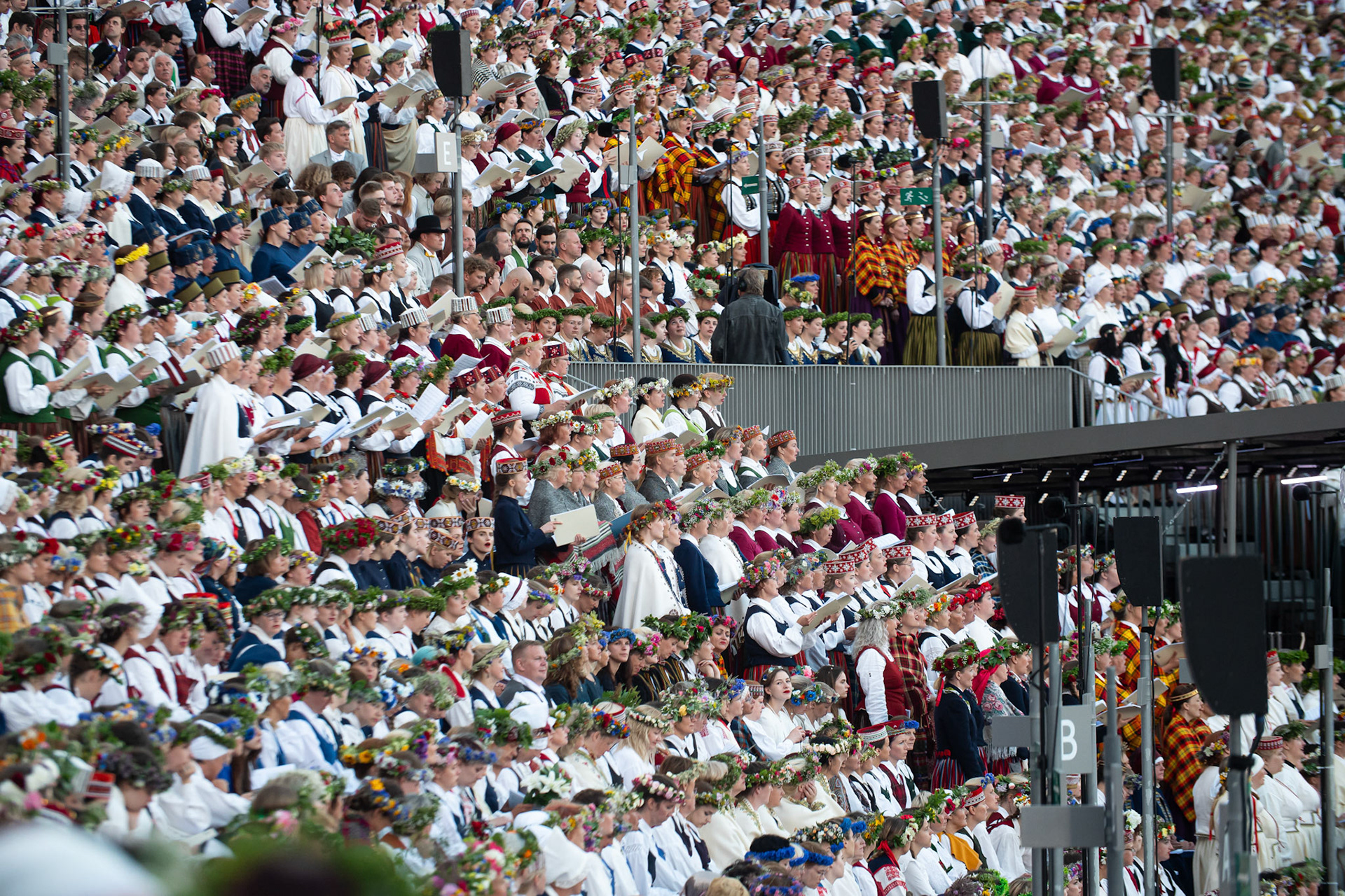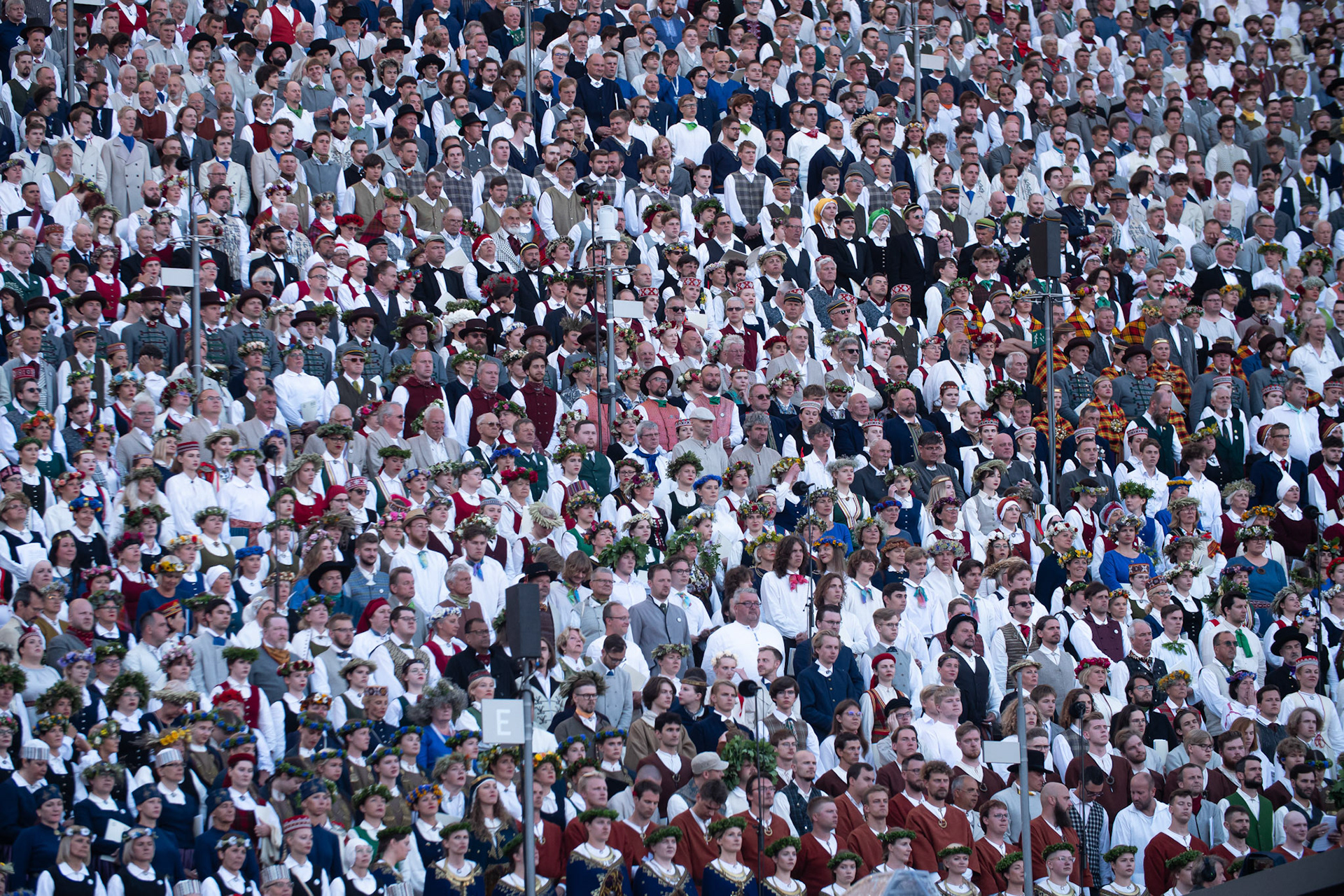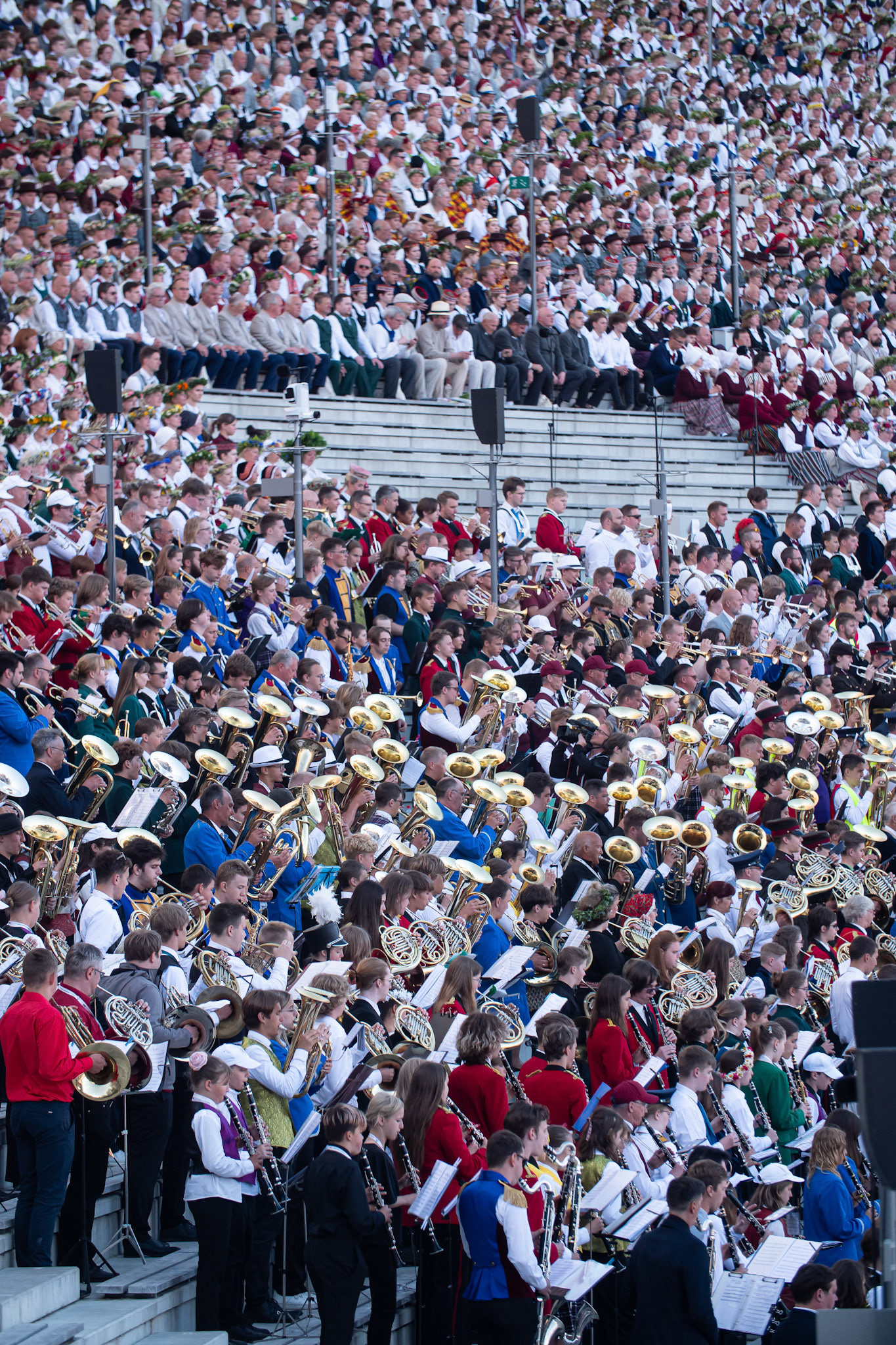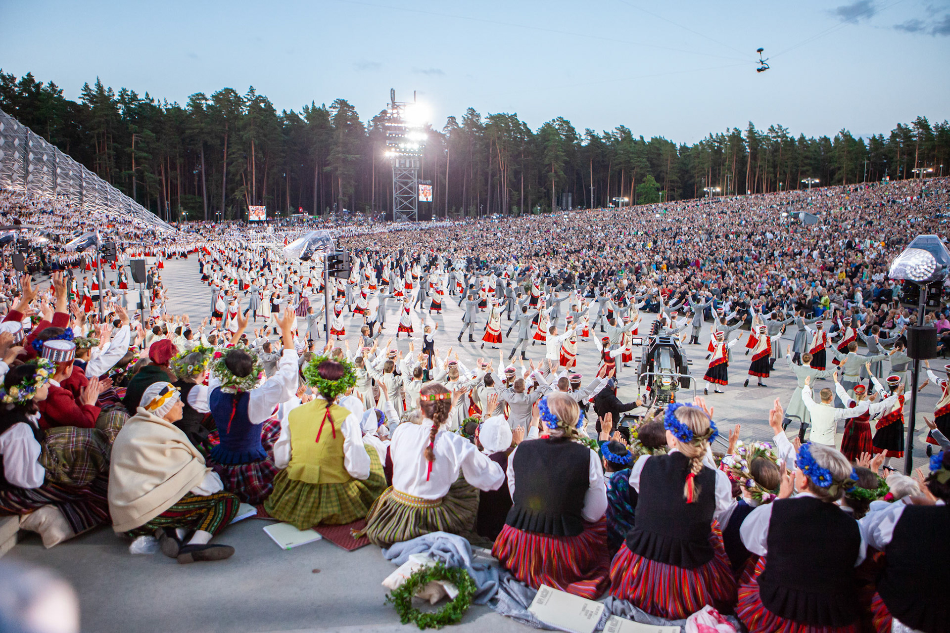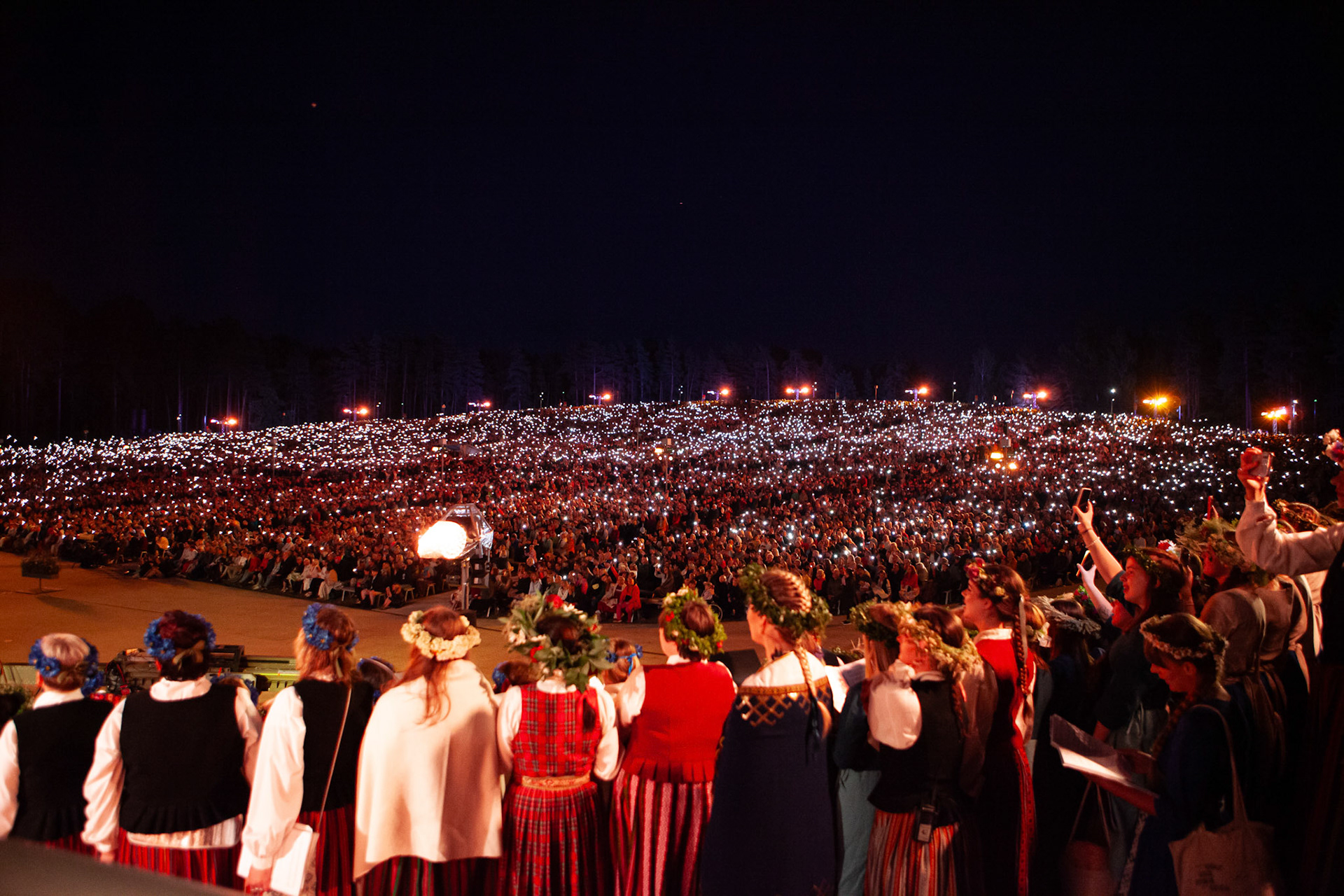 Photography from the XXVII Latvian Song and XVII Dance Festival concert “Kopā augšup” at Mežaparks Great Stage, capturing unity, tradition, powerful voices, and the uplifting spirit shared by thousands of performers.