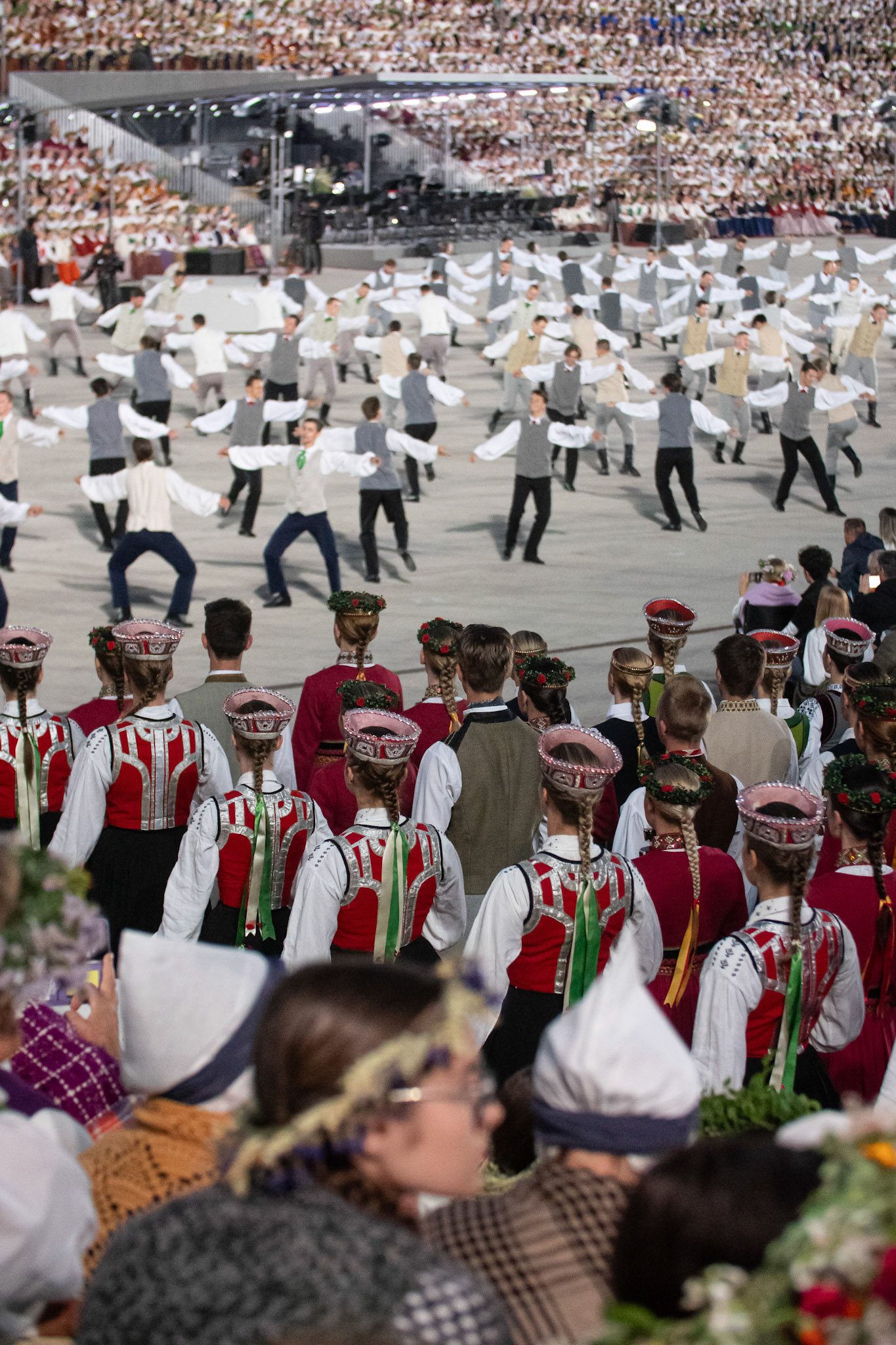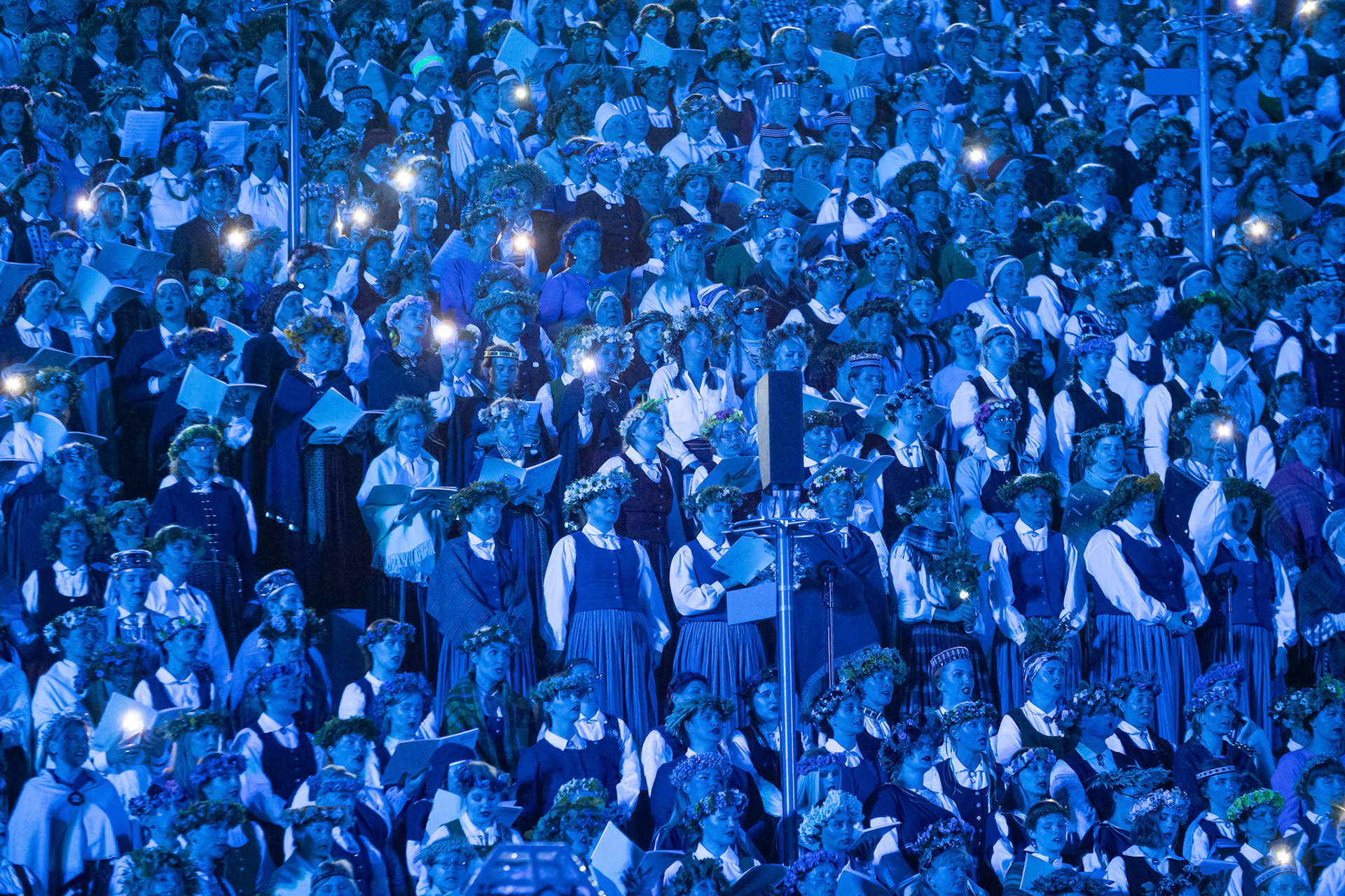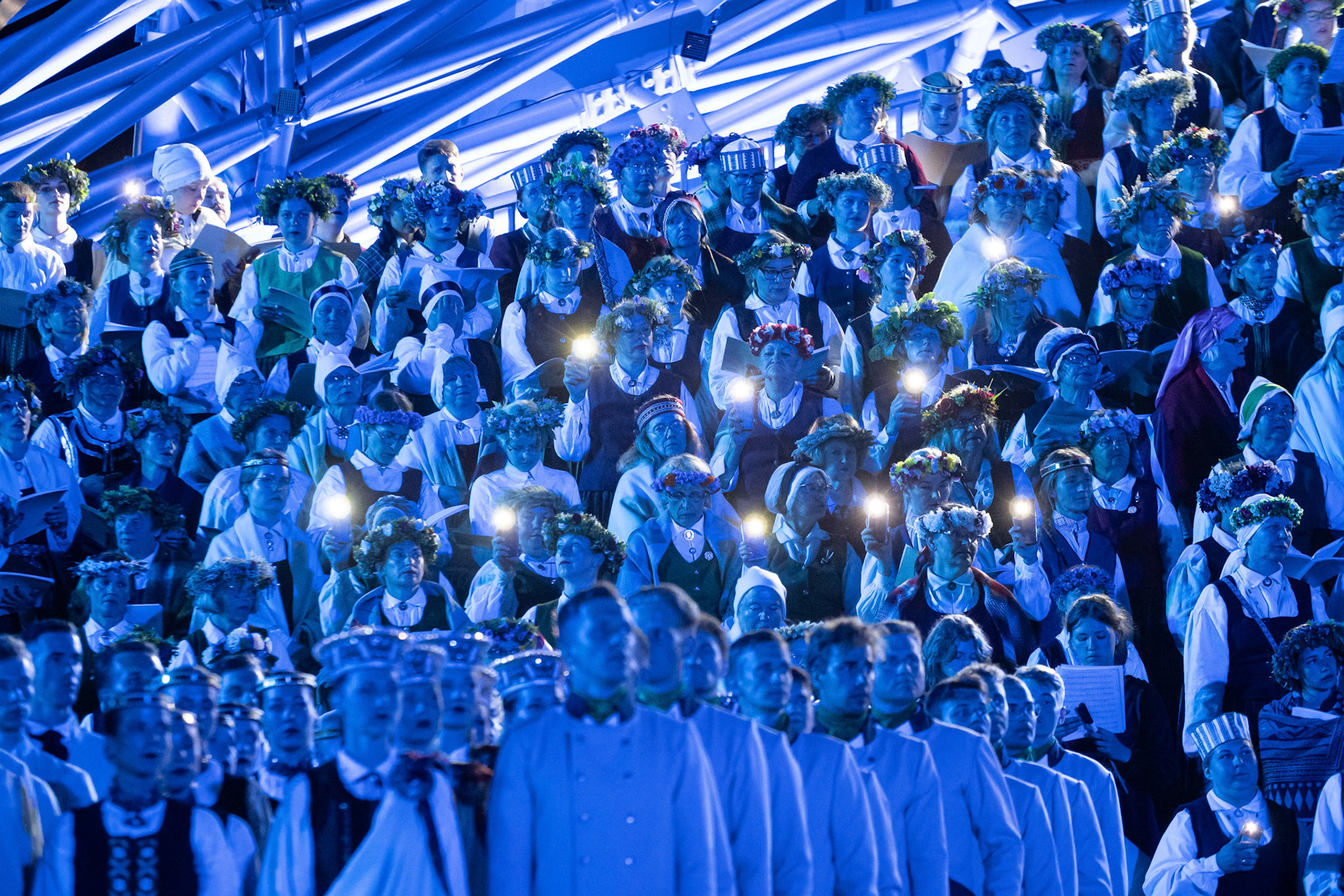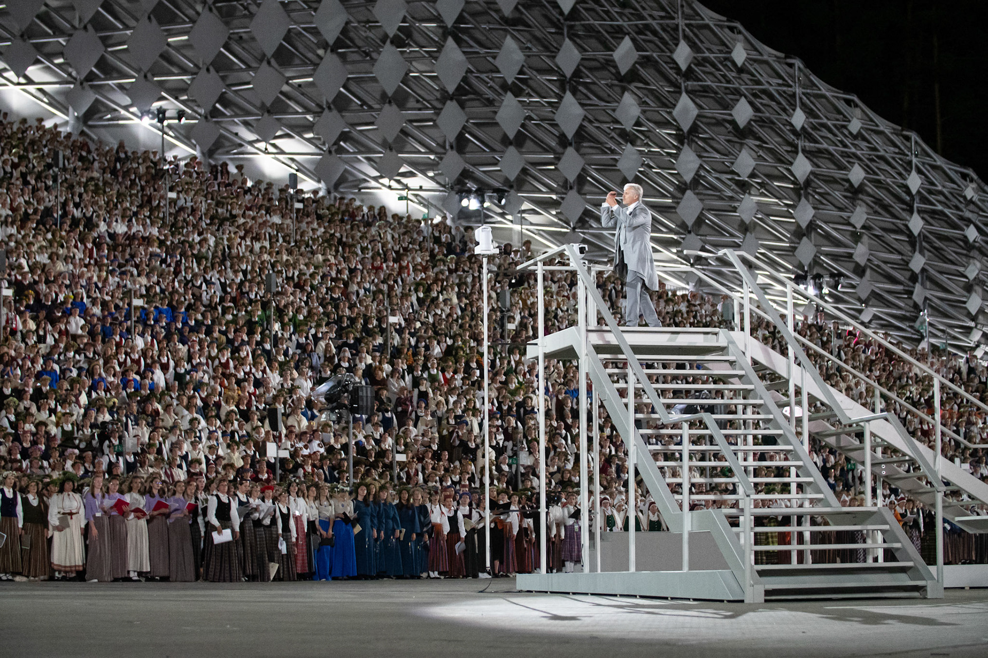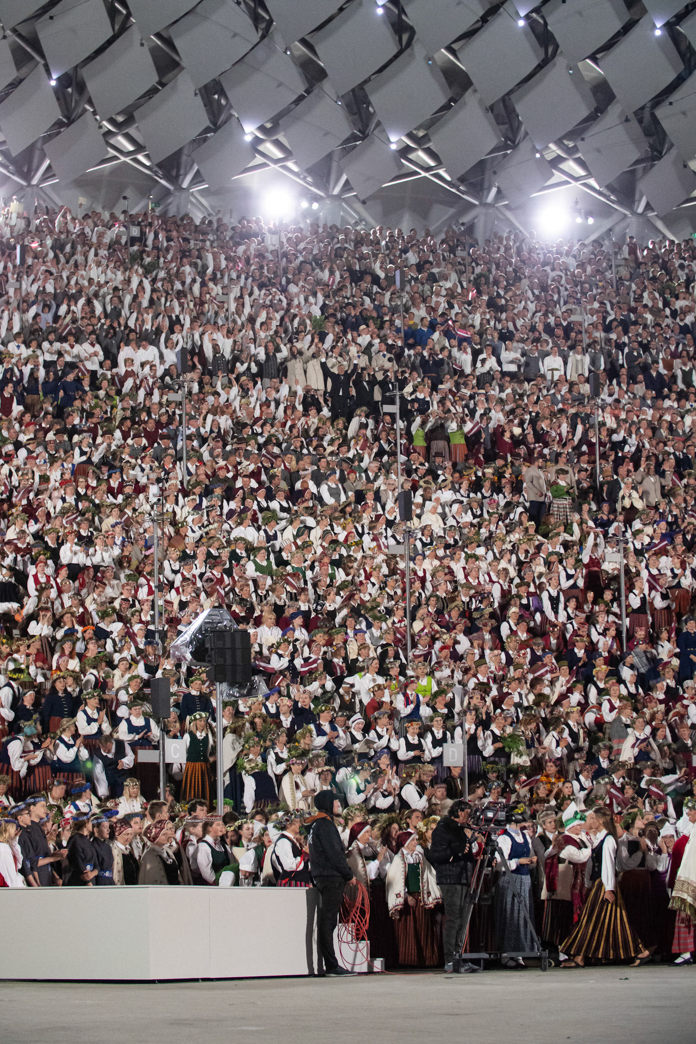 Photography from the XXVII Latvian Song and XVII Dance Festival concert “Kopā augšup” at Mežaparks Great Stage, capturing unity, tradition, powerful voices, and the uplifting spirit shared by thousands of performers.