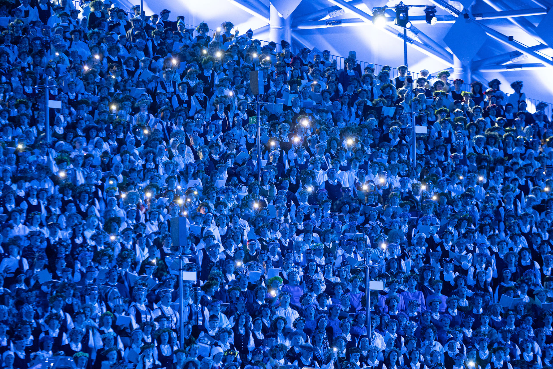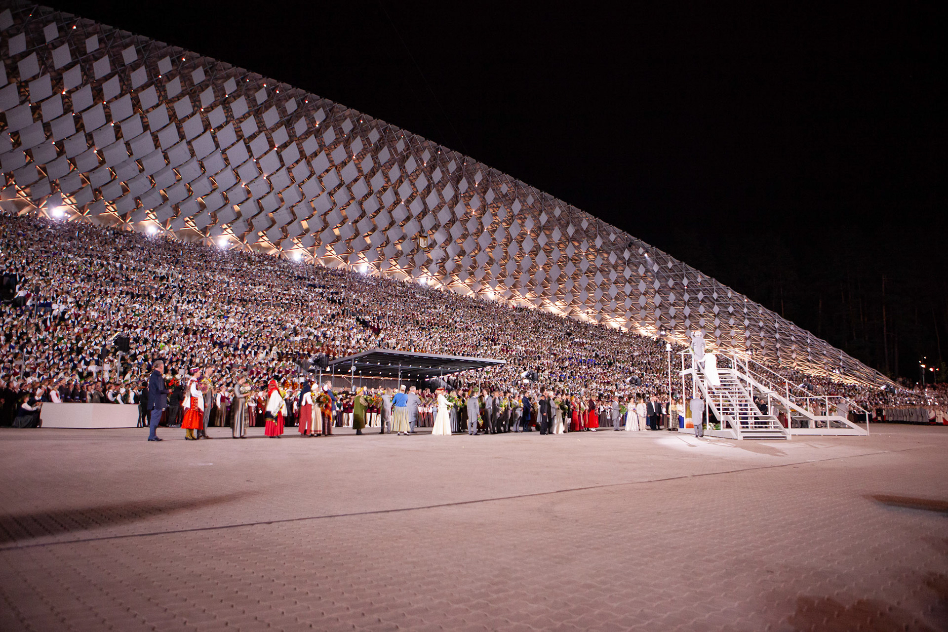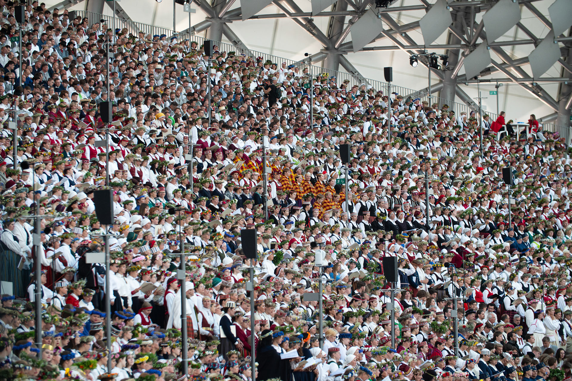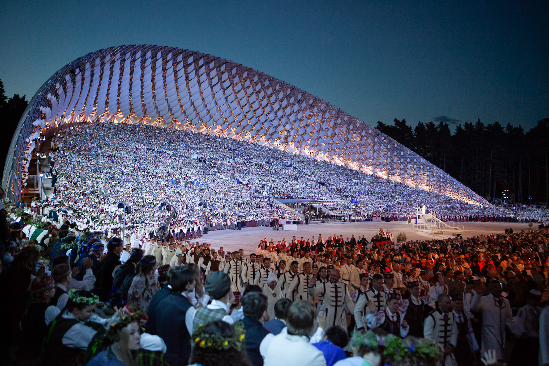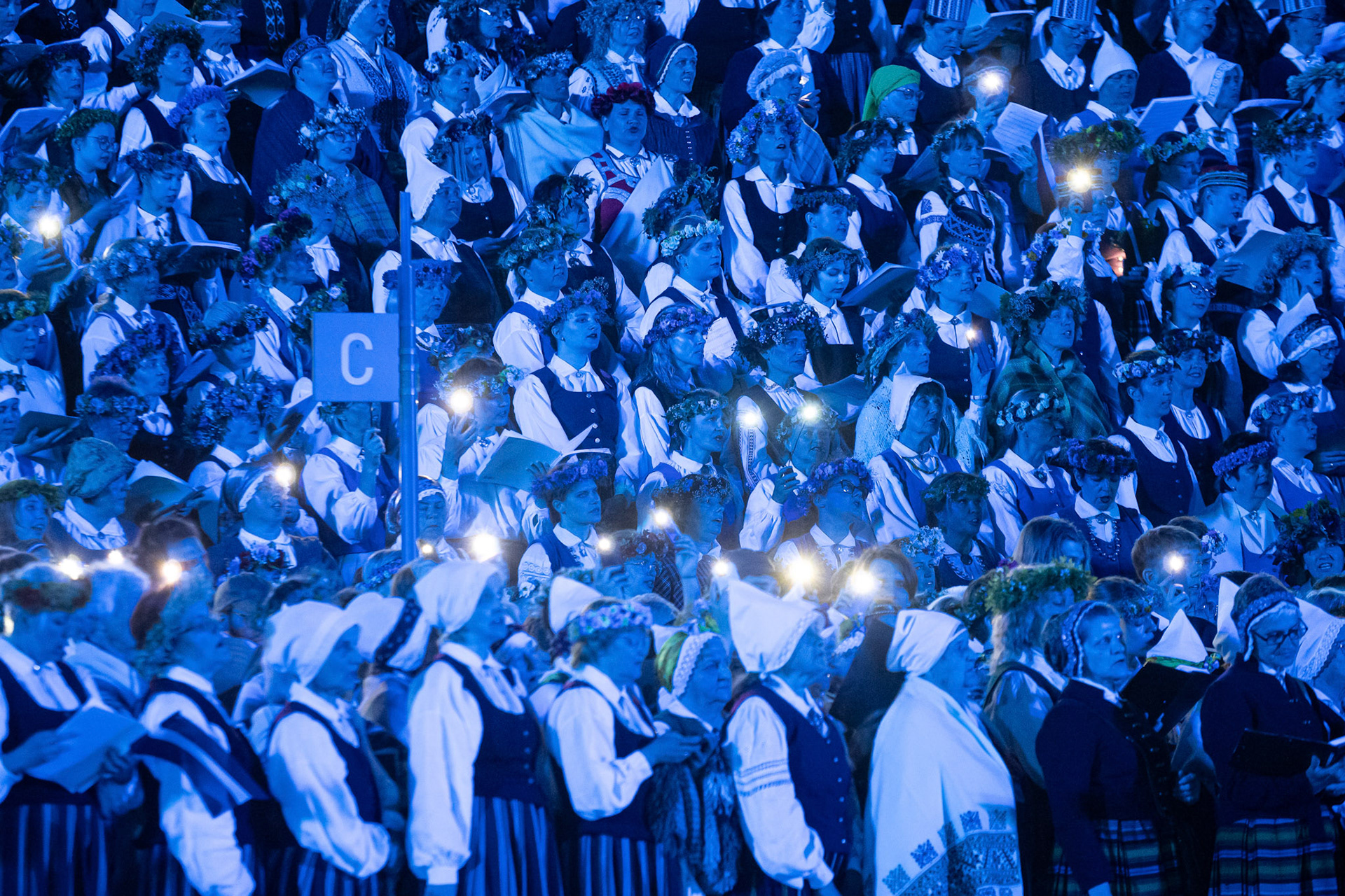 Photography from the XXVII Latvian Song and XVII Dance Festival concert “Kopā augšup” at Mežaparks Great Stage, capturing unity, tradition, powerful voices, and the uplifting spirit shared by thousands of performers.