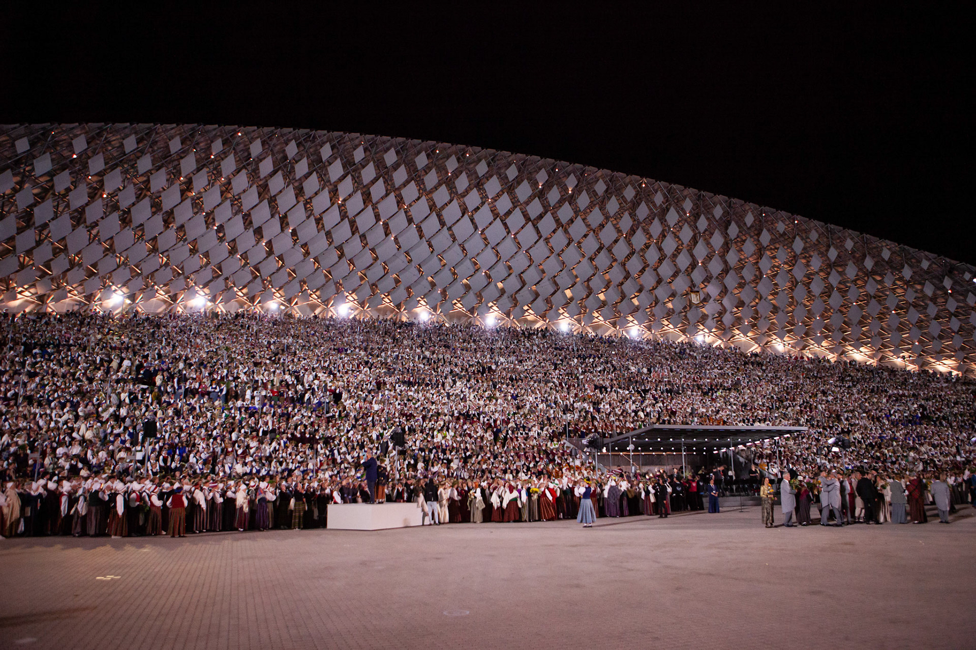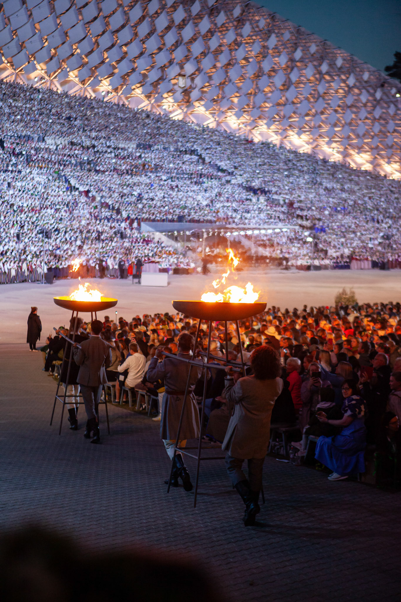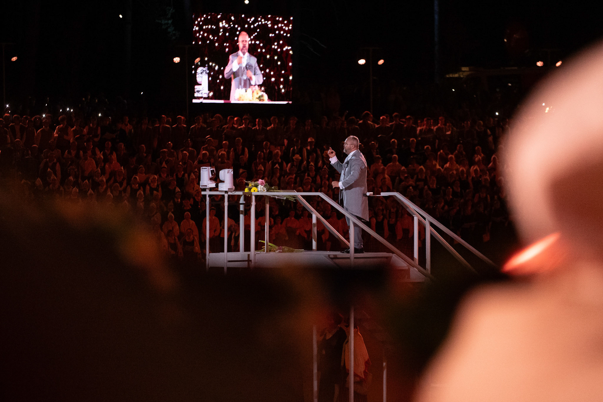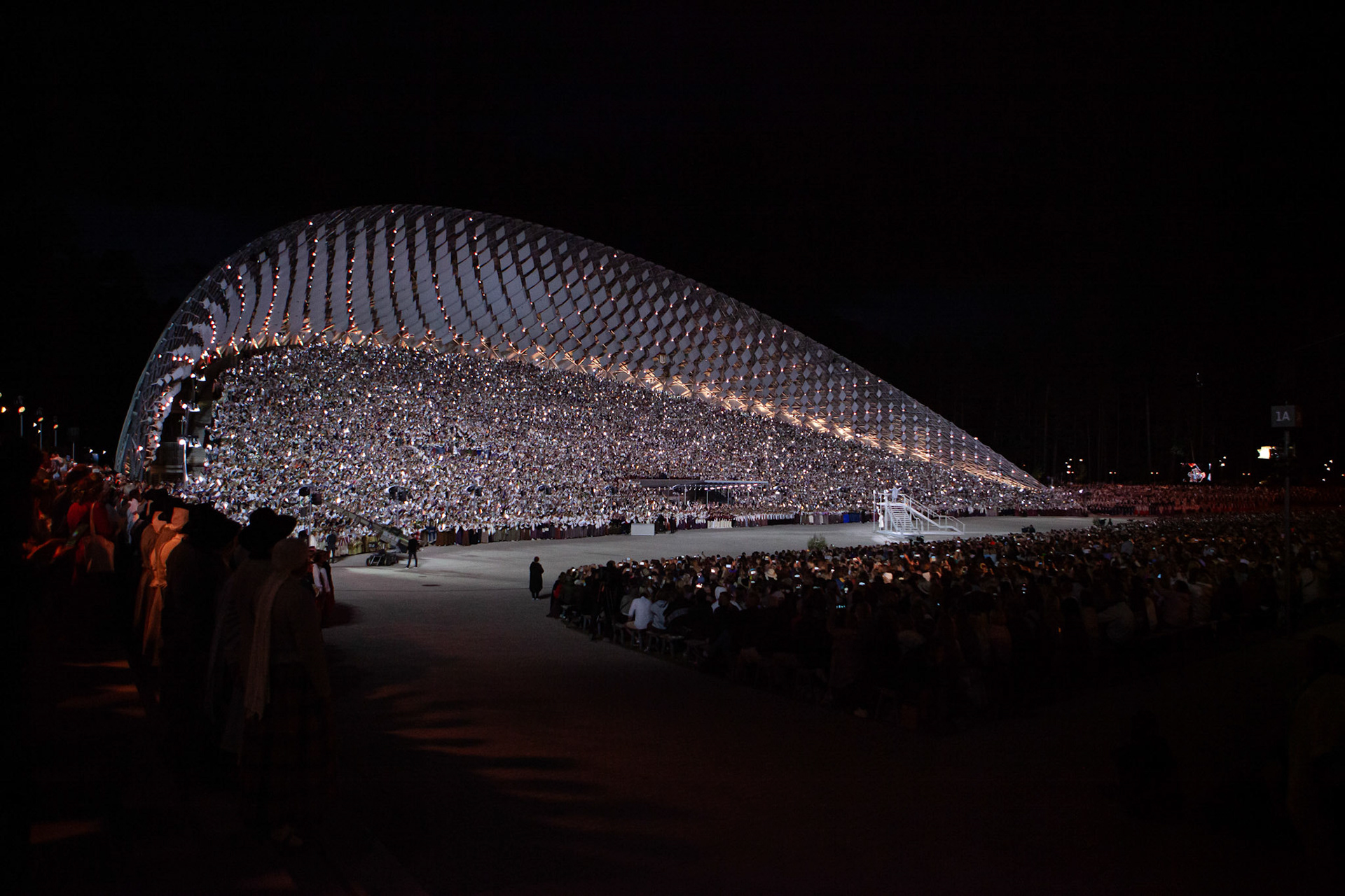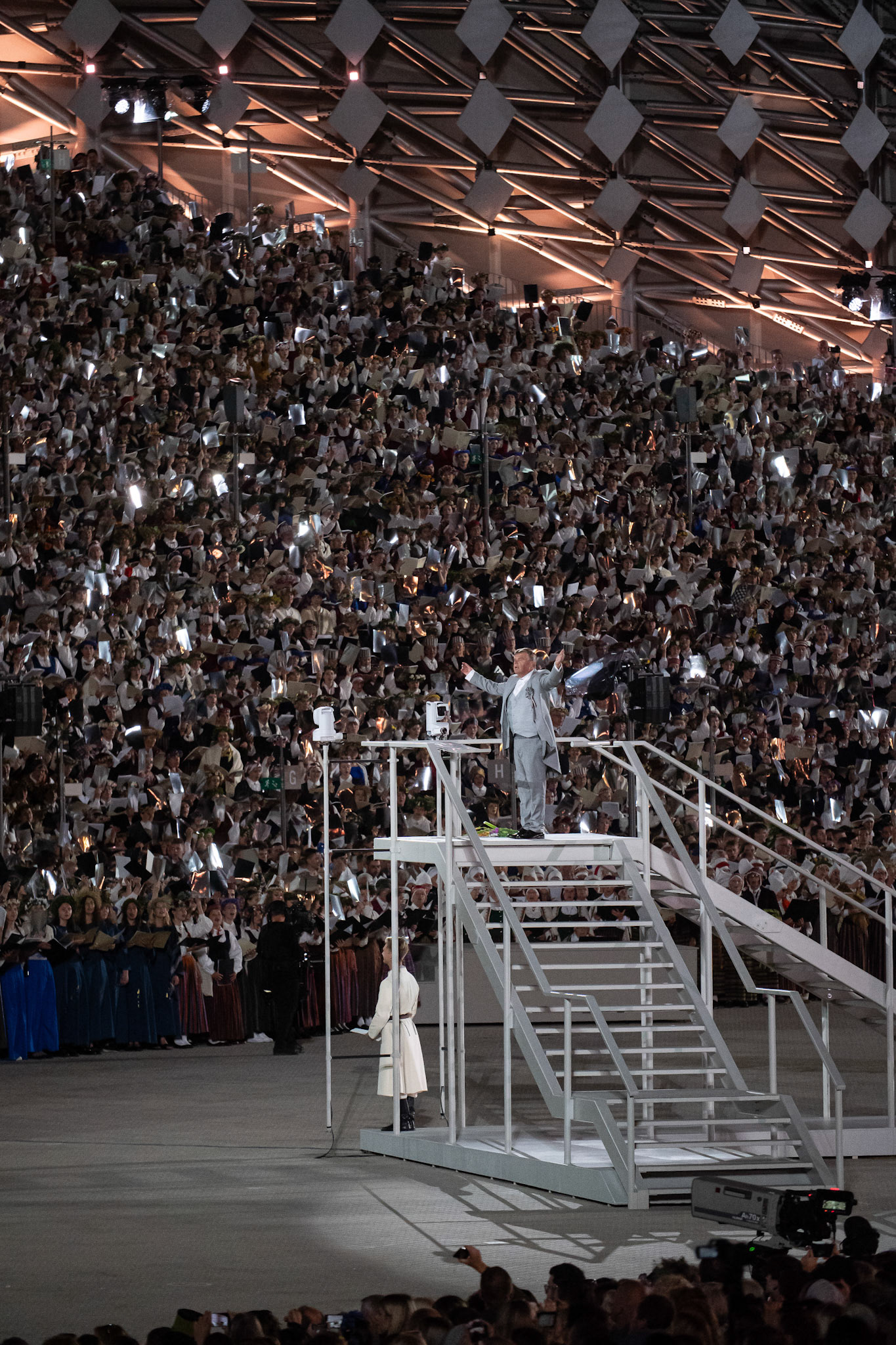 Photography from the XXVII Latvian Song and XVII Dance Festival concert “Kopā augšup” at Mežaparks Great Stage, capturing unity, tradition, powerful voices, and the uplifting spirit shared by thousands of performers.
