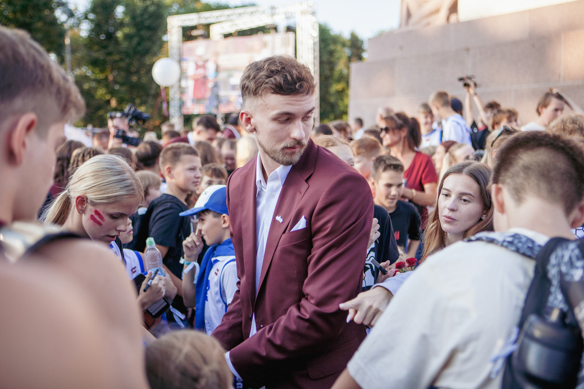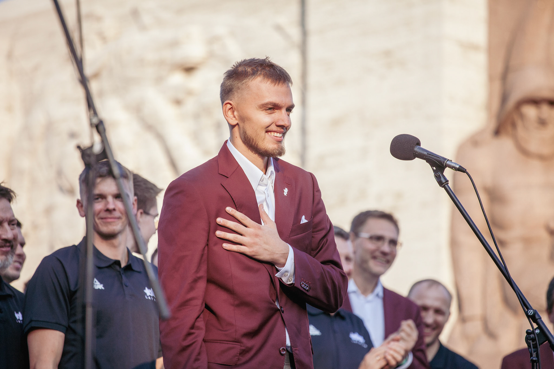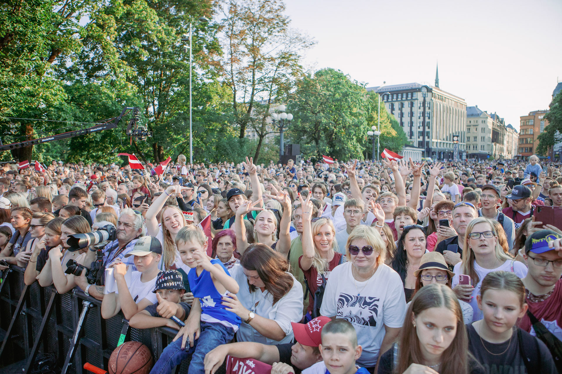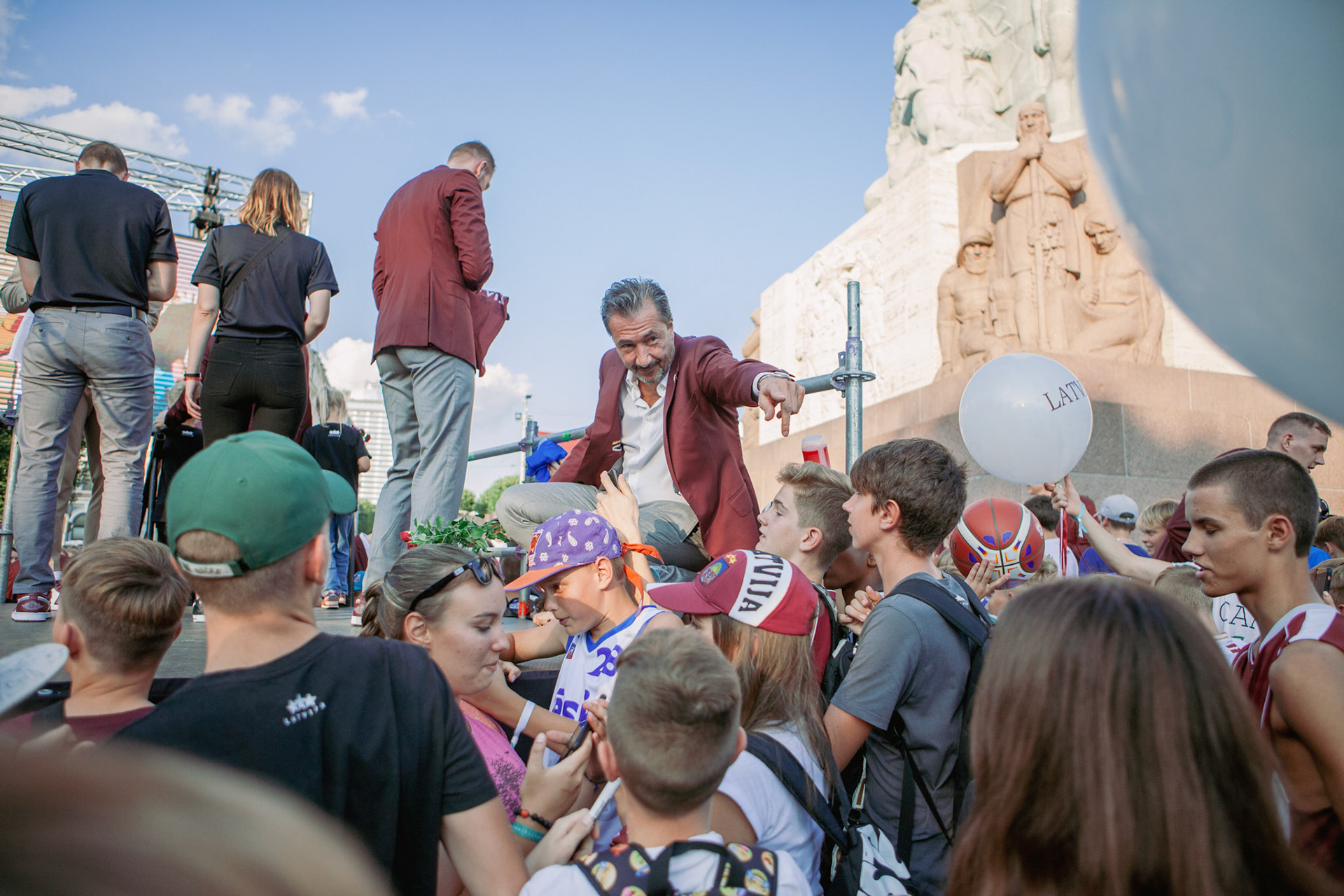 The Latvian national team’s return after the FIBA World Cup — a documentary-style look at the welcome event, filled with emotion, pride, and powerful human moments.