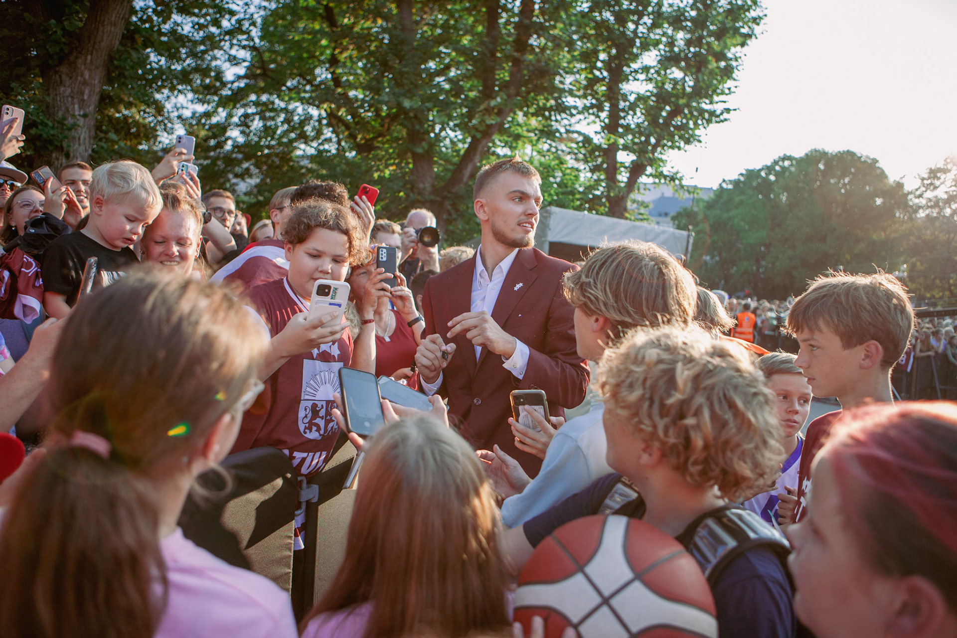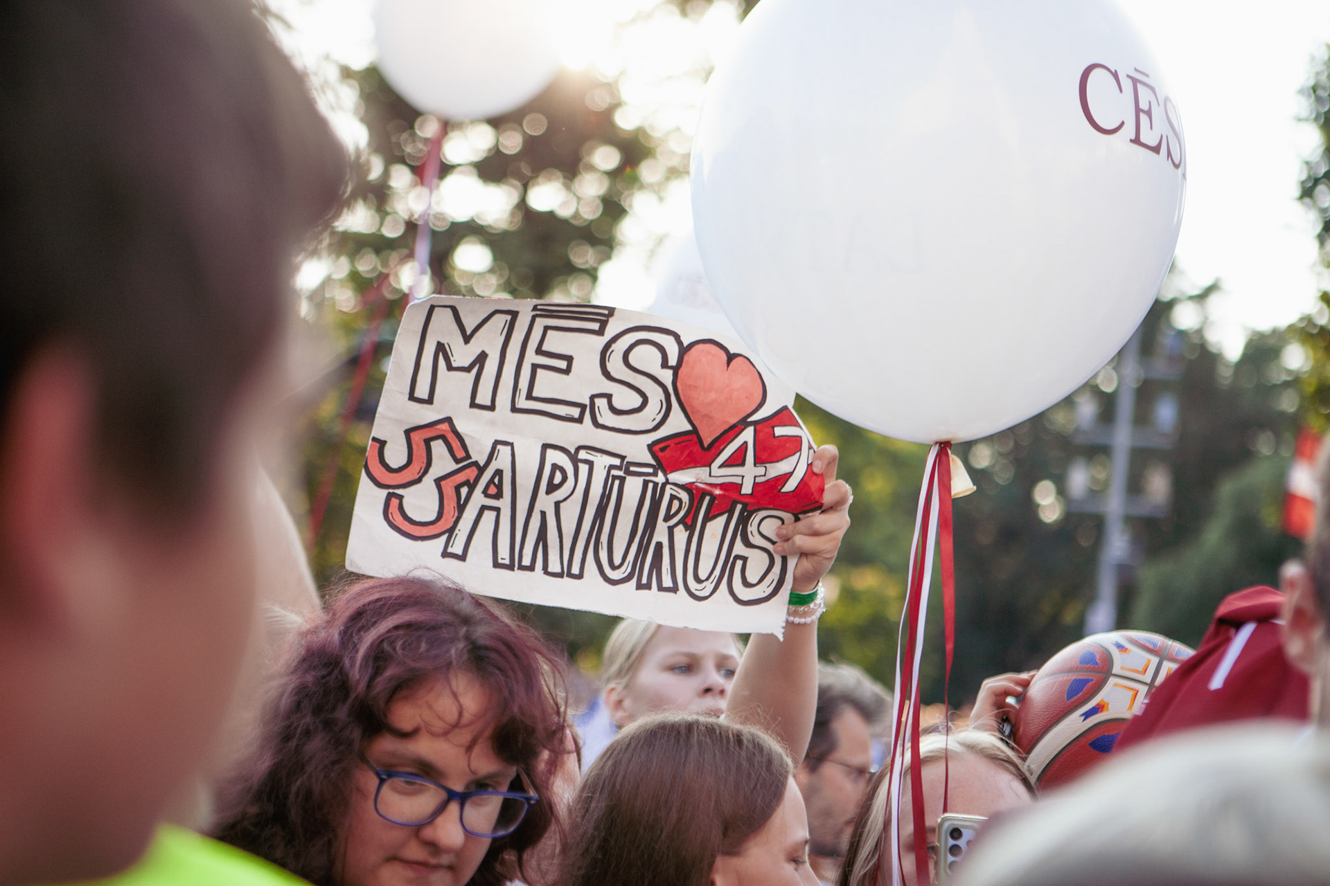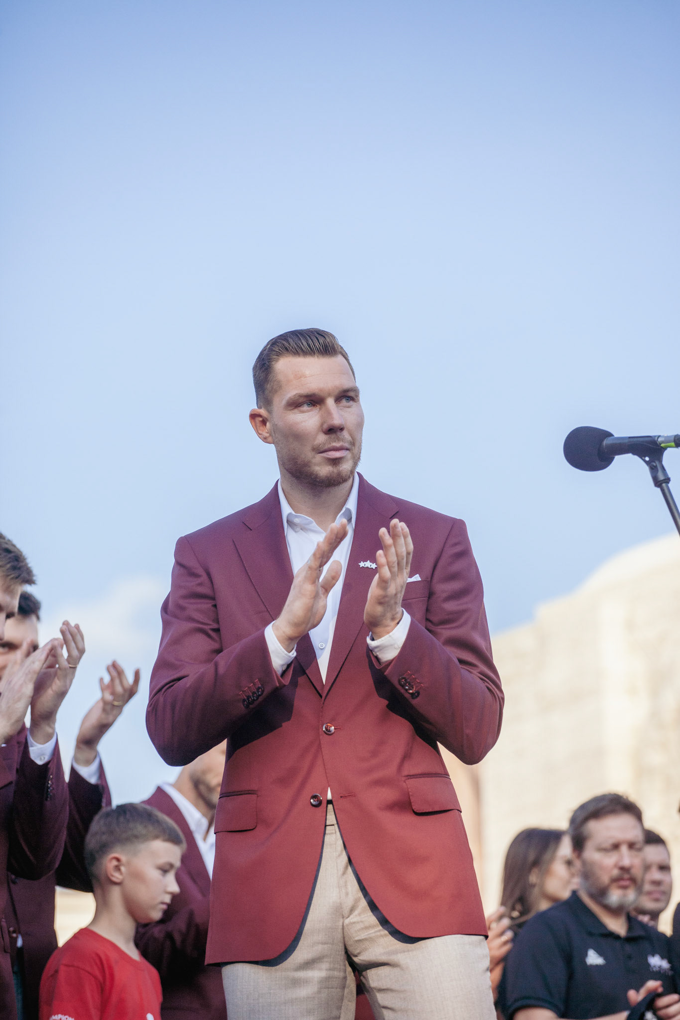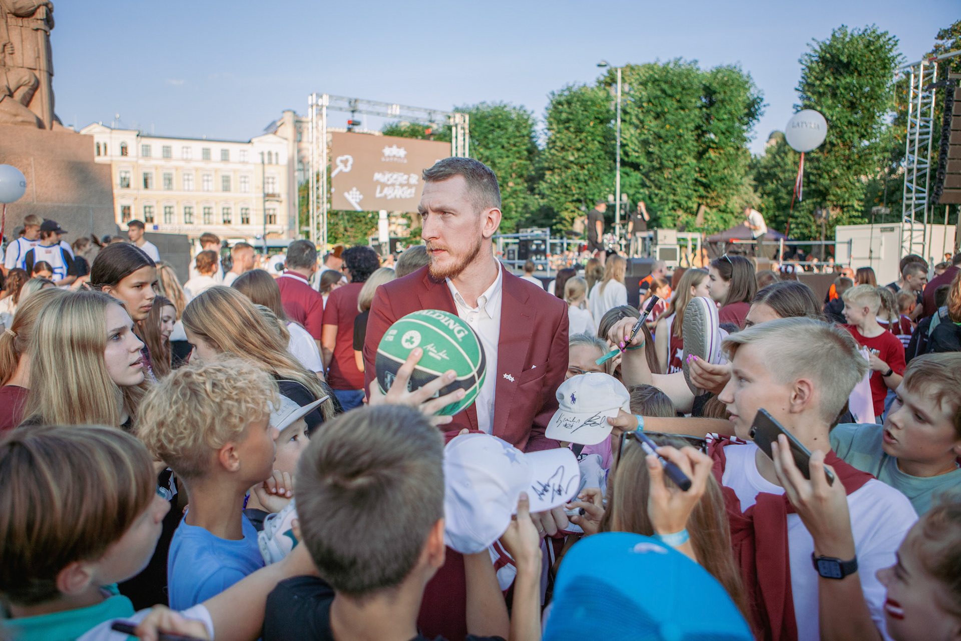 The Latvian national team’s return after the FIBA World Cup — a documentary-style look at the welcome event, filled with emotion, pride, and powerful human moments.
