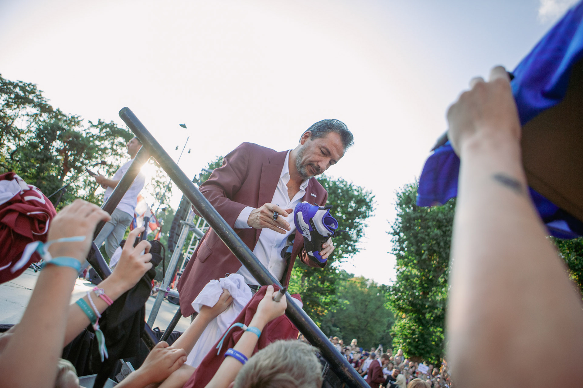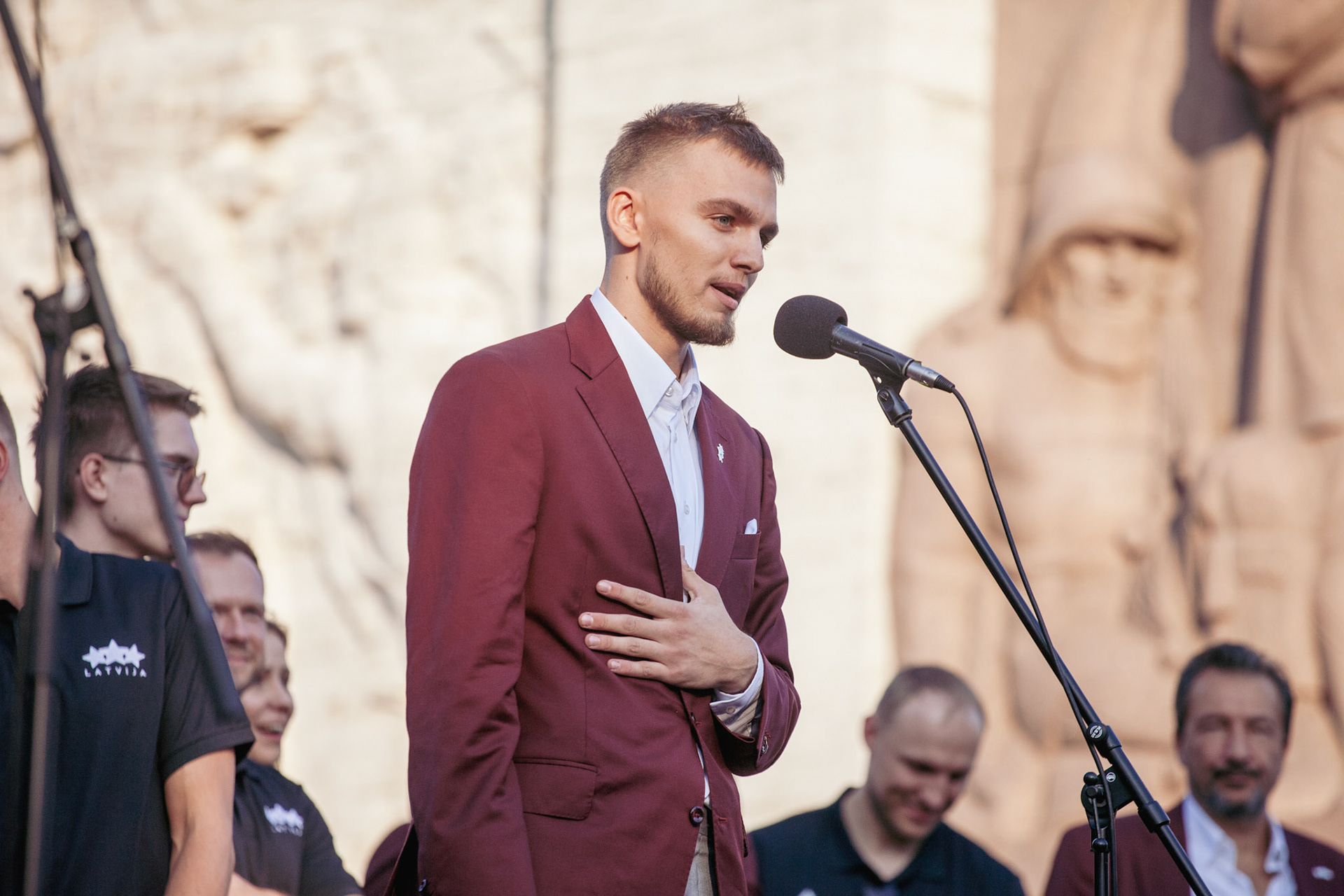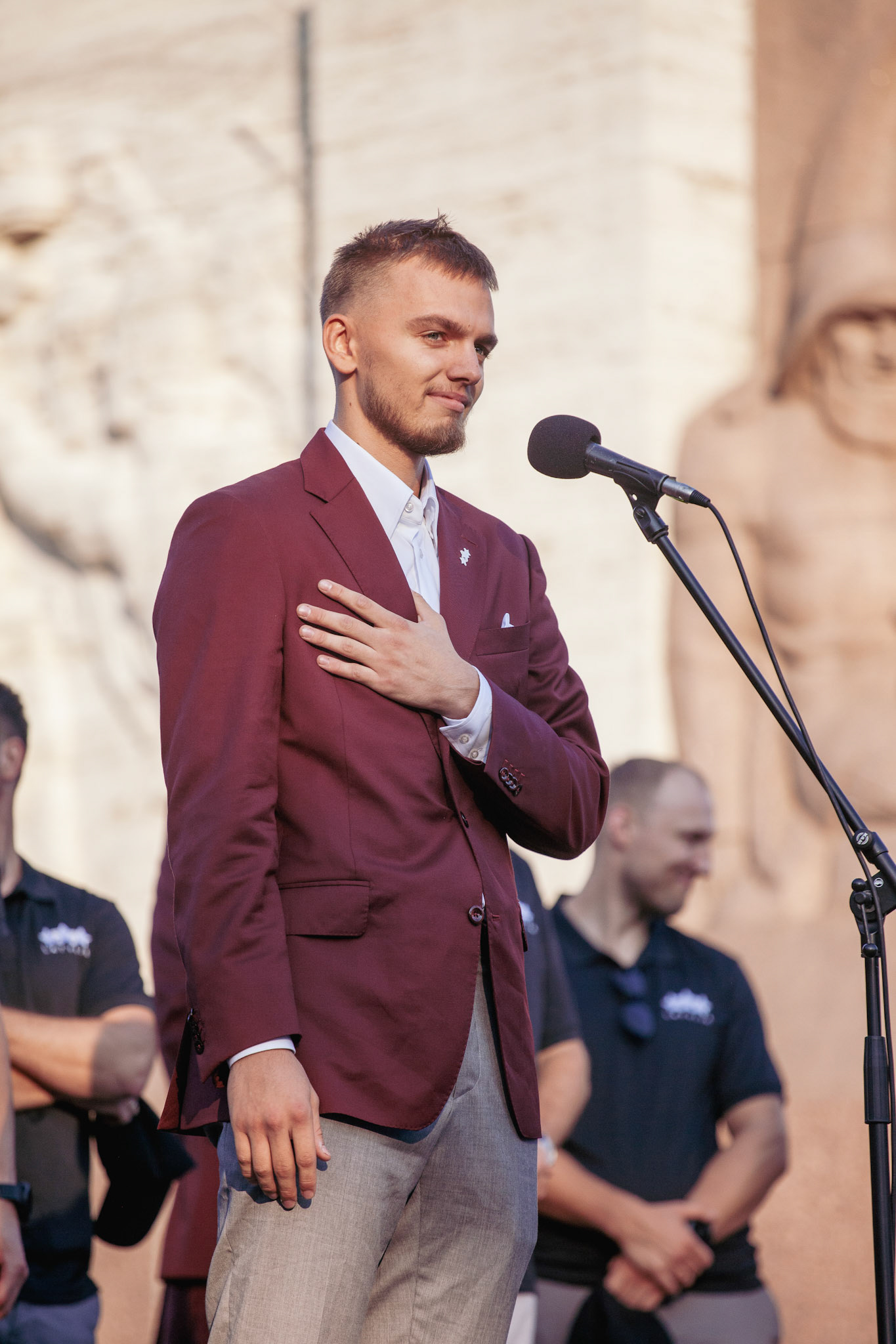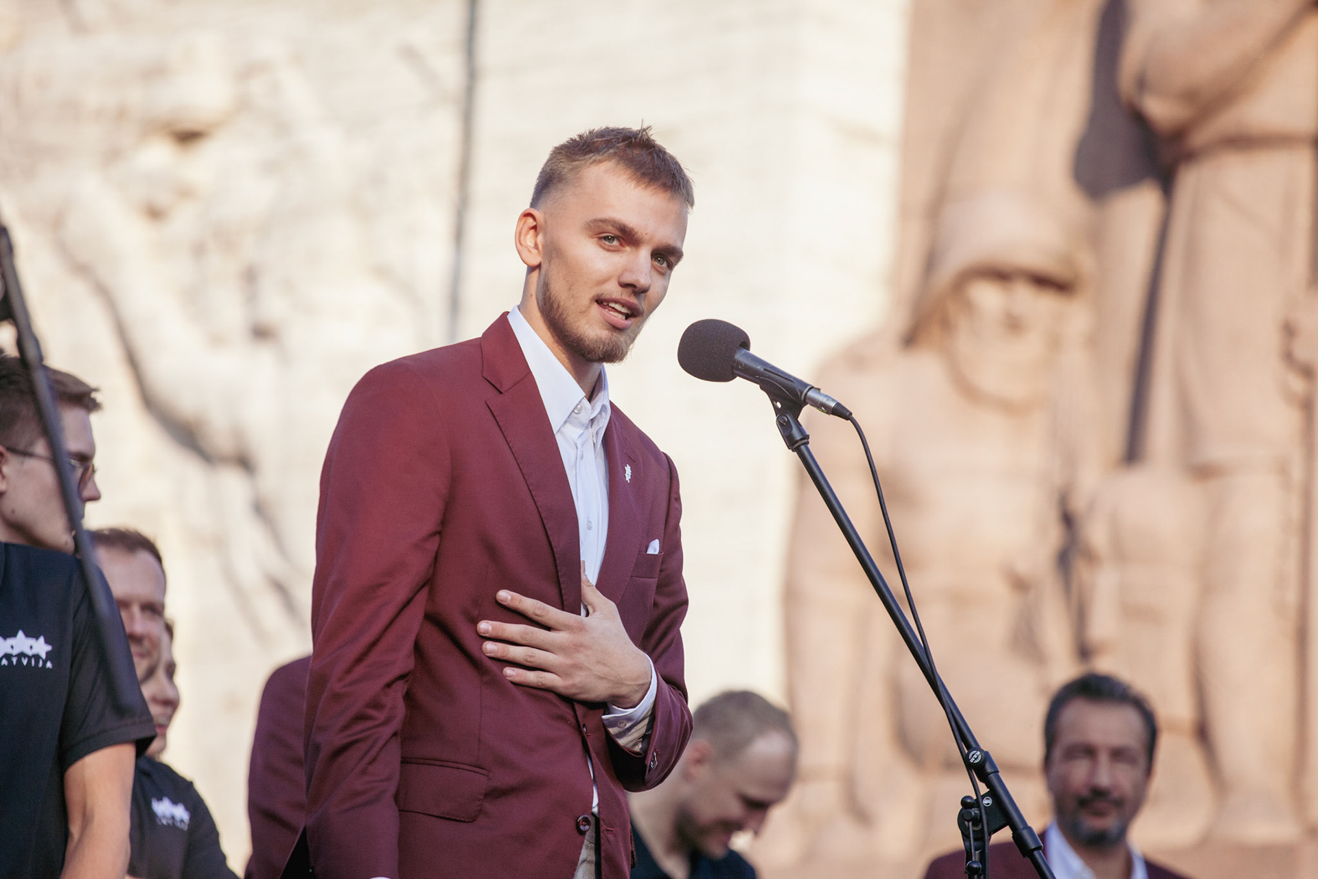 The Latvian national team’s return after the FIBA World Cup — a documentary-style look at the welcome event, filled with emotion, pride, and powerful human moments.