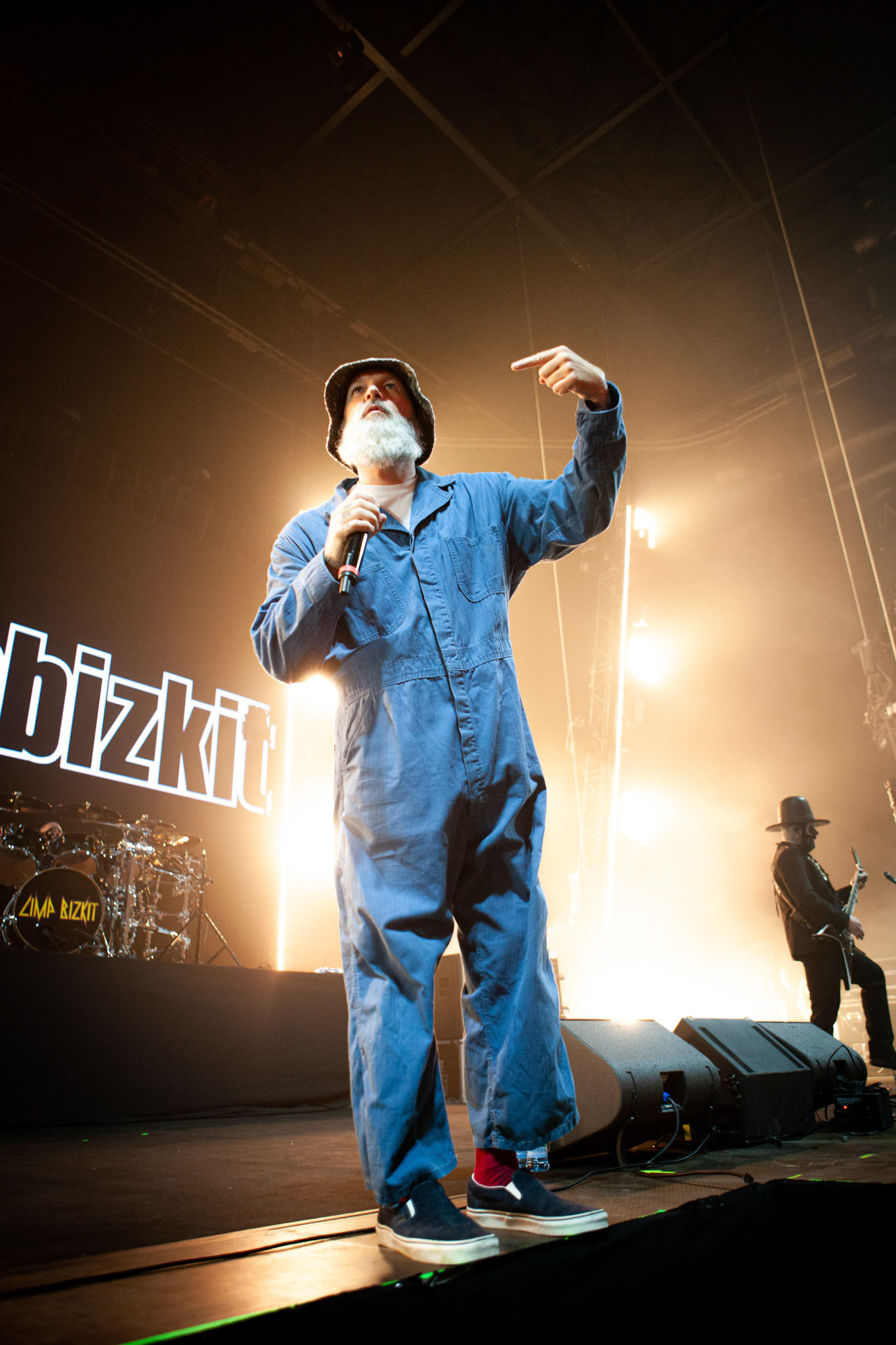 Concert photography from Limp Bizkit performance at Arēna Rīga, capturing their explosive nu-metal energy, chaotic stage presence, and the raw, high-adrenaline atmosphere of the show.