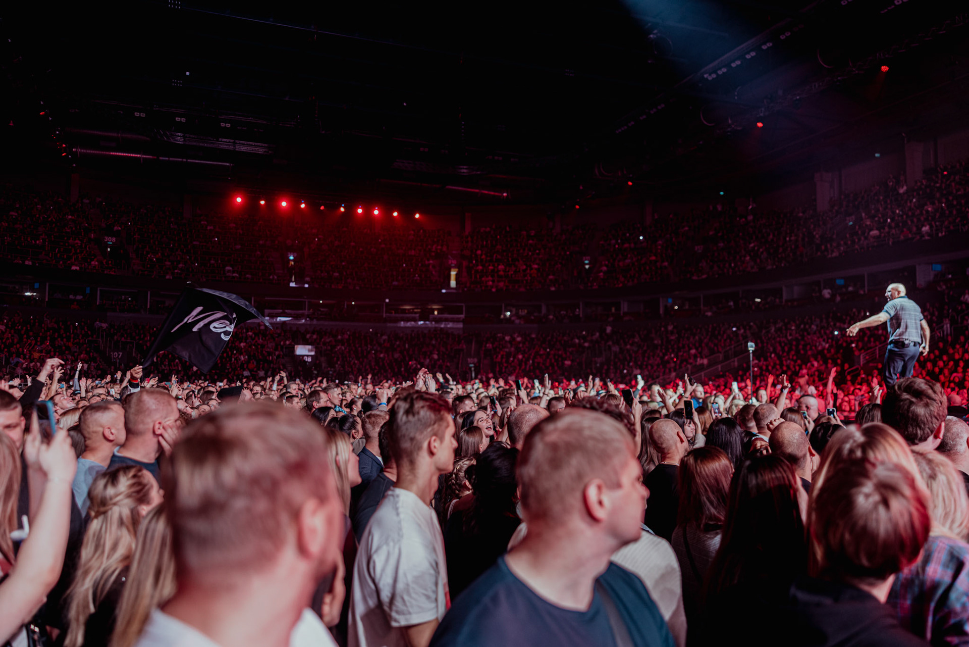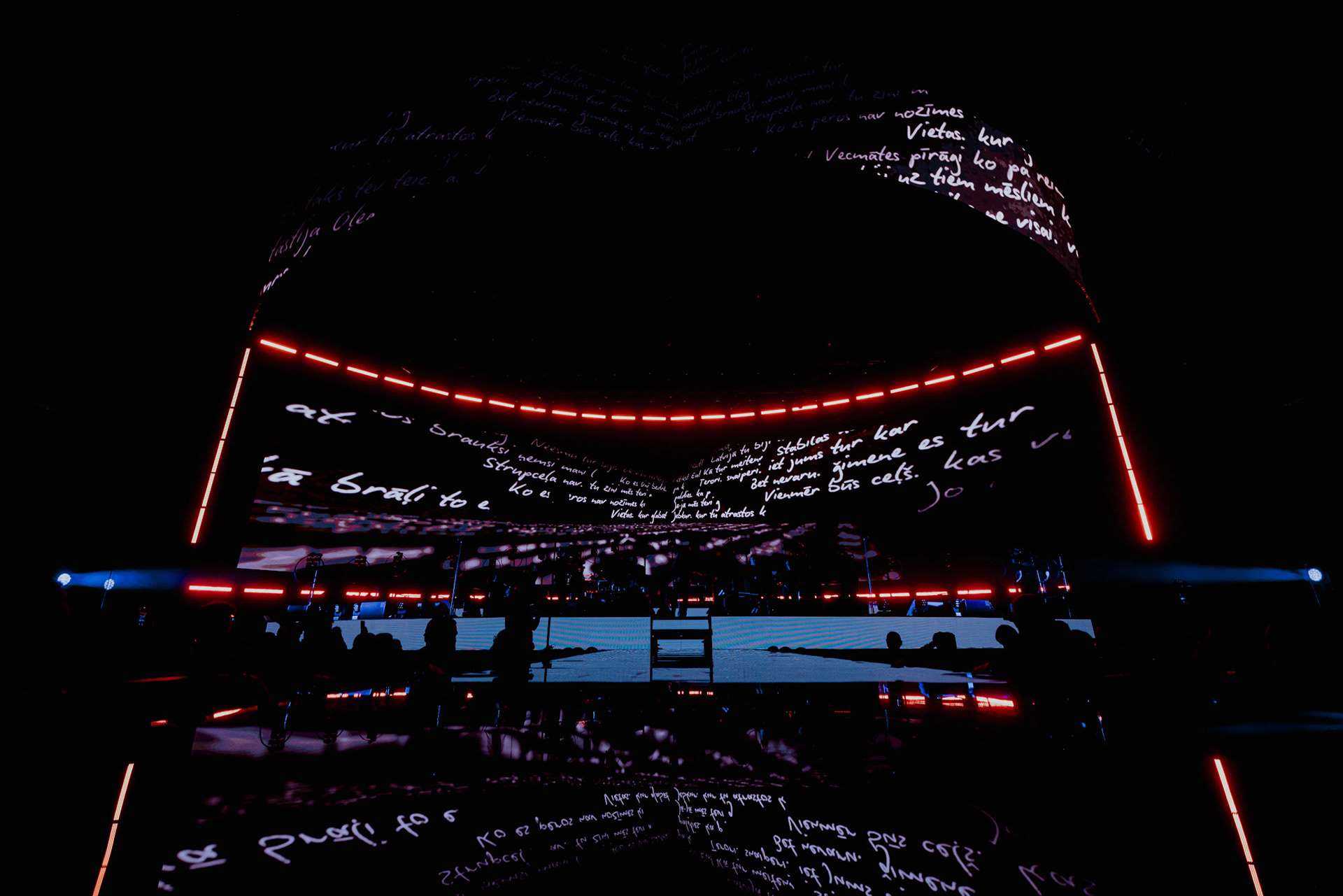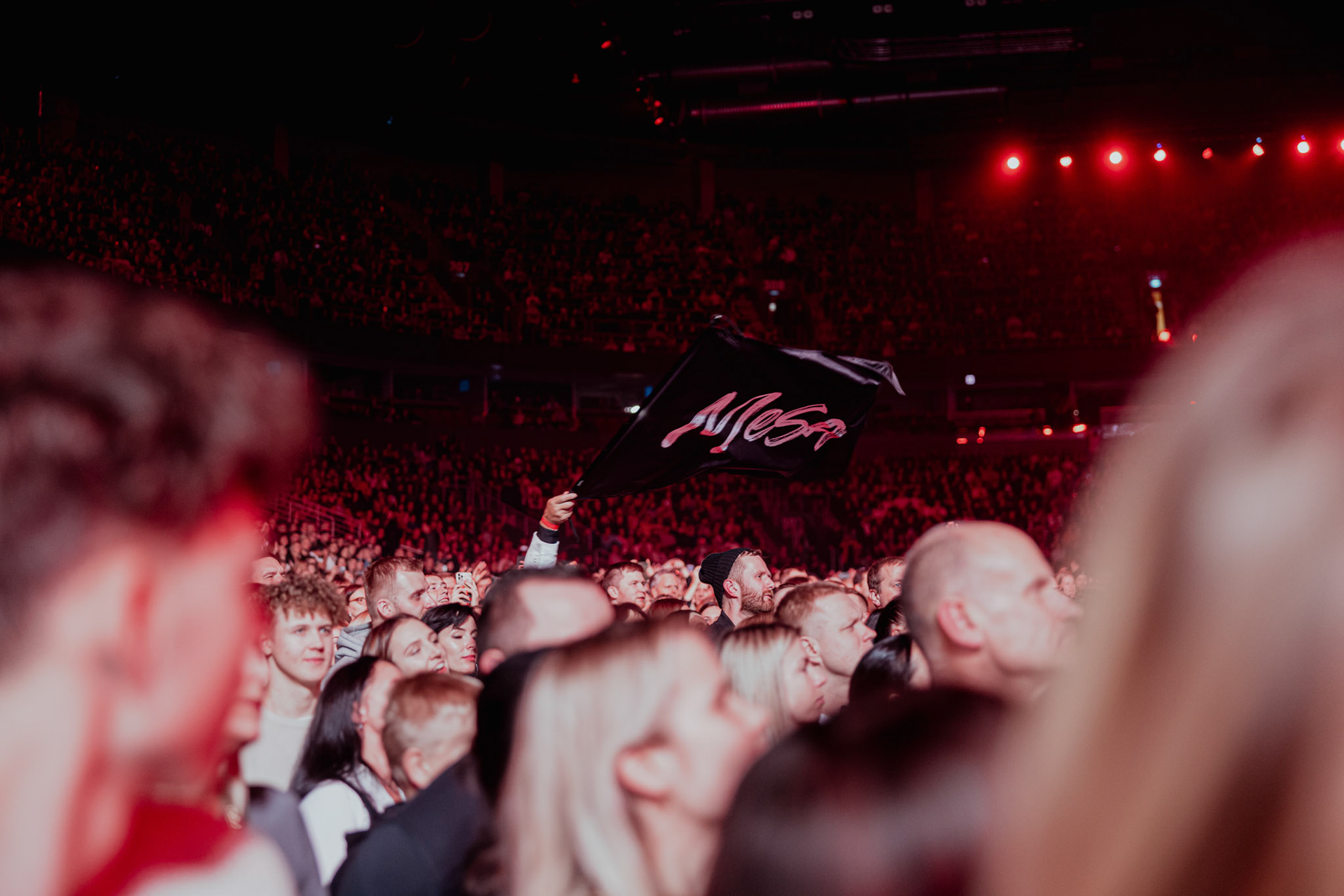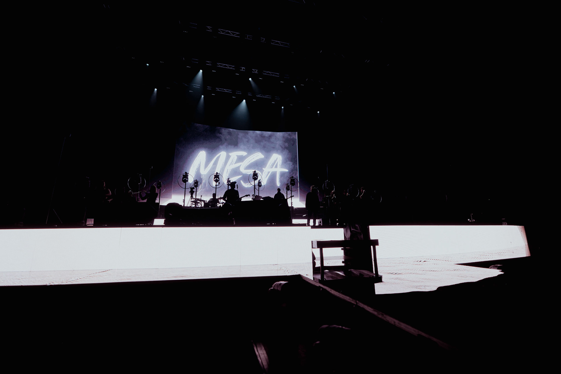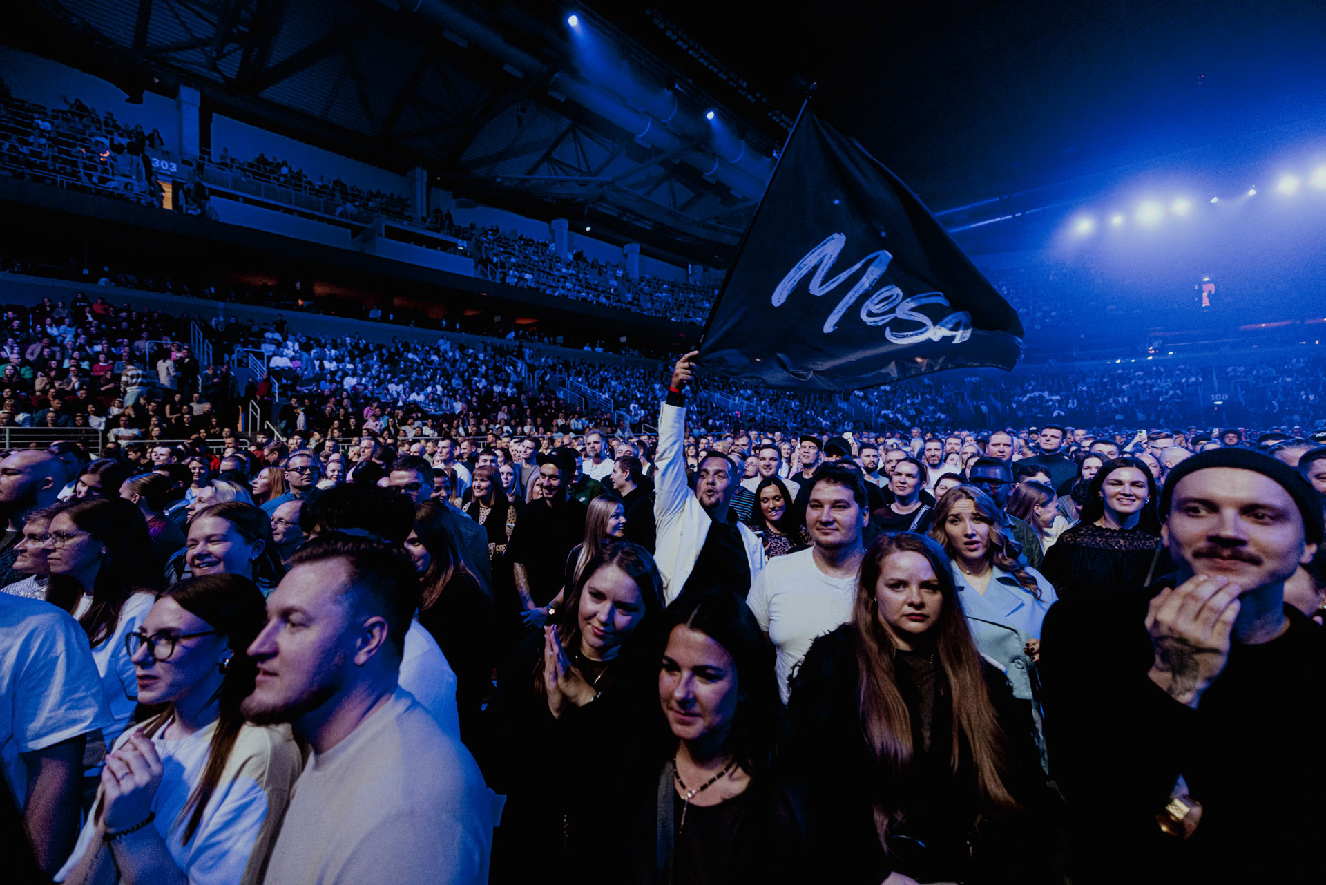 Concert photography from MESA’s grand show “Atbalss” at Xiaomi Arena, capturing powerful lyricism, atmospheric staging, and the emotional connection shared with the audience.