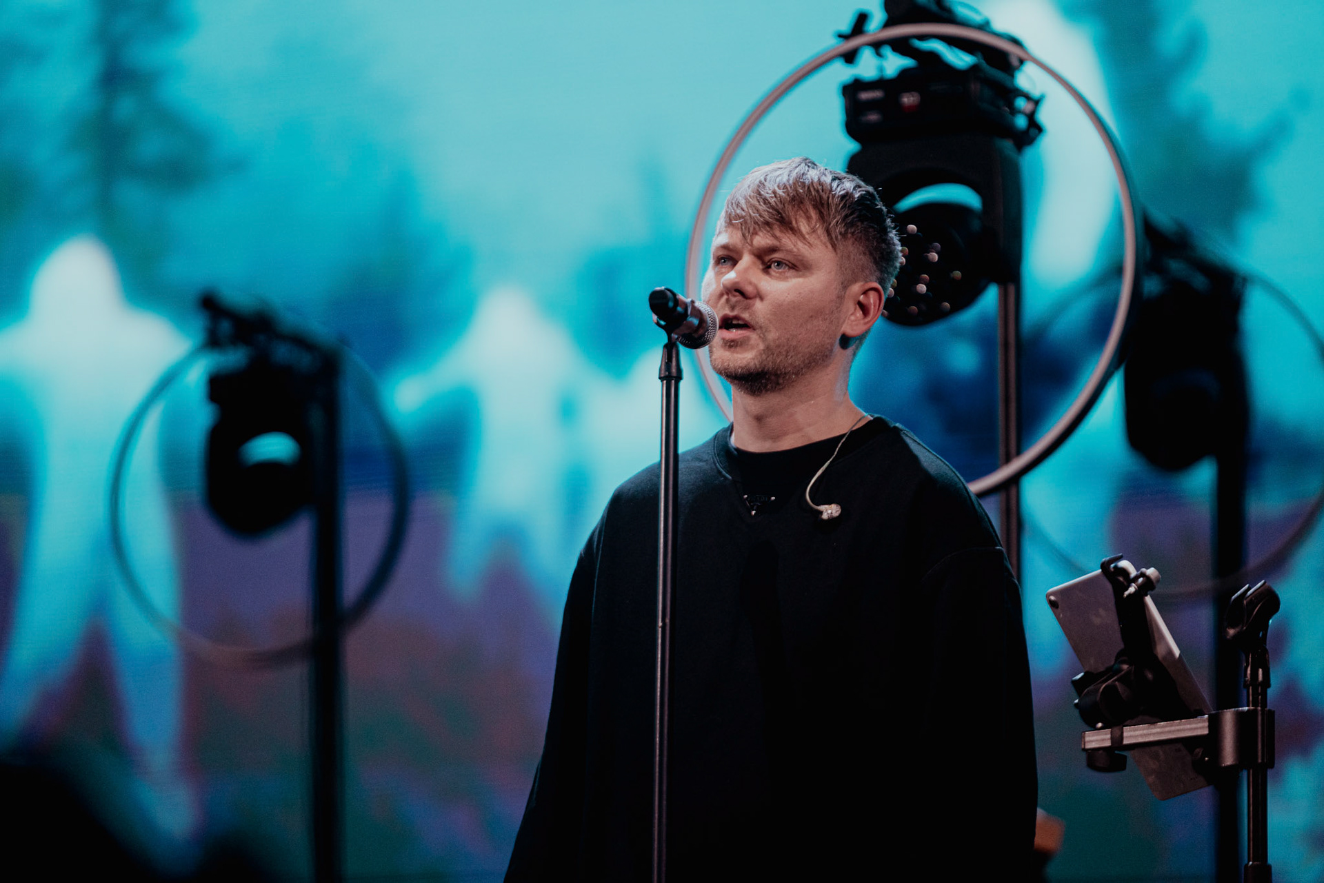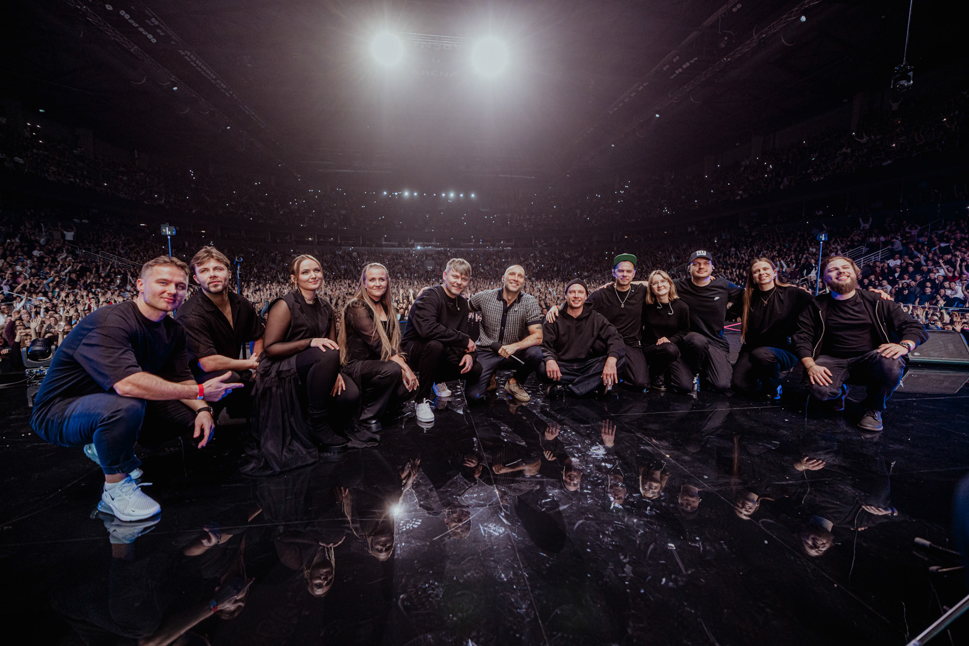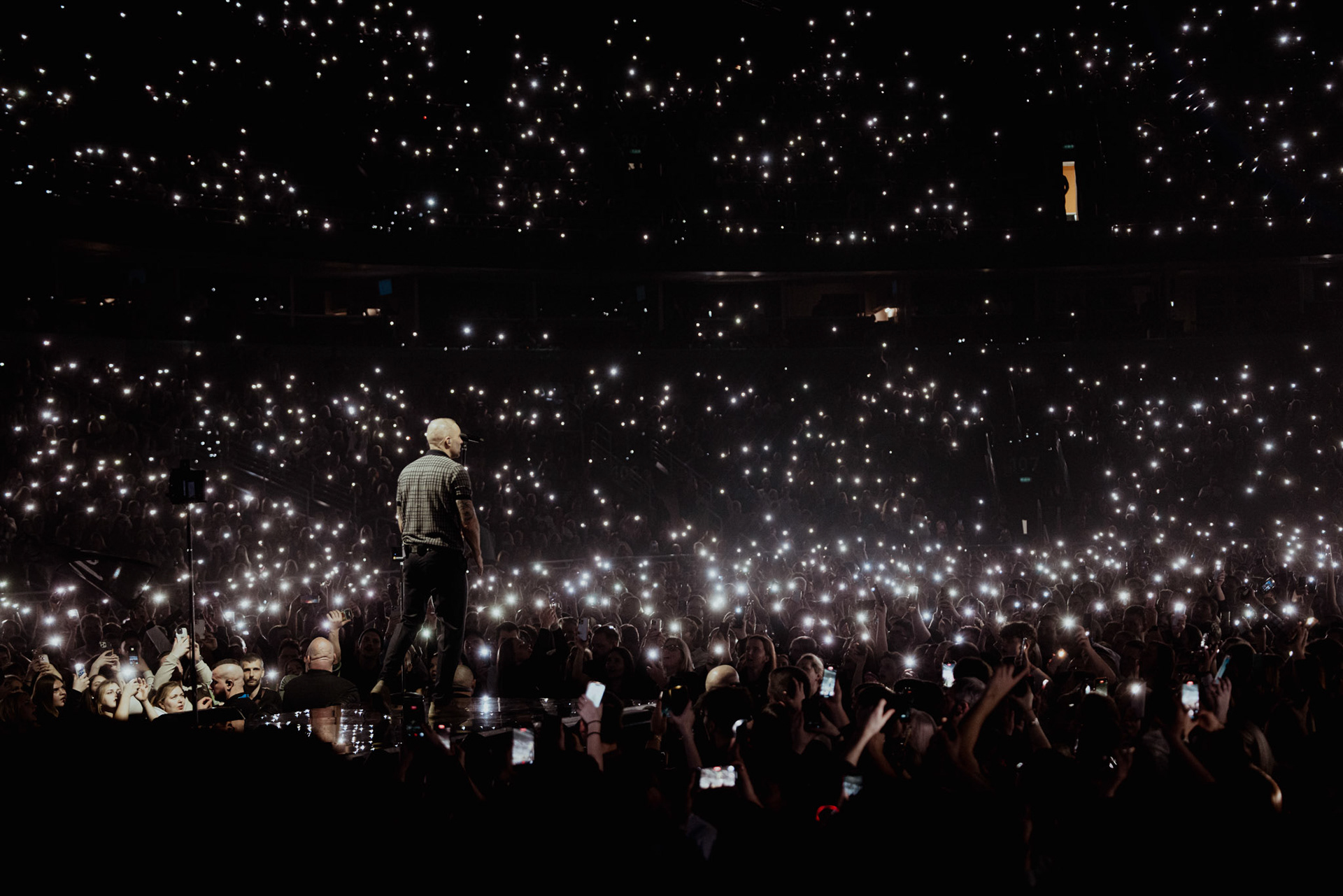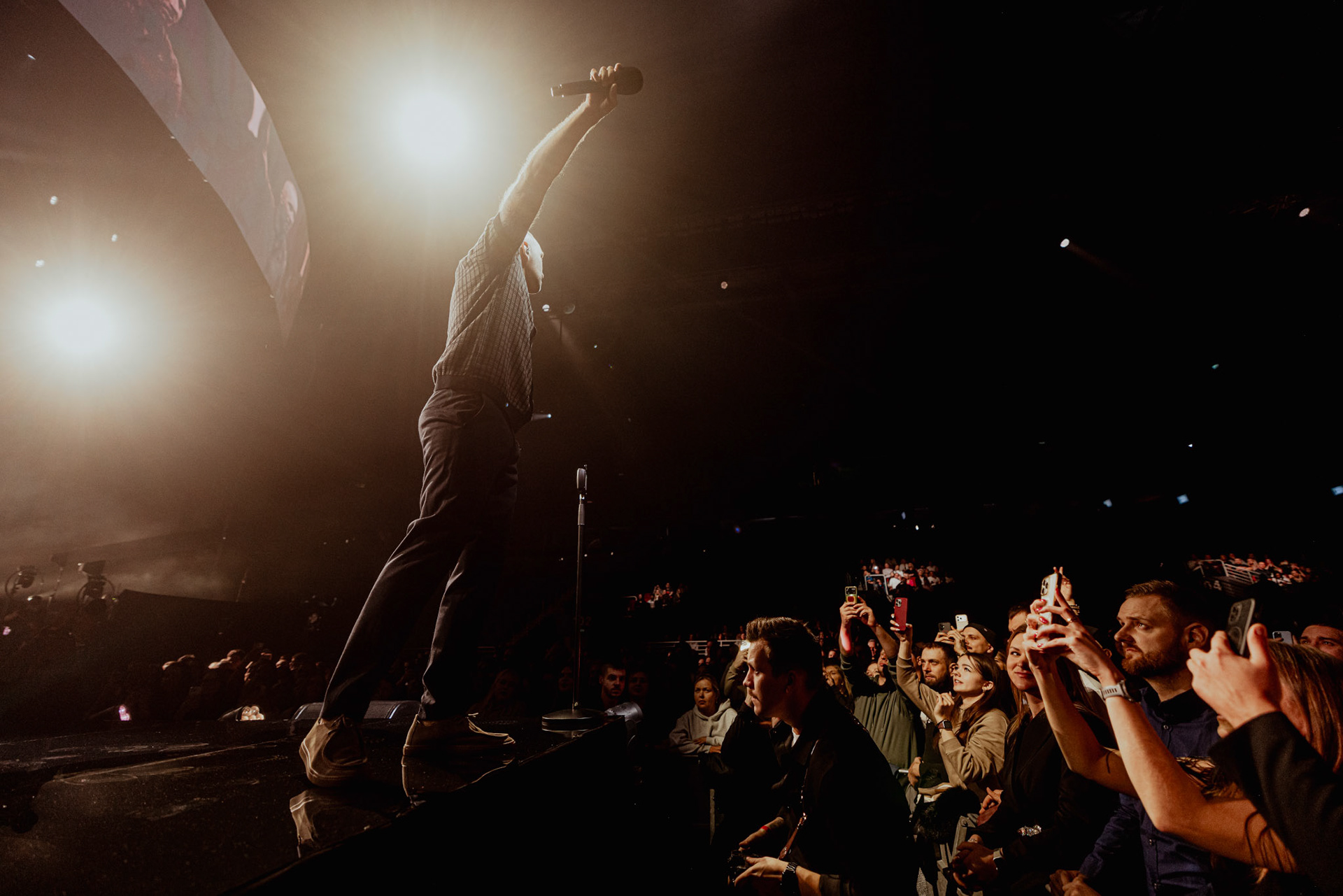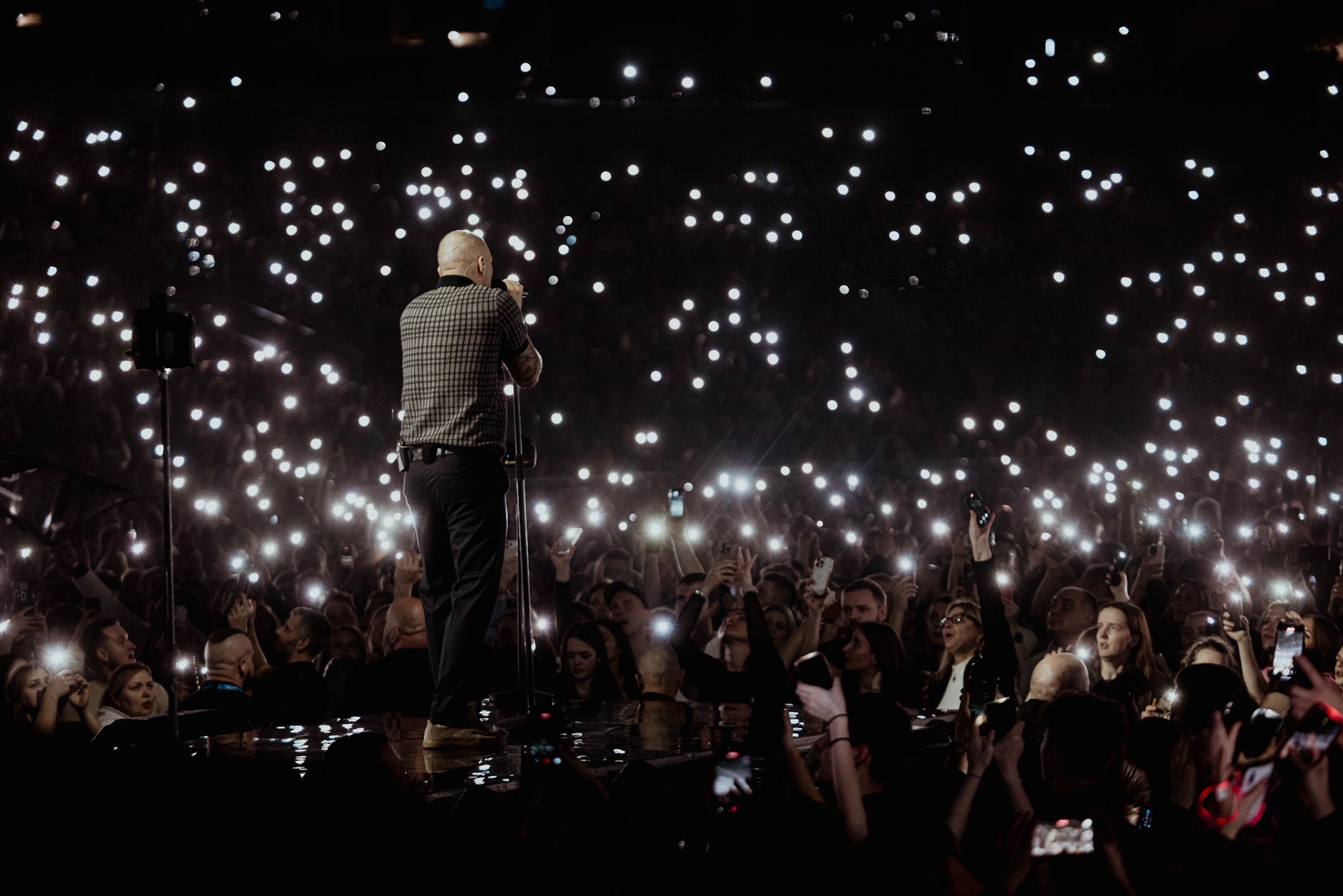 Concert photography from MESA’s grand show “Atbalss” at Xiaomi Arena, capturing powerful lyricism, atmospheric staging, and the emotional connection shared with the audience.