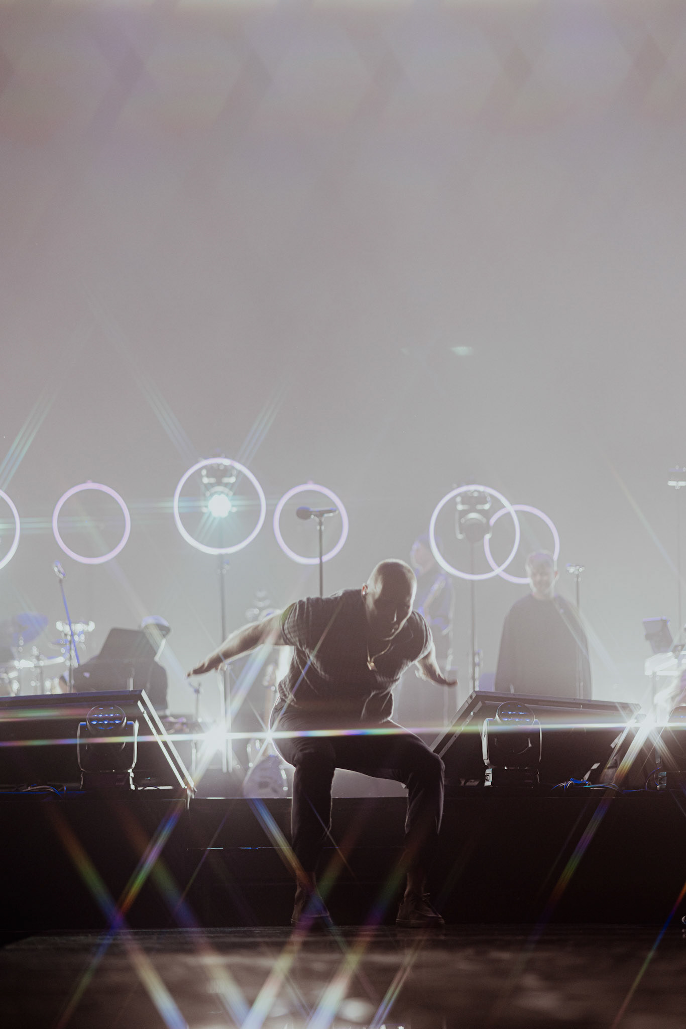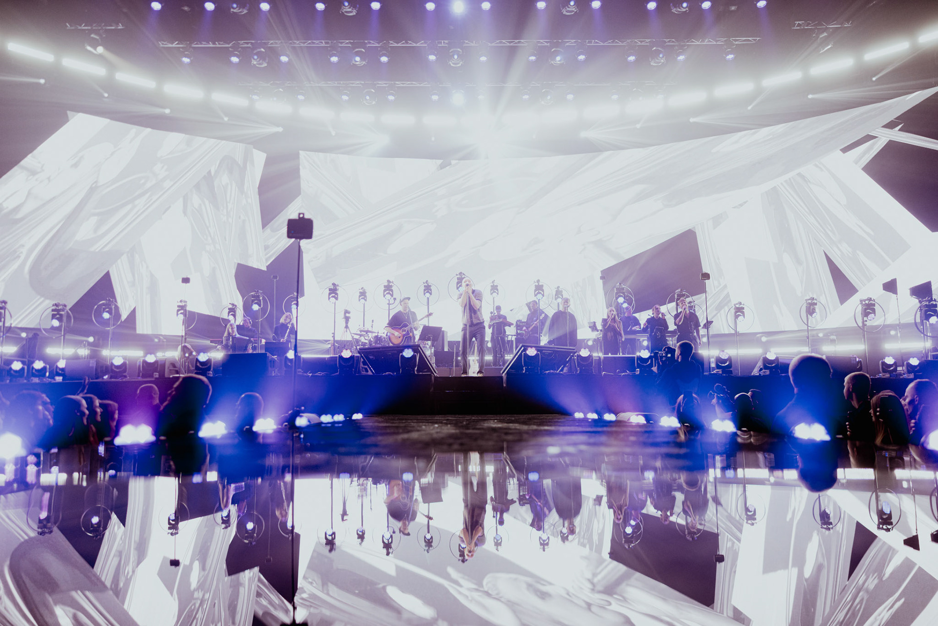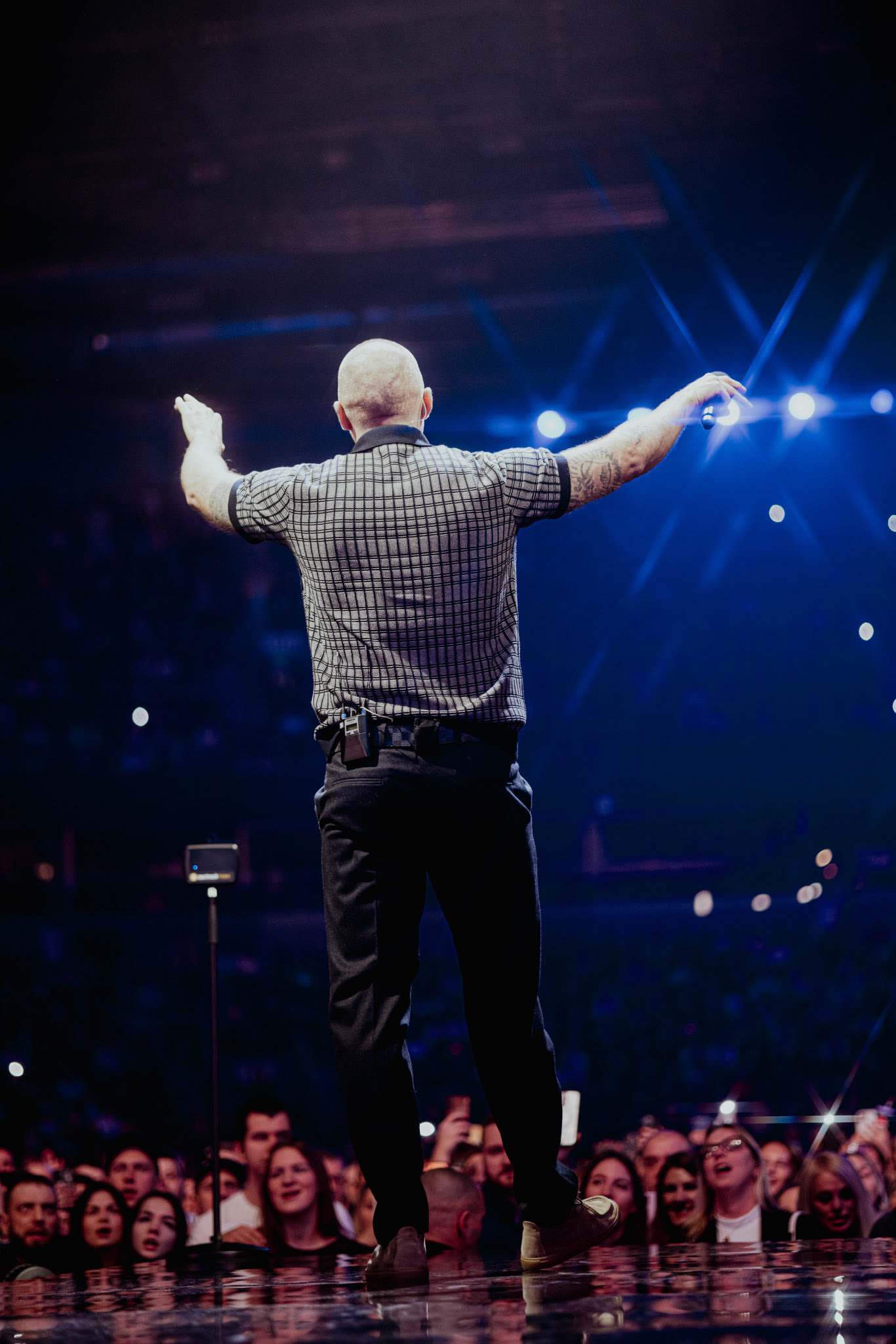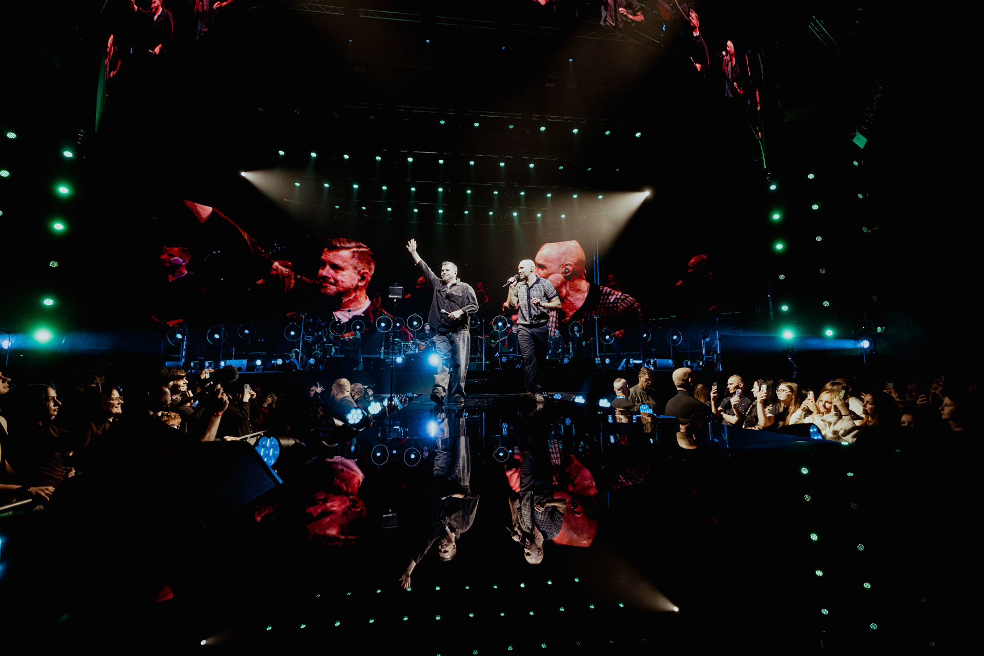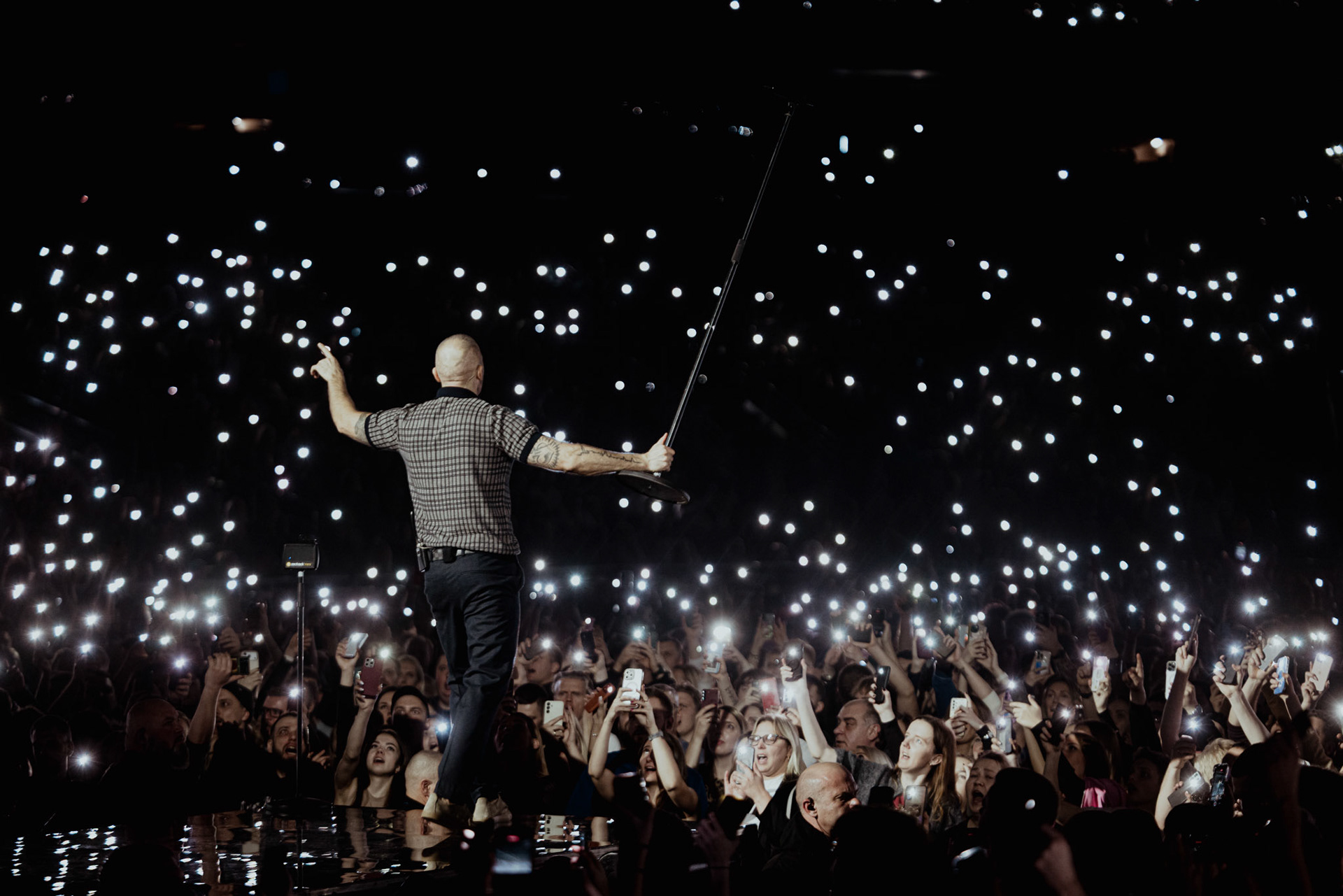 Concert photography from MESA’s grand show “Atbalss” at Xiaomi Arena, capturing powerful lyricism, atmospheric staging, and the emotional connection shared with the audience.