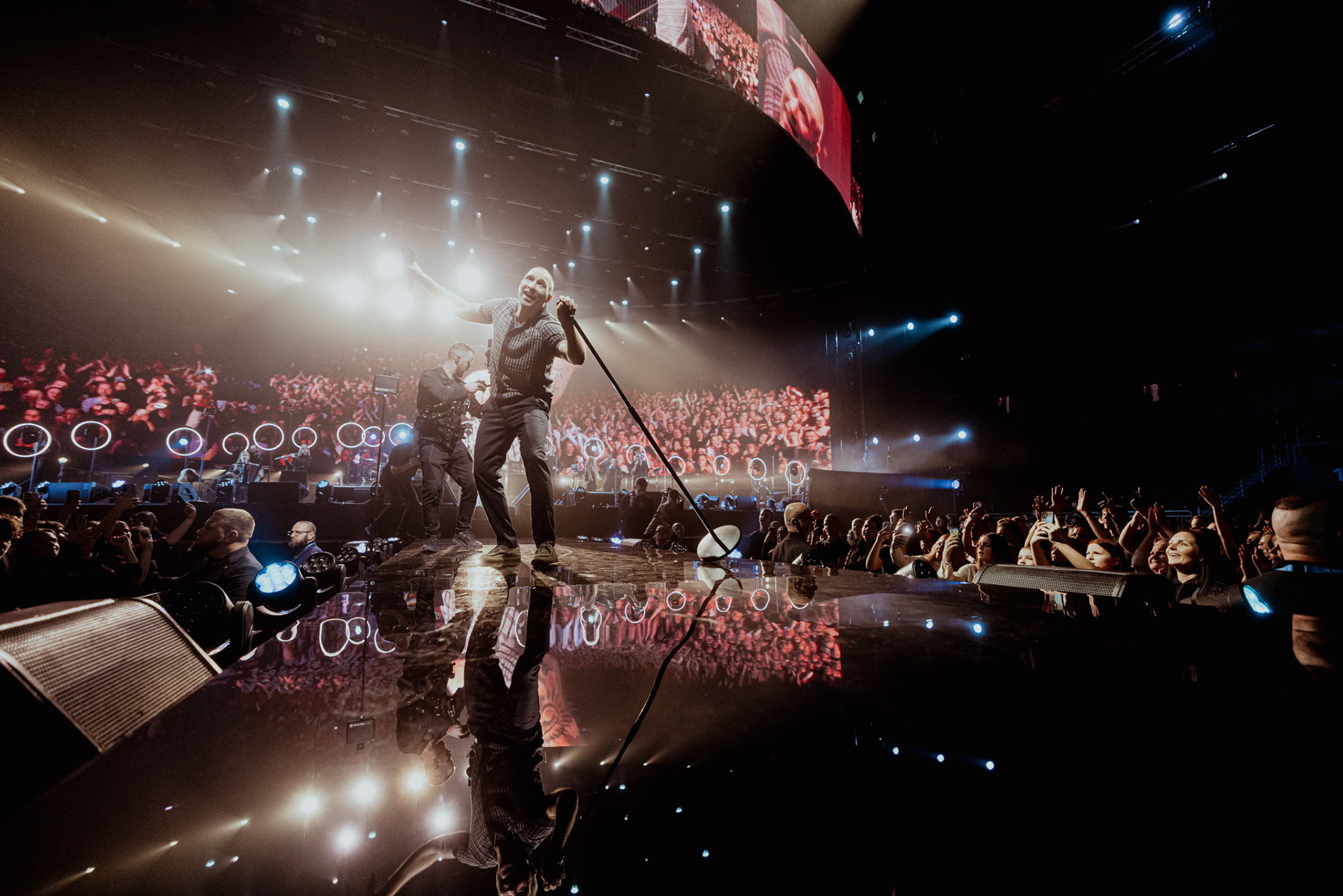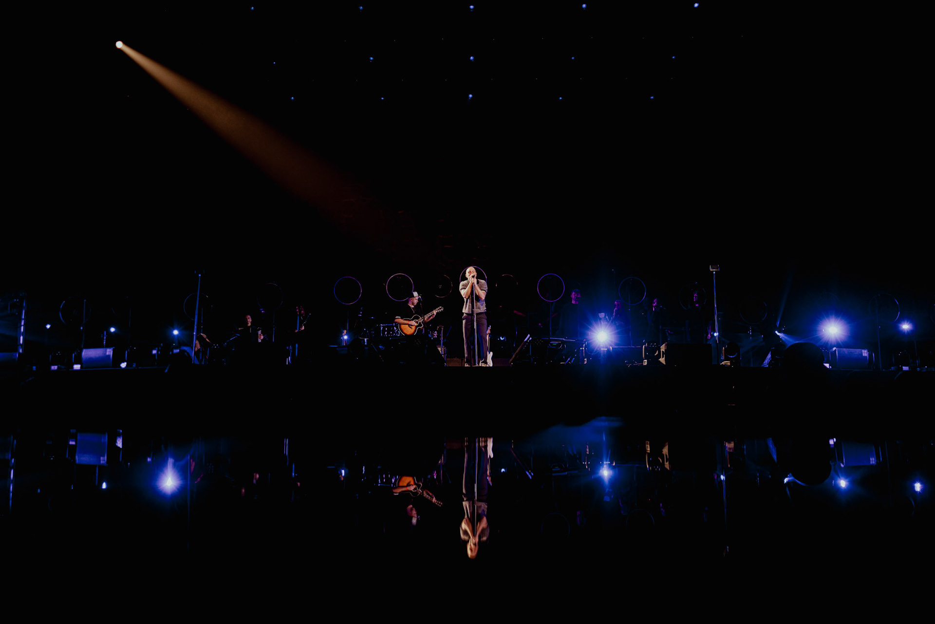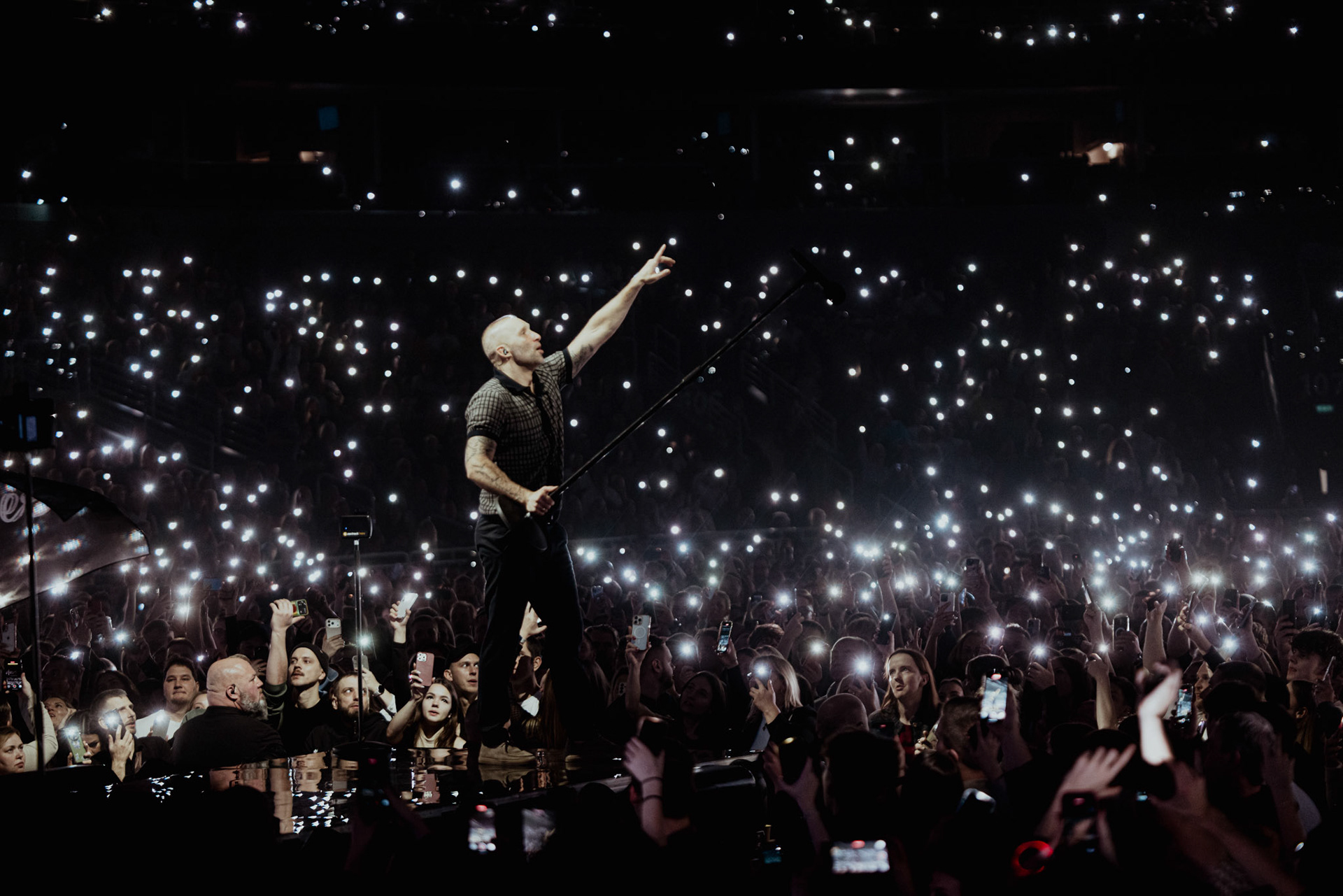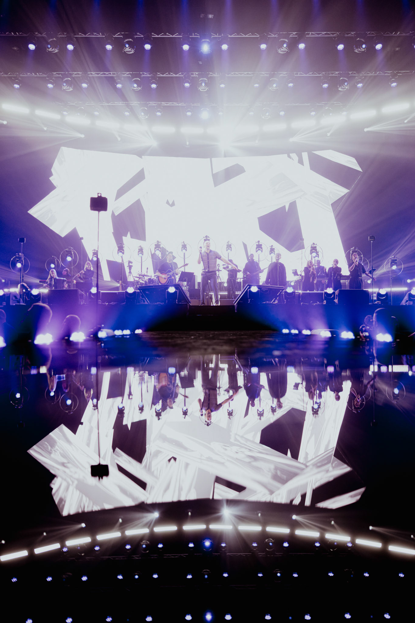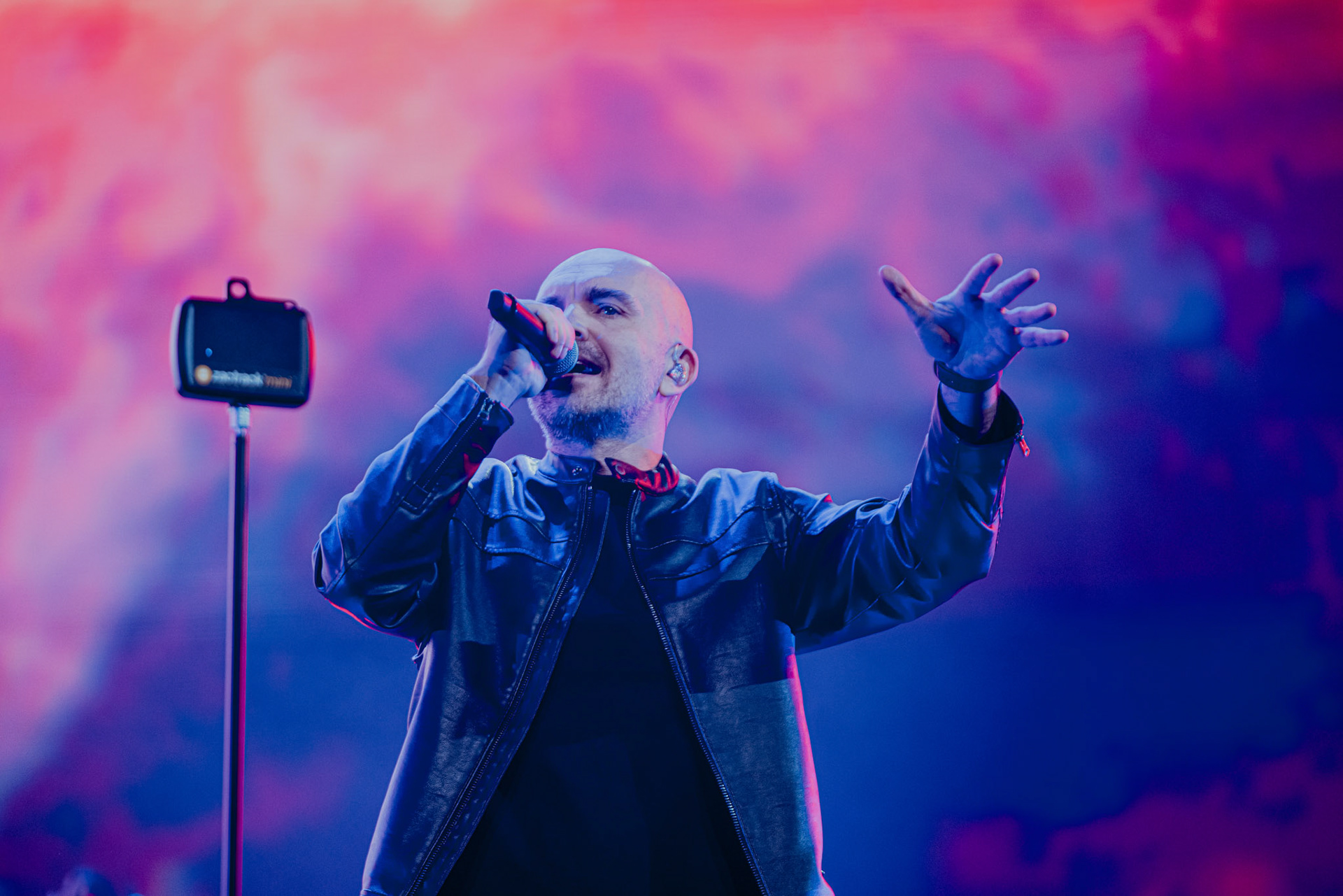 Concert photography from MESA’s grand show “Atbalss” at Xiaomi Arena, capturing powerful lyricism, atmospheric staging, and the emotional connection shared with the audience.