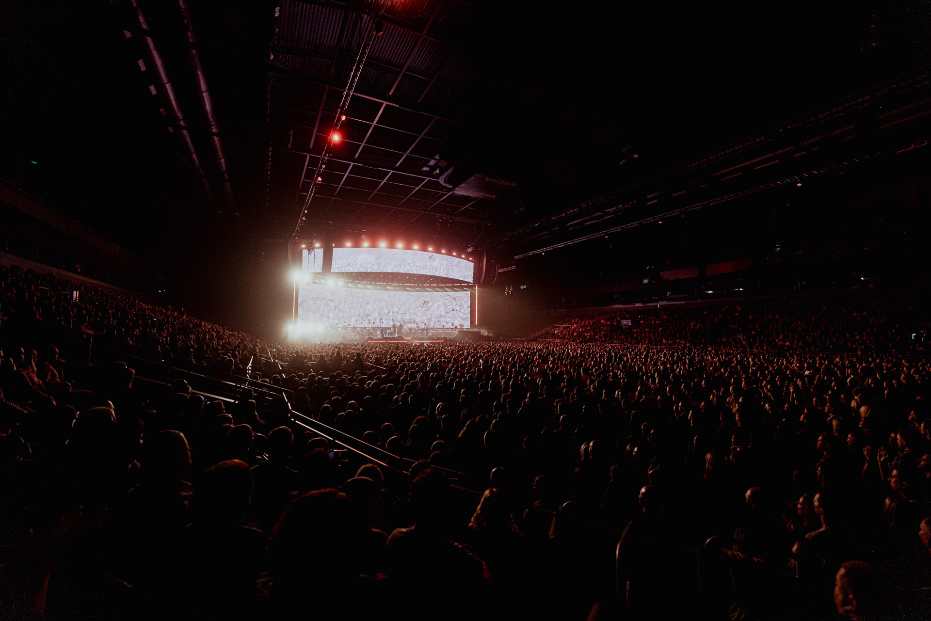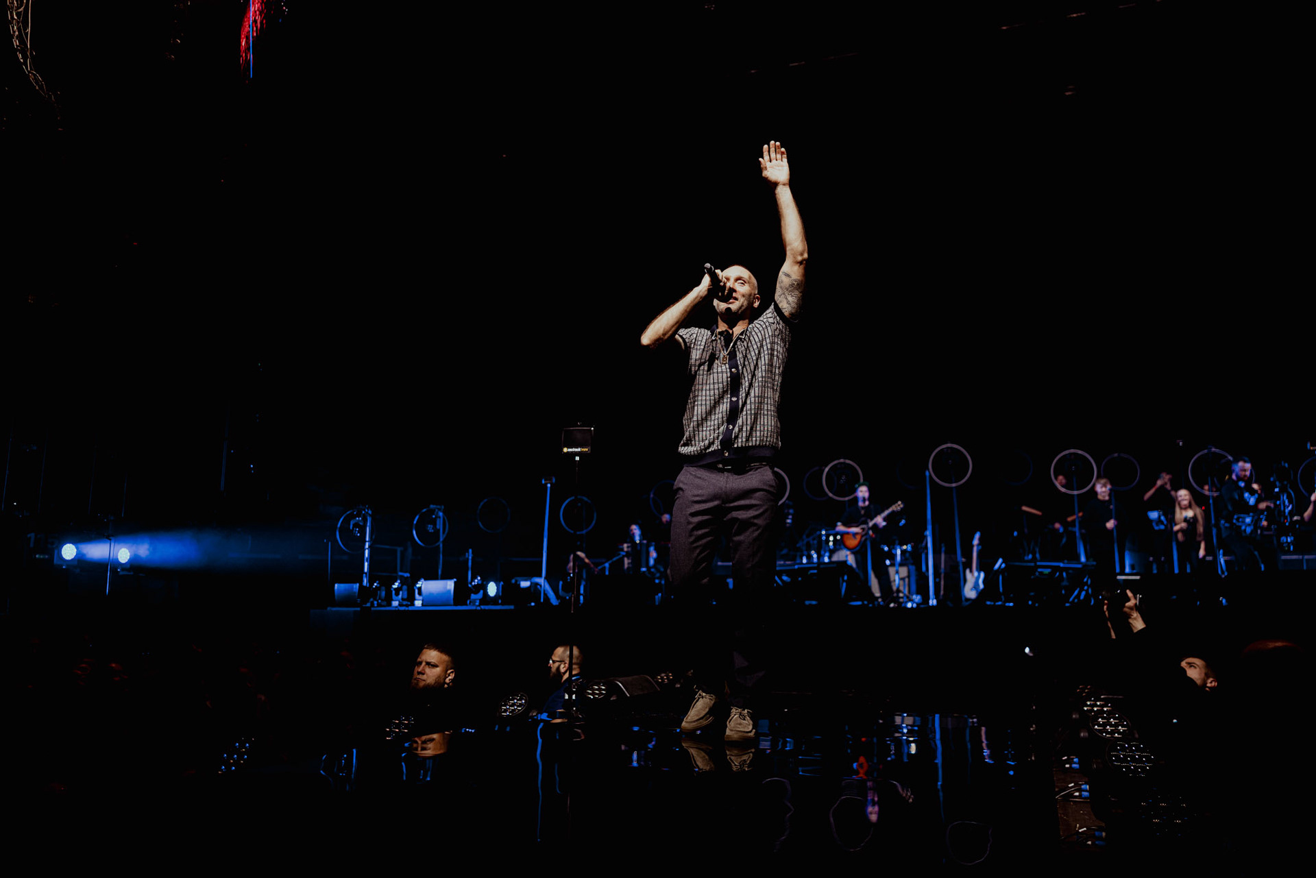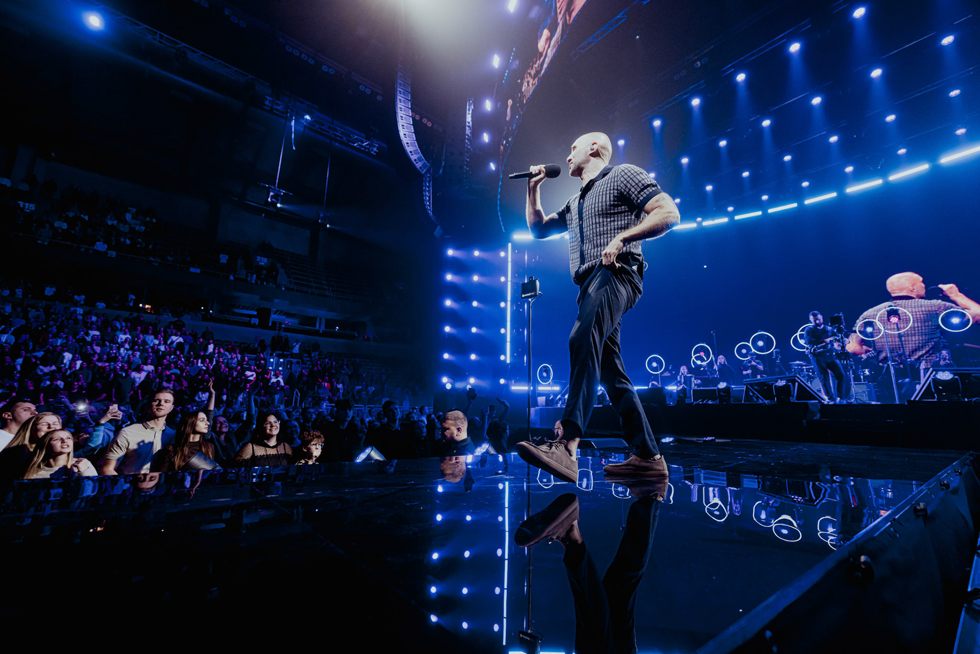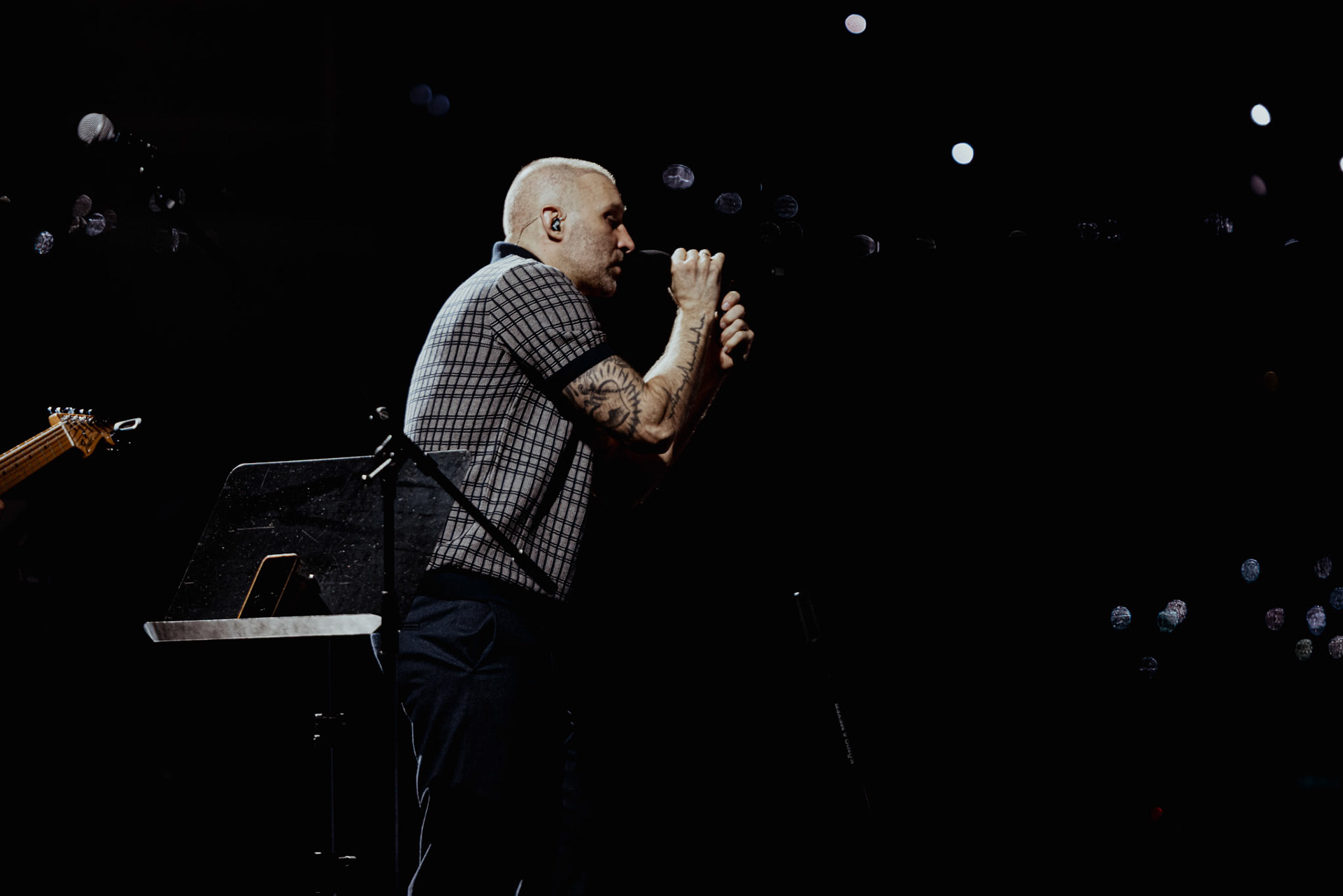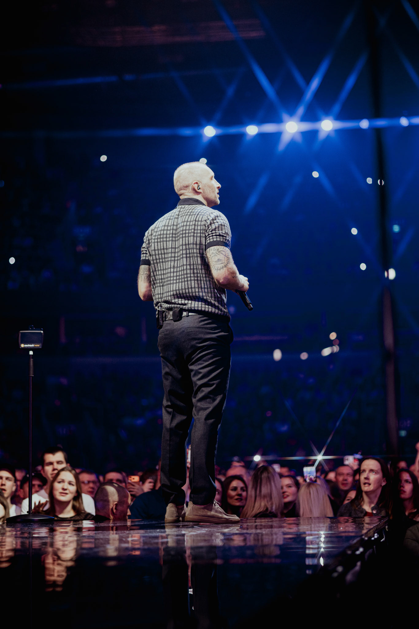 Concert photography from MESA’s grand show “Atbalss” at Xiaomi Arena, capturing powerful lyricism, atmospheric staging, and the emotional connection shared with the audience.