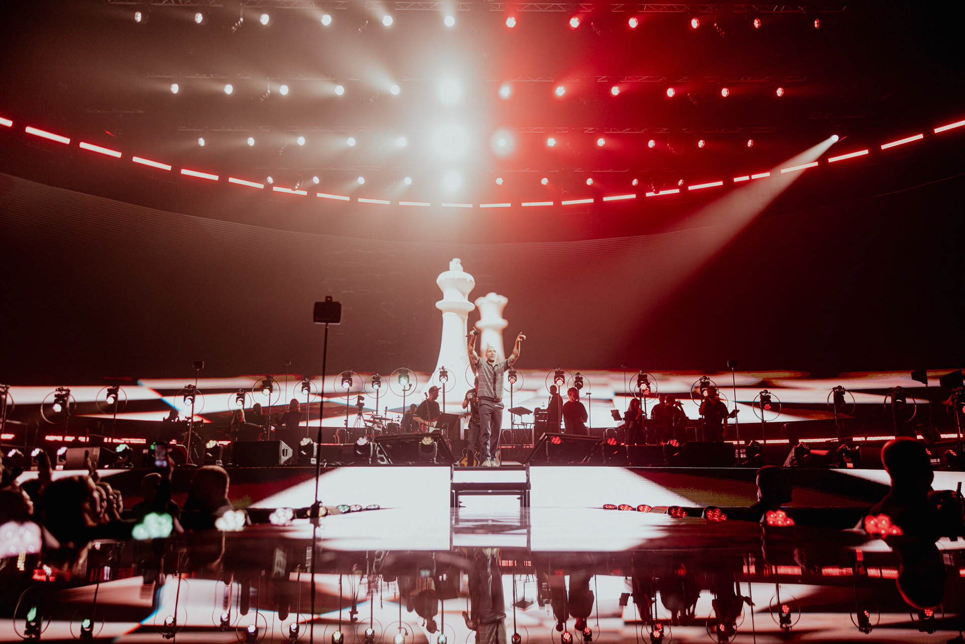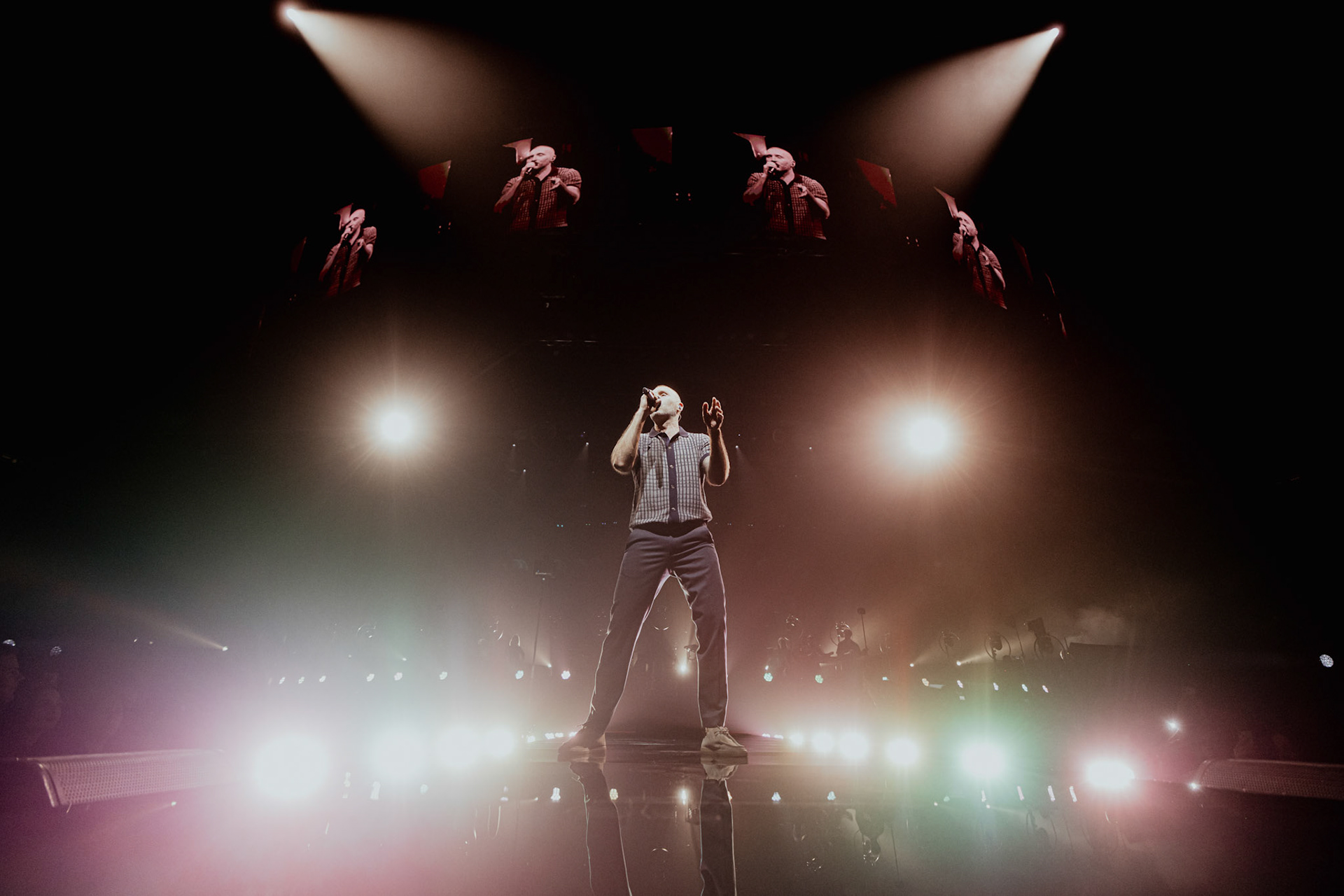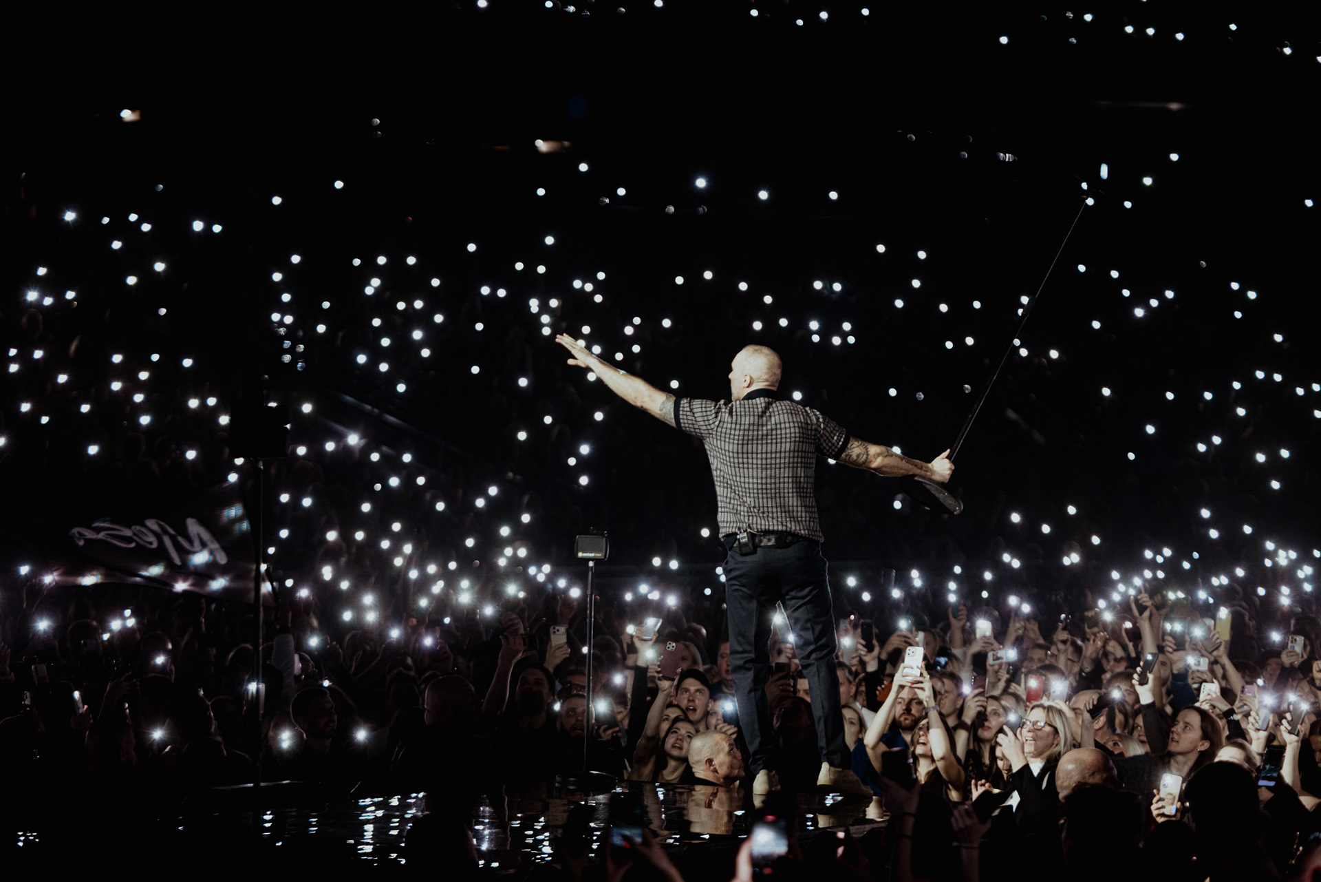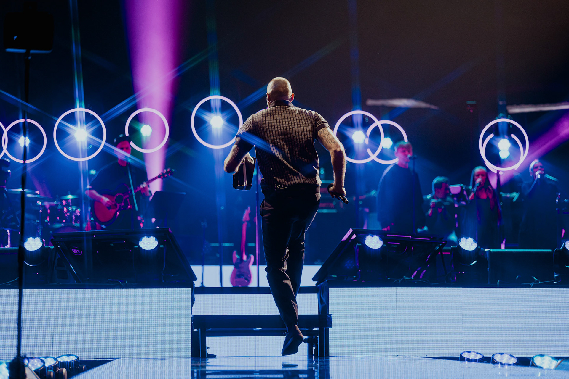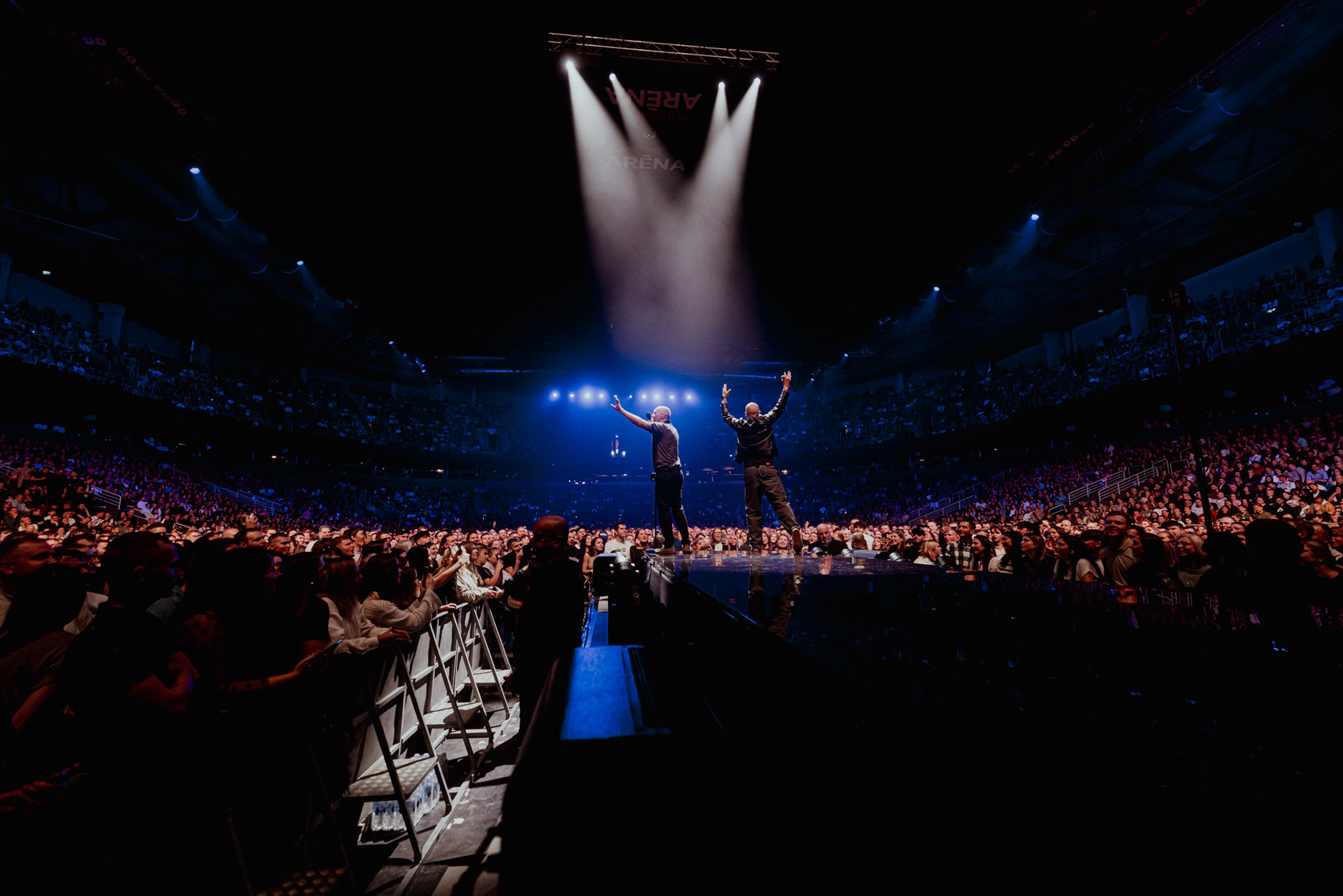 Concert photography from MESA’s grand show “Atbalss” at Xiaomi Arena, capturing powerful lyricism, atmospheric staging, and the emotional connection shared with the audience.