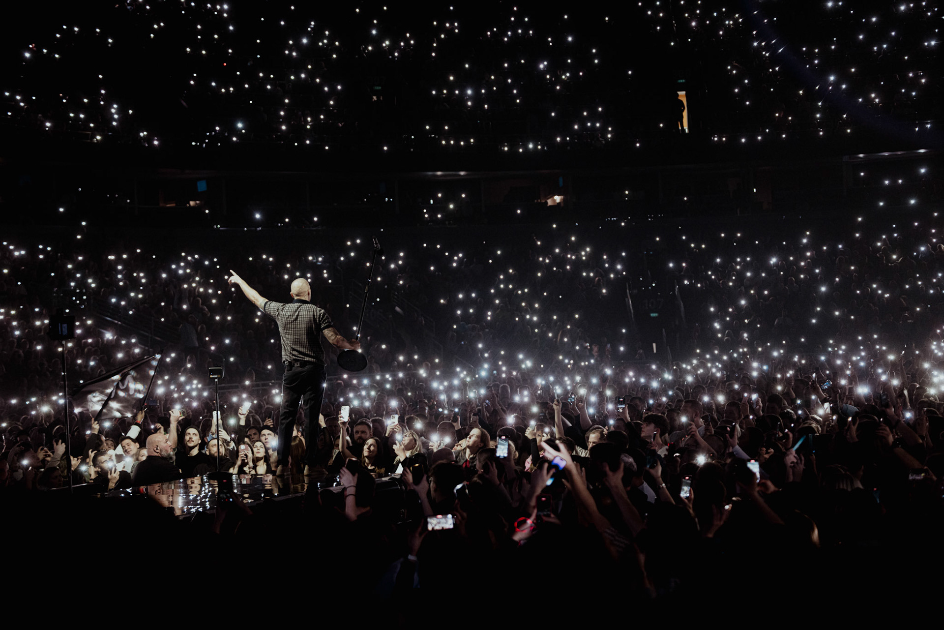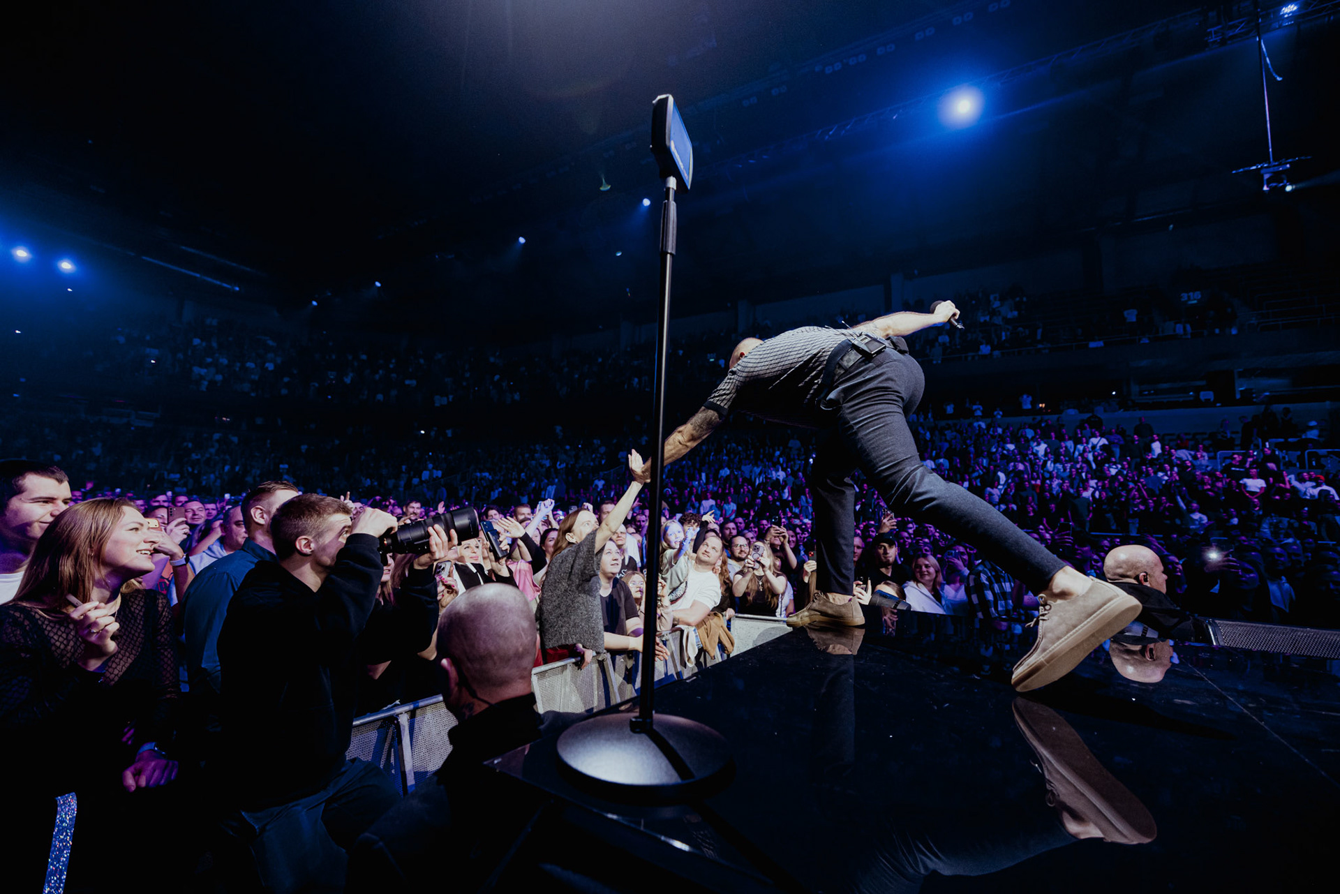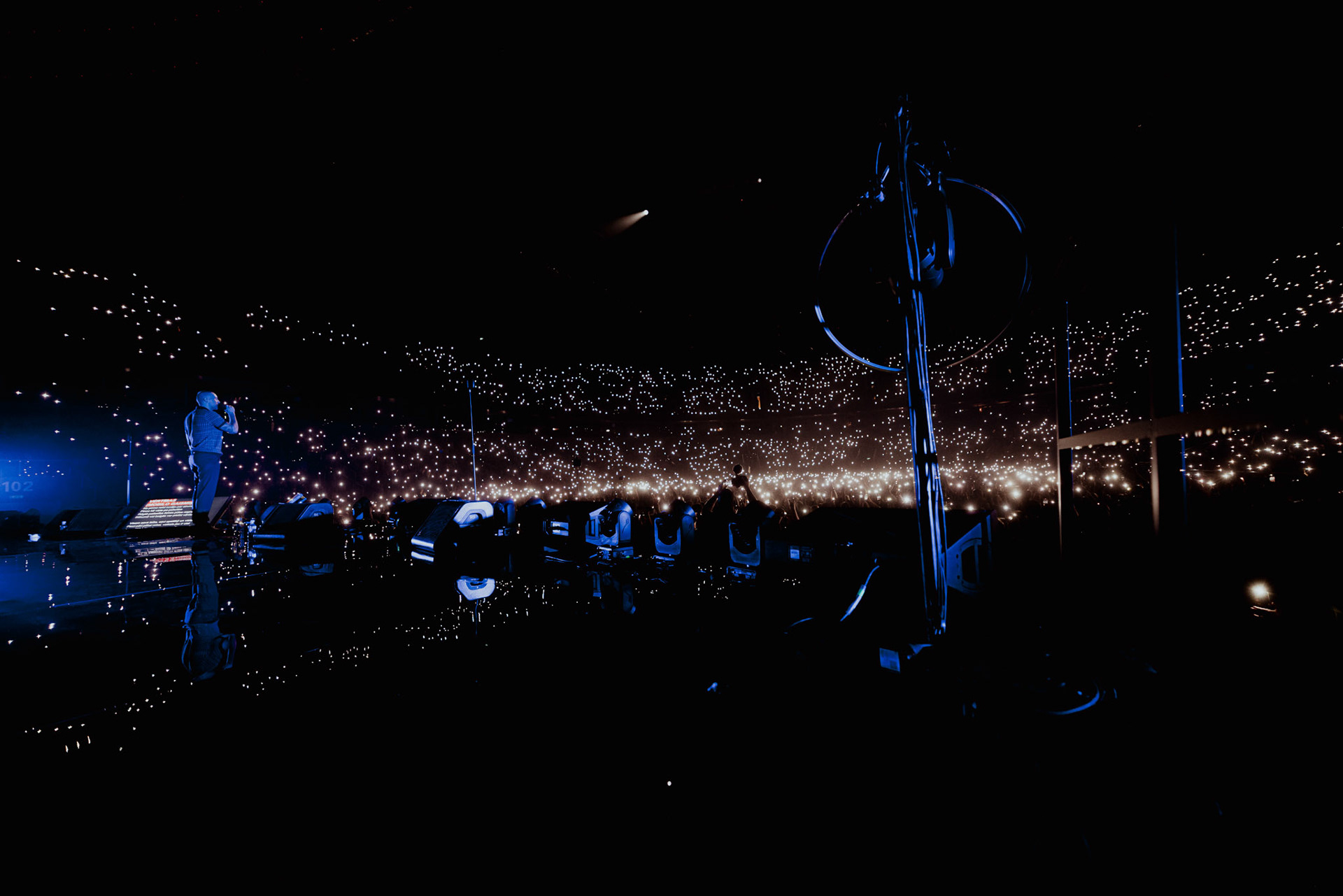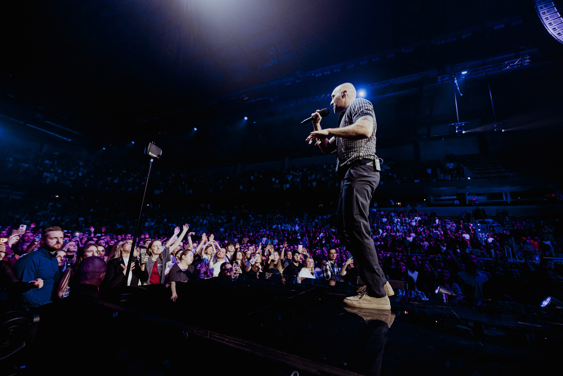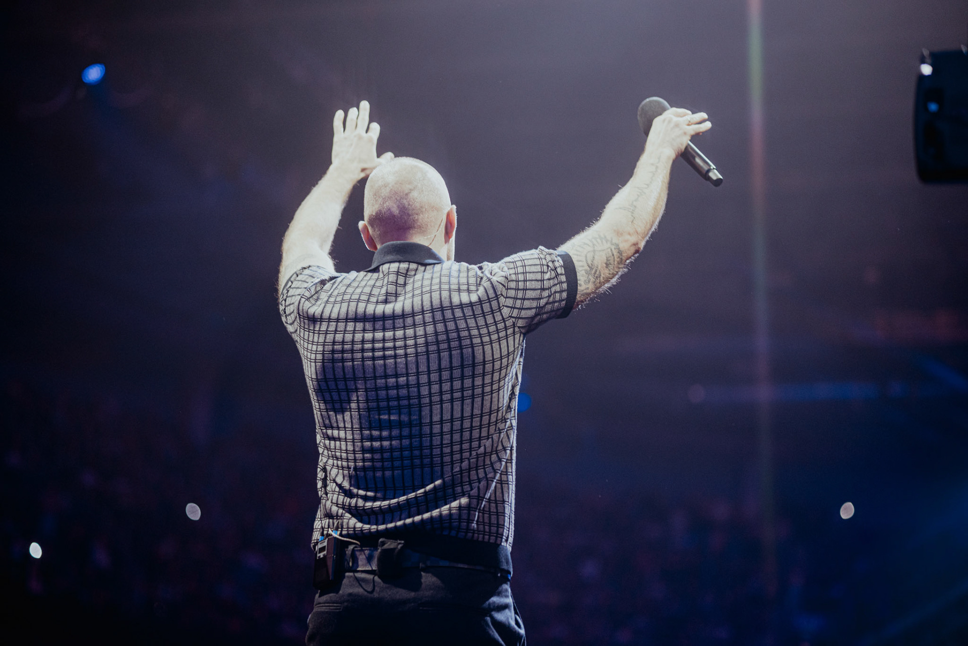 Concert photography from MESA’s grand show “Atbalss” at Xiaomi Arena, capturing powerful lyricism, atmospheric staging, and the emotional connection shared with the audience.