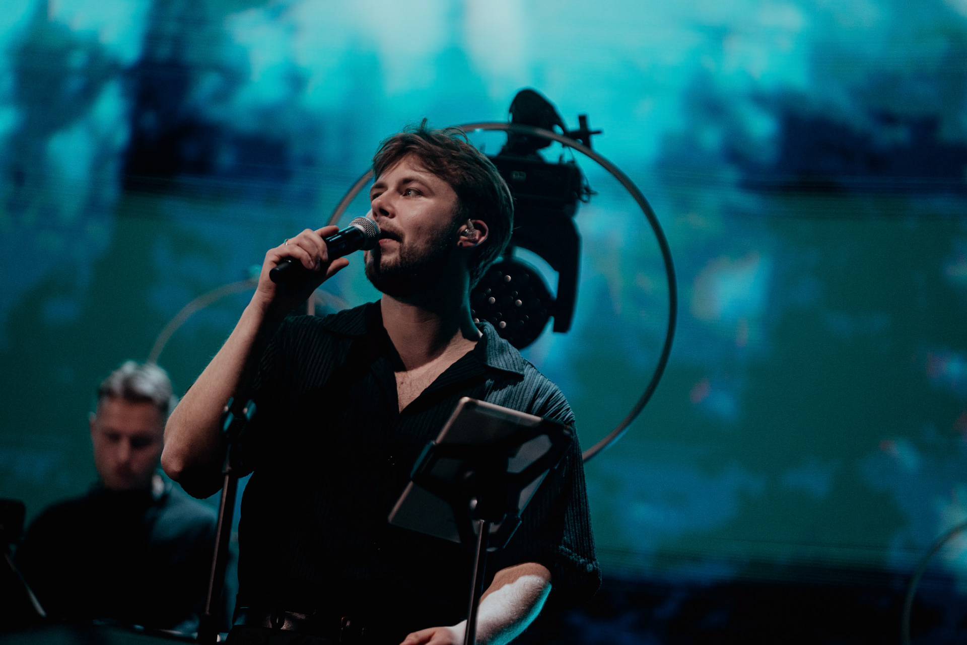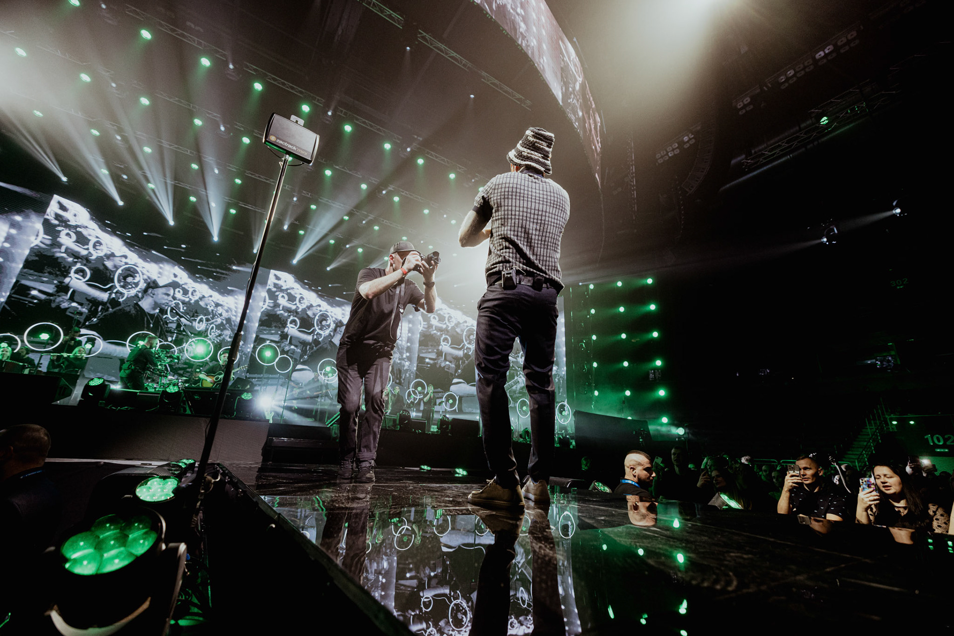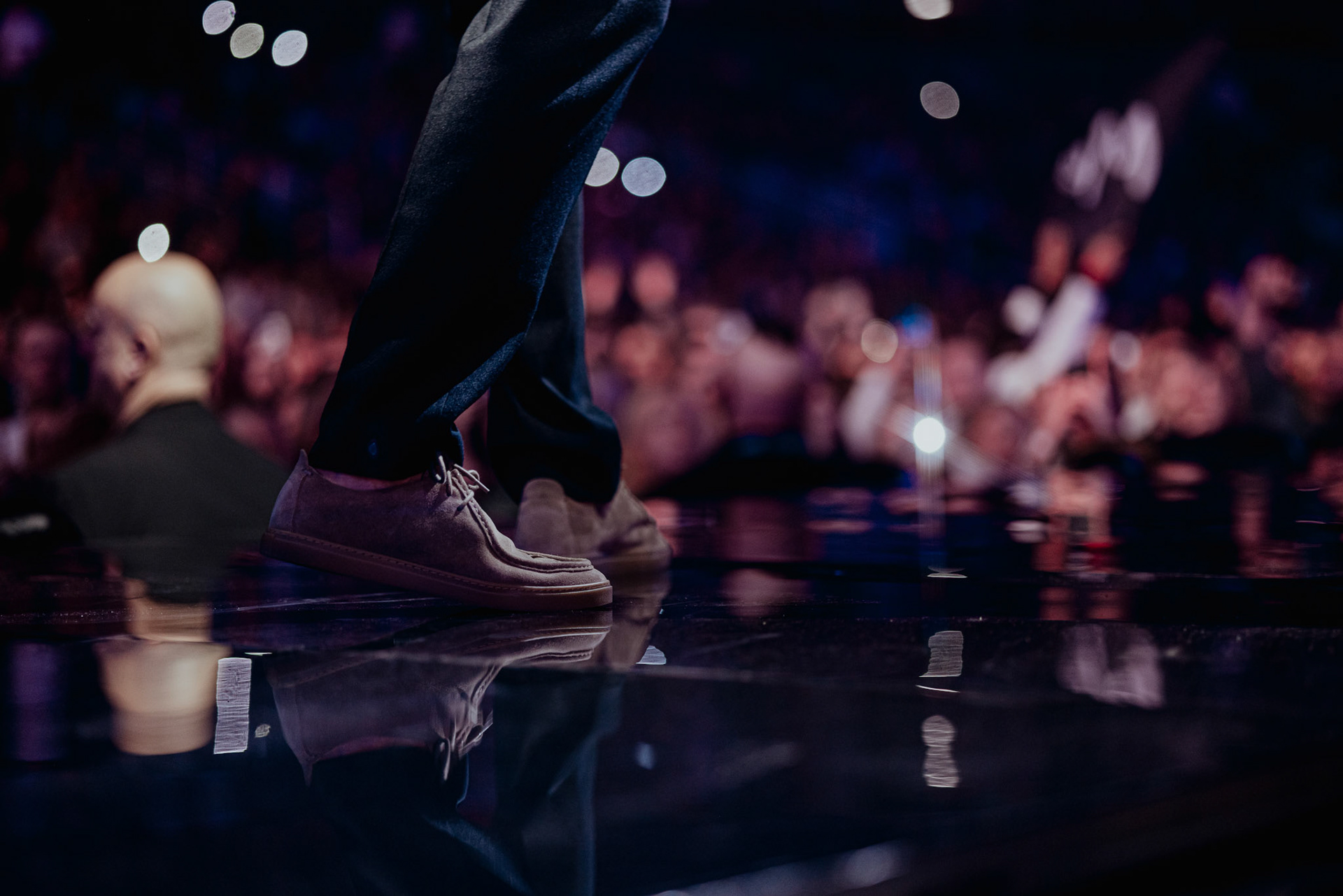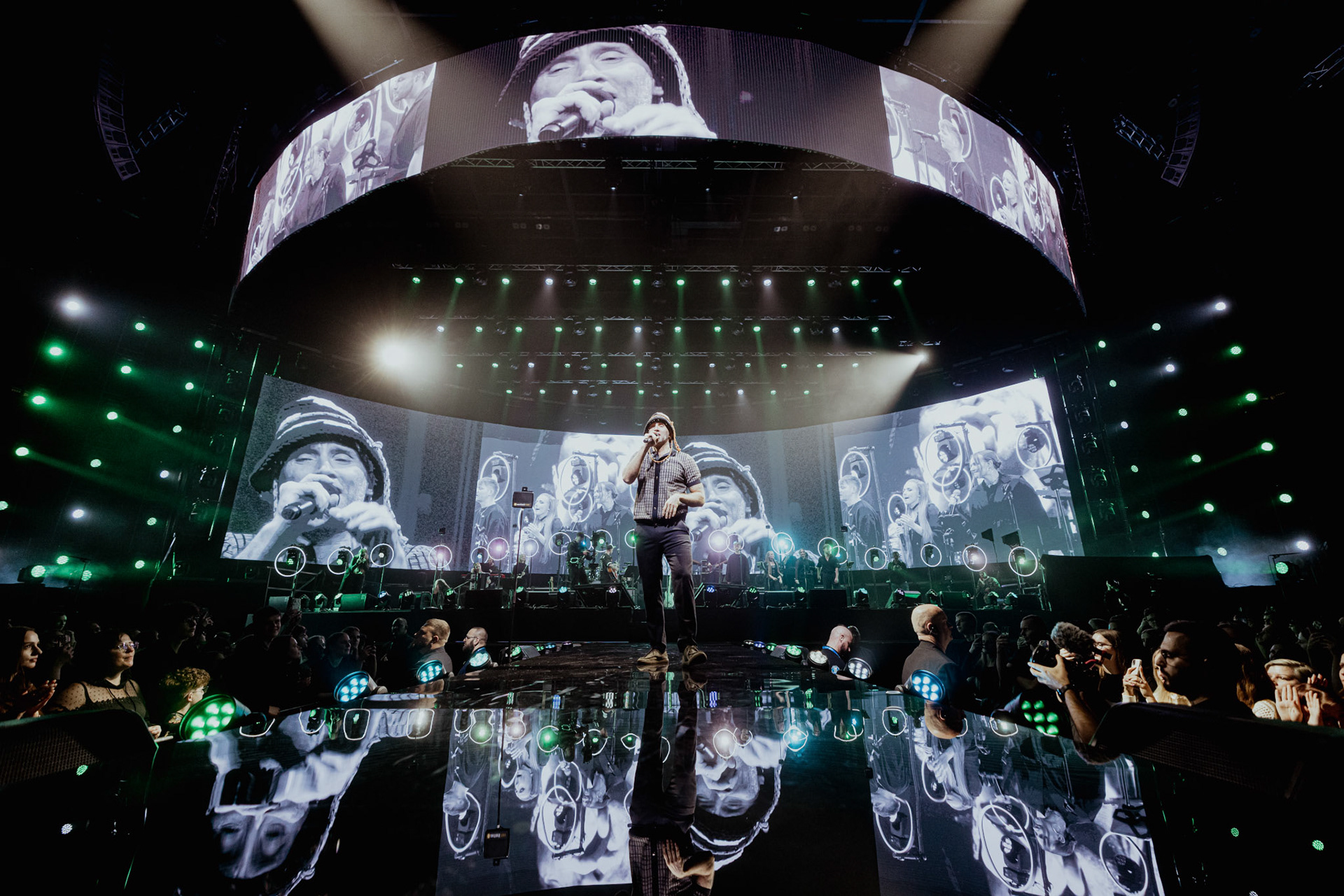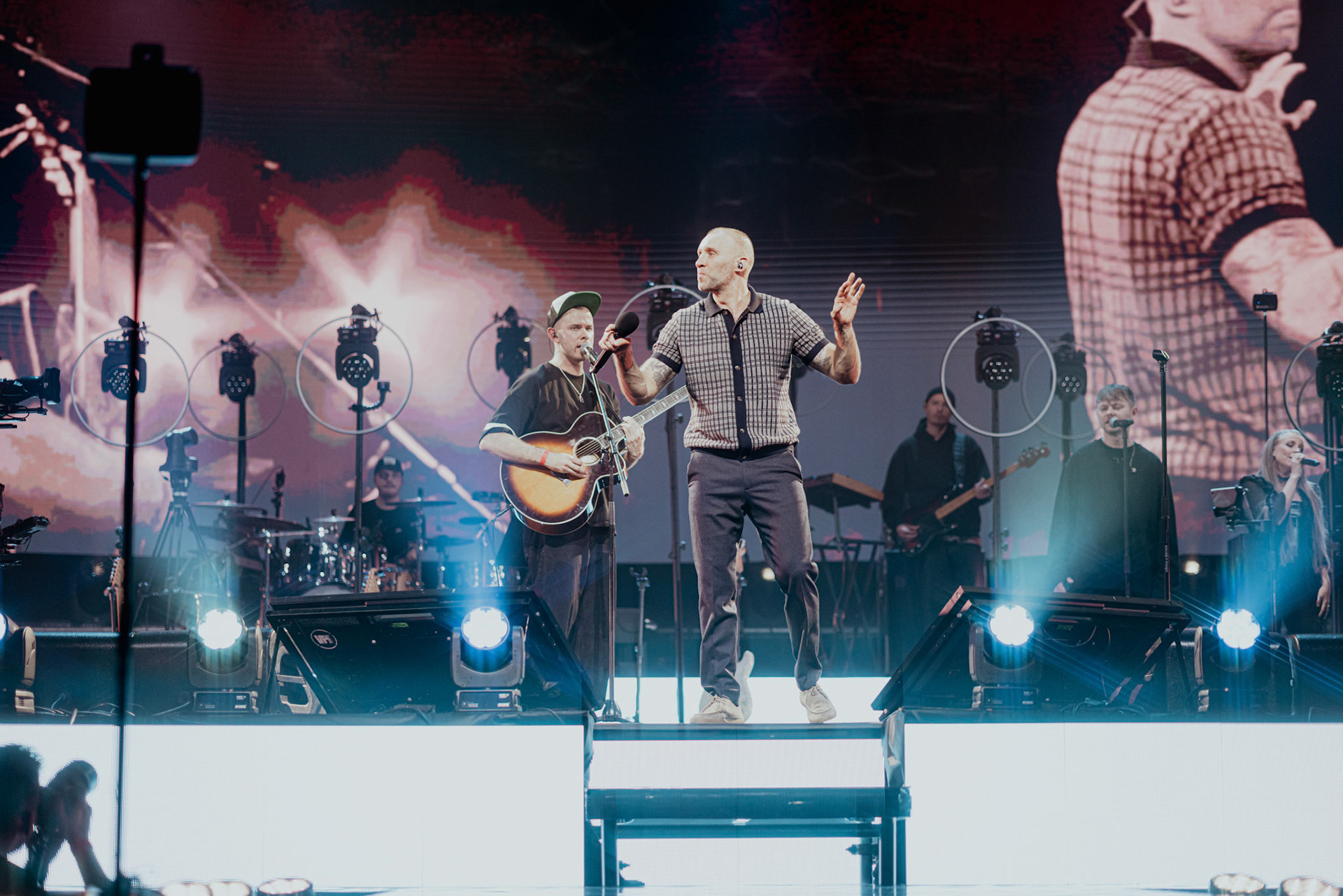 Concert photography from MESA’s grand show “Atbalss” at Xiaomi Arena, capturing powerful lyricism, atmospheric staging, and the emotional connection shared with the audience.