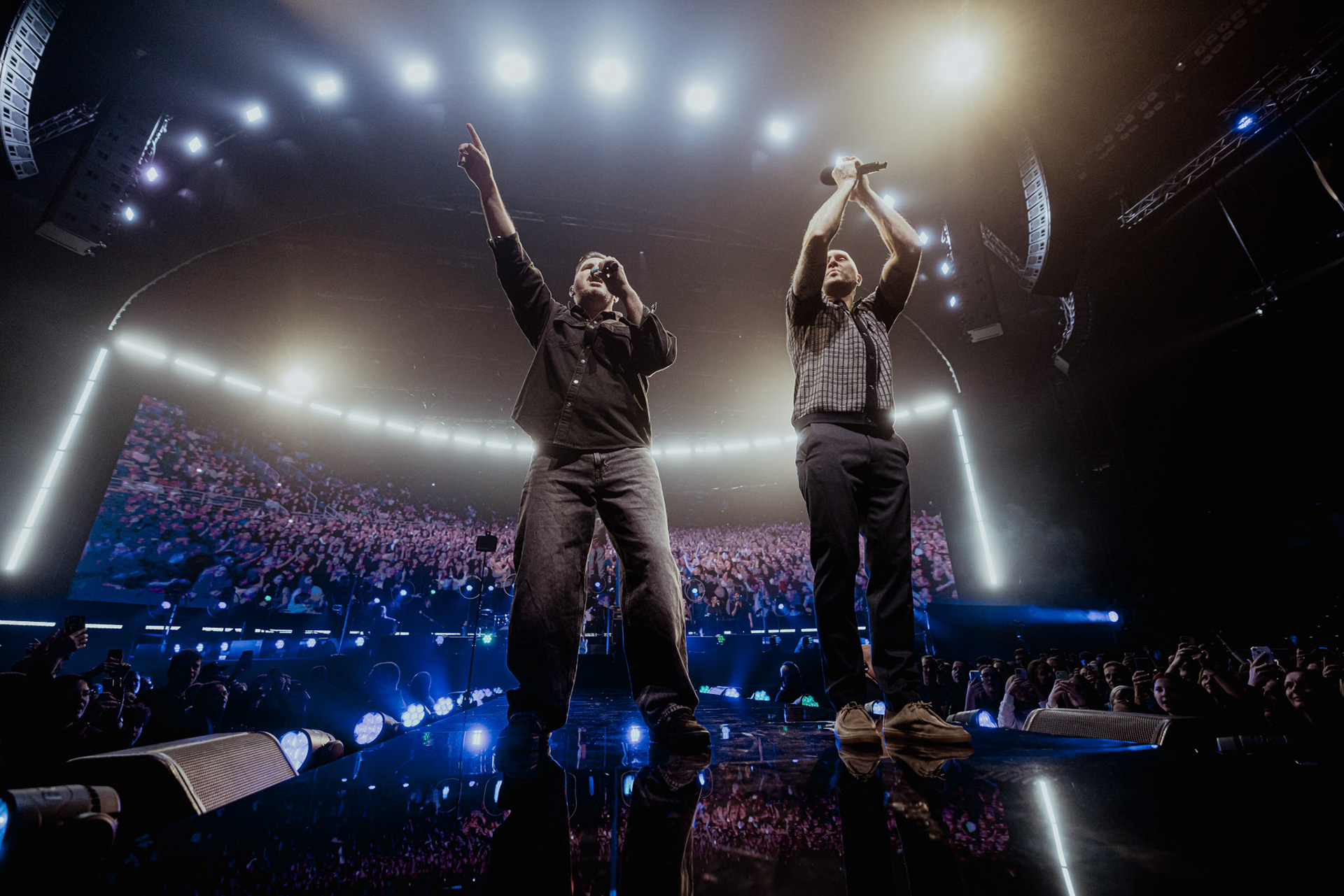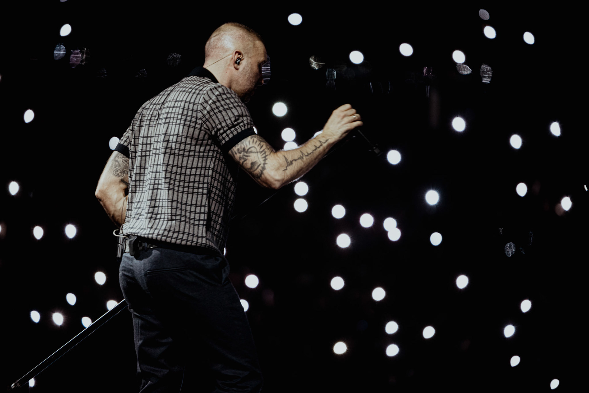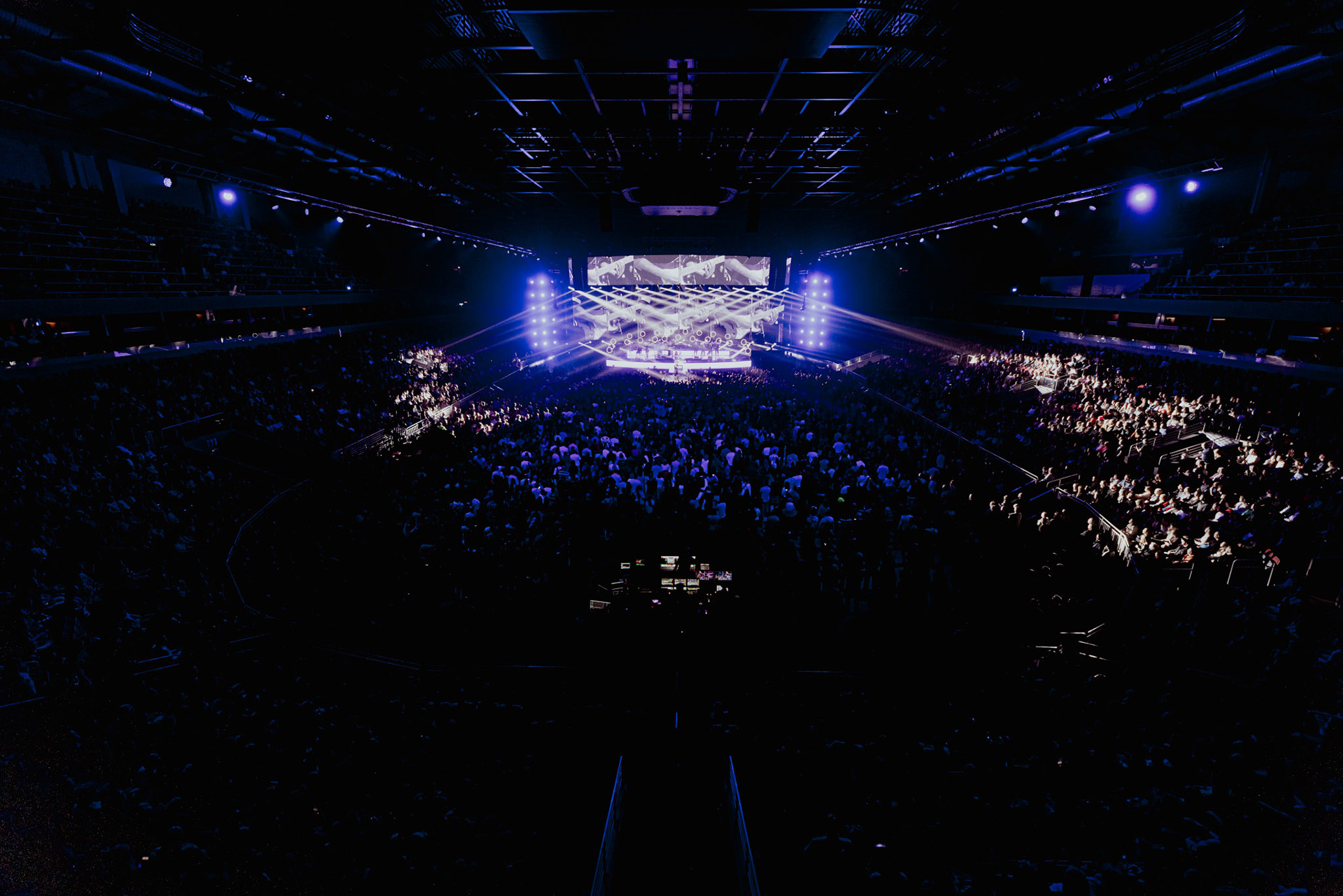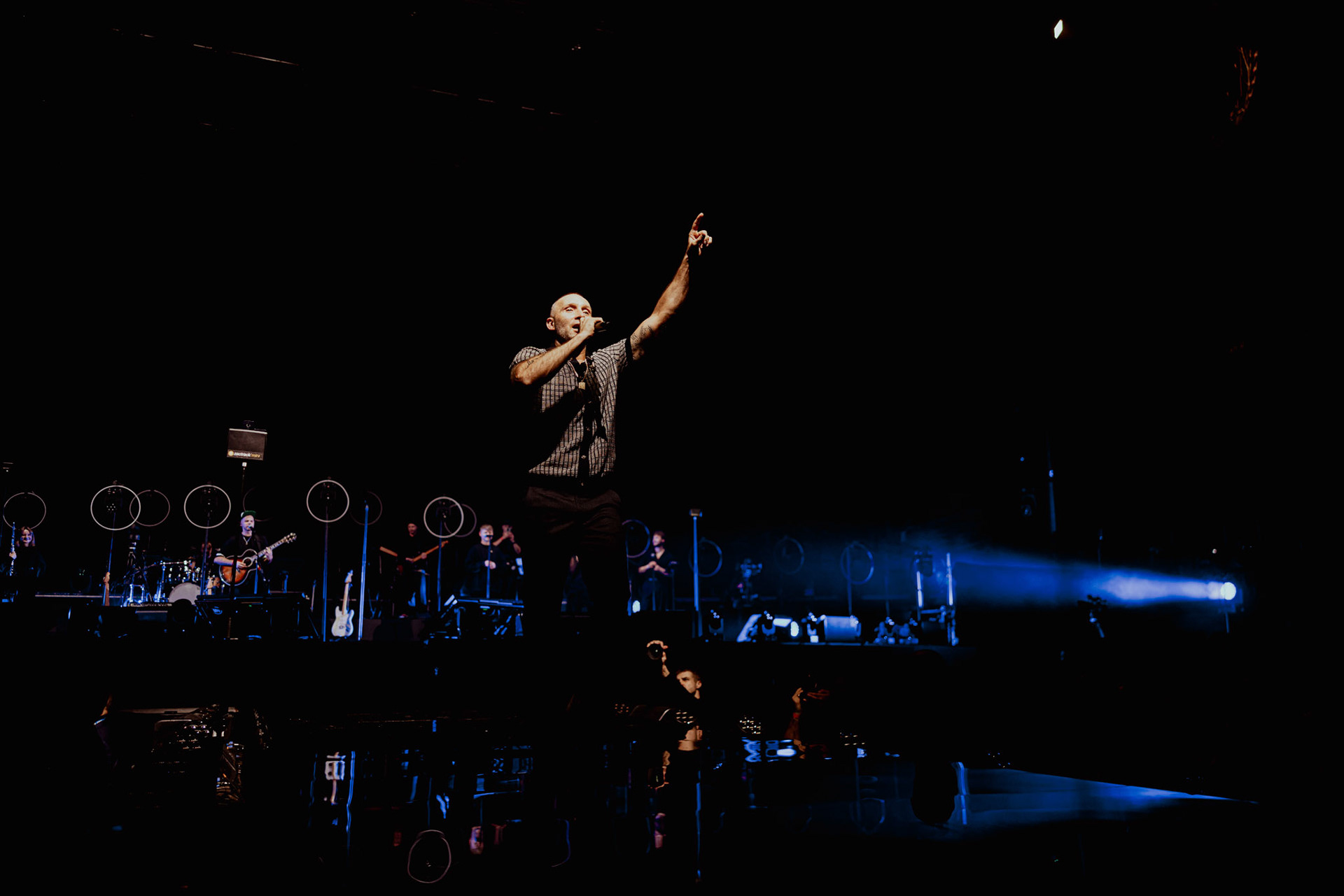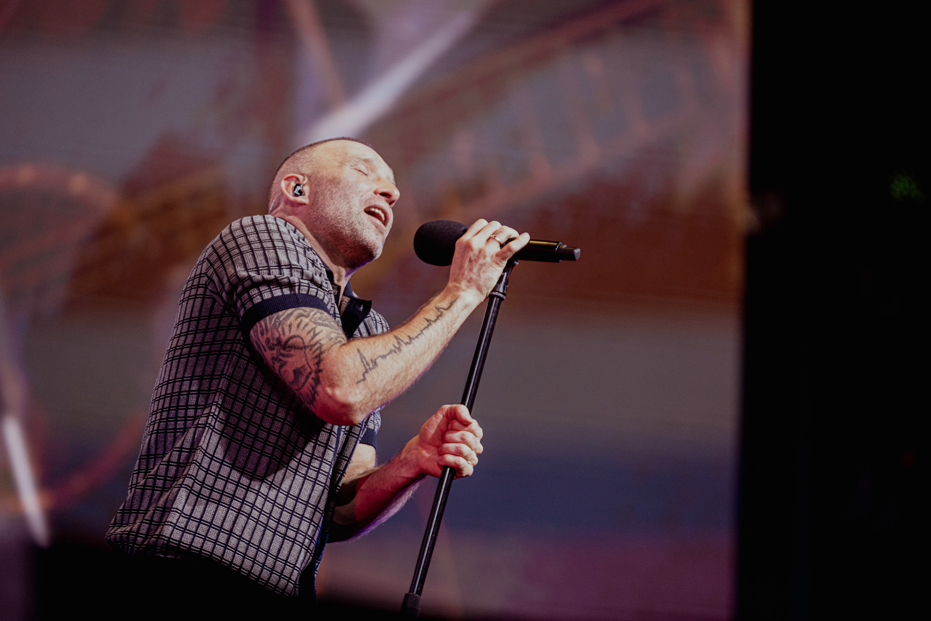 Concert photography from MESA’s grand show “Atbalss” at Xiaomi Arena, capturing powerful lyricism, atmospheric staging, and the emotional connection shared with the audience.