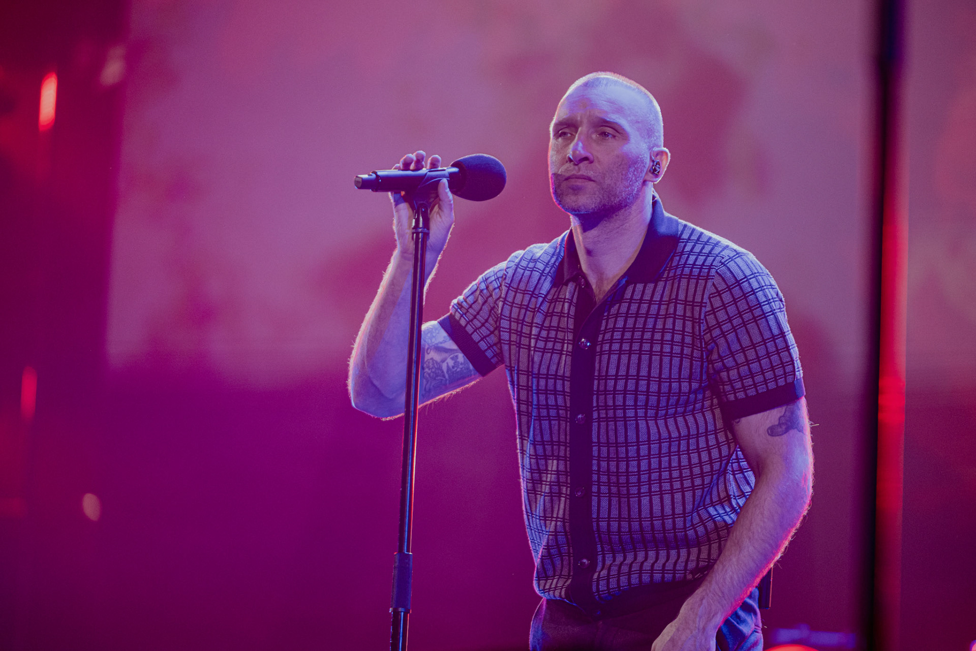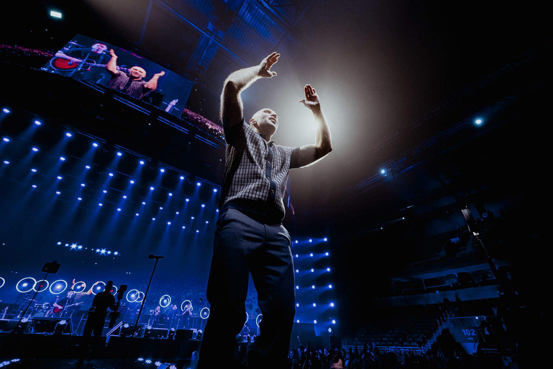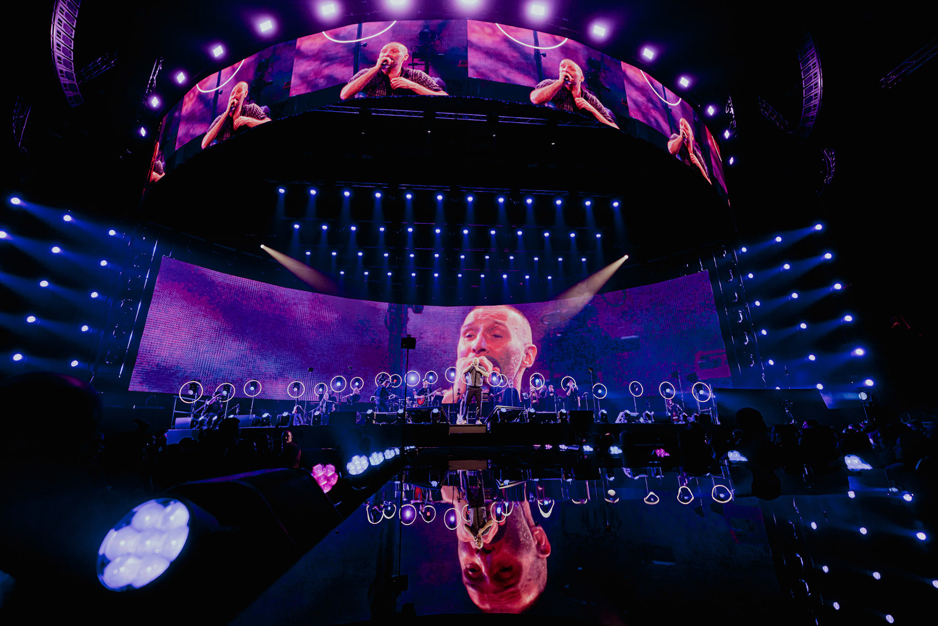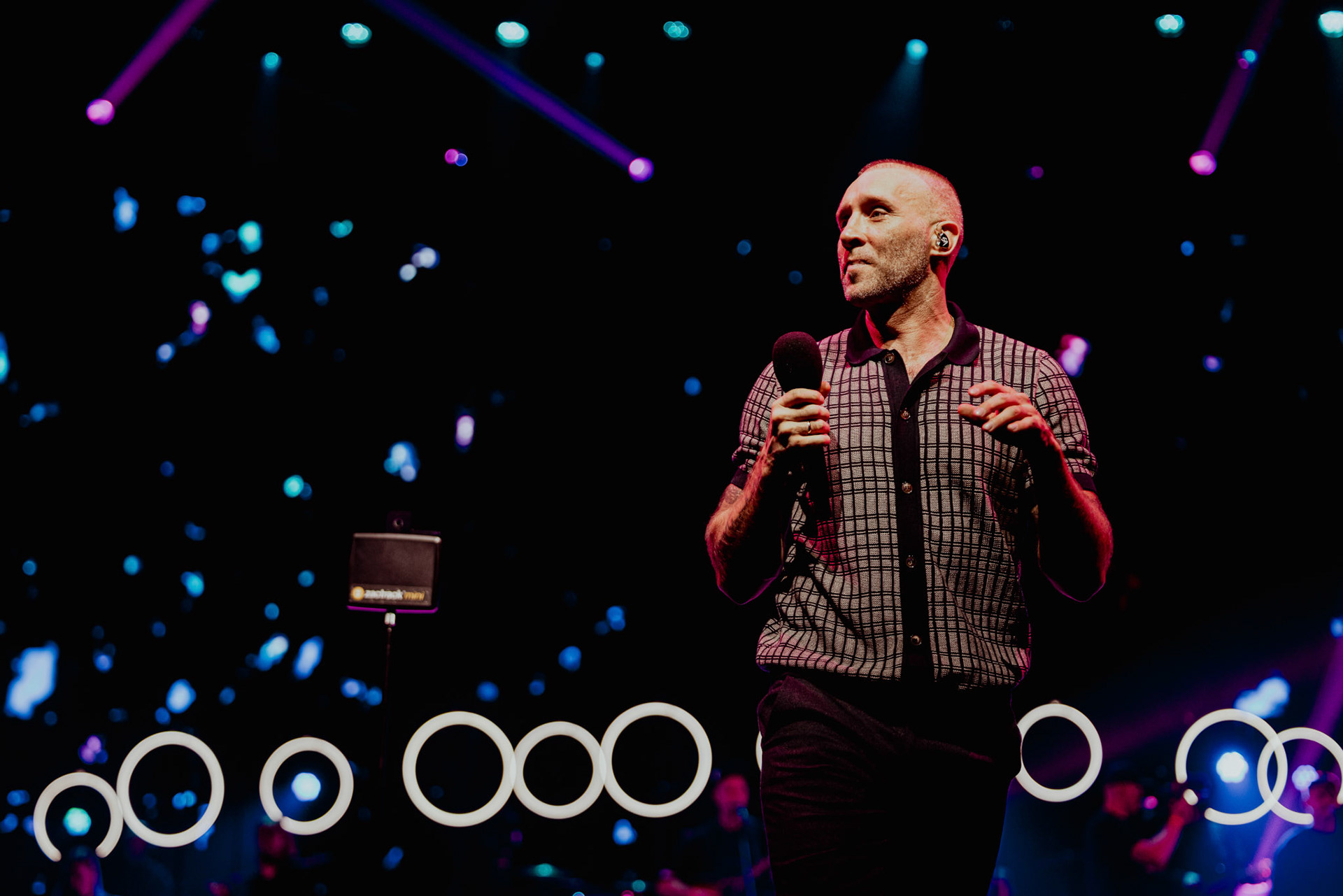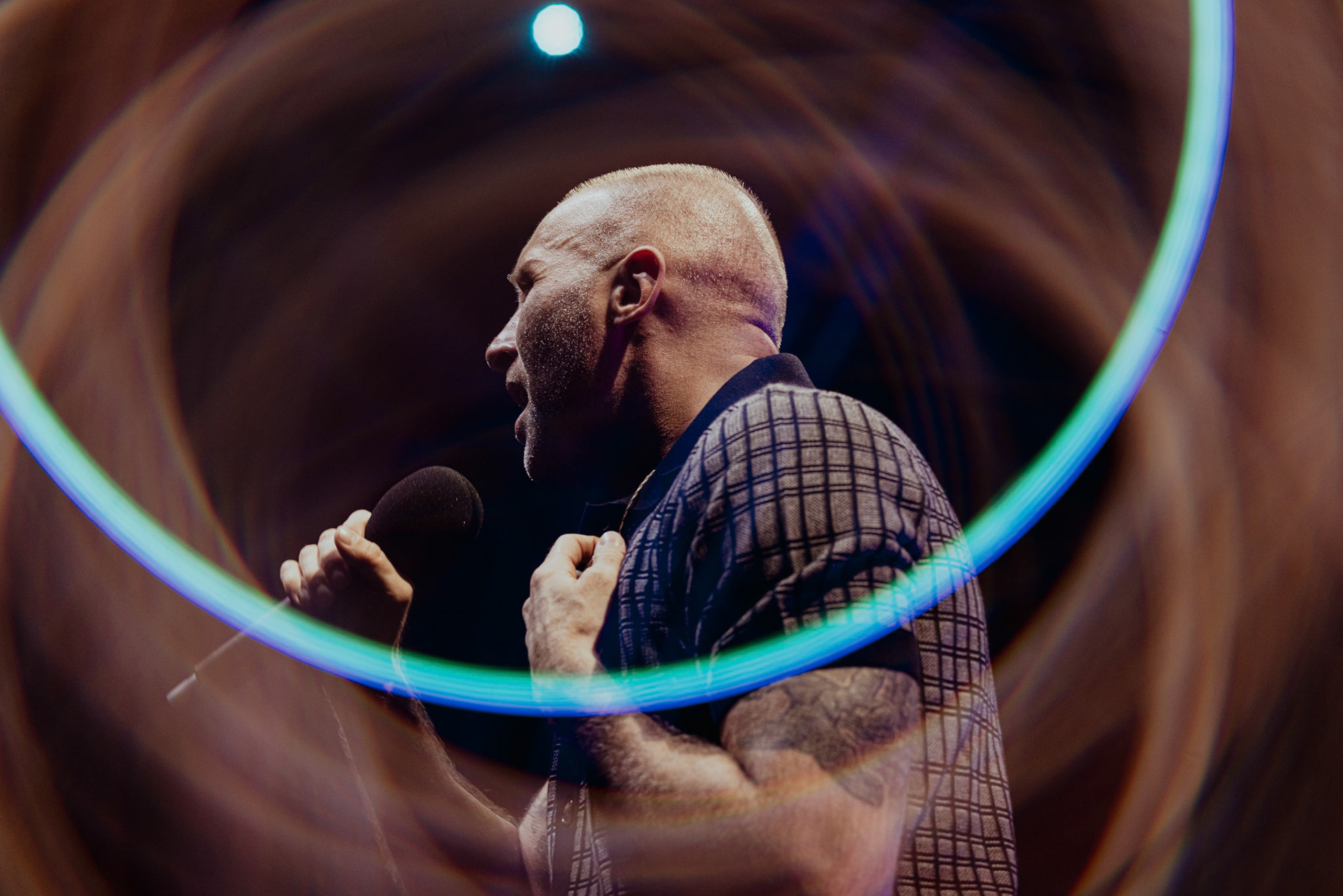 Concert photography from MESA’s grand show “Atbalss” at Xiaomi Arena, capturing powerful lyricism, atmospheric staging, and the emotional connection shared with the audience.