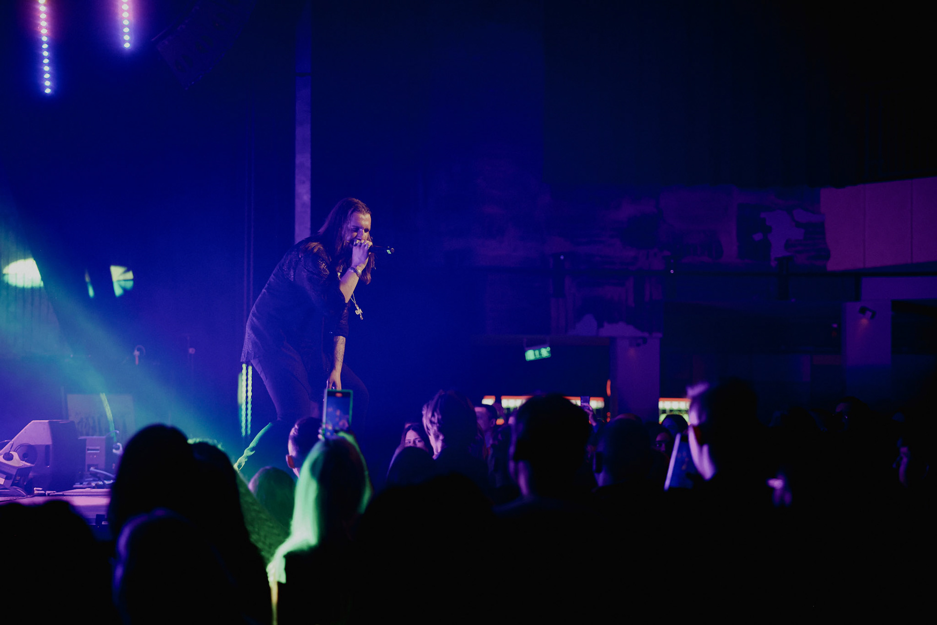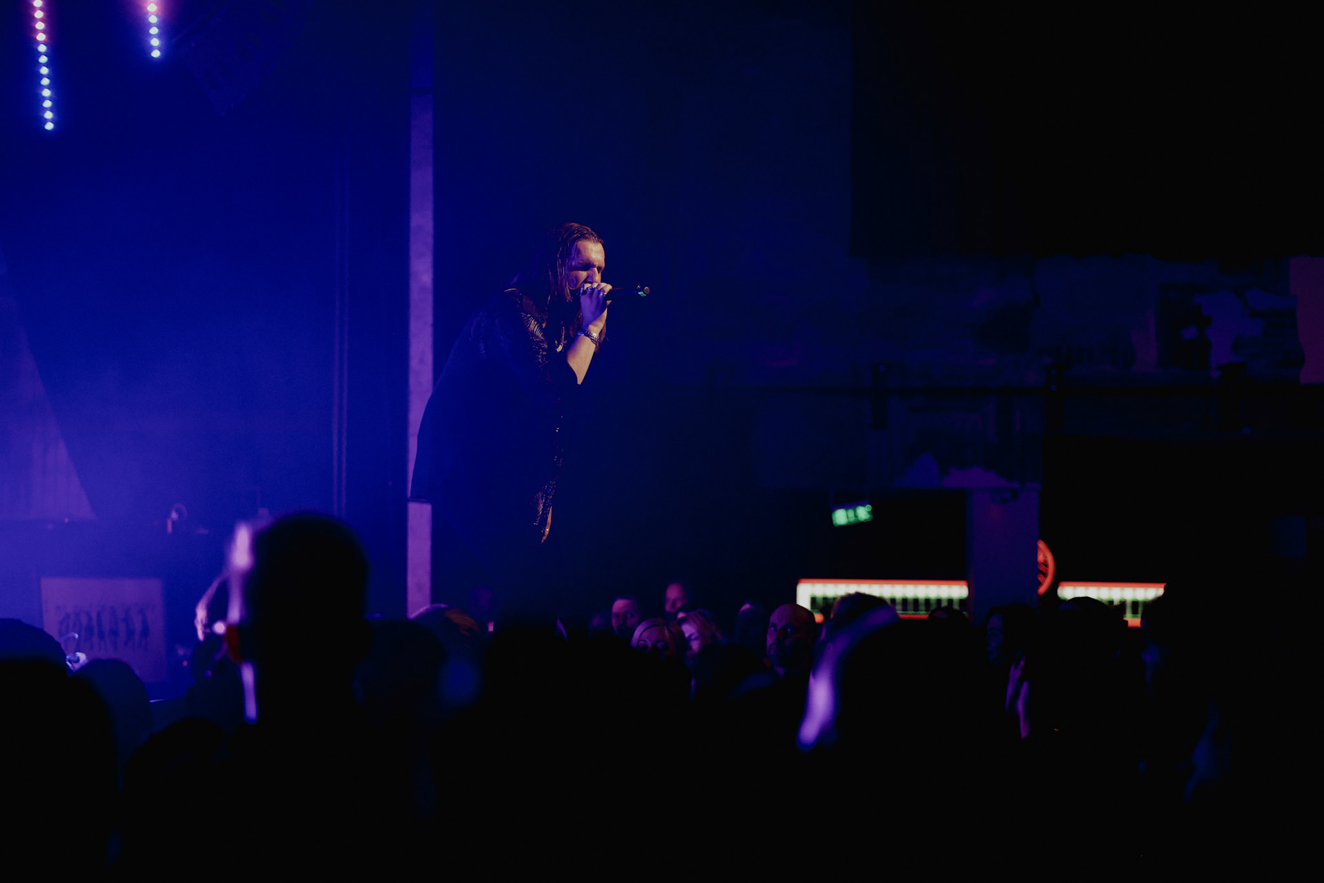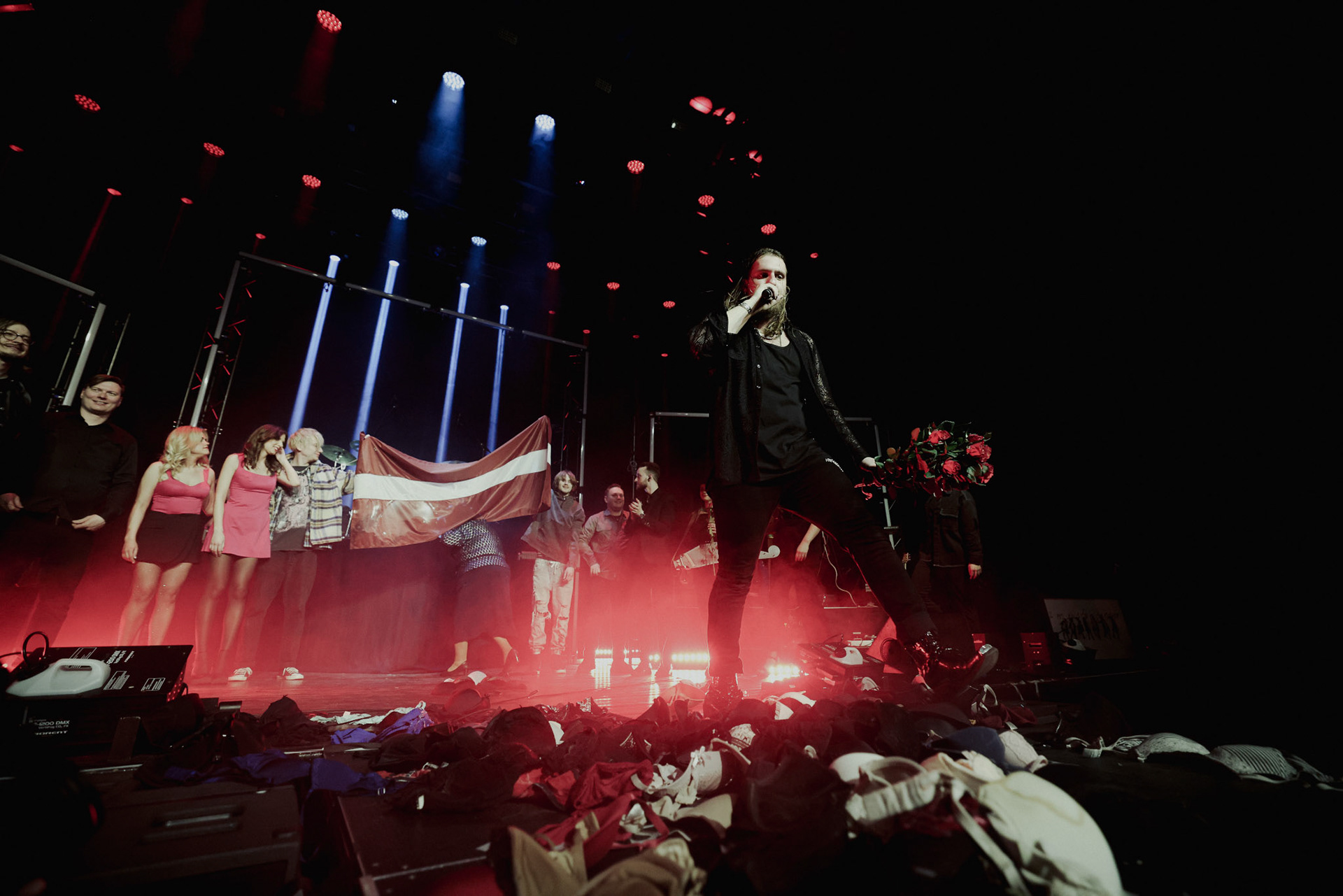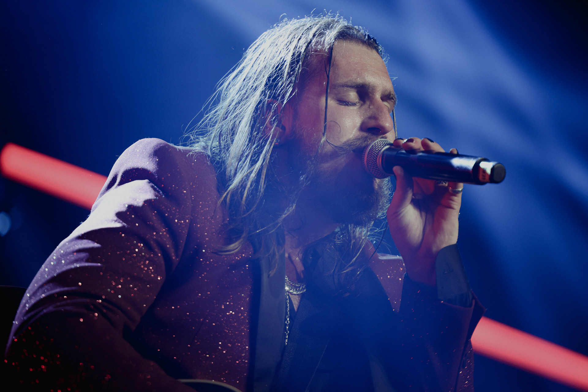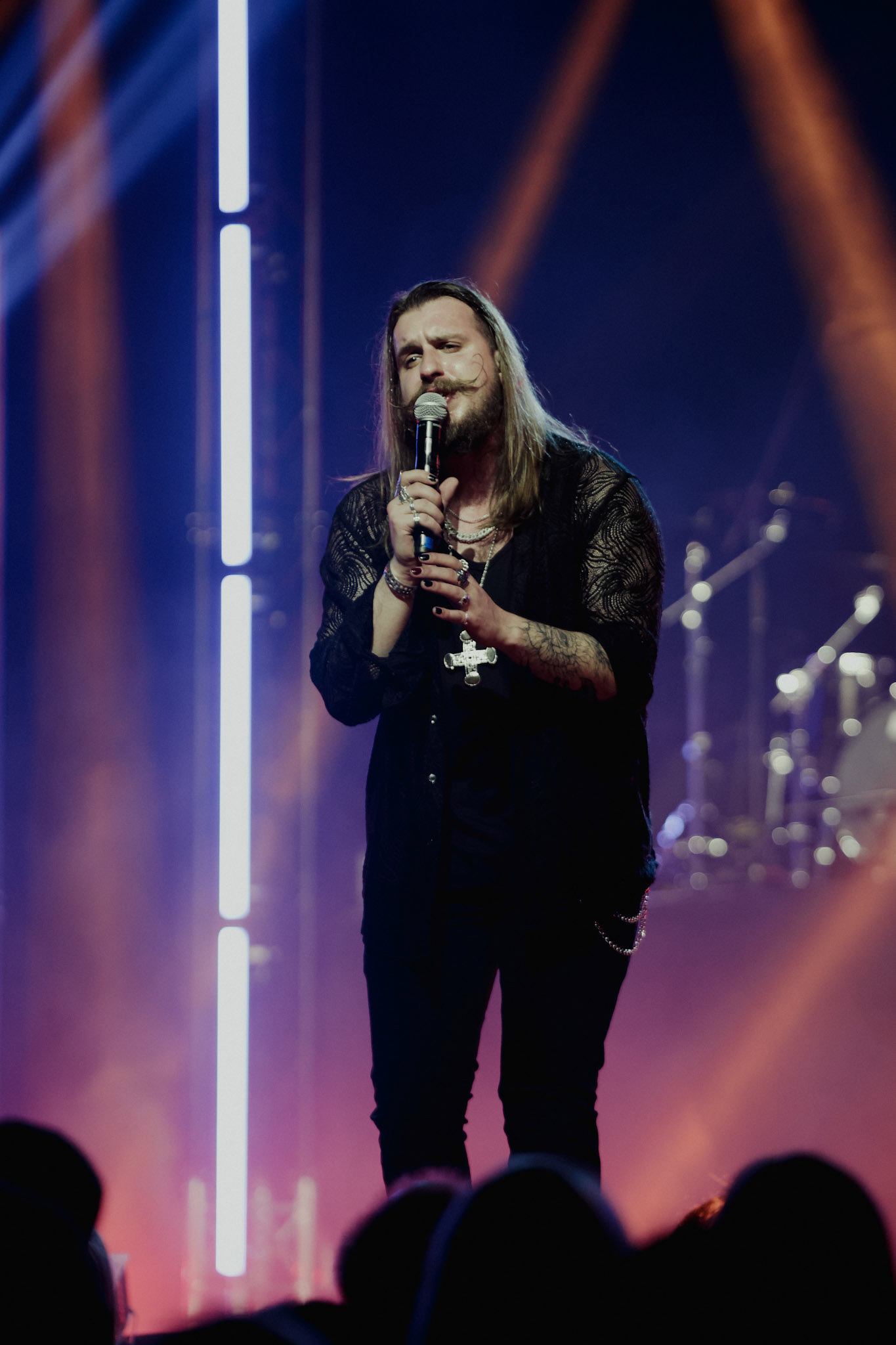 Concert photography from Miks Galvanovskis performance at Palladium Riga, capturing his emotional delivery, dynamic stage presence, and the intimate connection with the audience.