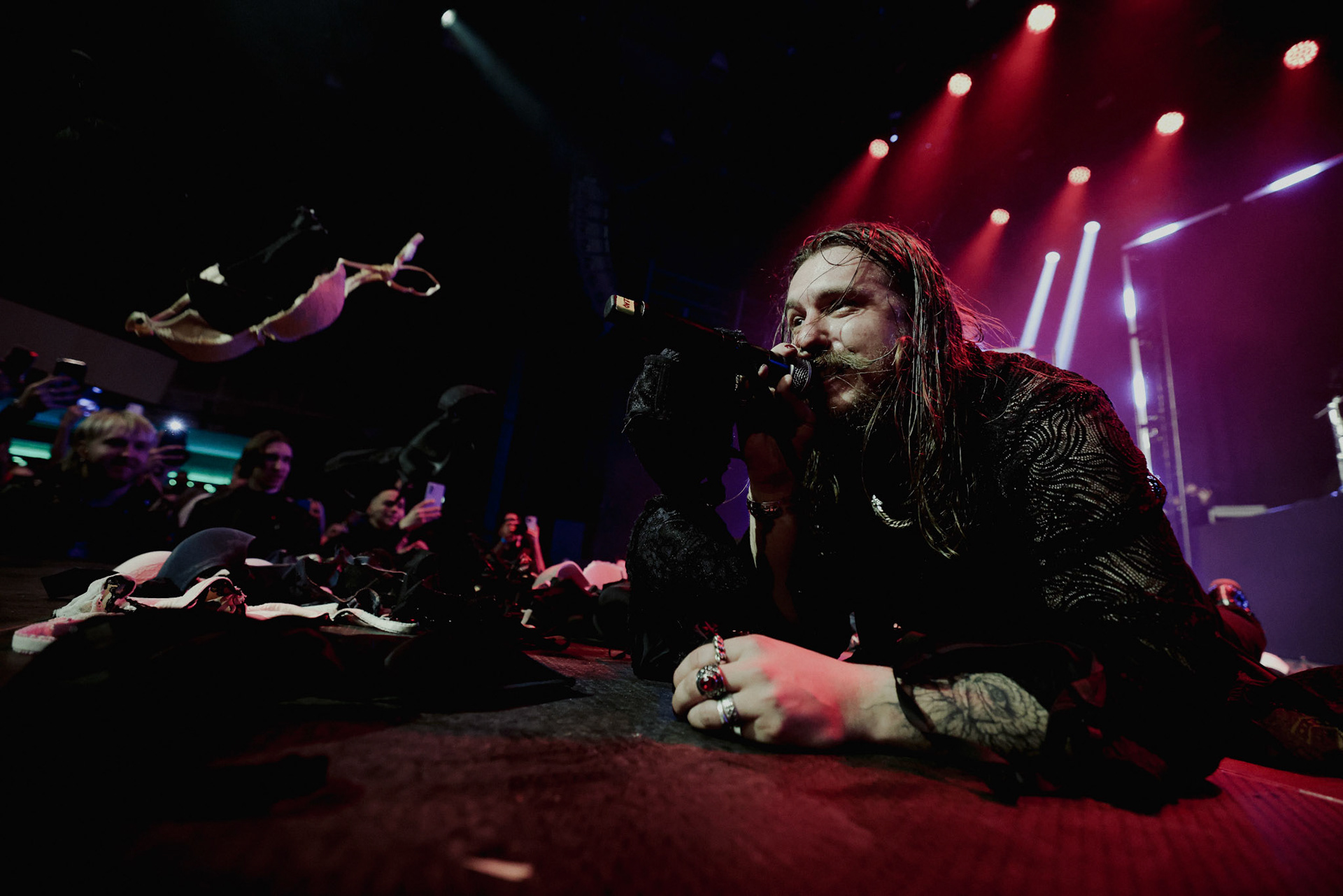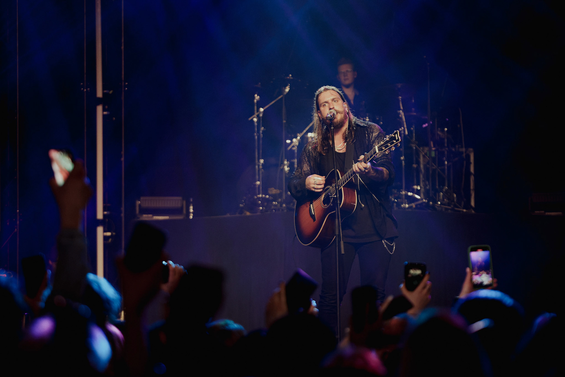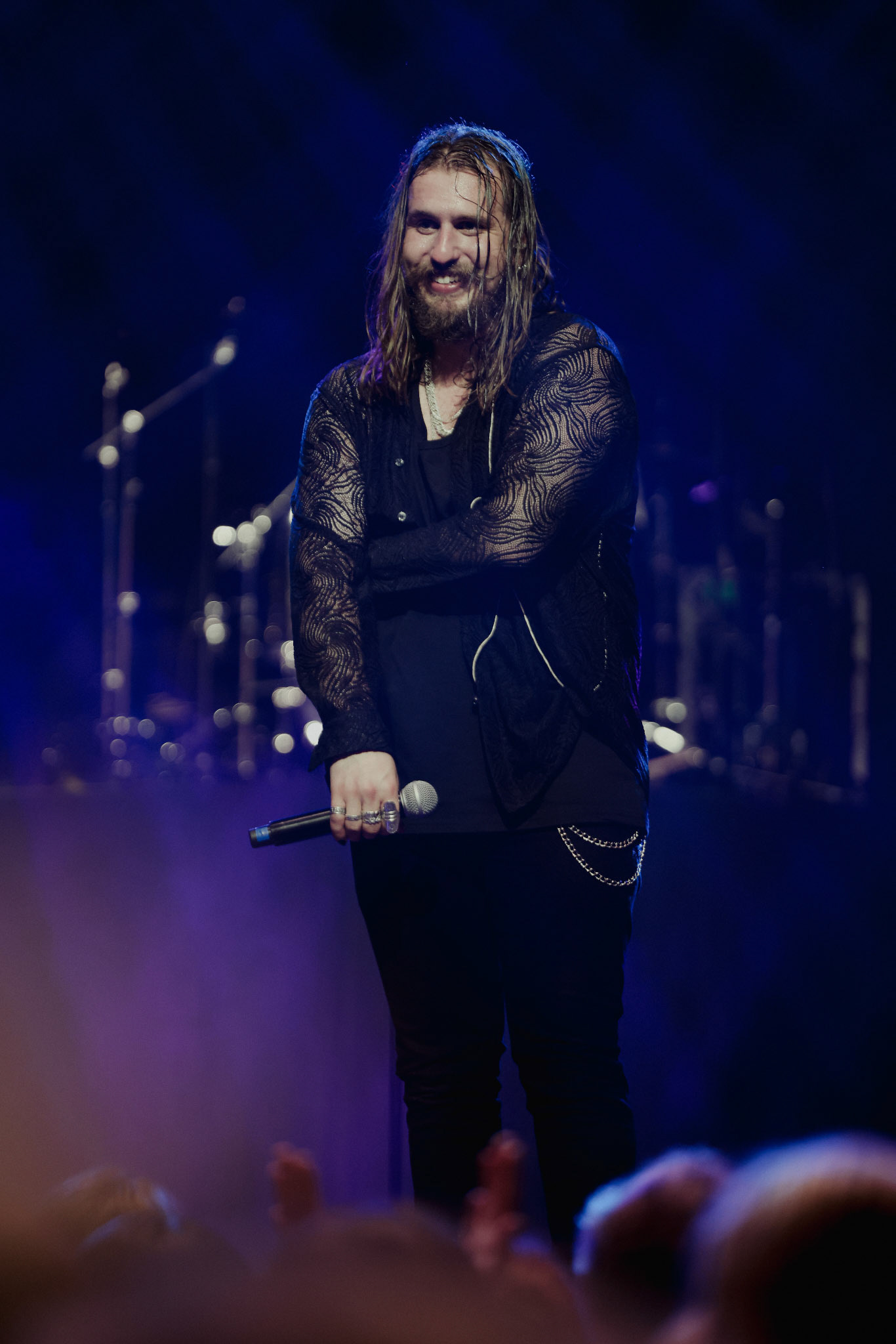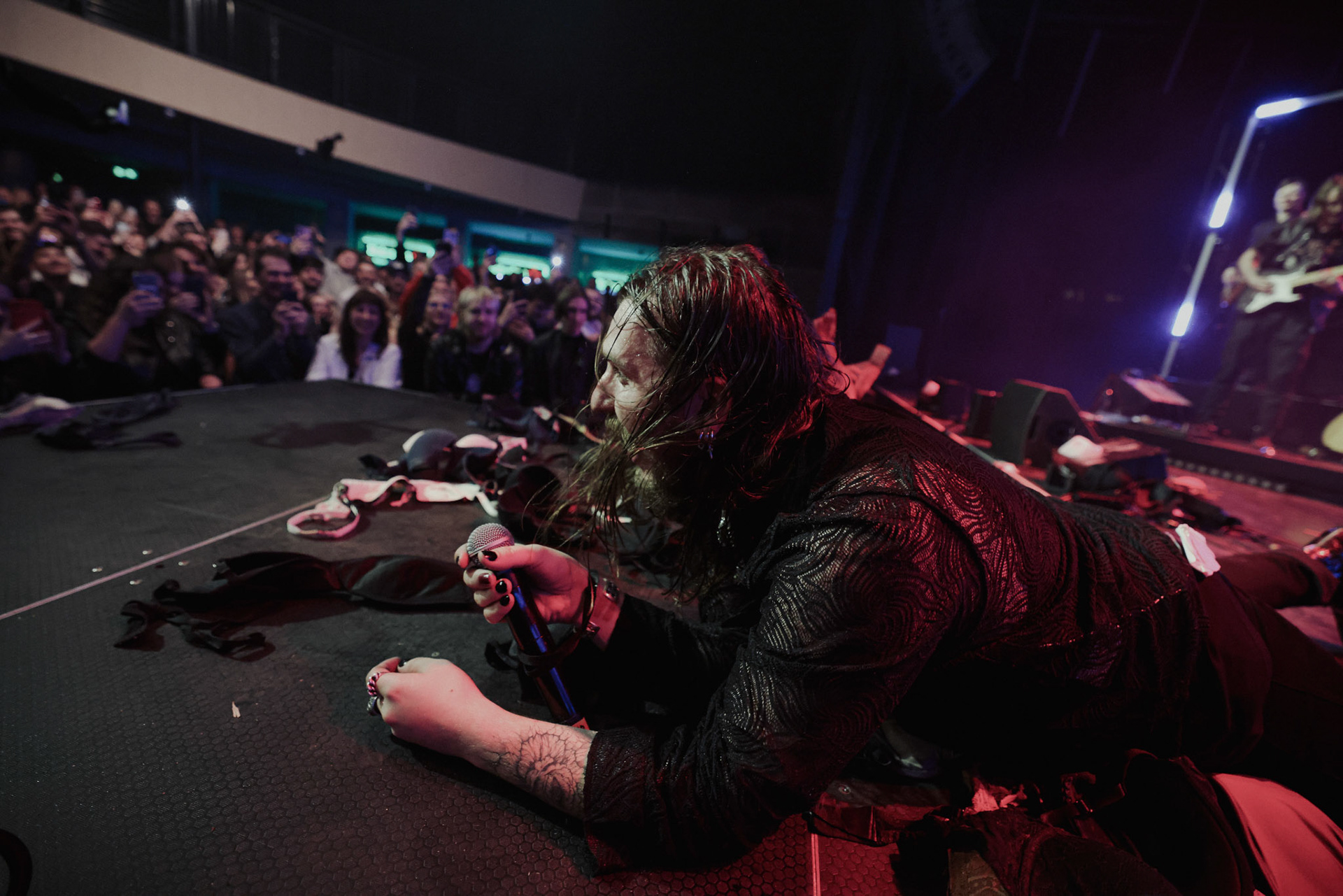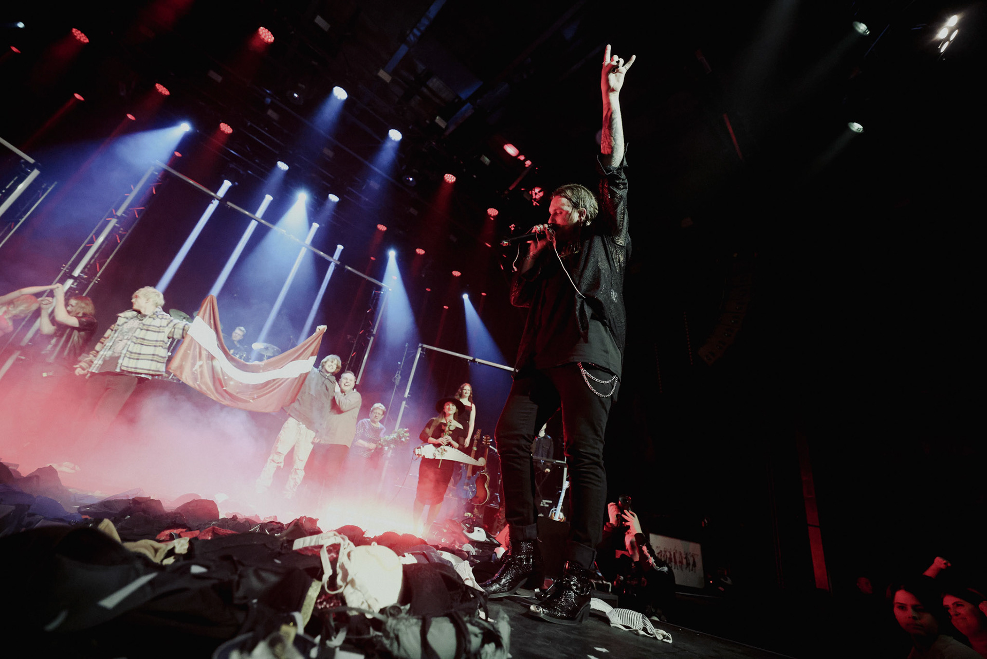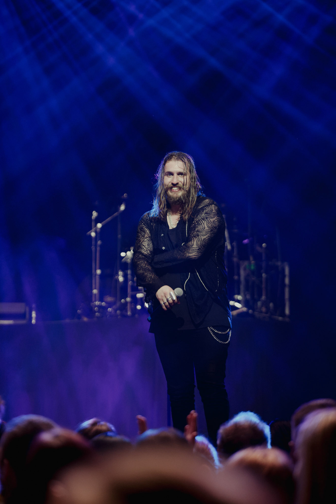 Concert photography from Miks Galvanovskis performance at Palladium Riga, capturing his emotional delivery, dynamic stage presence, and the intimate connection with the audience.