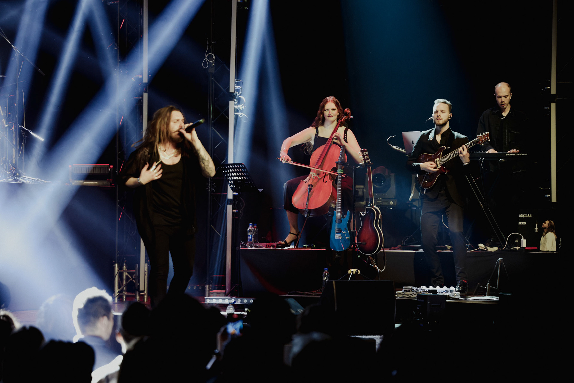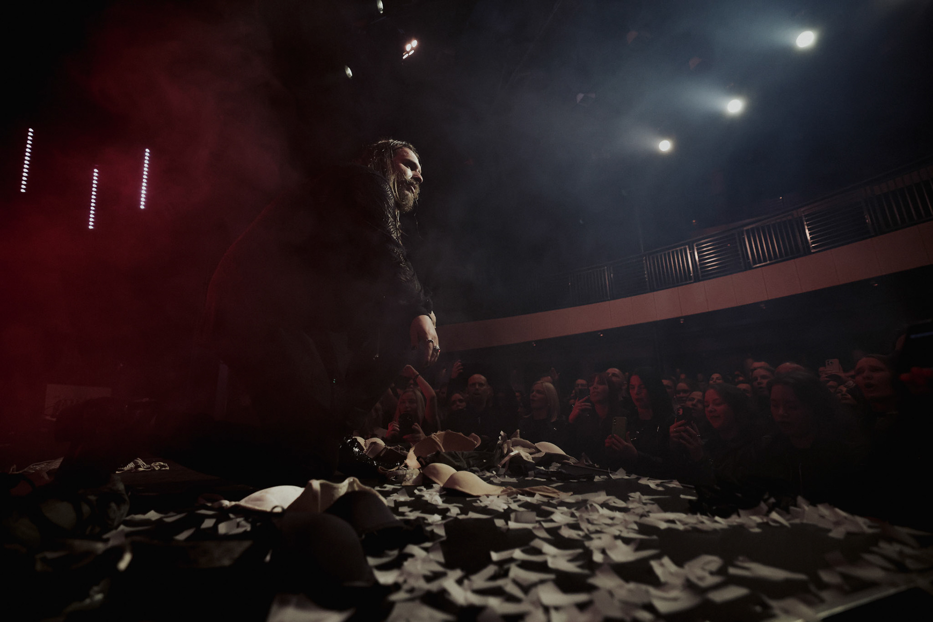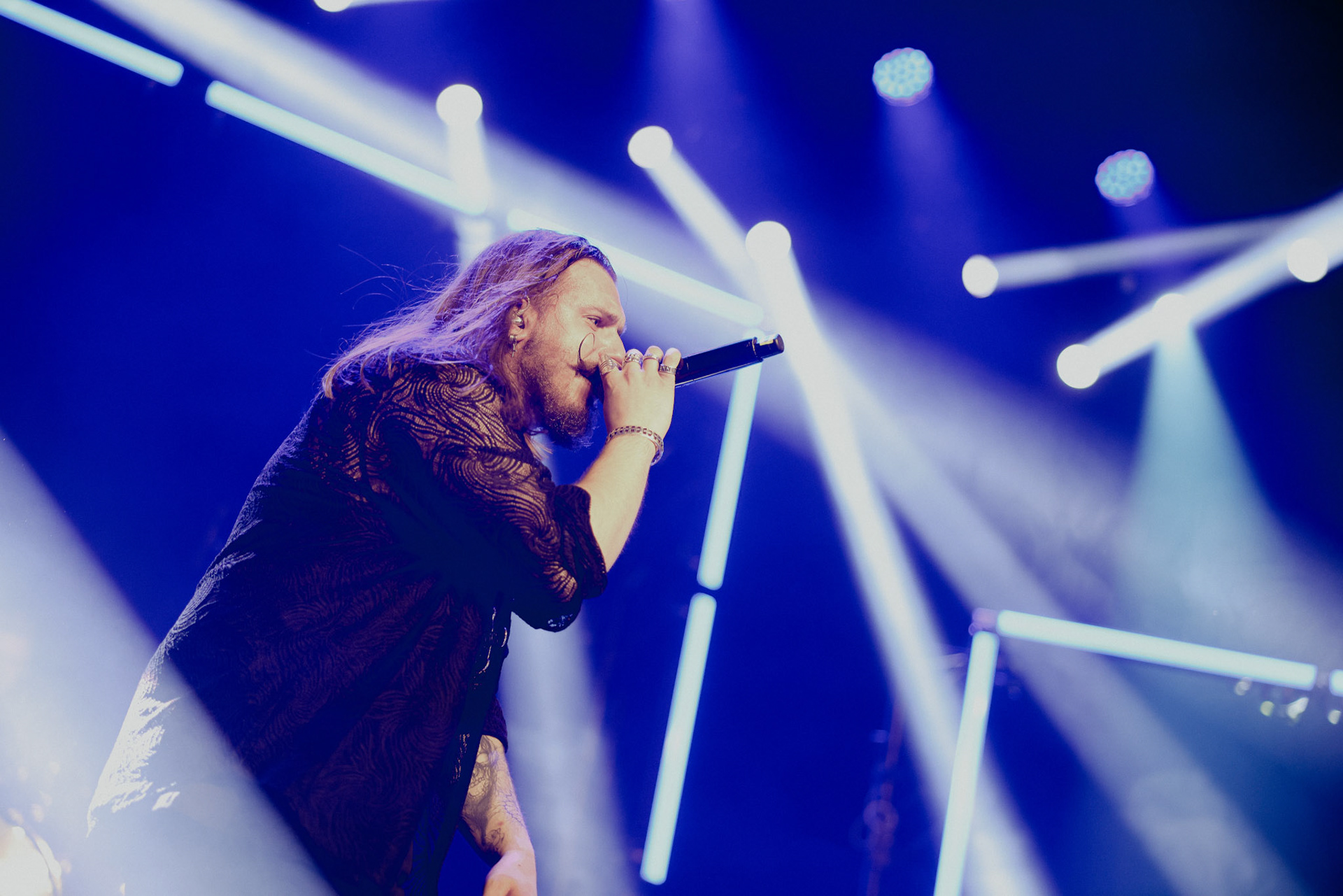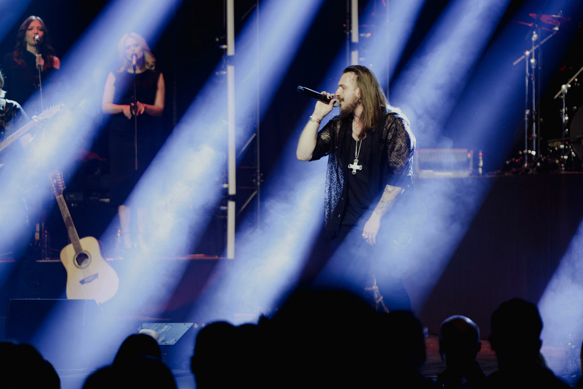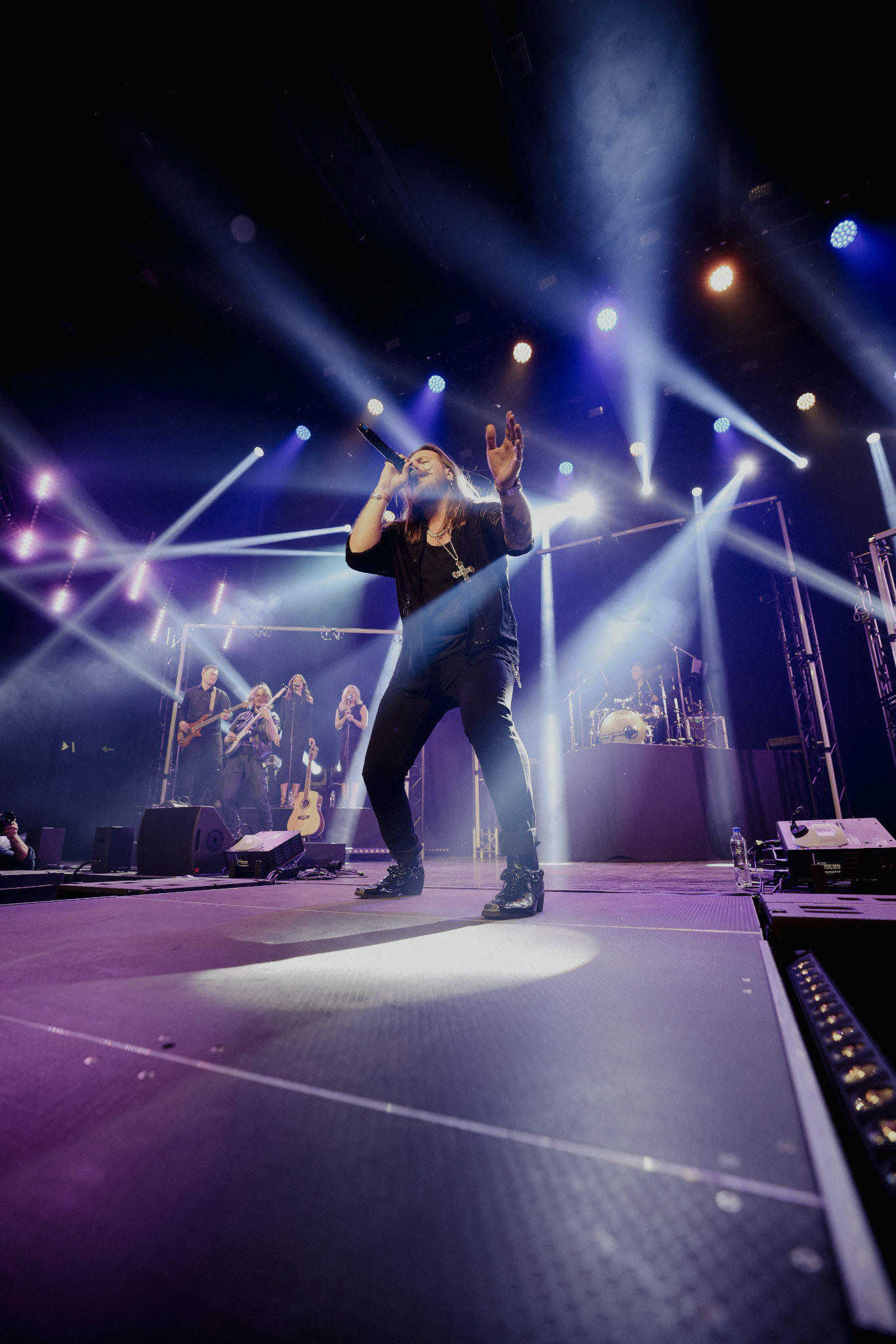 Concert photography from Miks Galvanovskis performance at Palladium Riga, capturing his emotional delivery, dynamic stage presence, and the intimate connection with the audience.