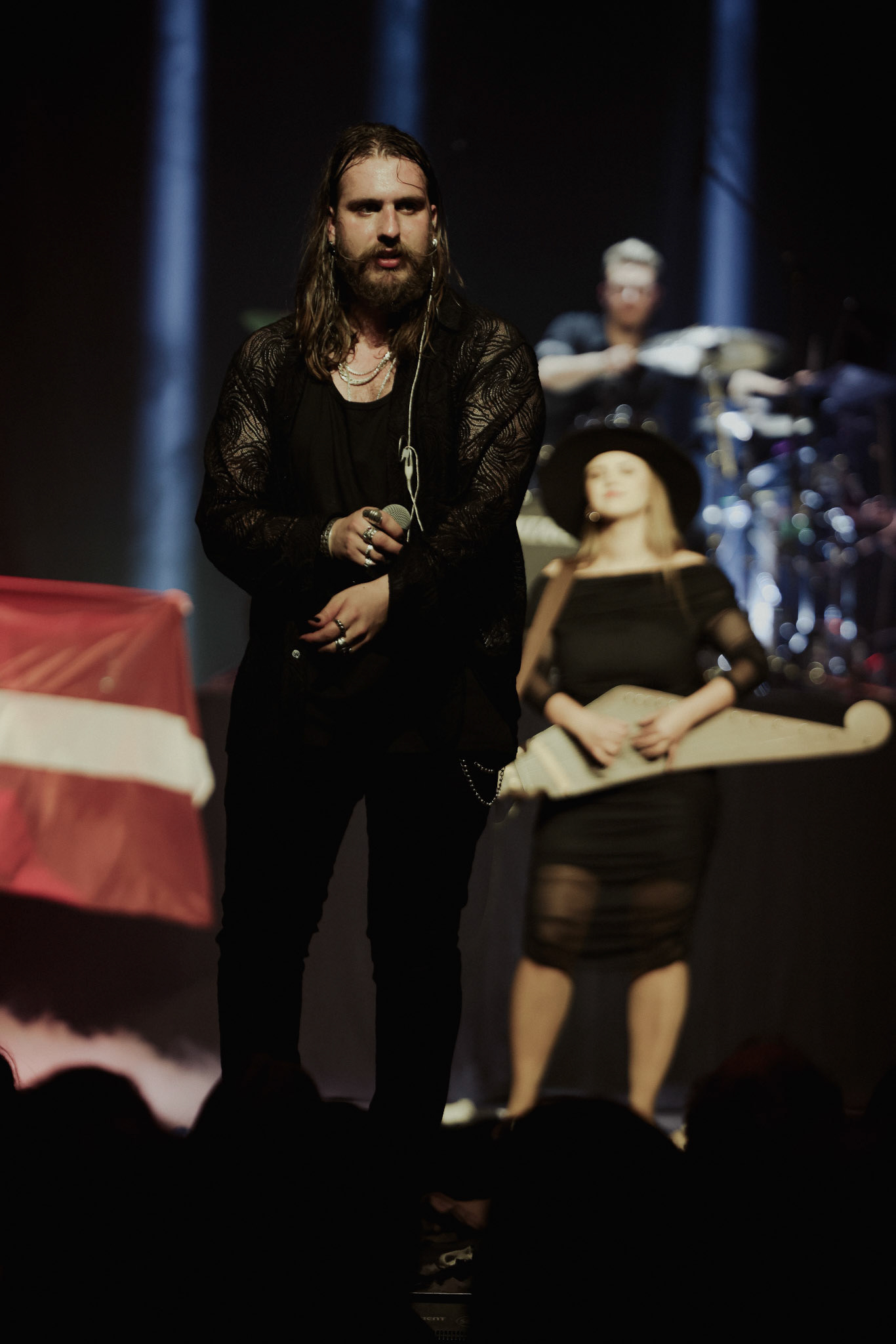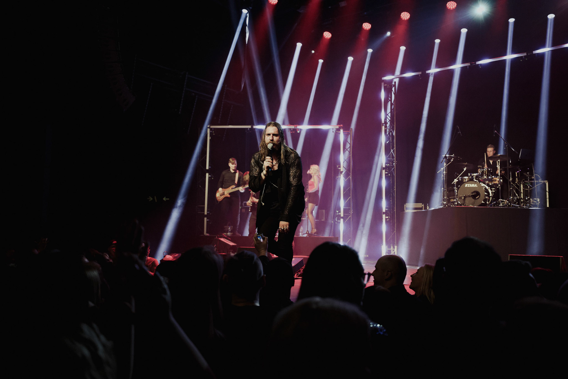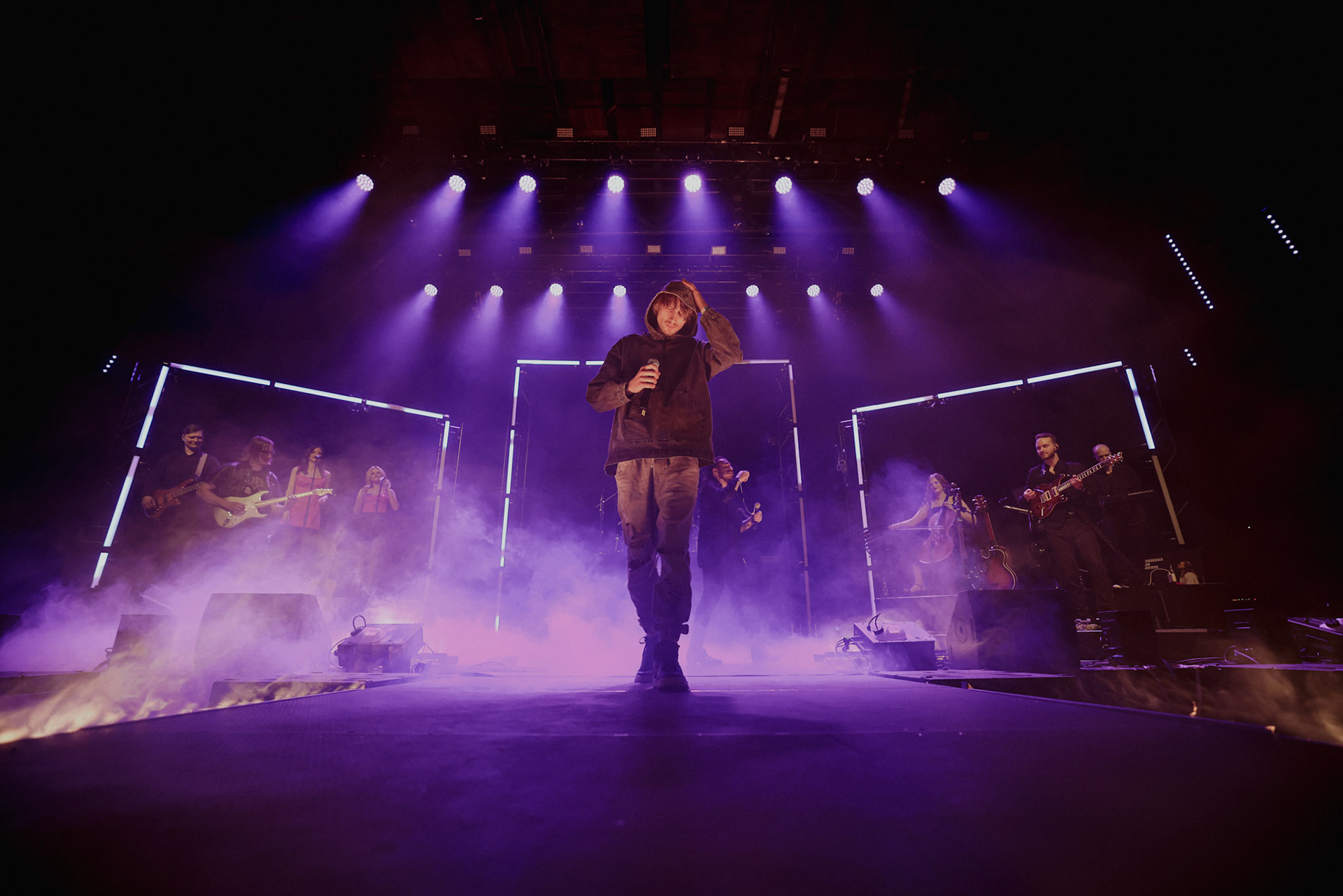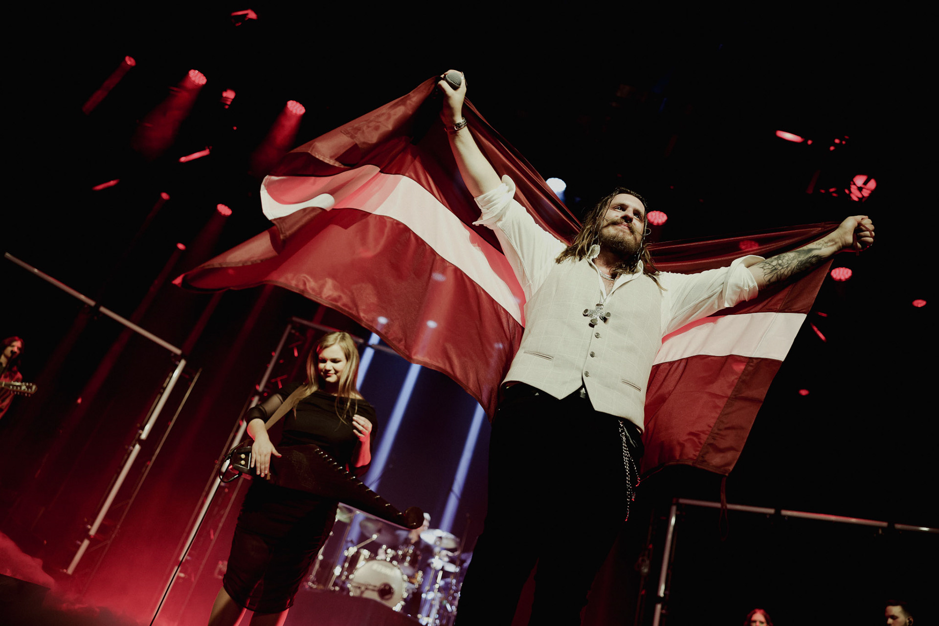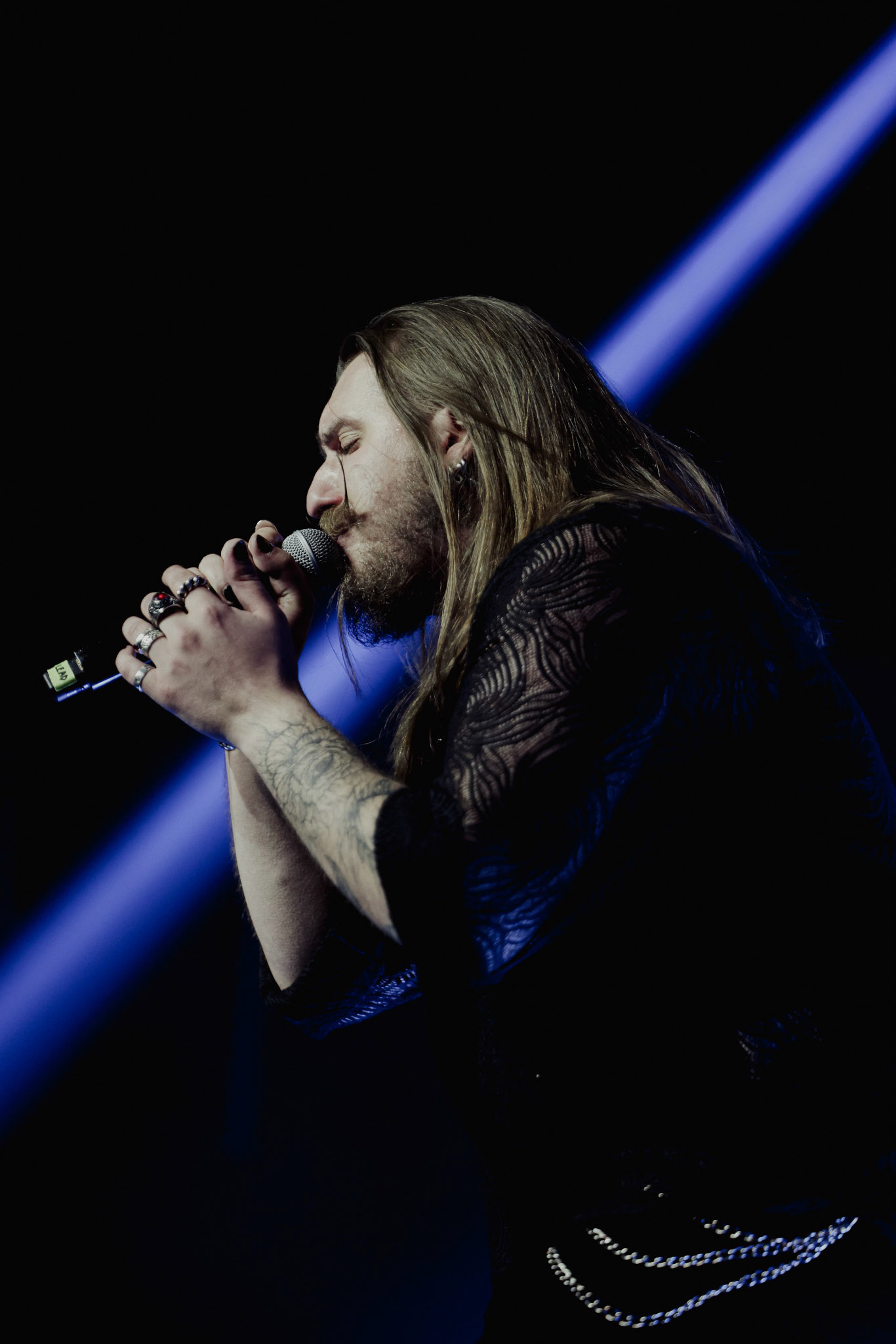 Concert photography from Miks Galvanovskis performance at Palladium Riga, capturing his emotional delivery, dynamic stage presence, and the intimate connection with the audience.