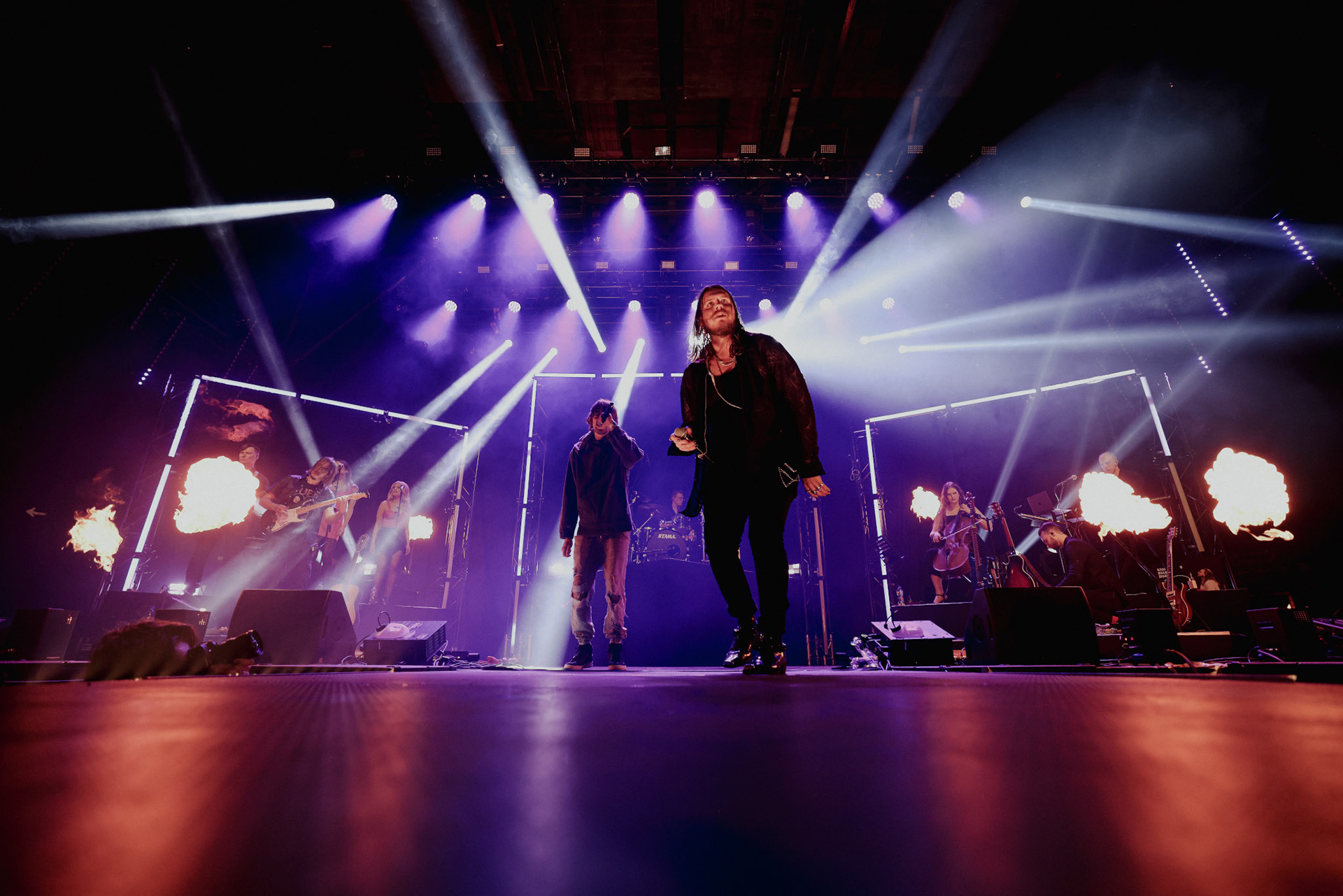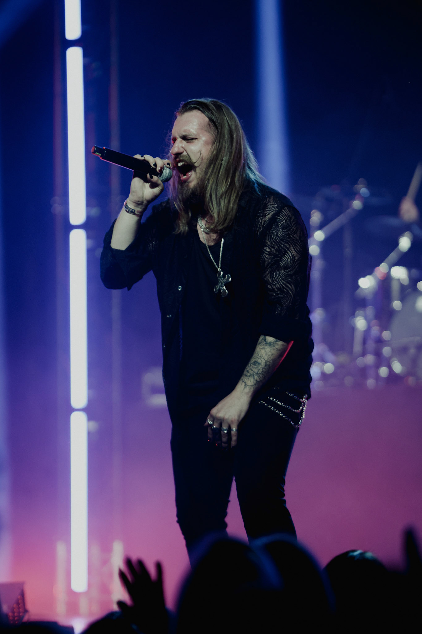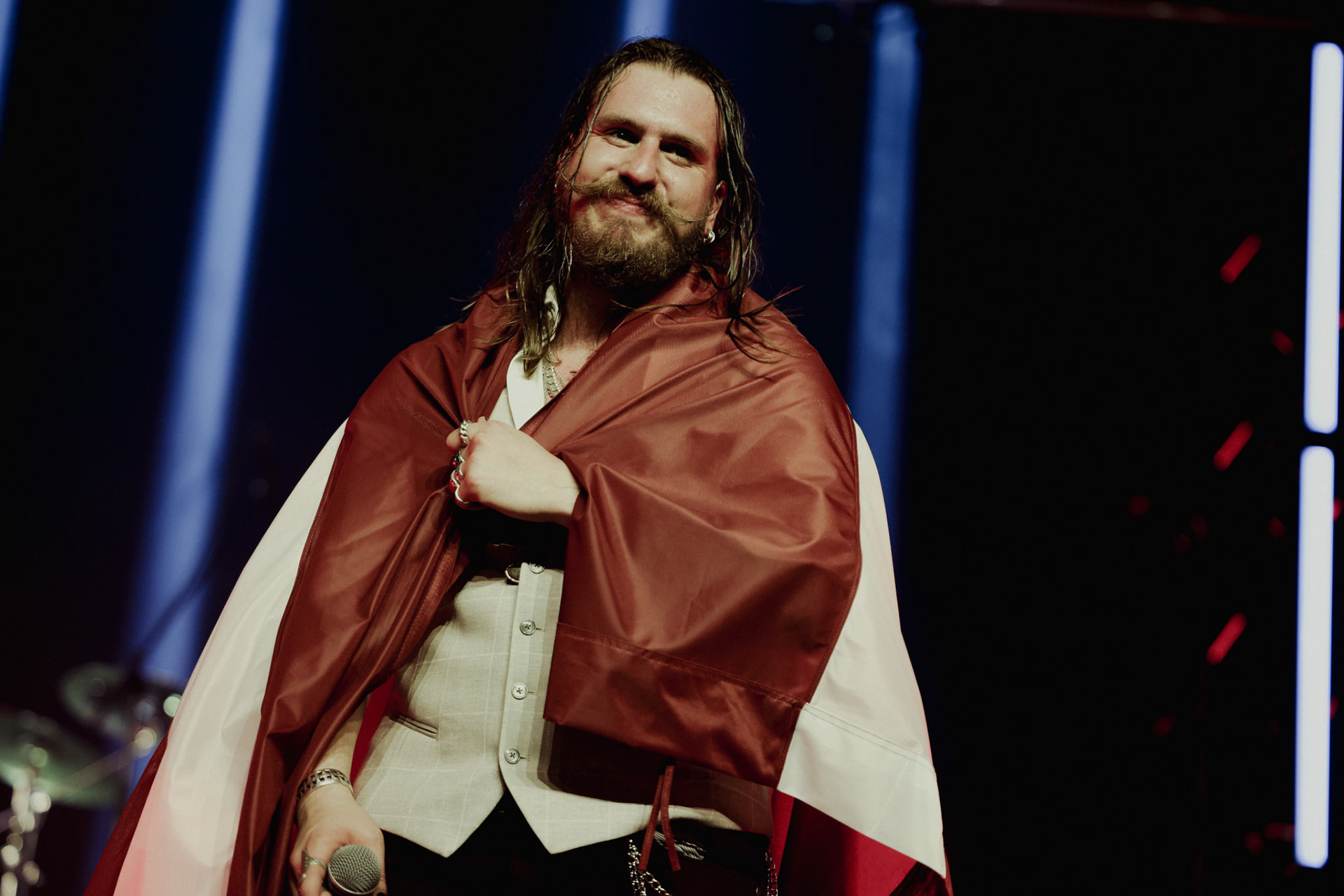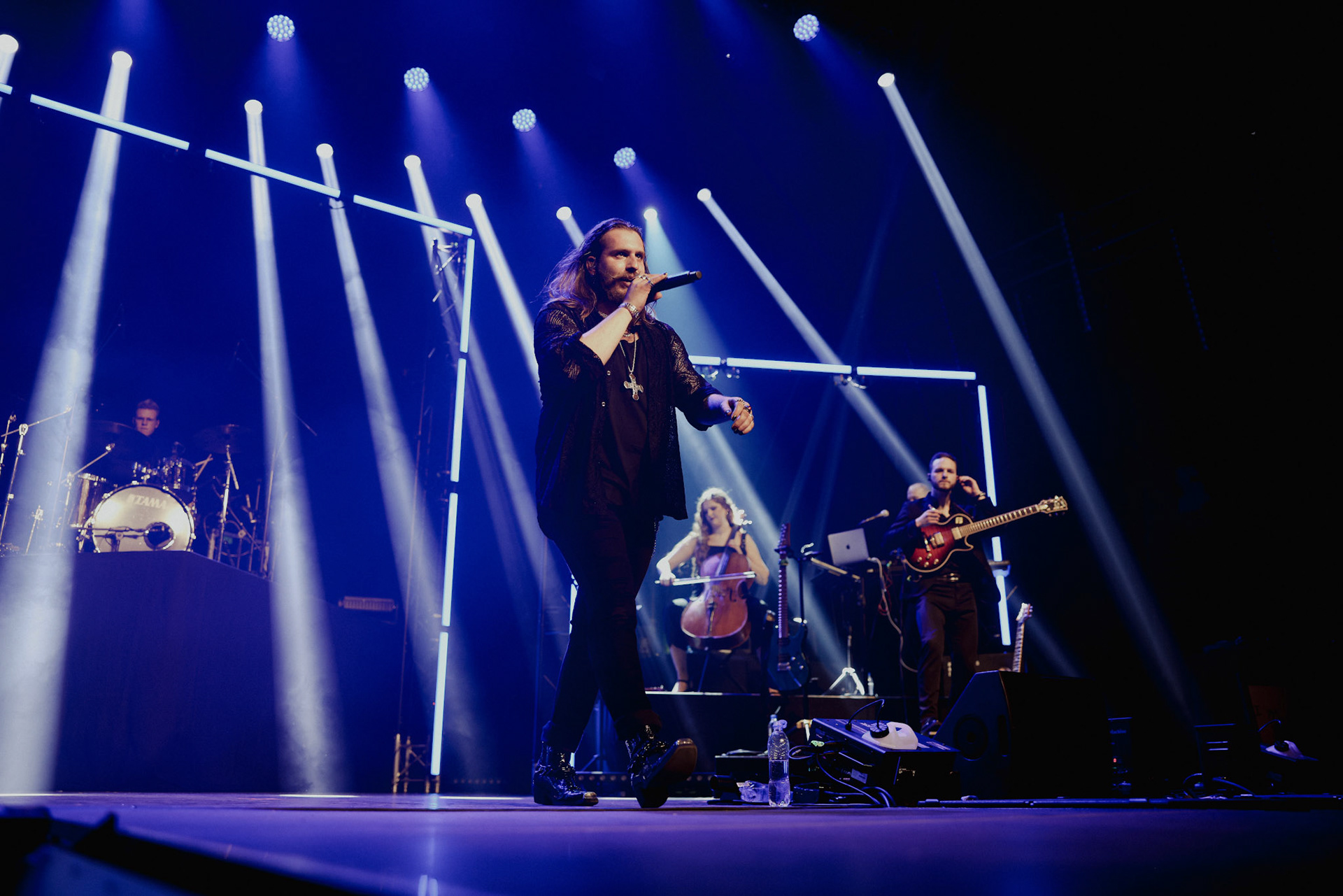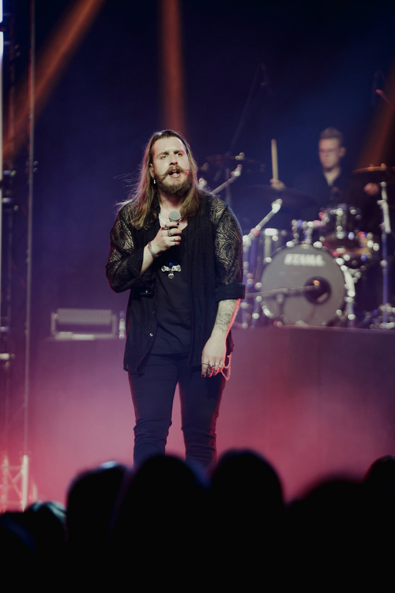 Concert photography from Miks Galvanovskis performance at Palladium Riga, capturing his emotional delivery, dynamic stage presence, and the intimate connection with the audience.