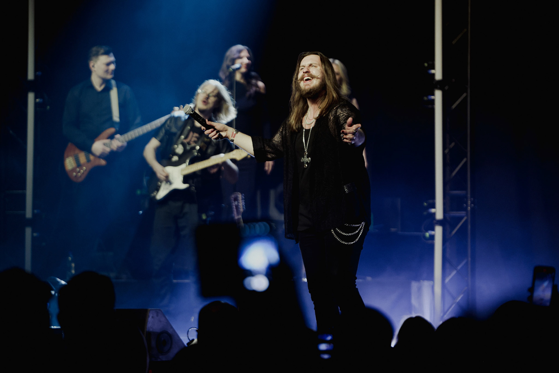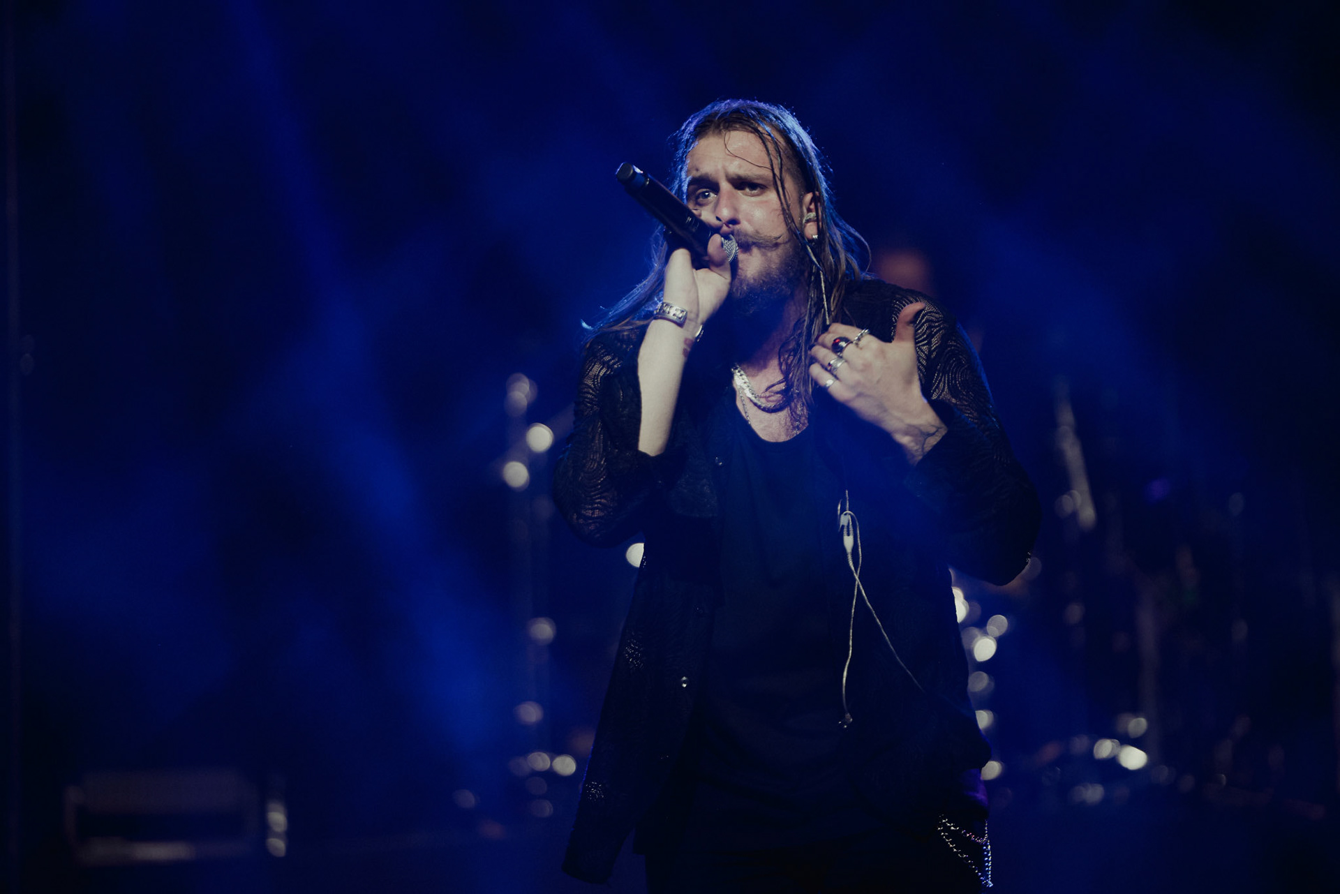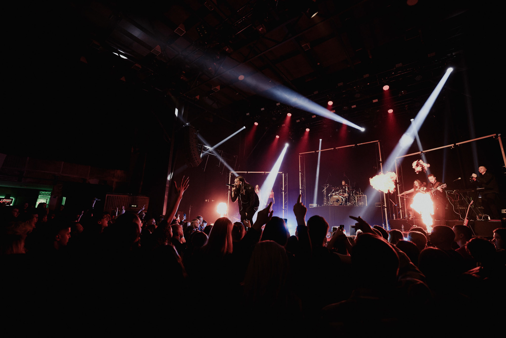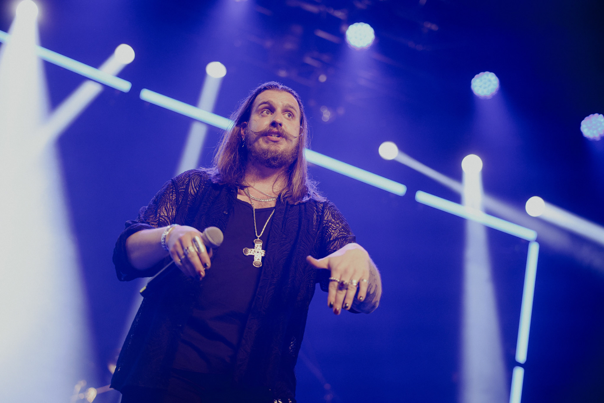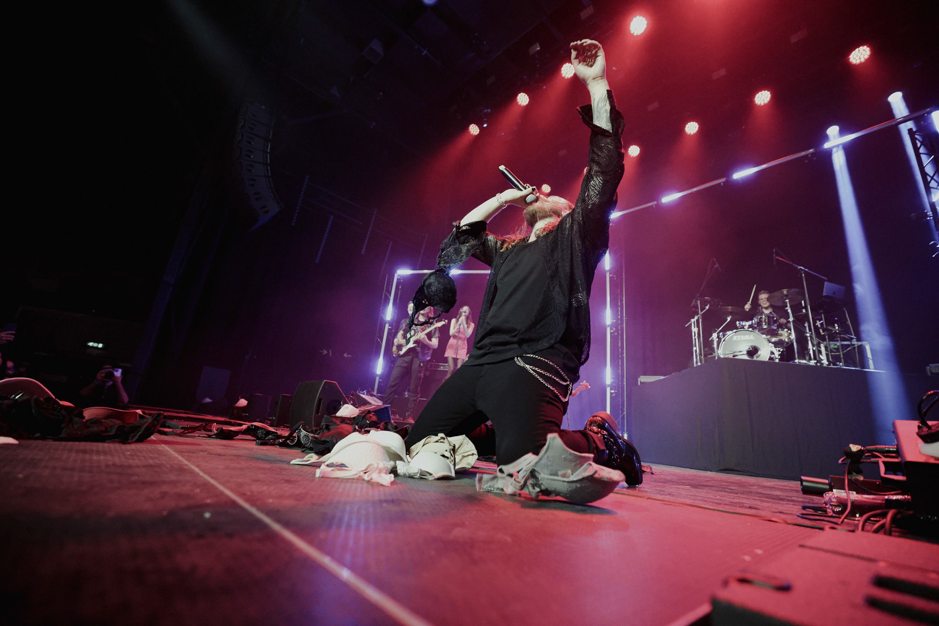 Concert photography from Miks Galvanovskis performance at Palladium Riga, capturing his emotional delivery, dynamic stage presence, and the intimate connection with the audience.
