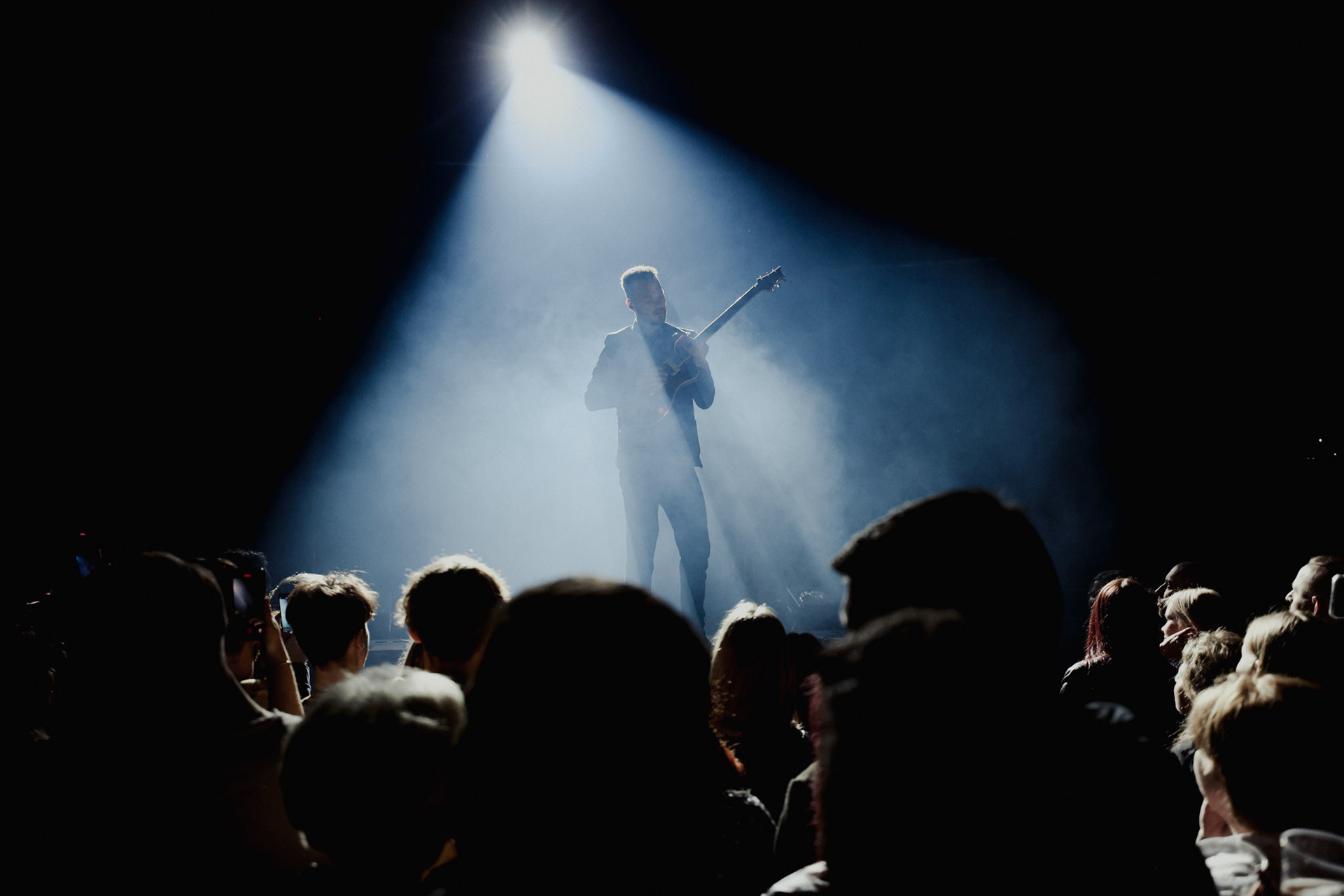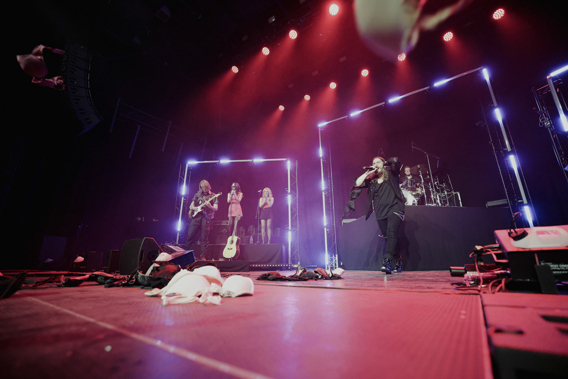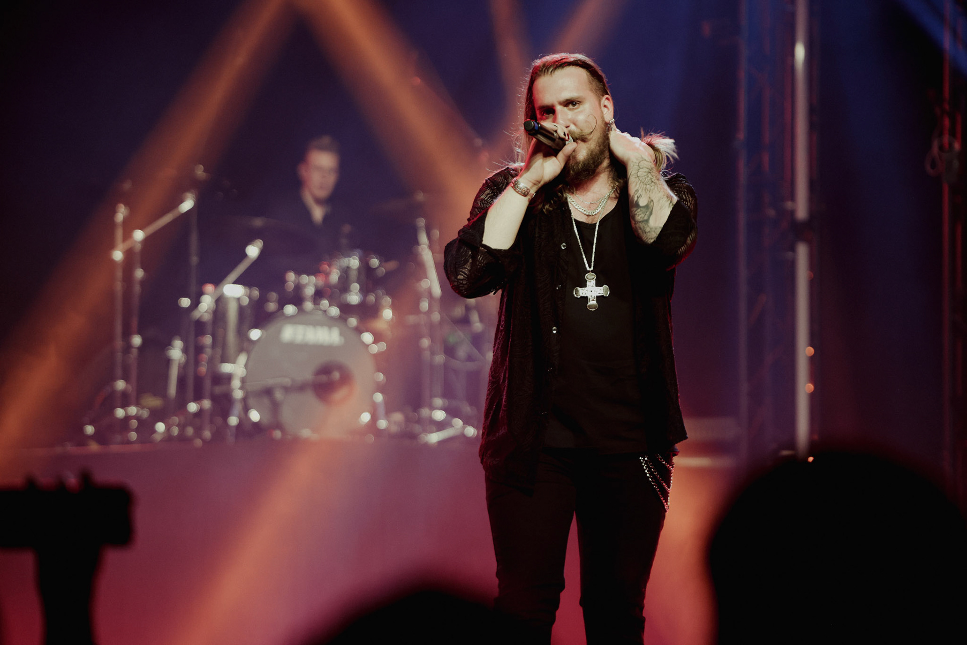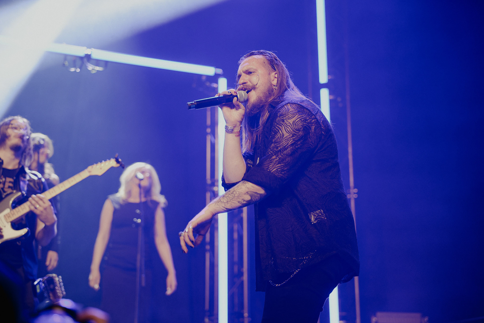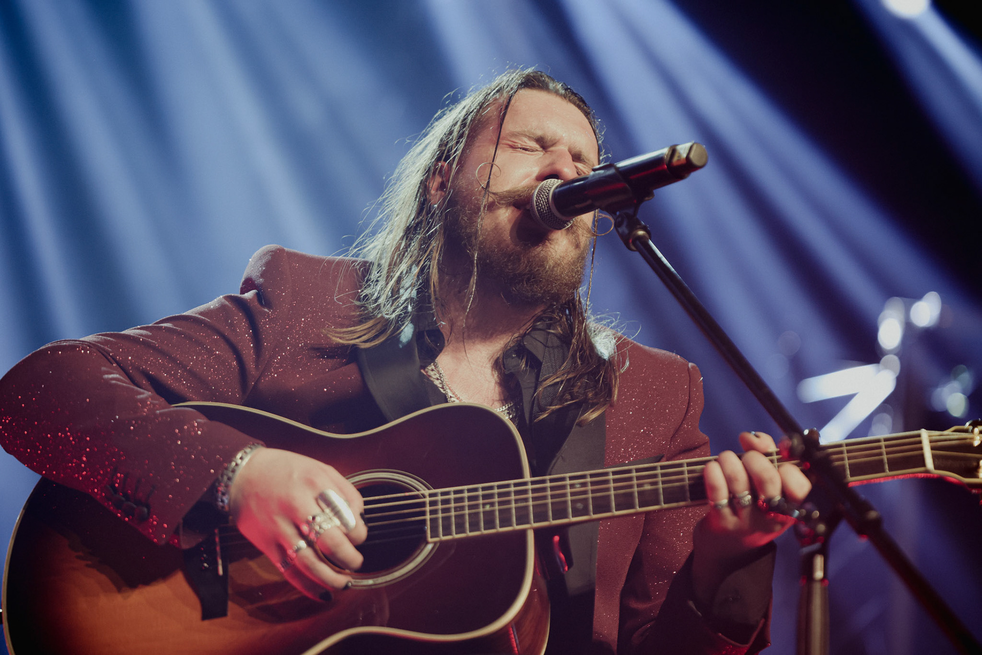 Concert photography from Miks Galvanovskis performance at Palladium Riga, capturing his emotional delivery, dynamic stage presence, and the intimate connection with the audience.