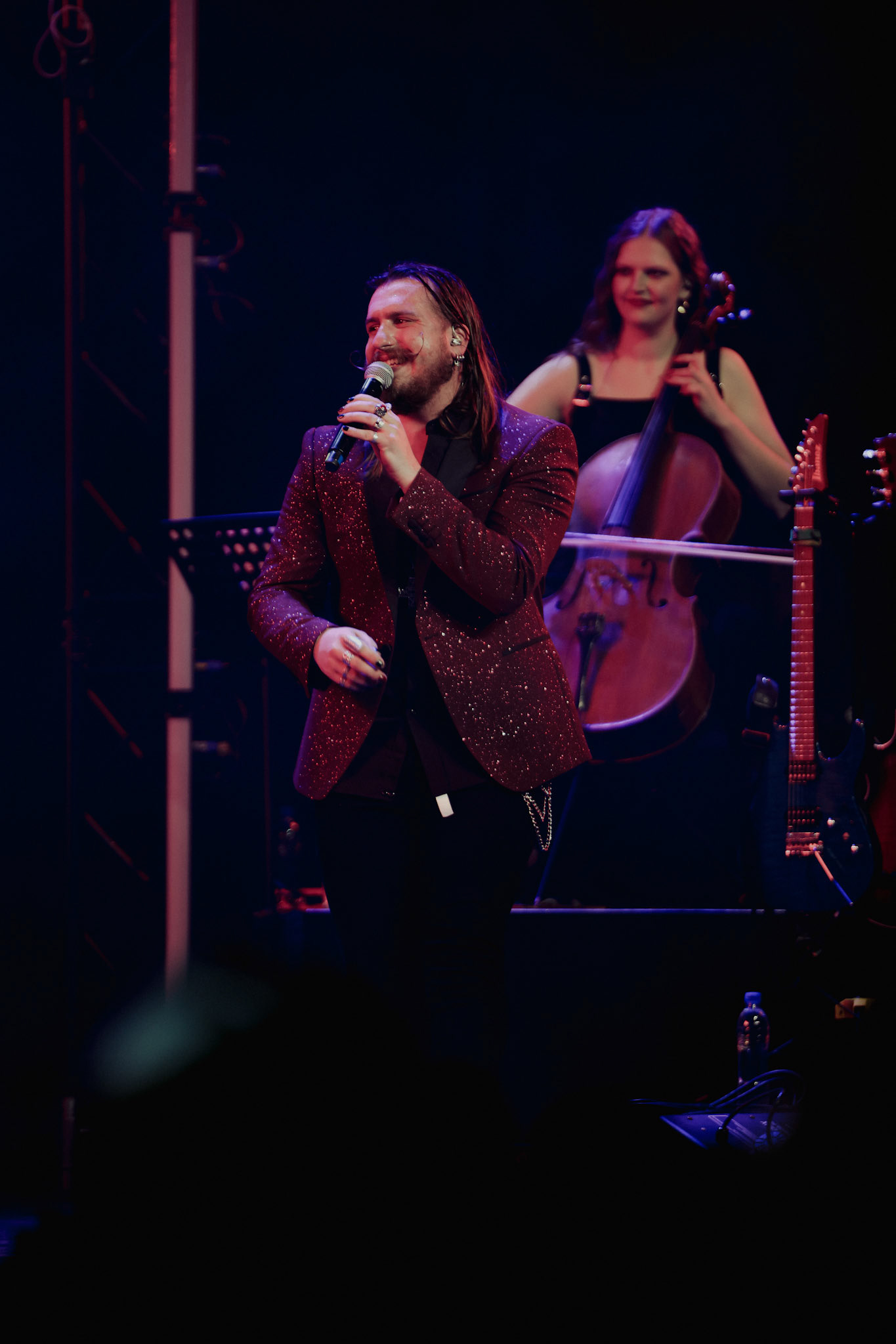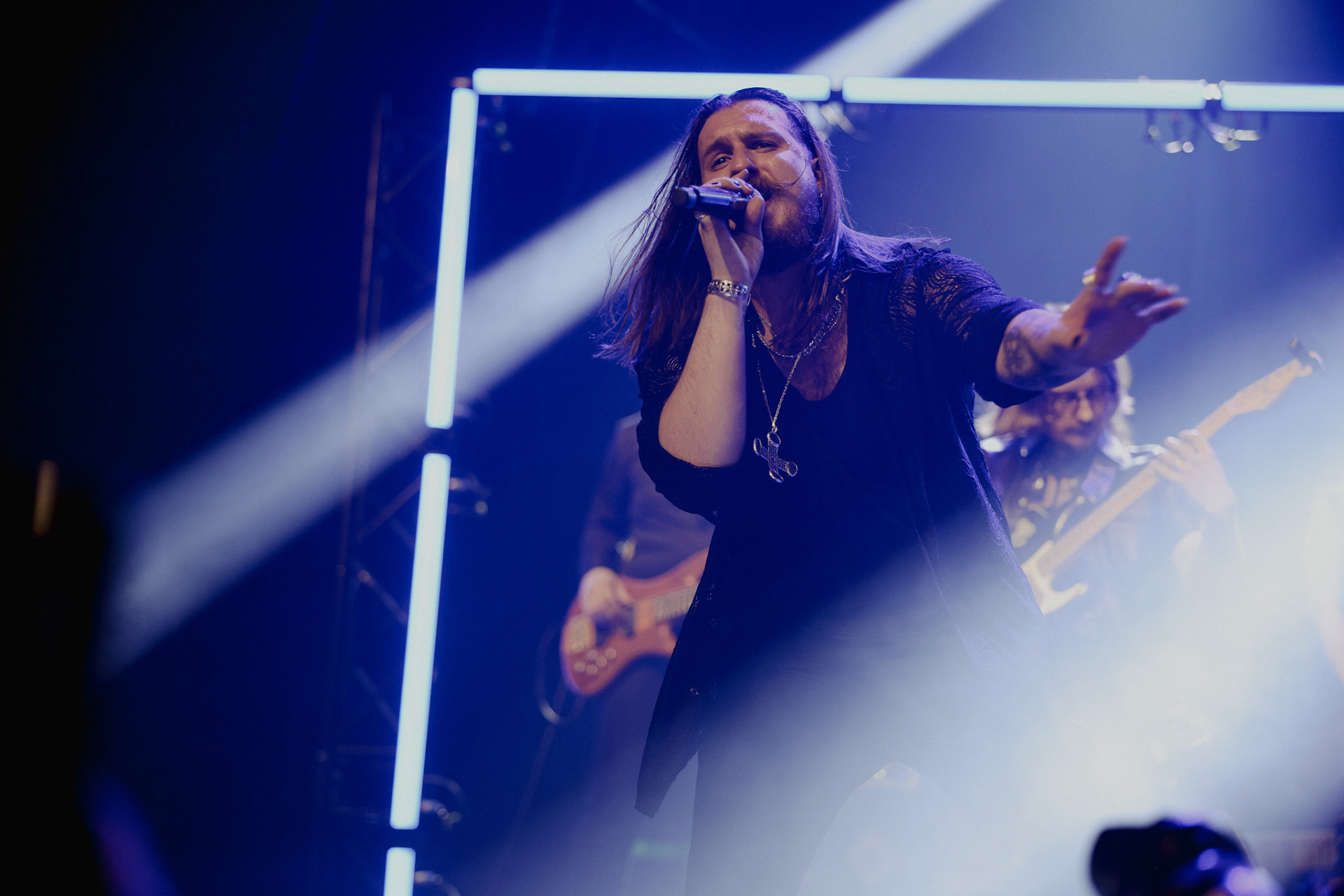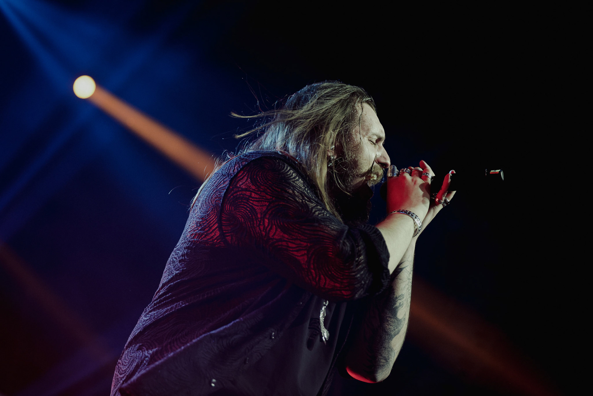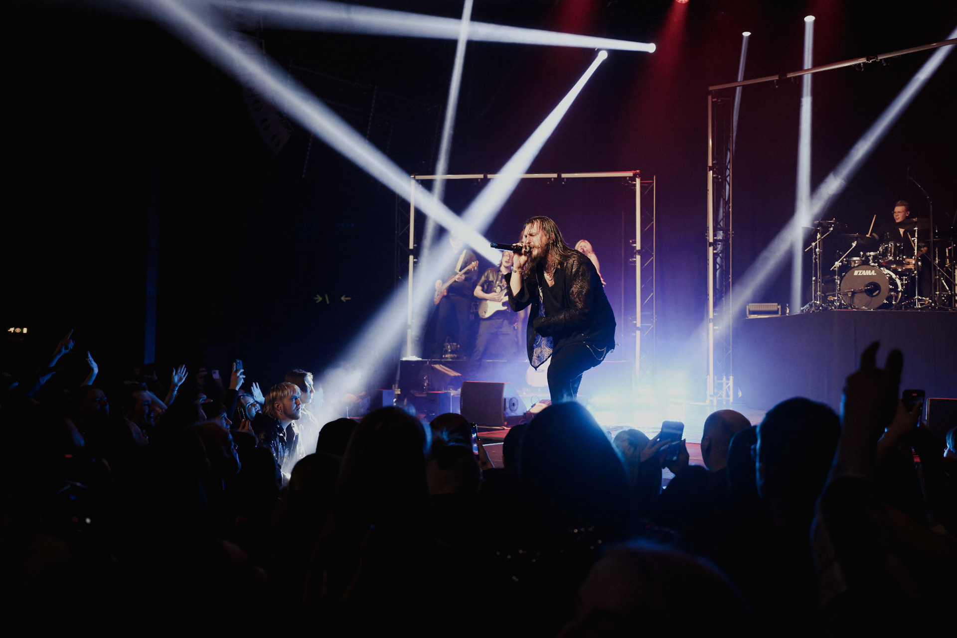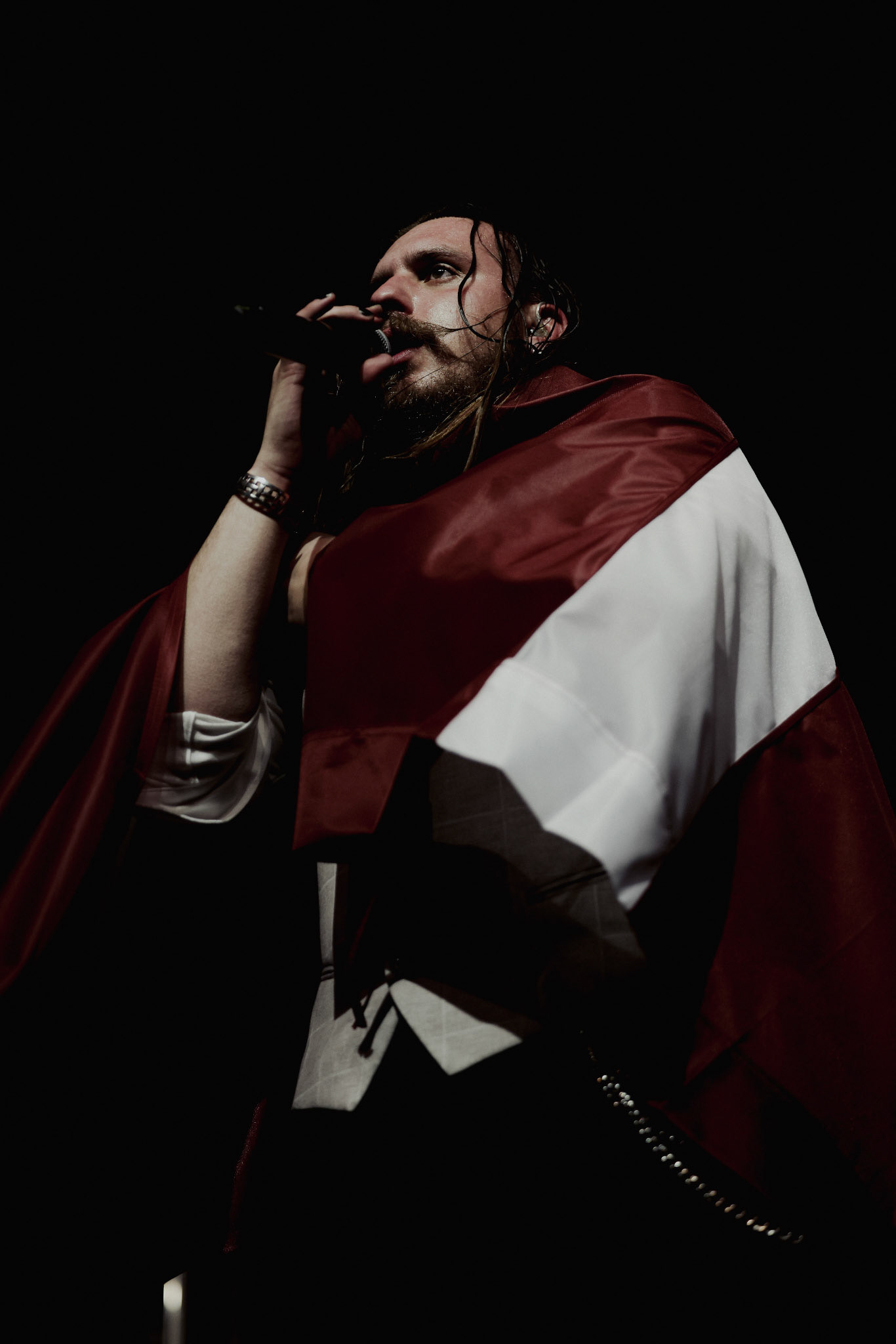 Concert photography from Miks Galvanovskis performance at Palladium Riga, capturing his emotional delivery, dynamic stage presence, and the intimate connection with the audience.