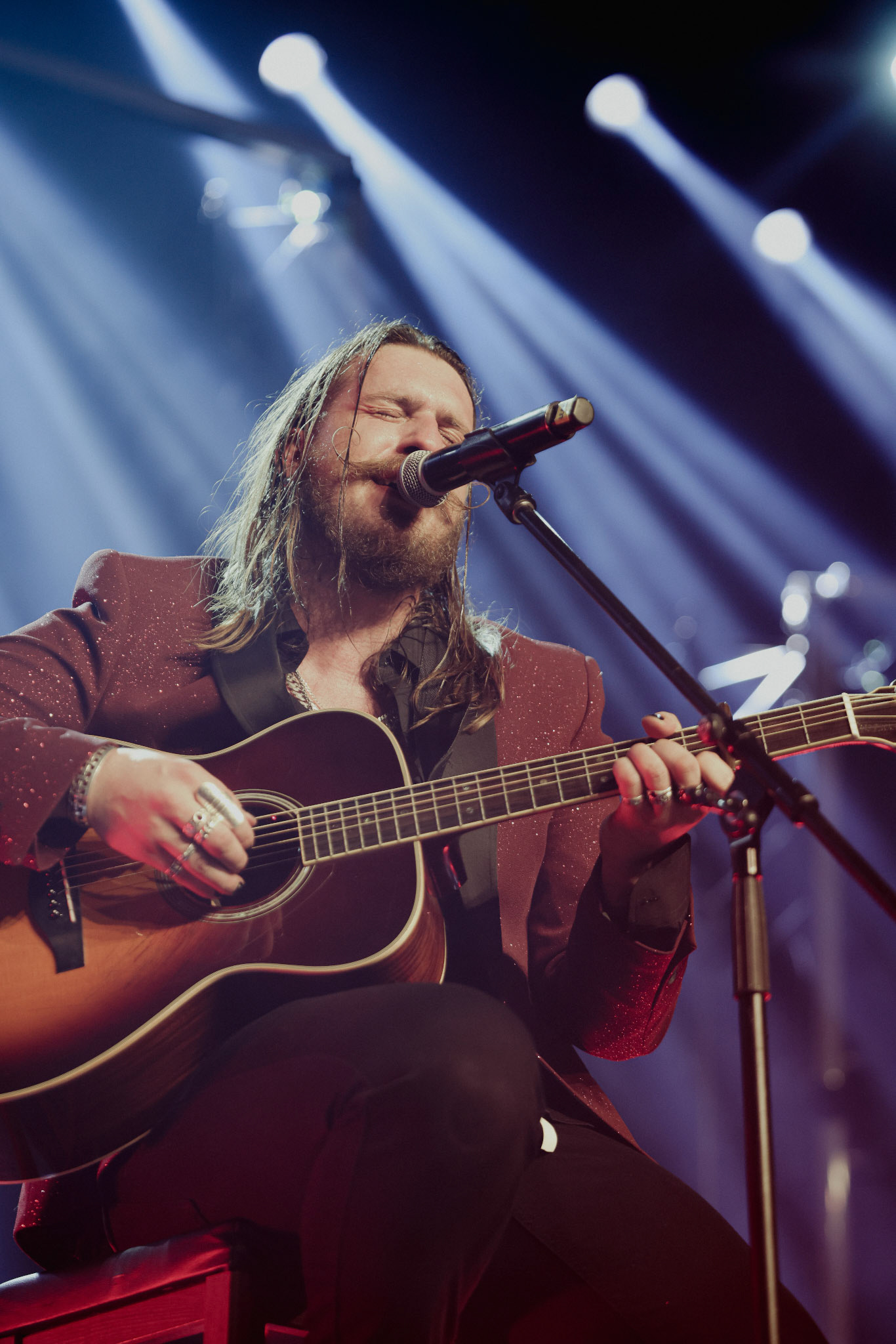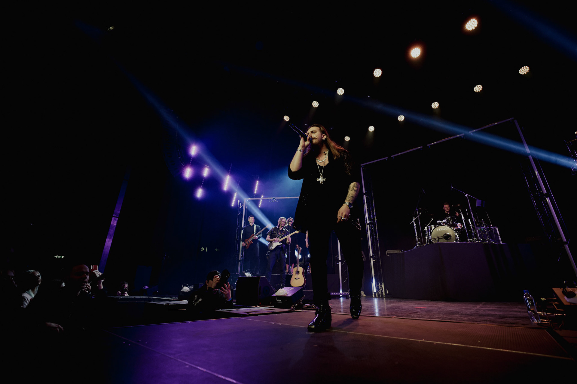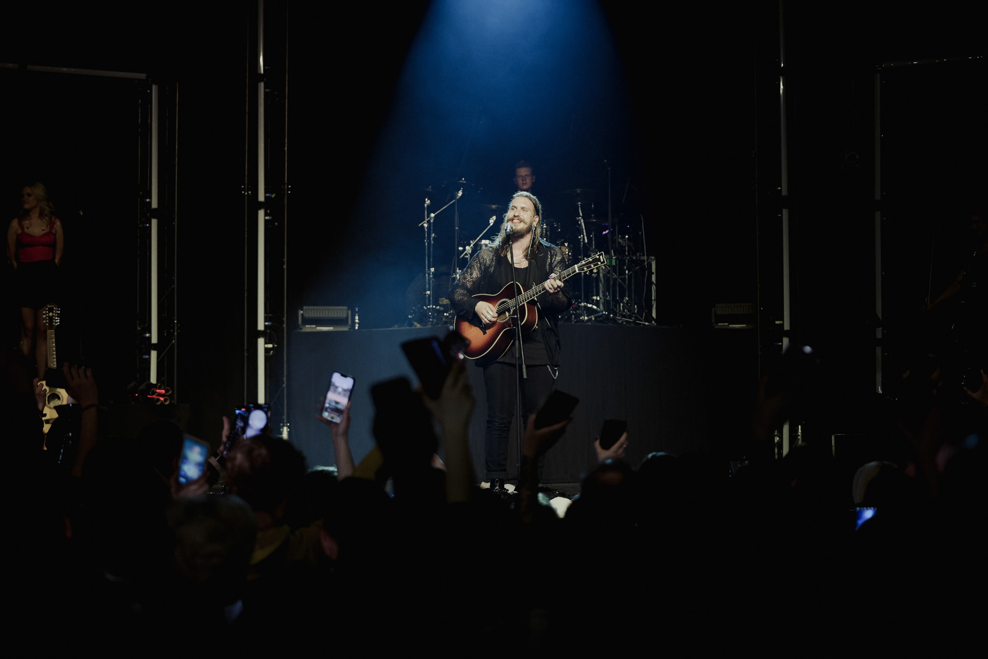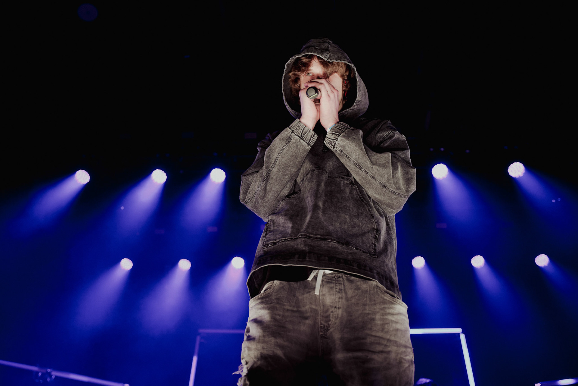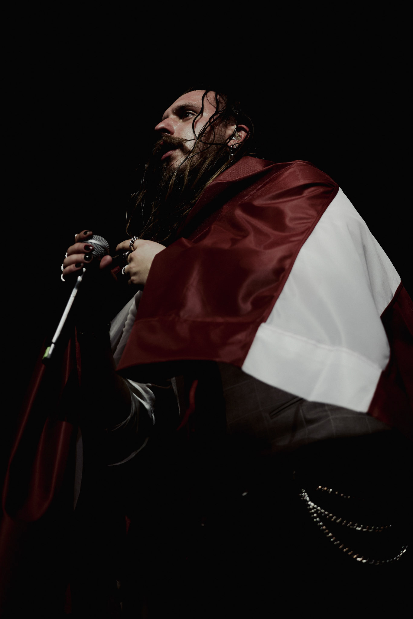 Concert photography from Miks Galvanovskis performance at Palladium Riga, capturing his emotional delivery, dynamic stage presence, and the intimate connection with the audience.