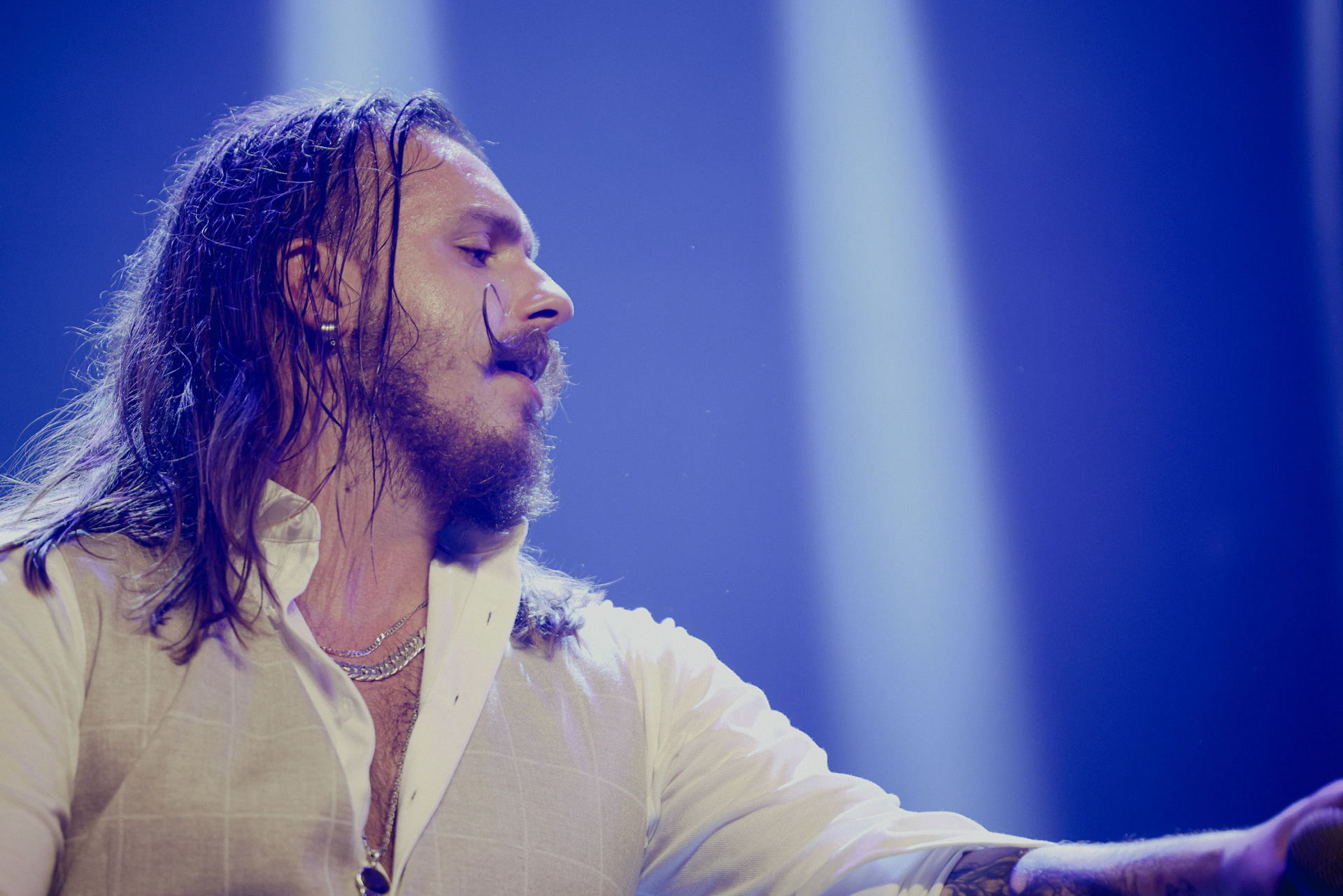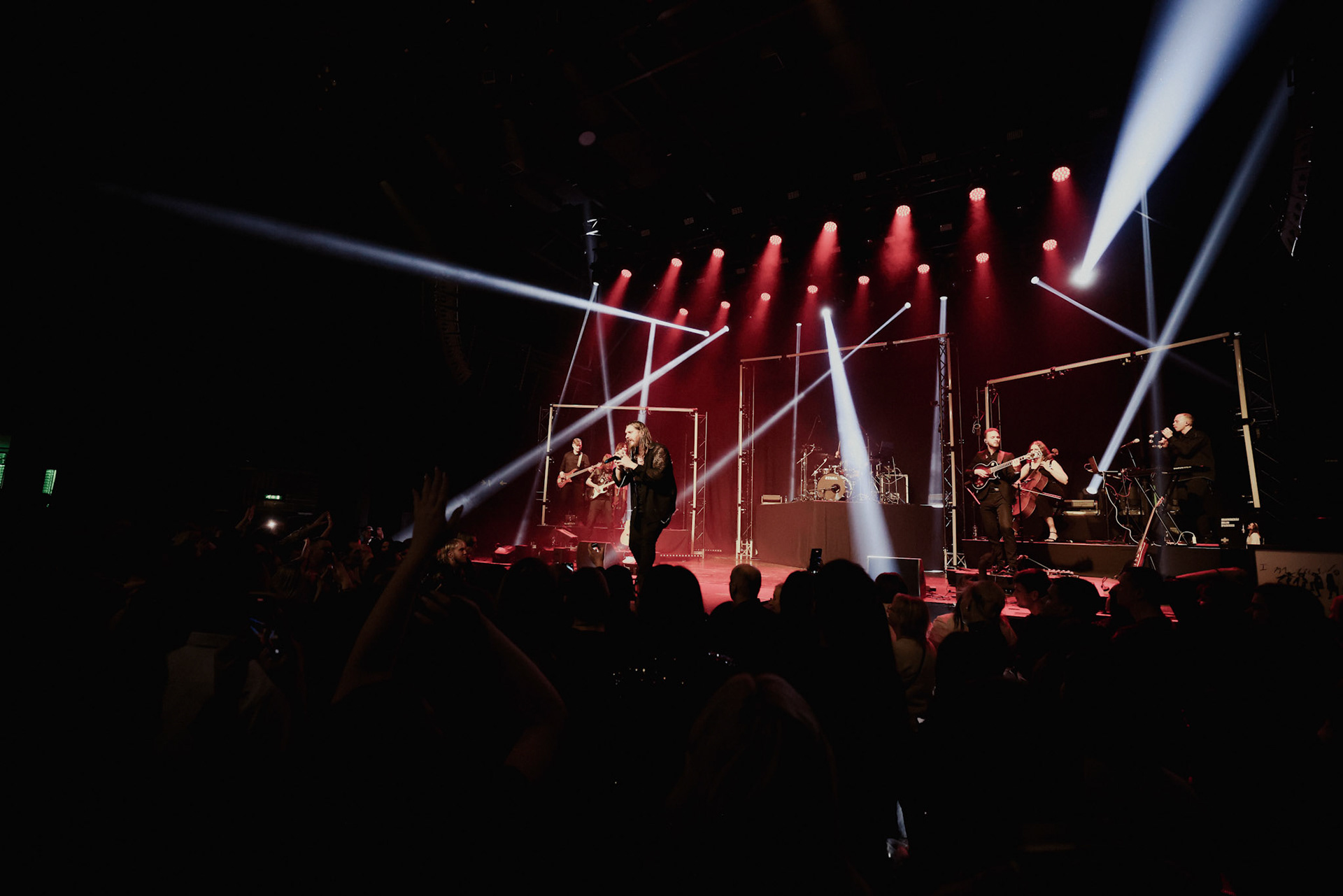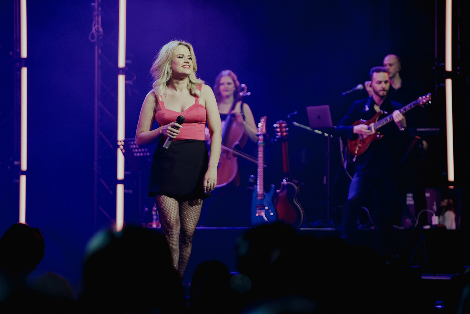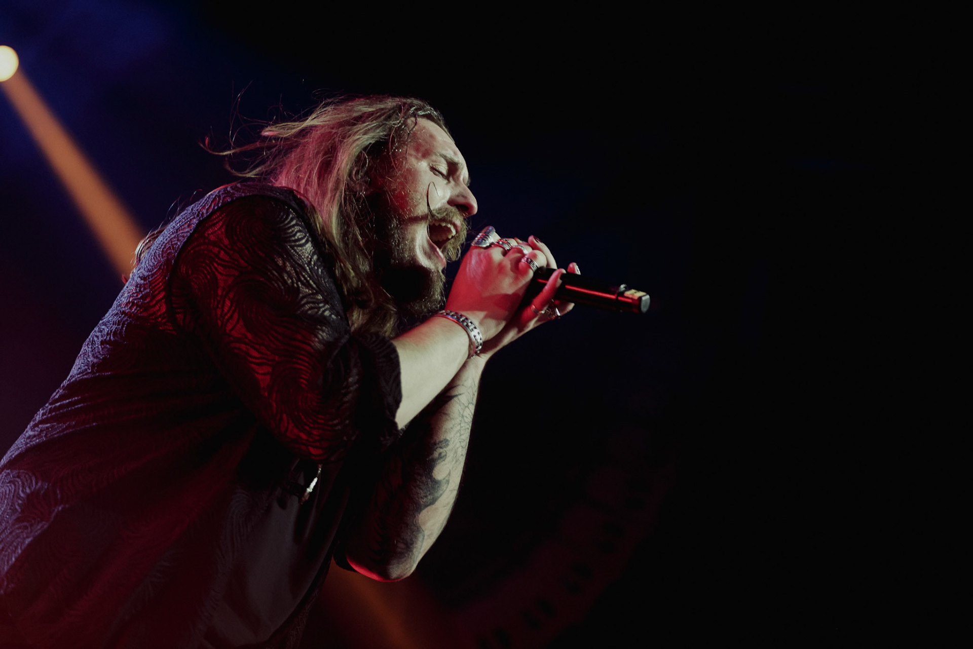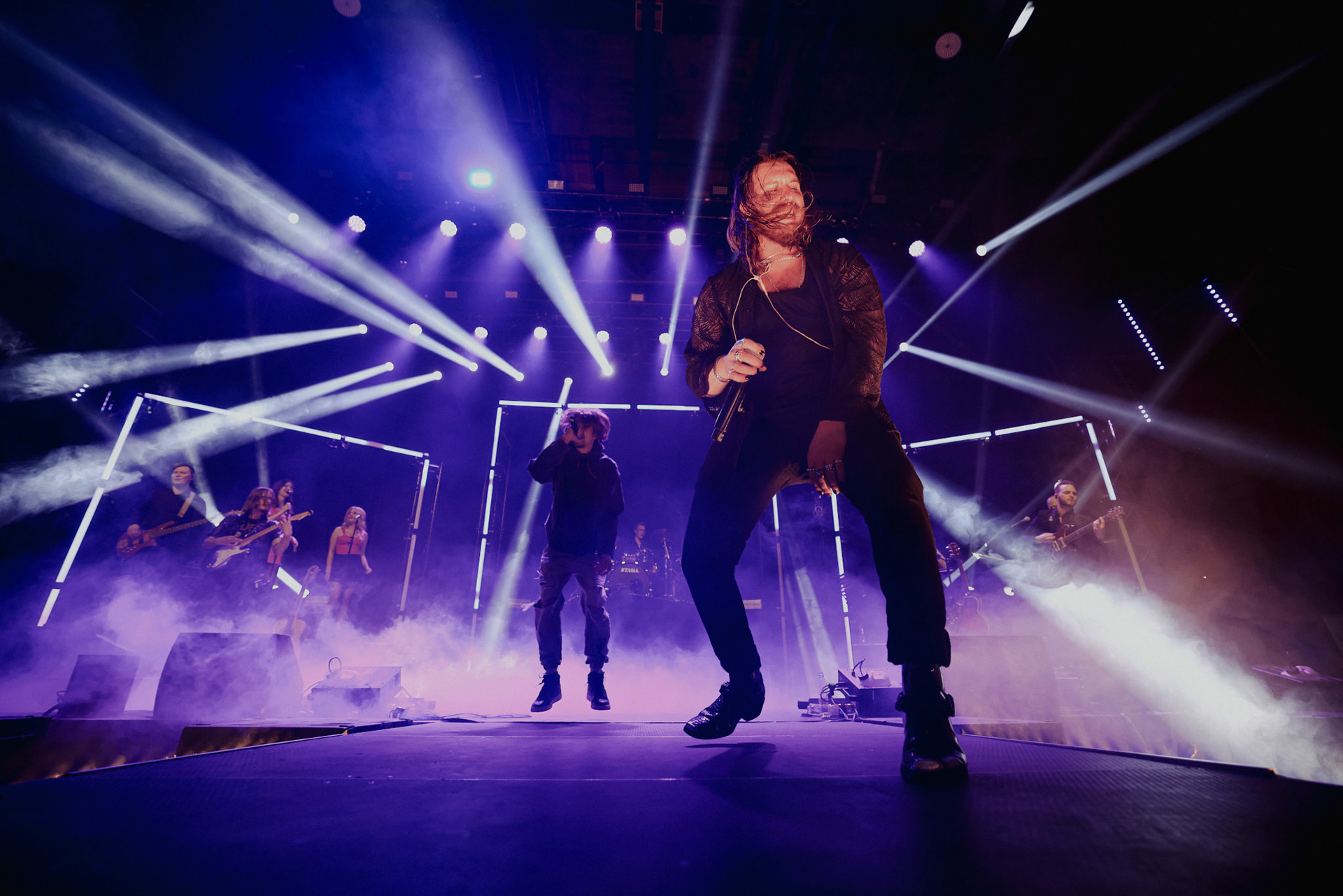 Concert photography from Miks Galvanovskis performance at Palladium Riga, capturing his emotional delivery, dynamic stage presence, and the intimate connection with the audience.