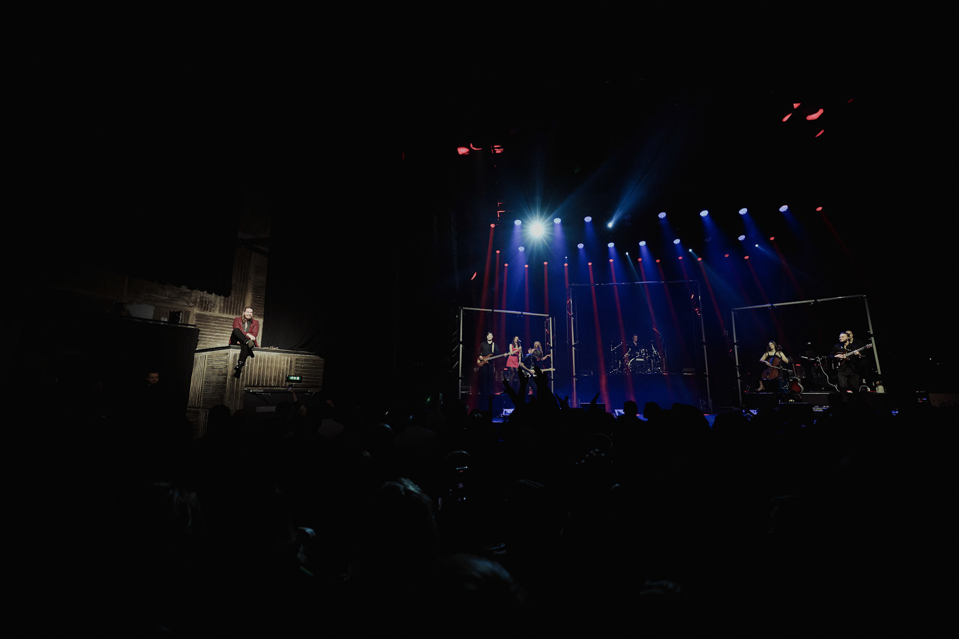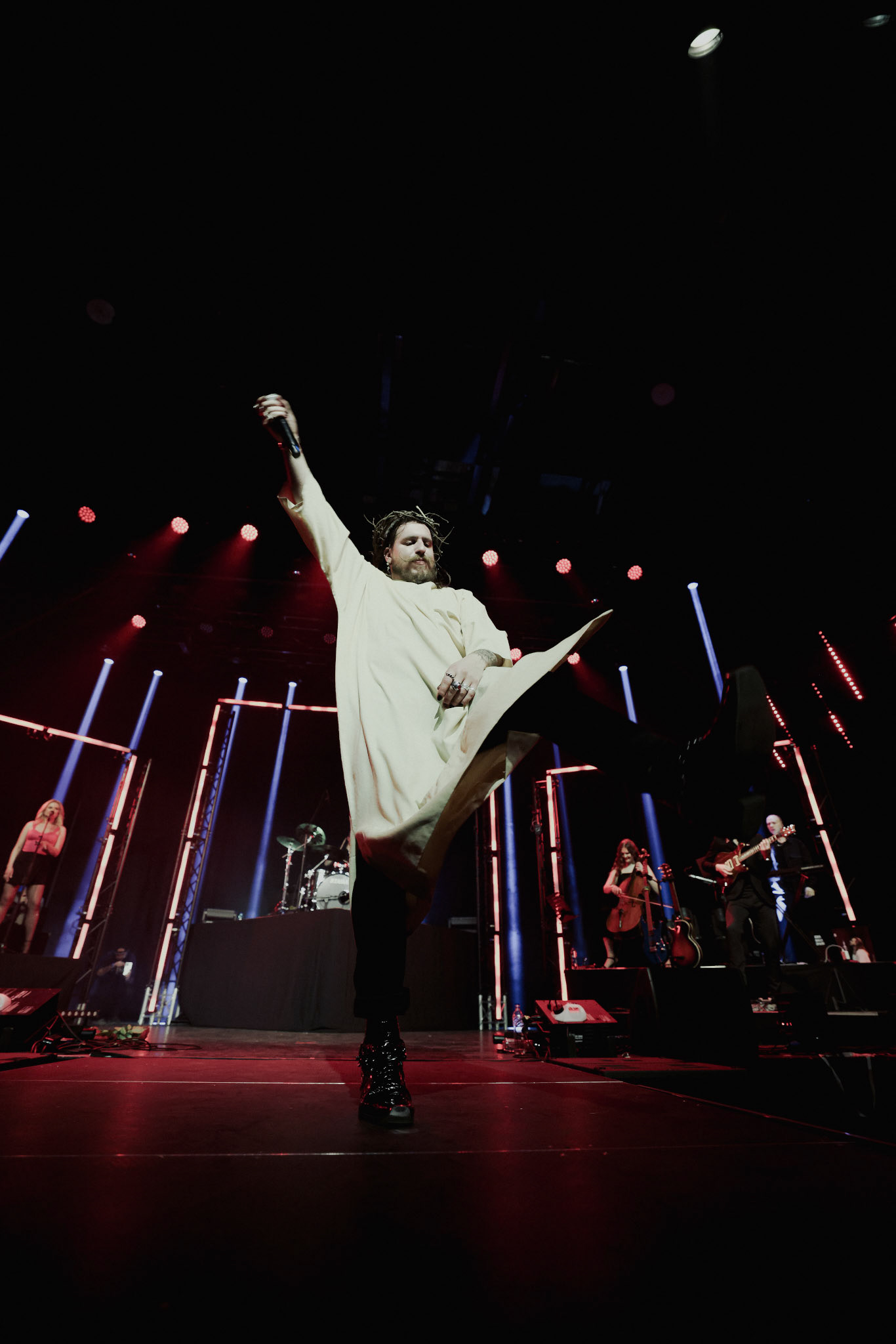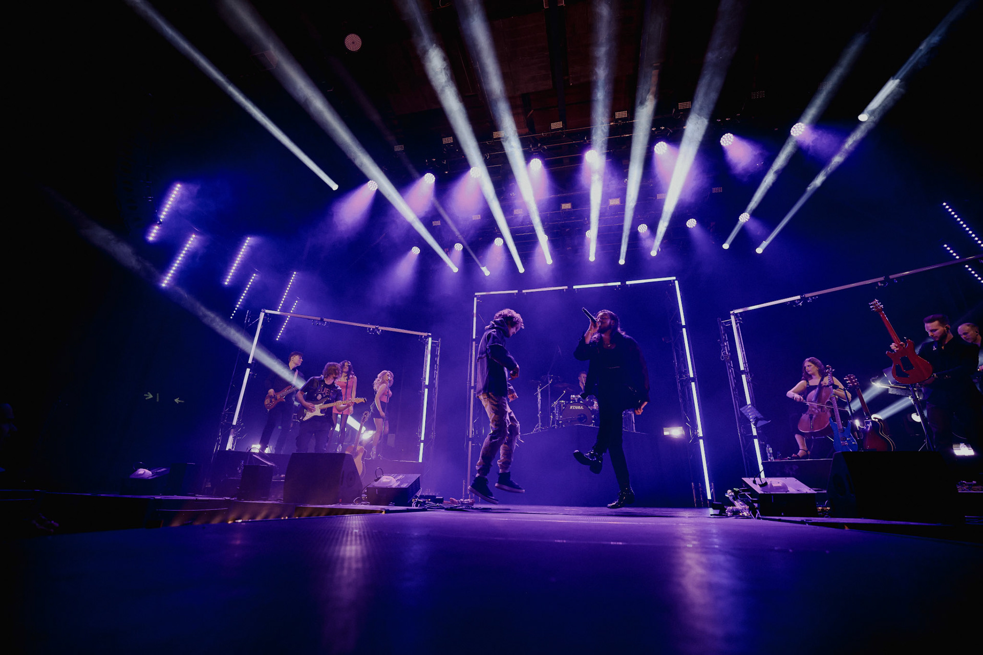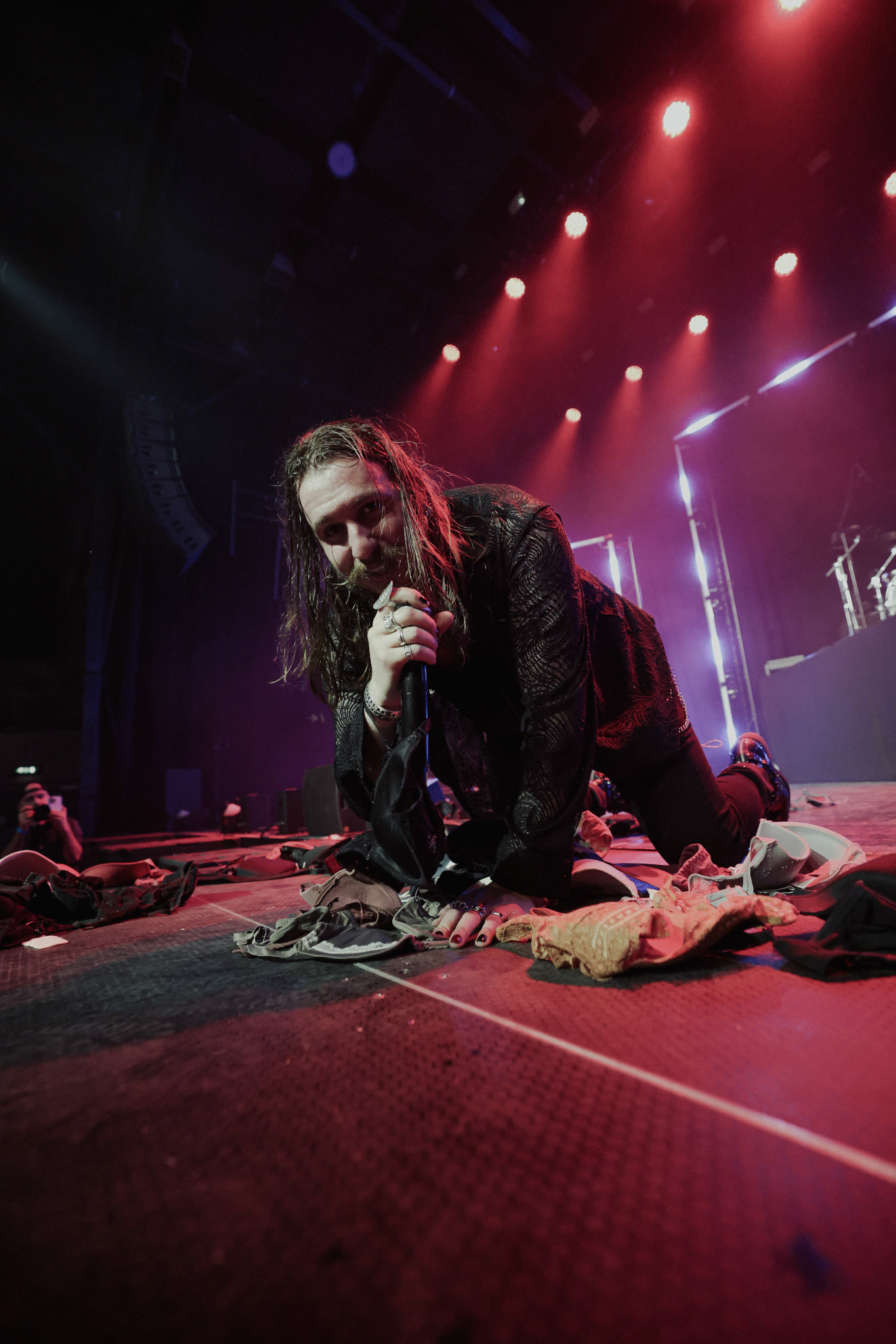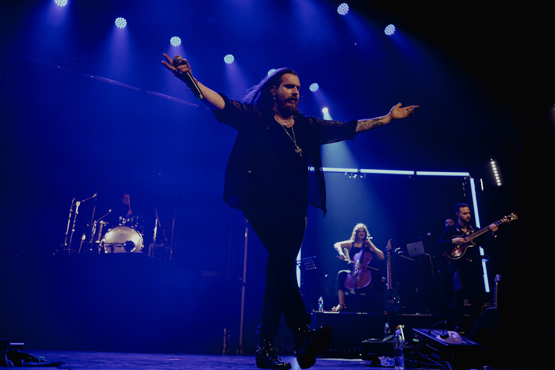 Concert photography from Miks Galvanovskis performance at Palladium Riga, capturing his emotional delivery, dynamic stage presence, and the intimate connection with the audience.