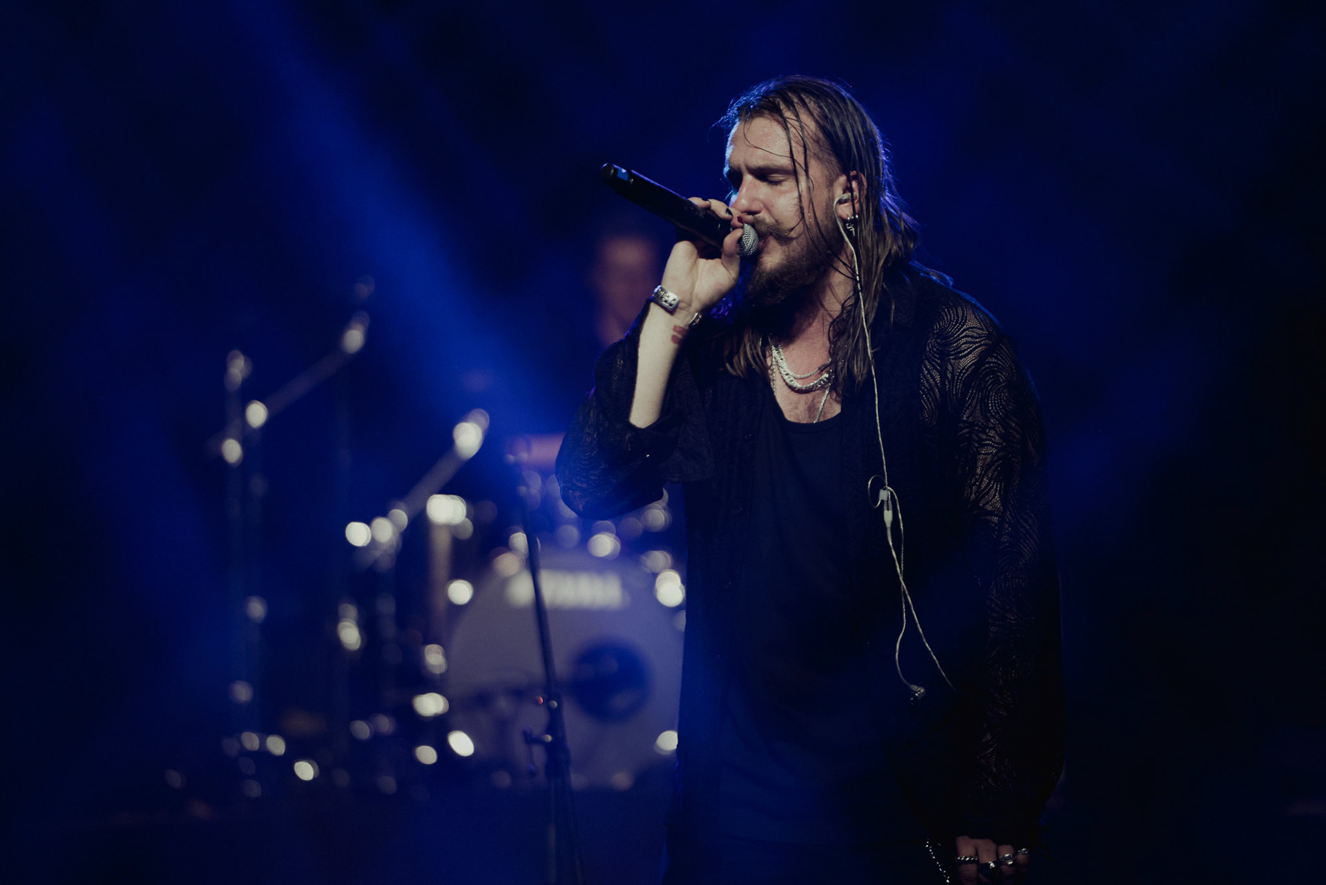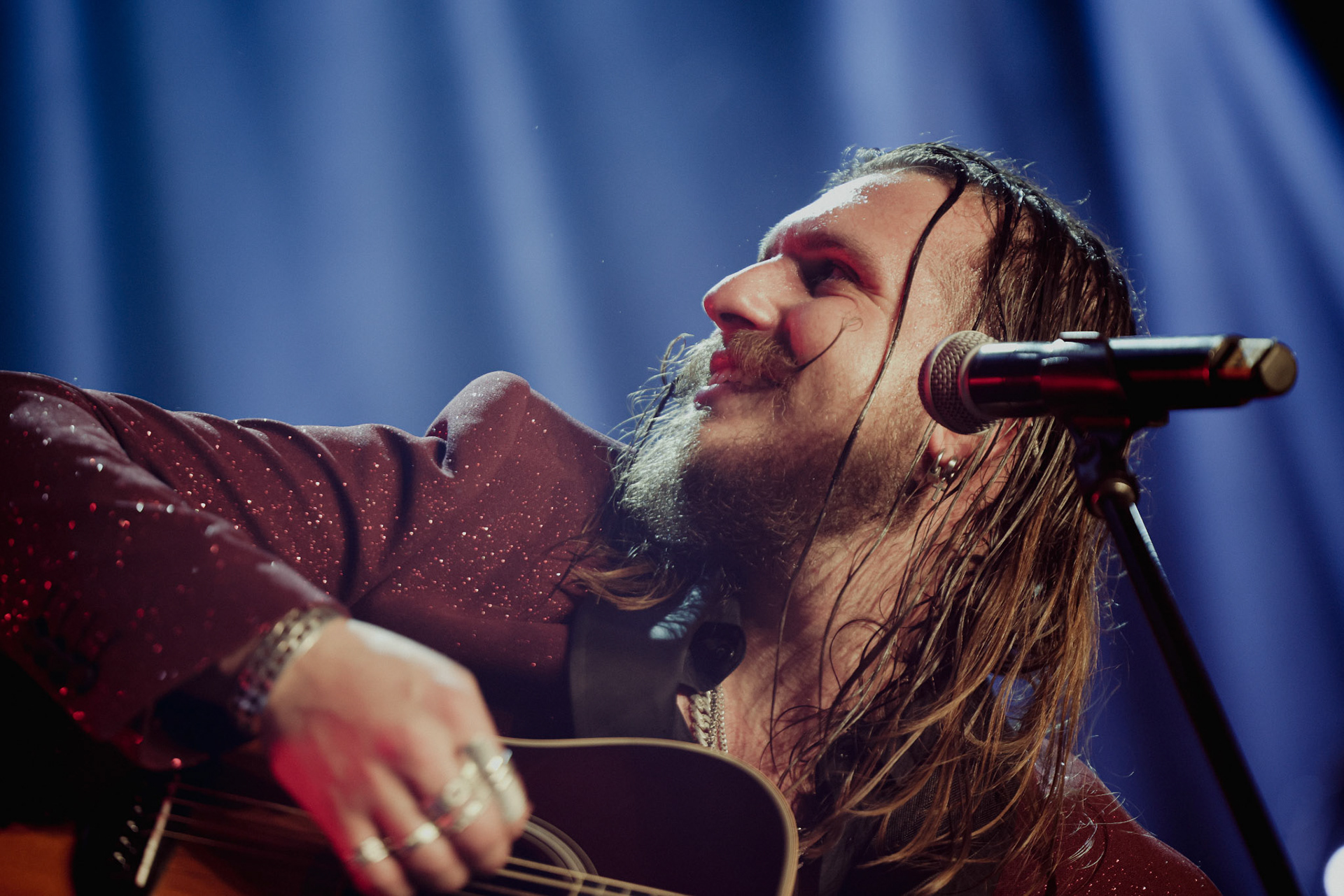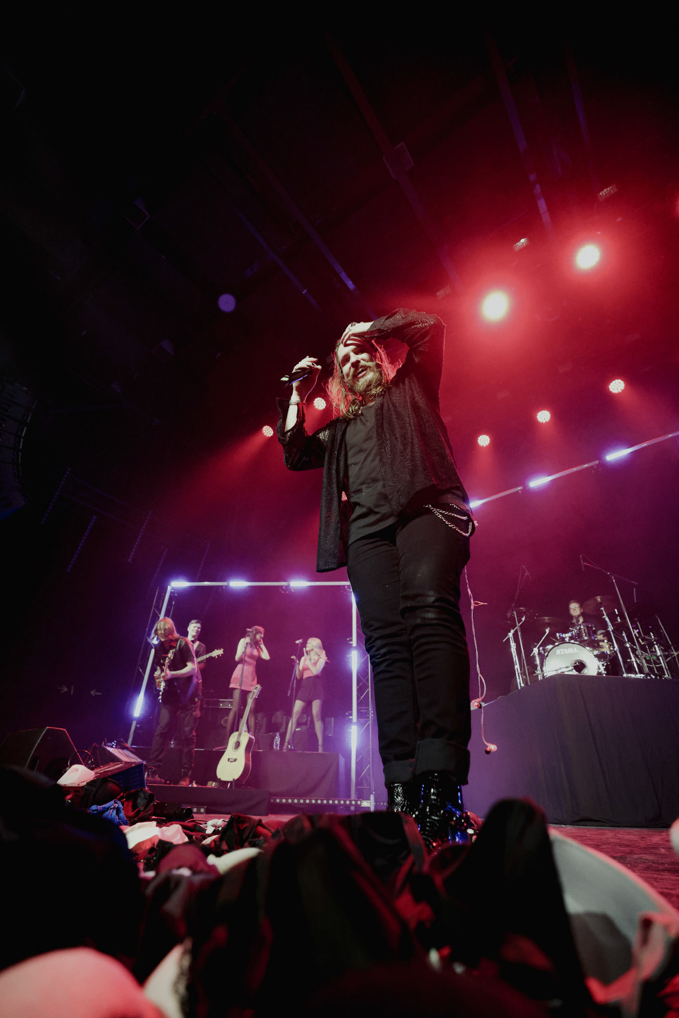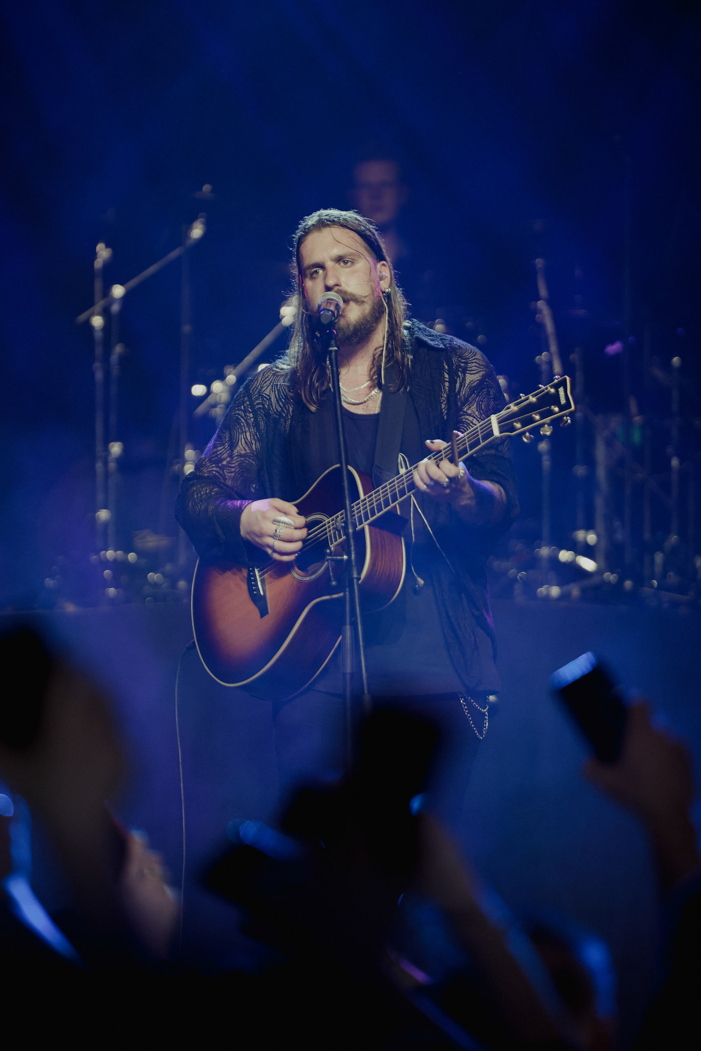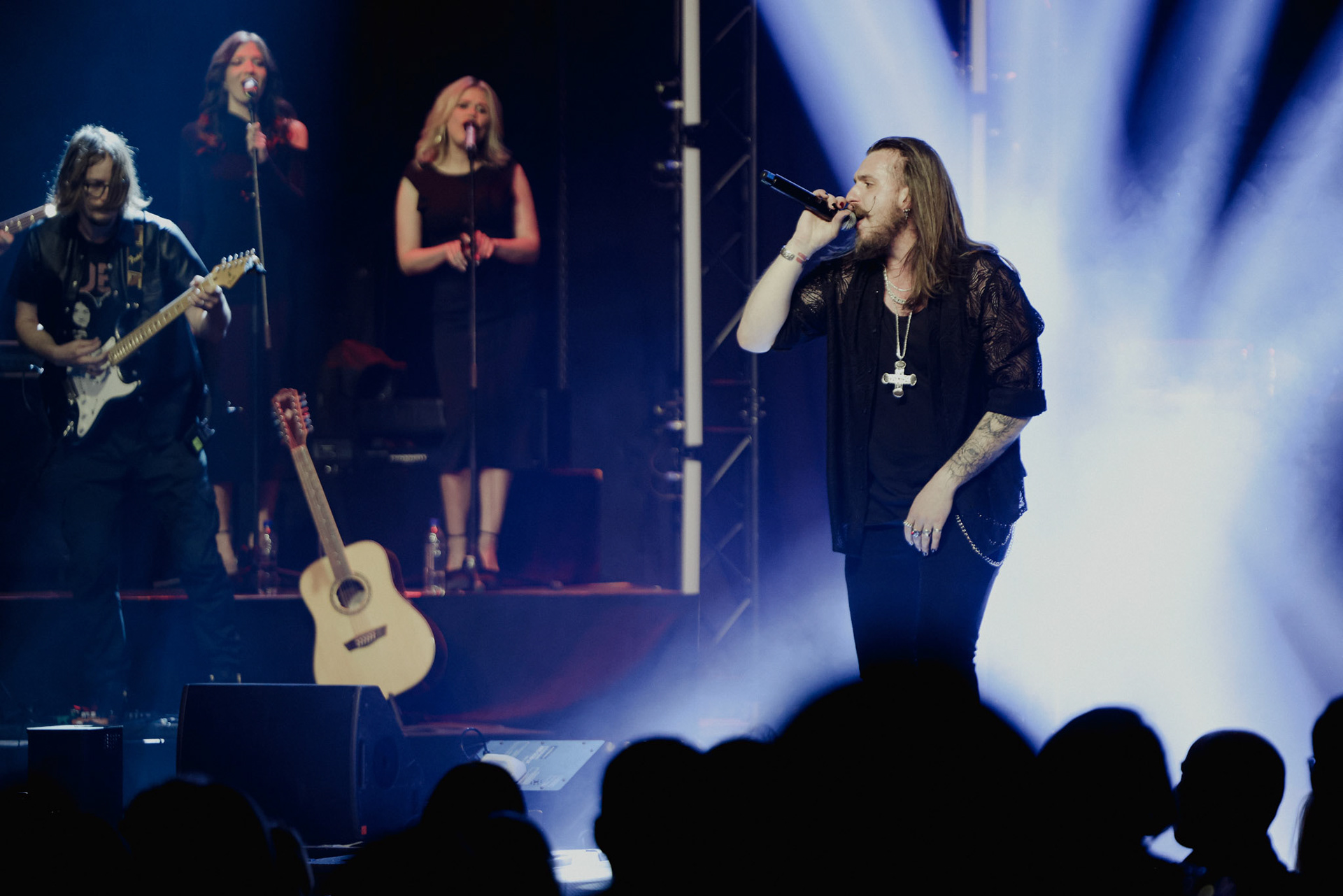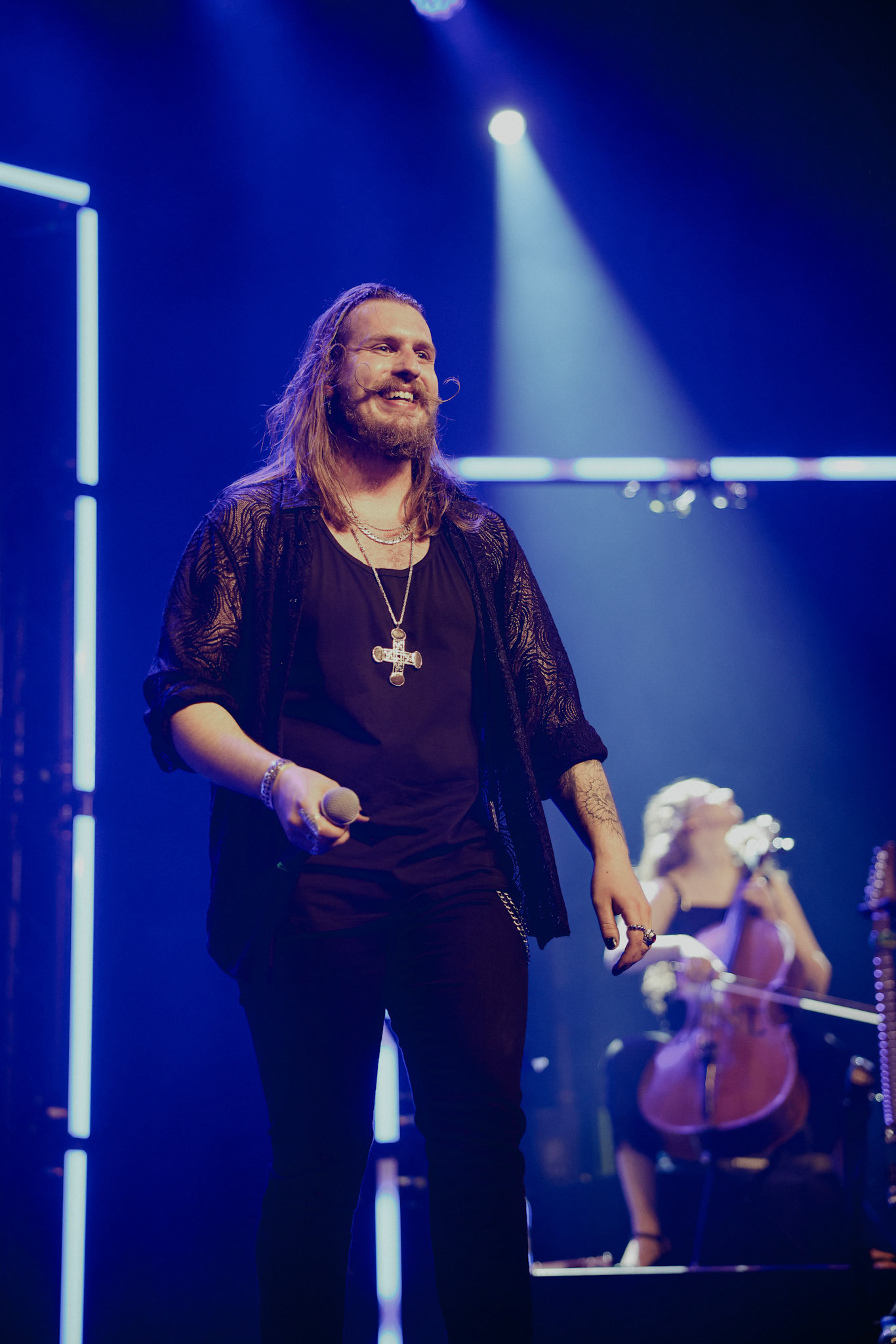Concert photography from Miks Galvanovskis performance at Palladium Riga, capturing his emotional delivery, dynamic stage presence, and the intimate connection with the audience.