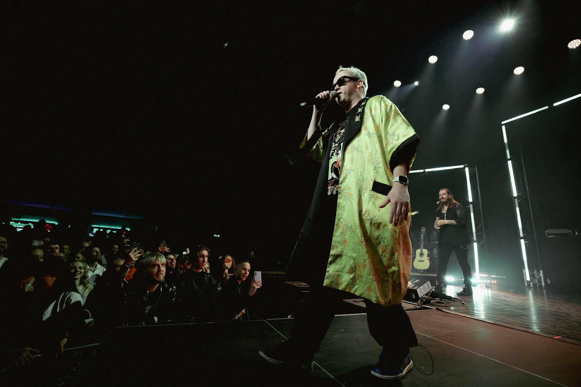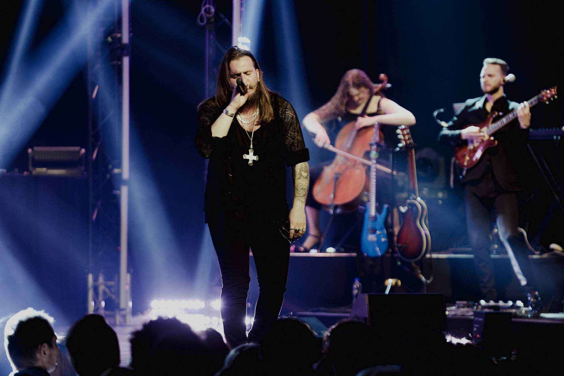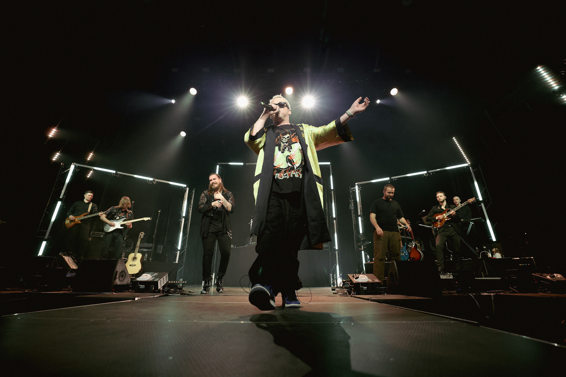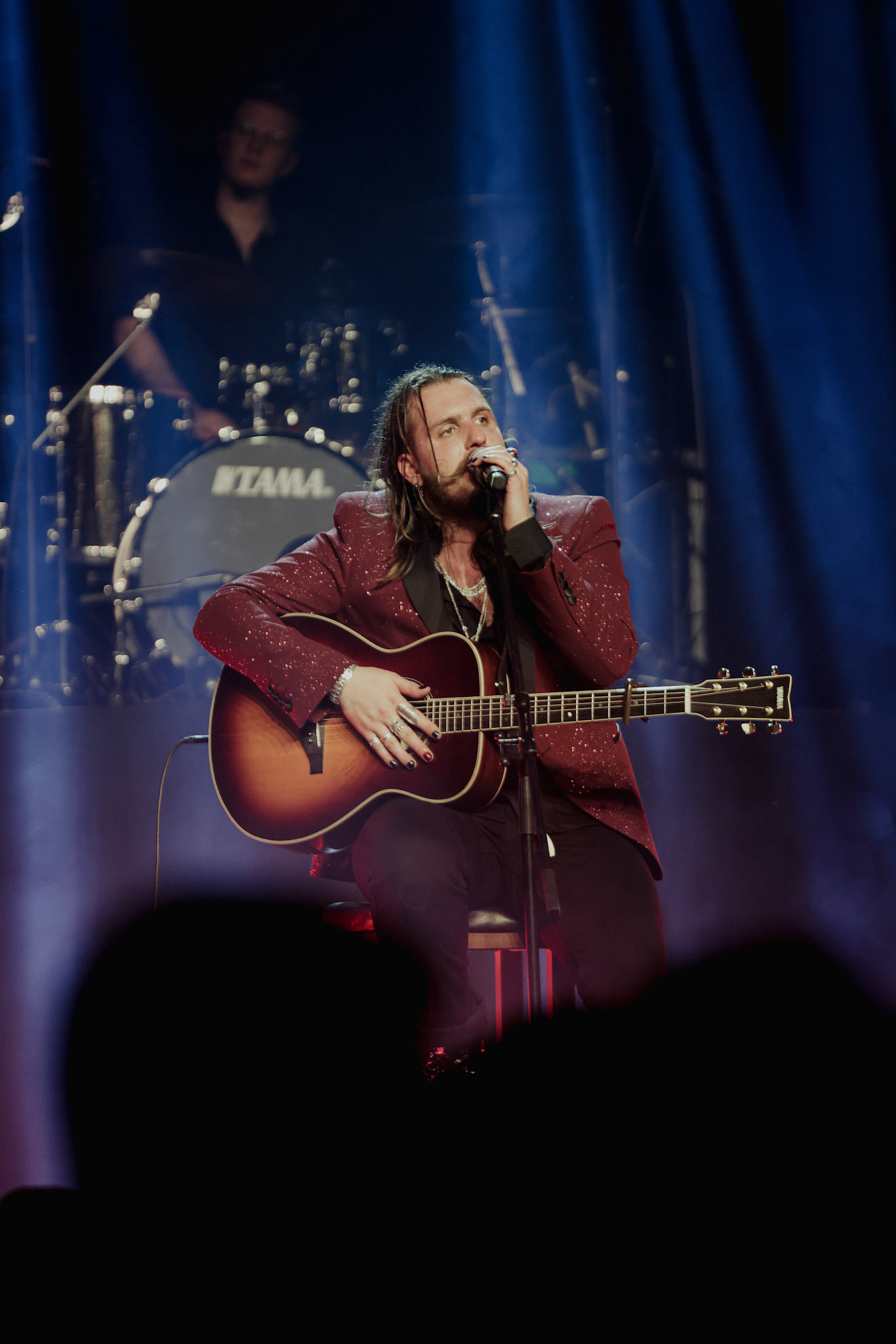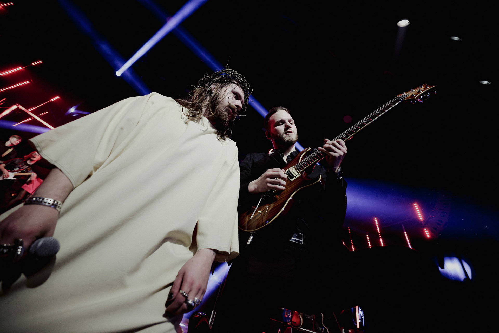 Concert photography from Miks Galvanovskis performance at Palladium Riga, capturing his emotional delivery, dynamic stage presence, and the intimate connection with the audience.