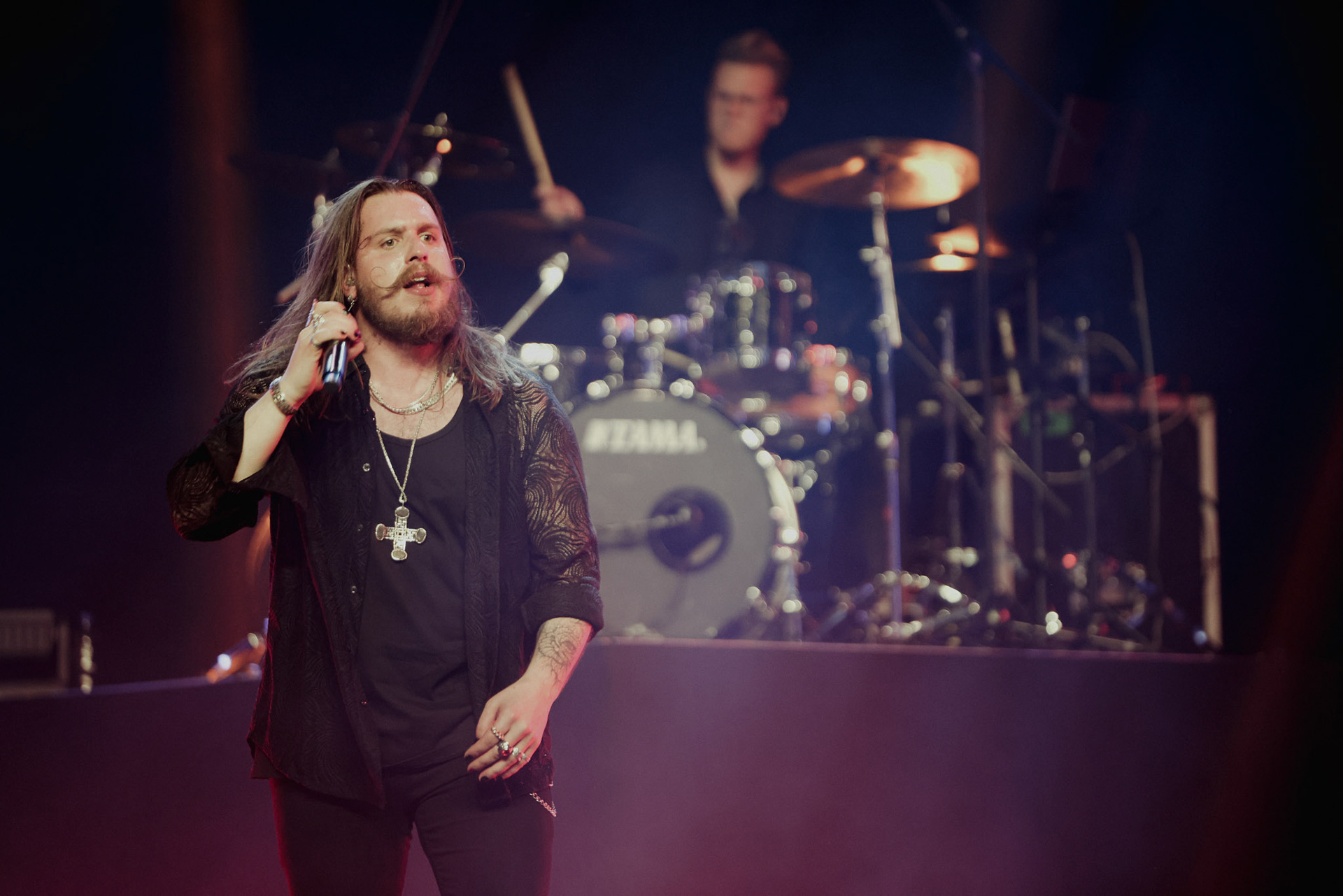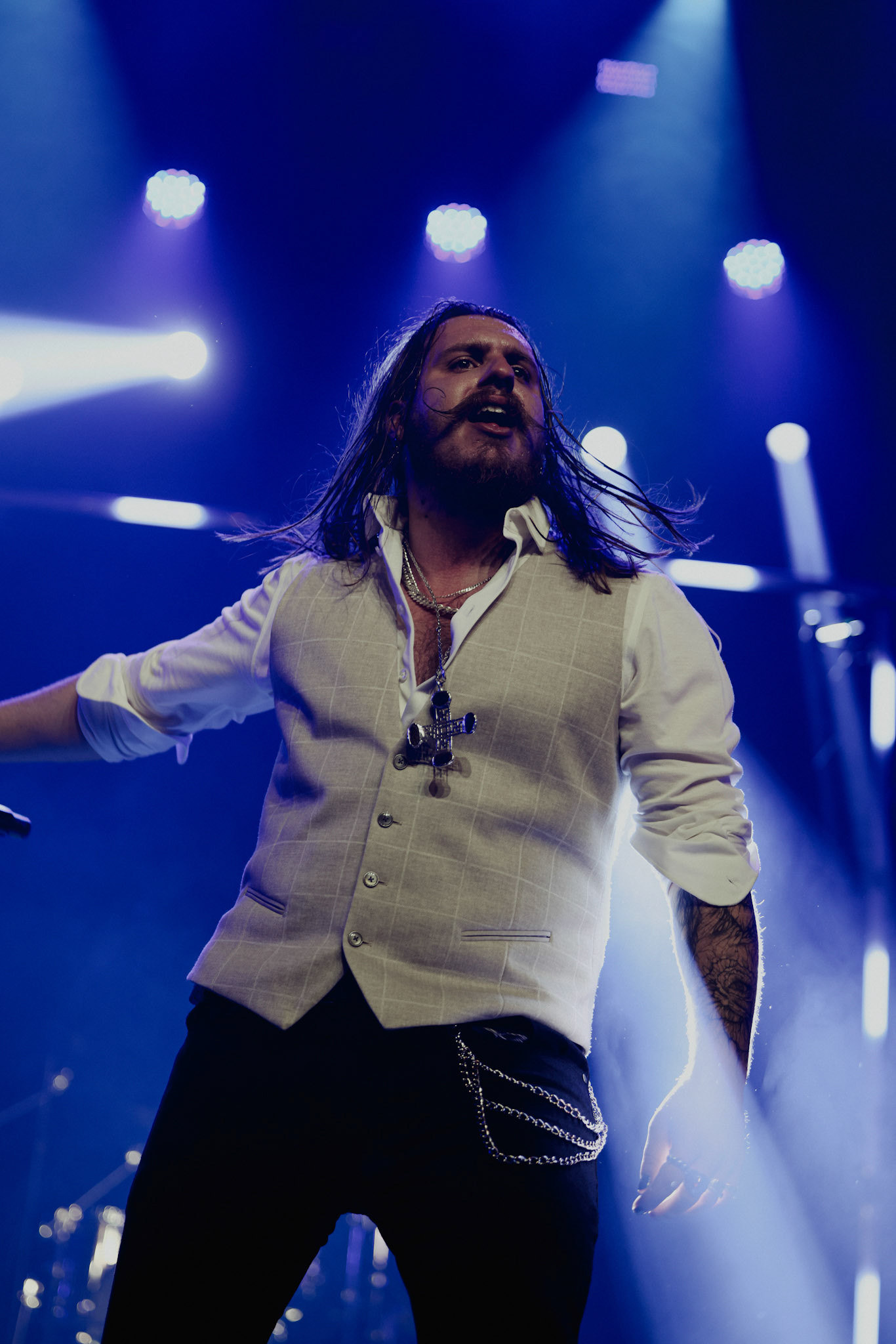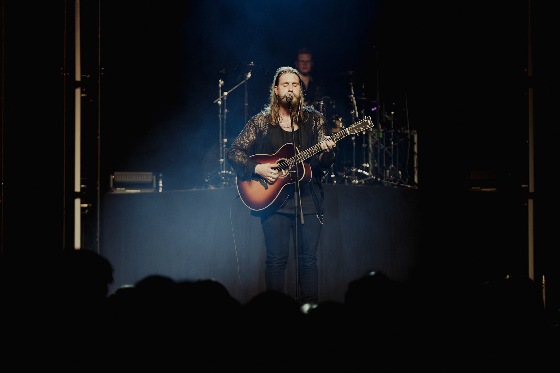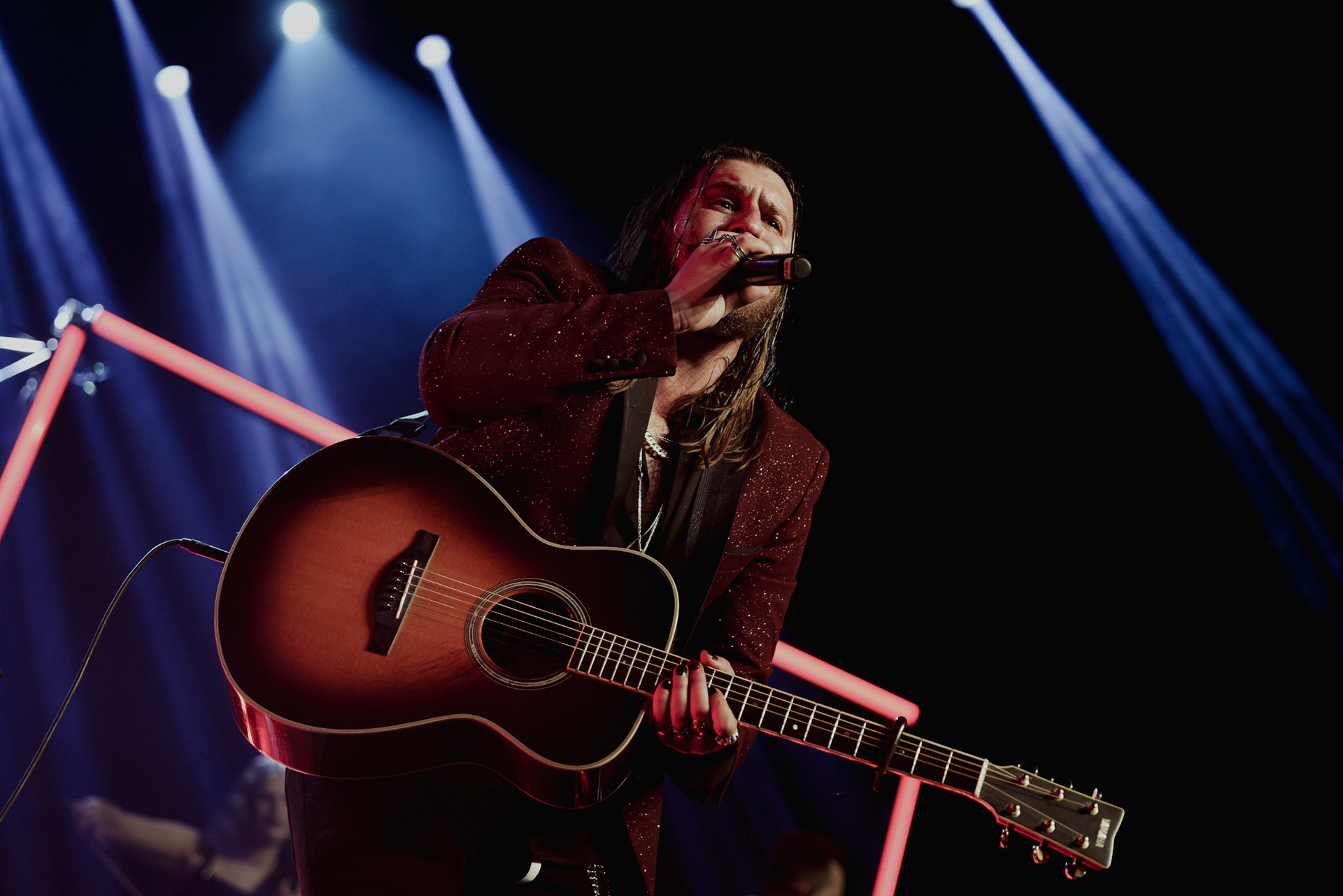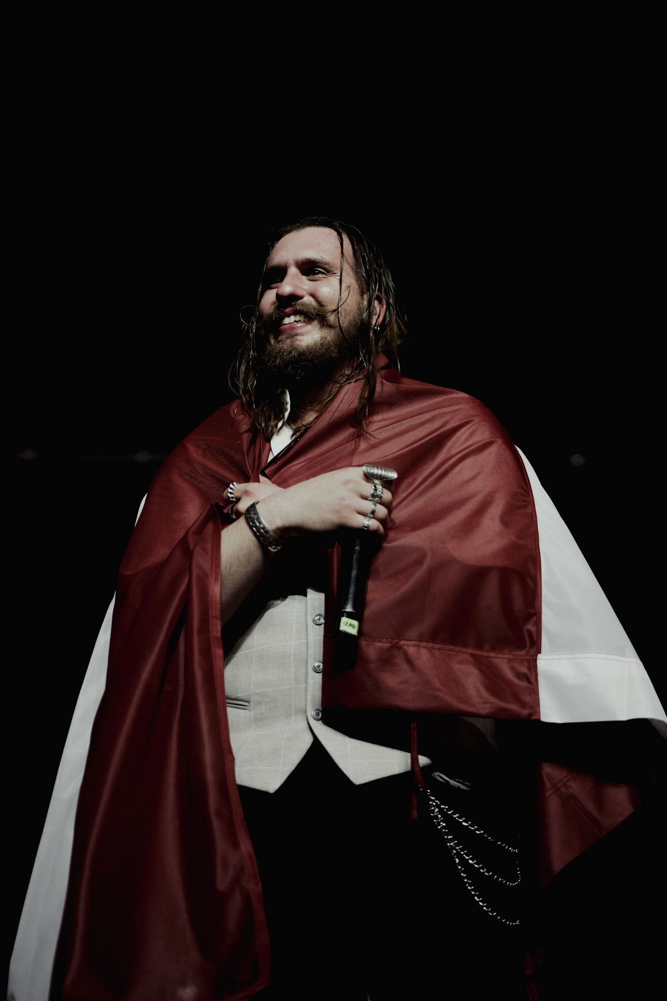 Concert photography from Miks Galvanovskis performance at Palladium Riga, capturing his emotional delivery, dynamic stage presence, and the intimate connection with the audience.