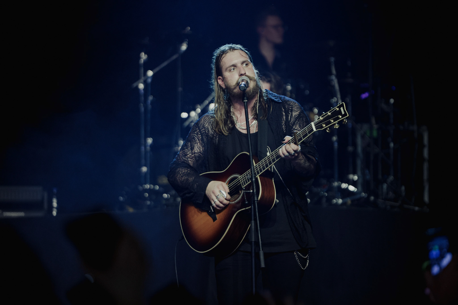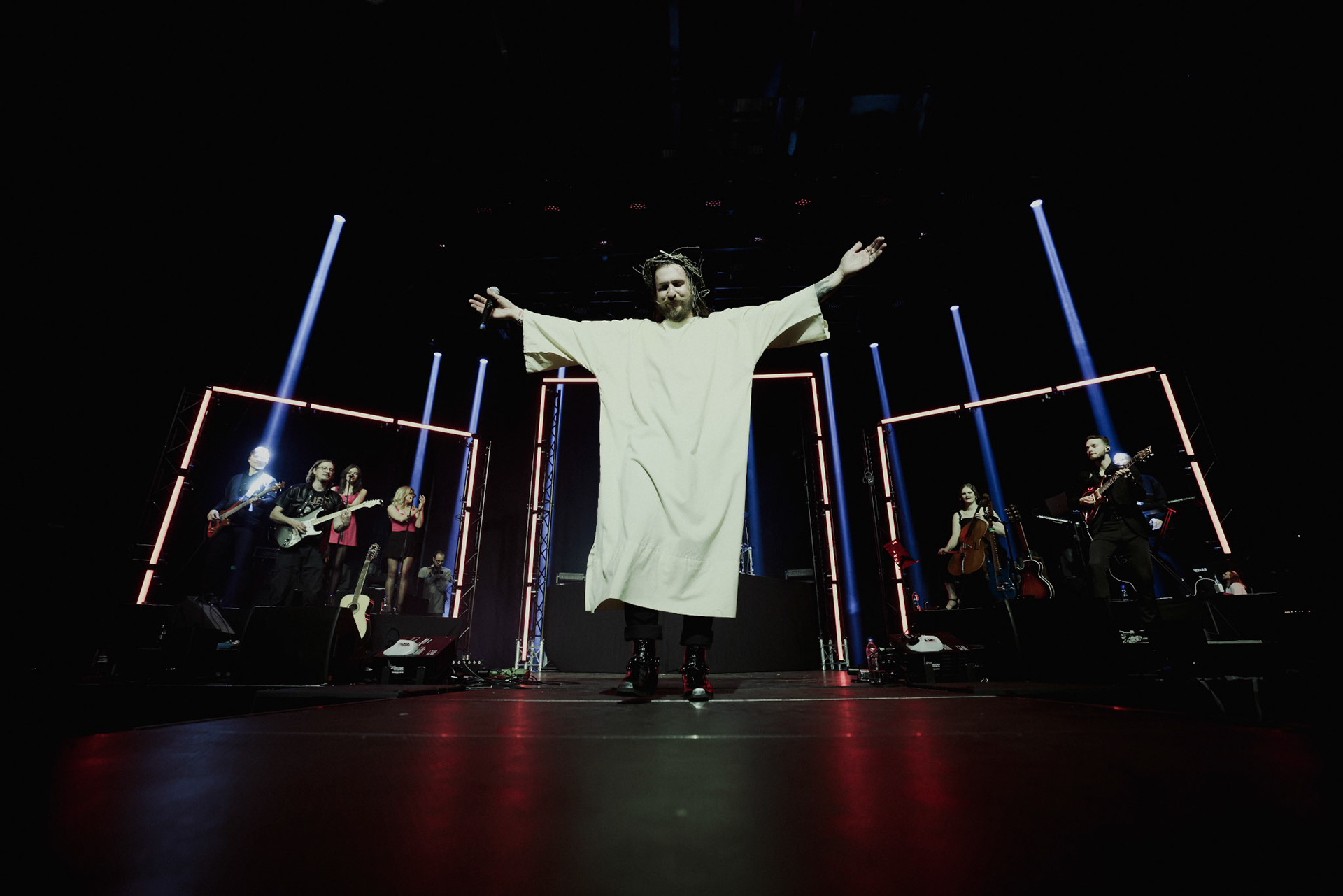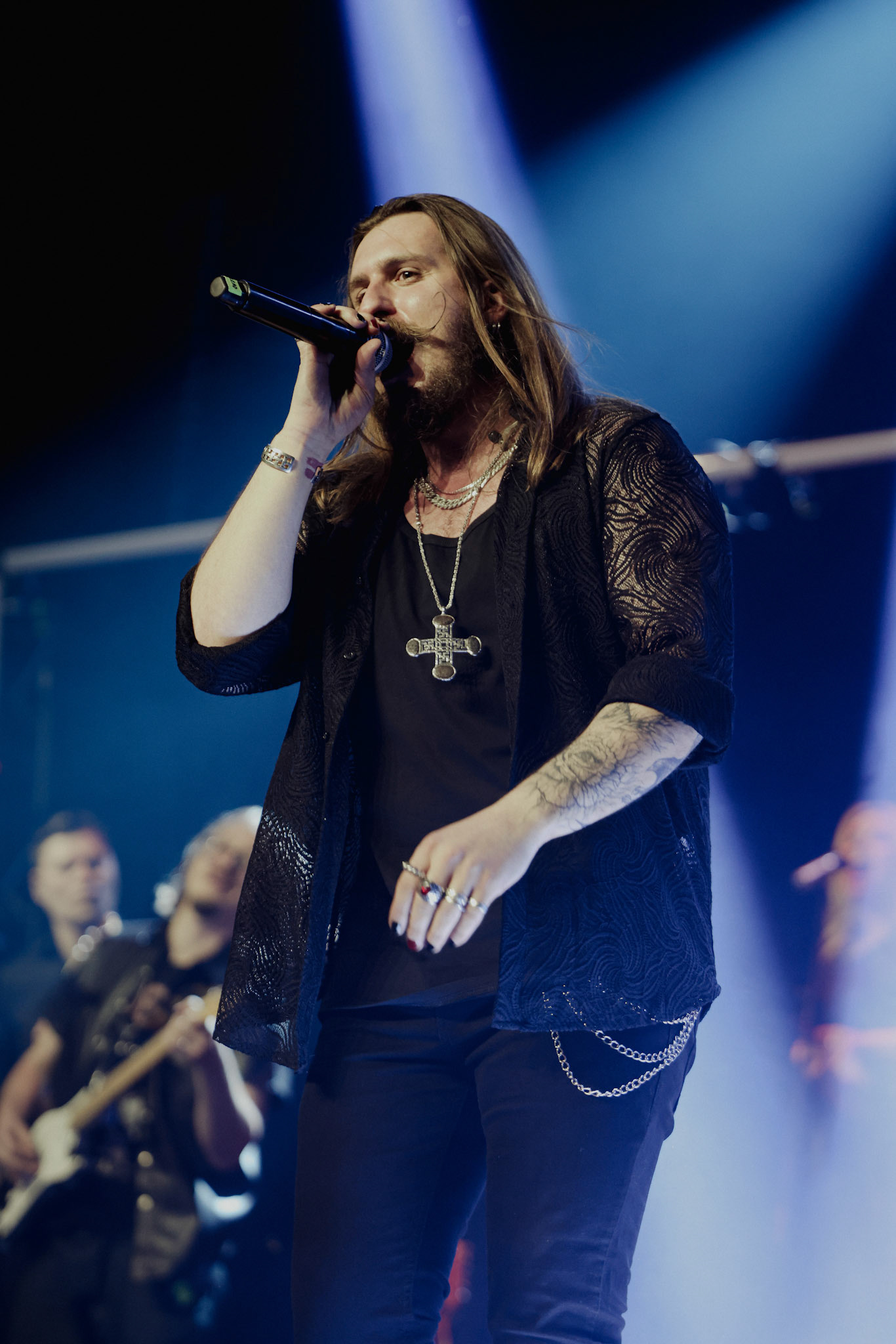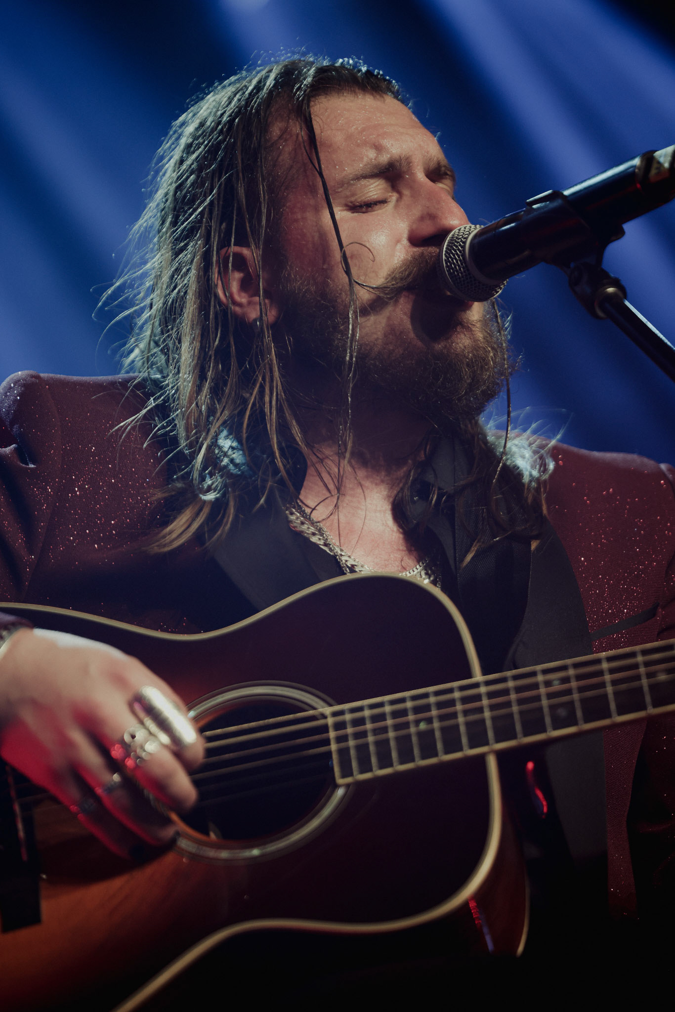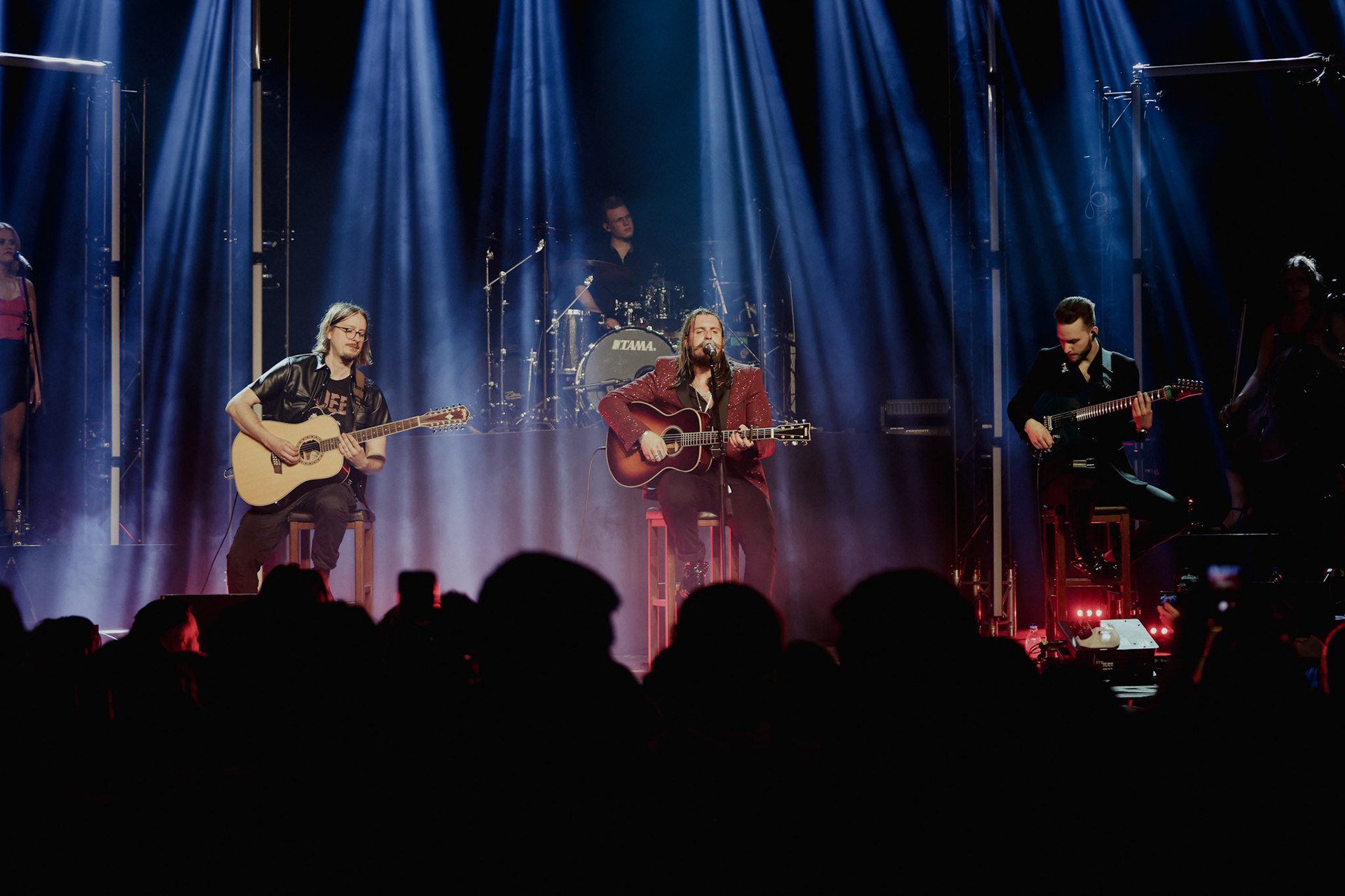 Concert photography from Miks Galvanovskis performance at Palladium Riga, capturing his emotional delivery, dynamic stage presence, and the intimate connection with the audience.