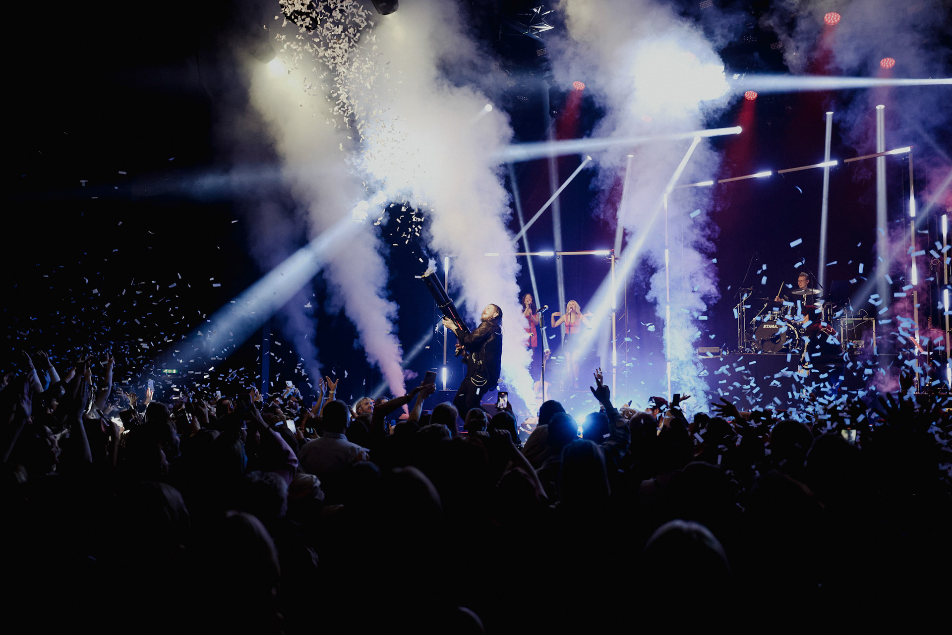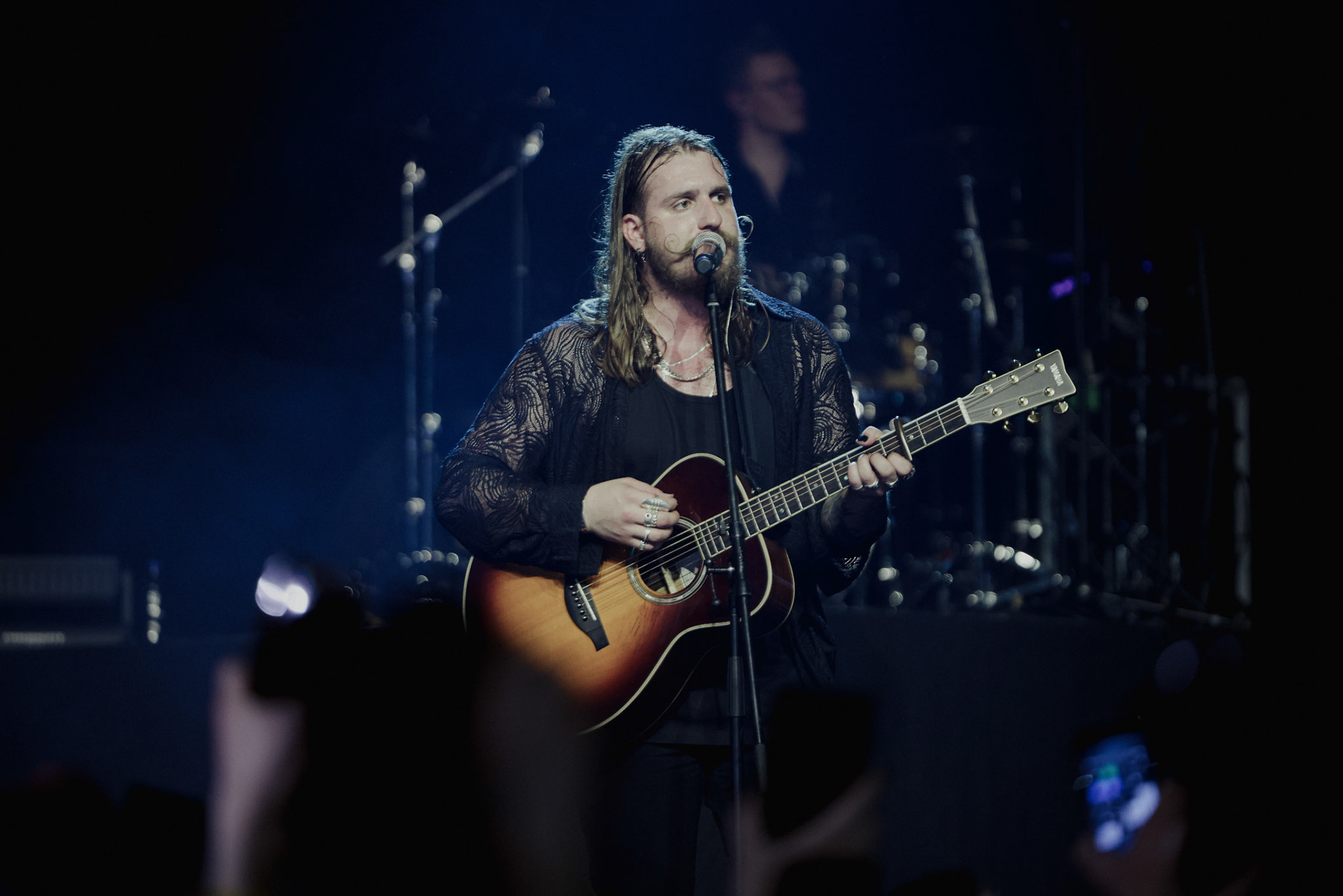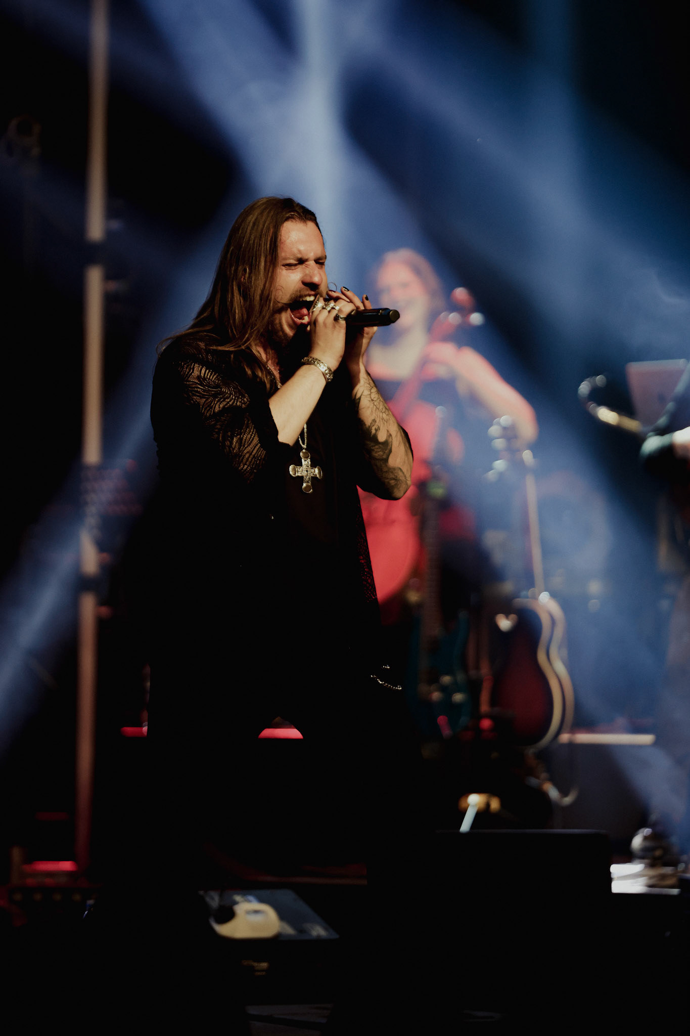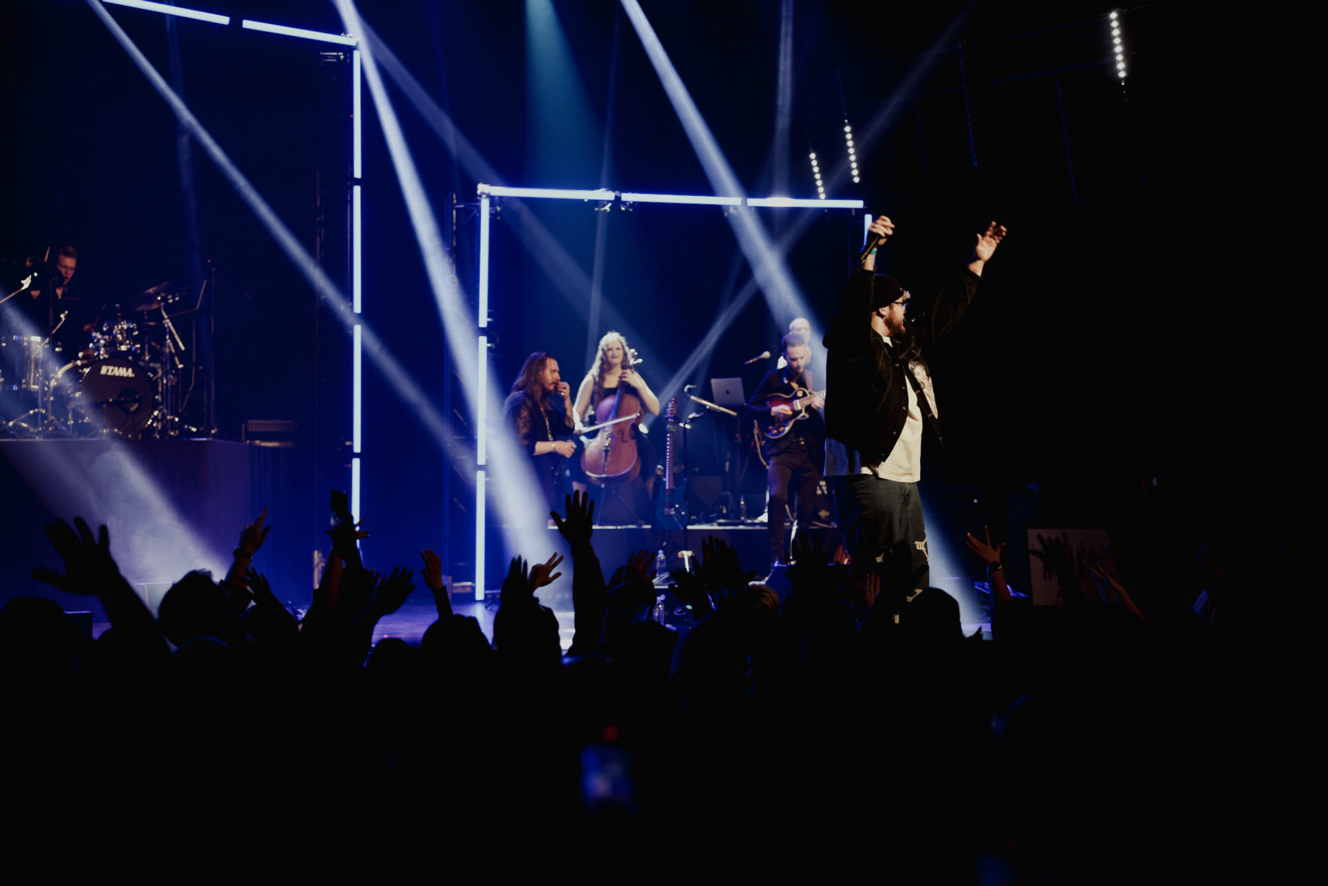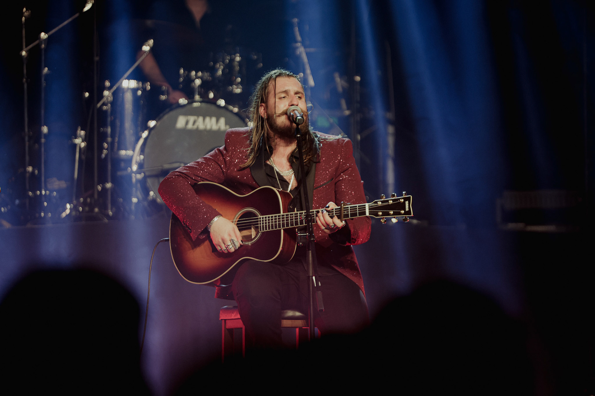 Concert photography from Miks Galvanovskis performance at Palladium Riga, capturing his emotional delivery, dynamic stage presence, and the intimate connection with the audience.