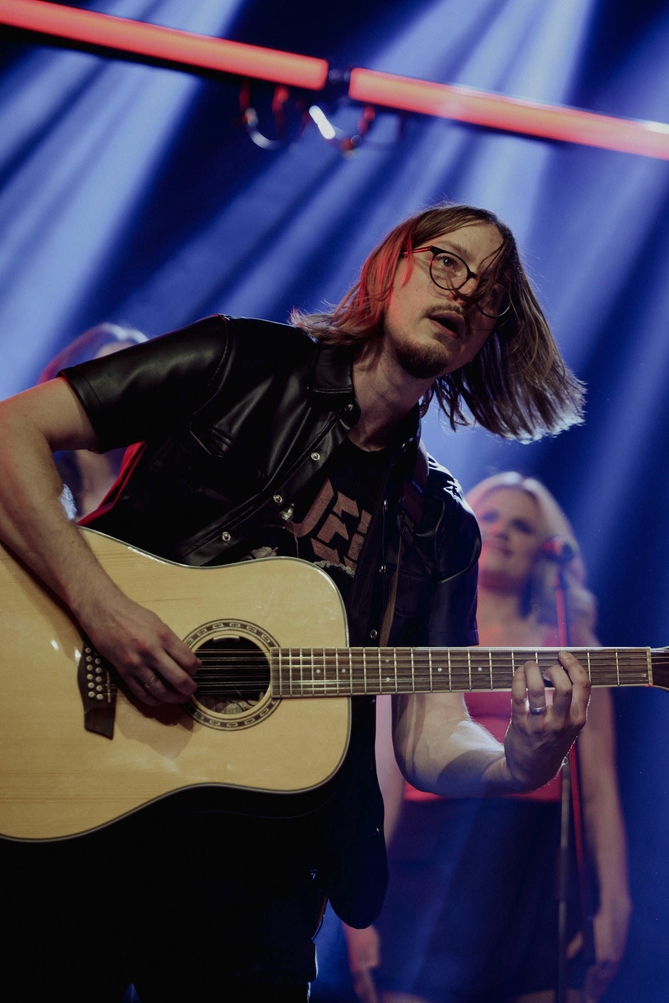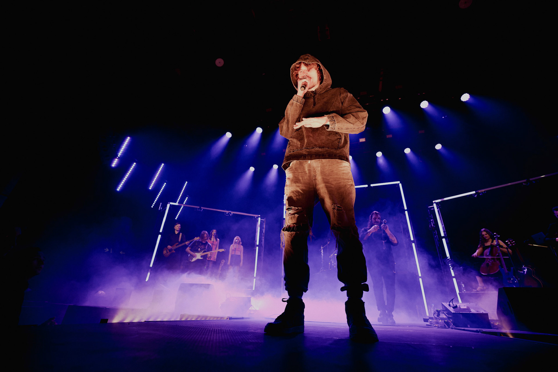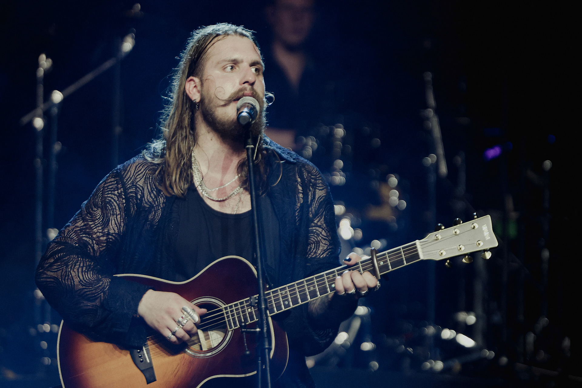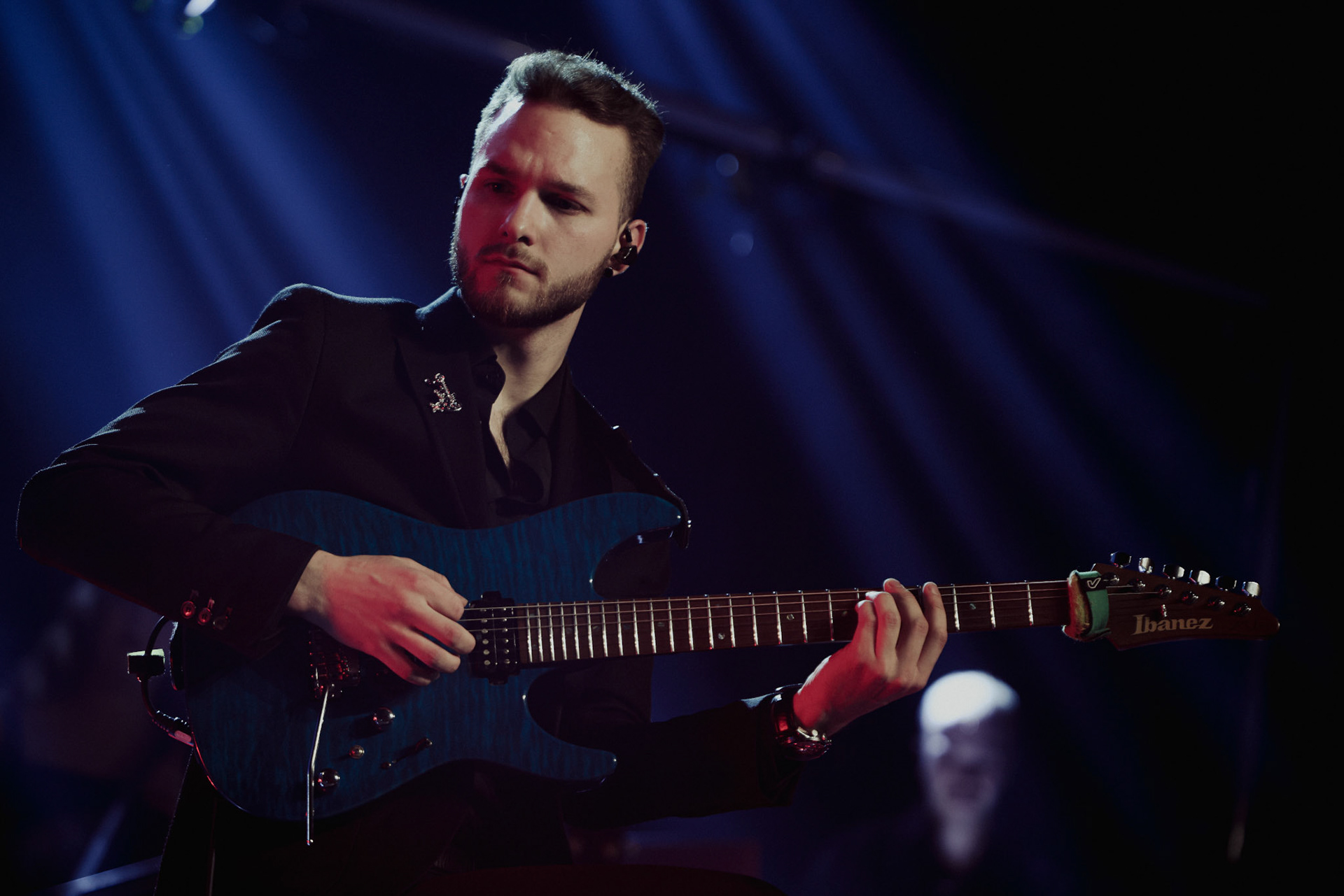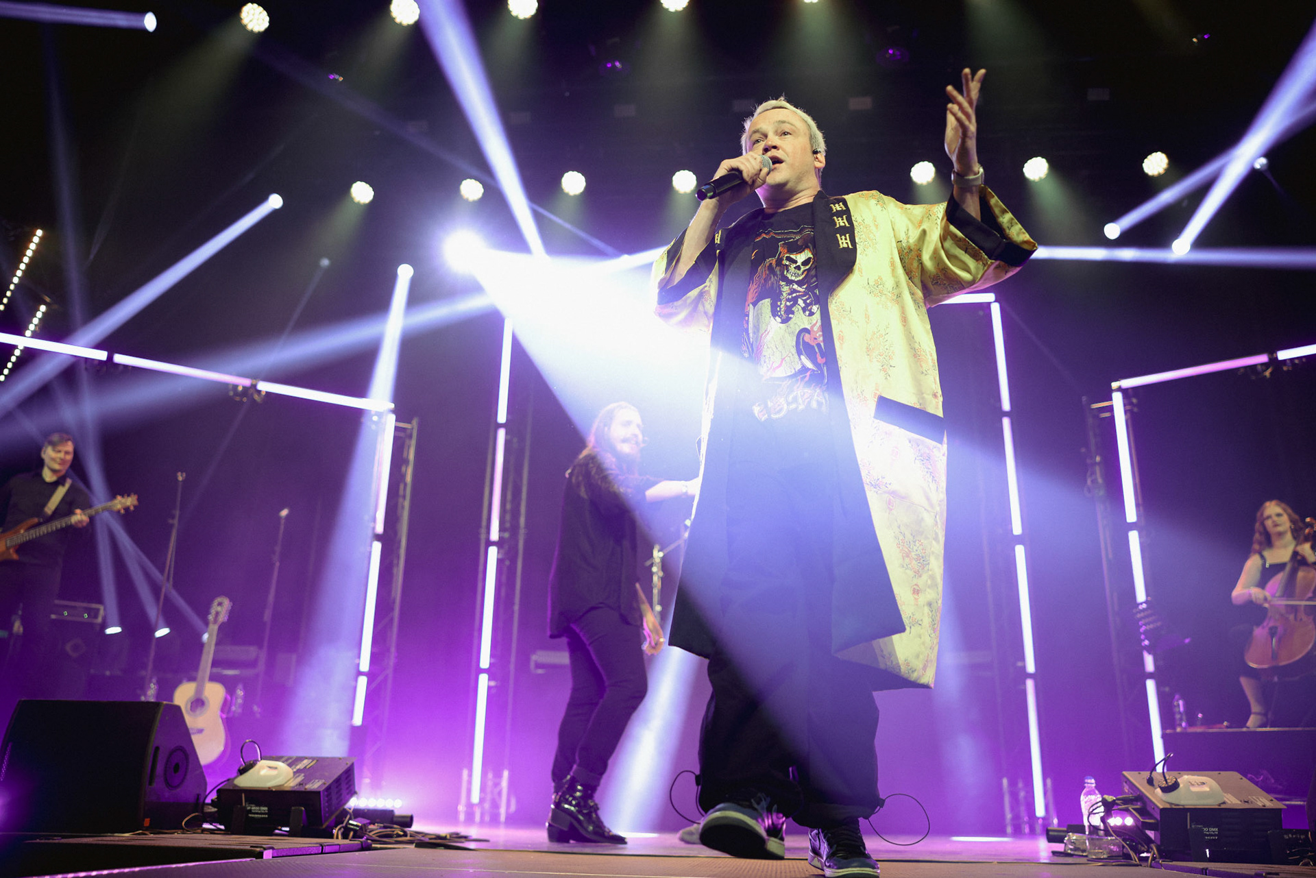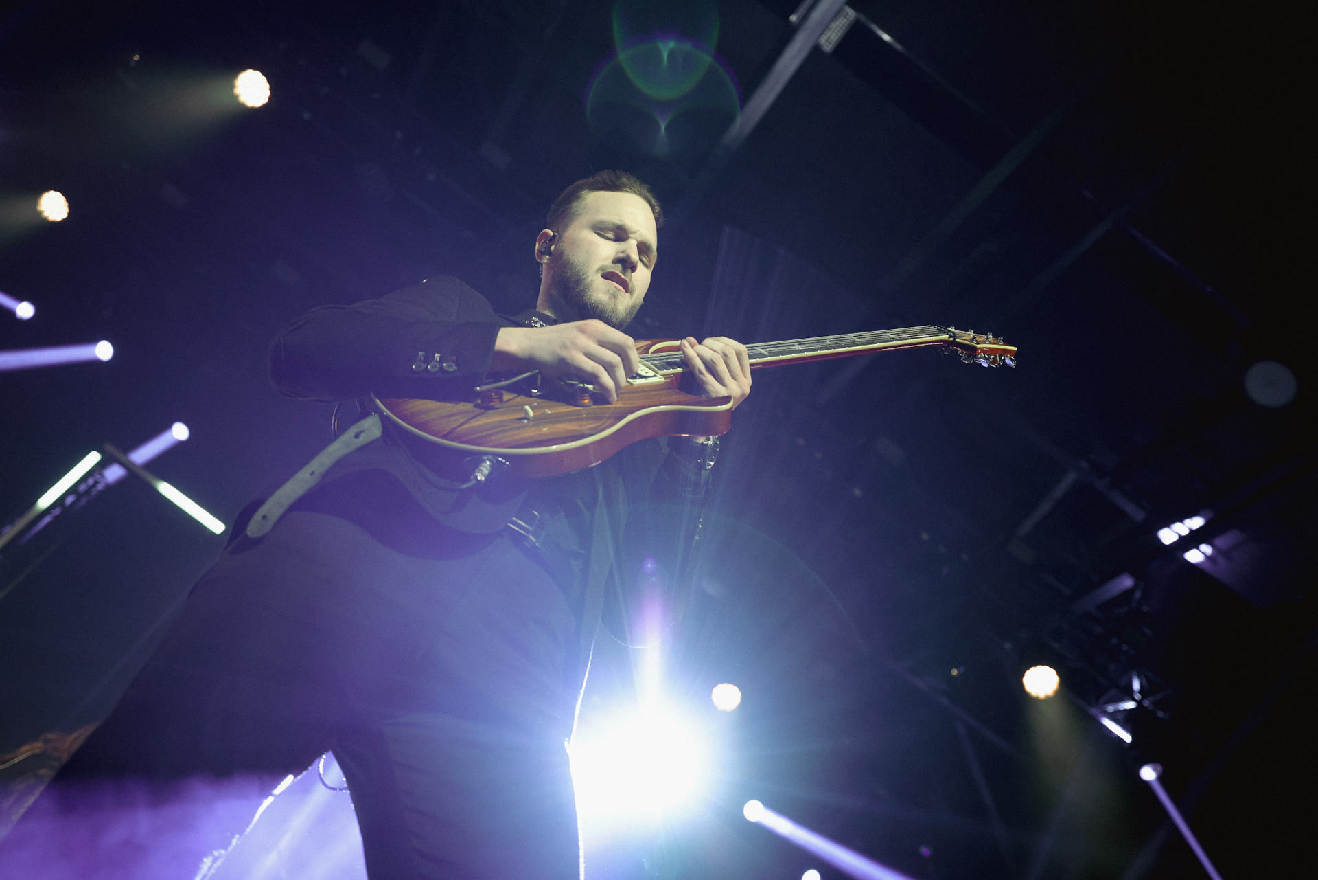 Concert photography from Miks Galvanovskis performance at Palladium Riga, capturing his emotional delivery, dynamic stage presence, and the intimate connection with the audience.
