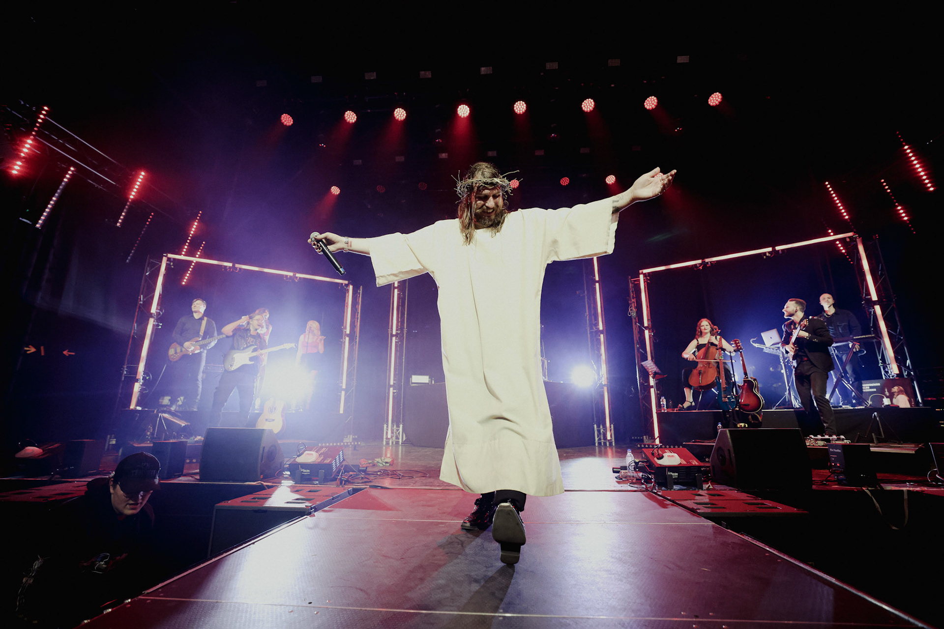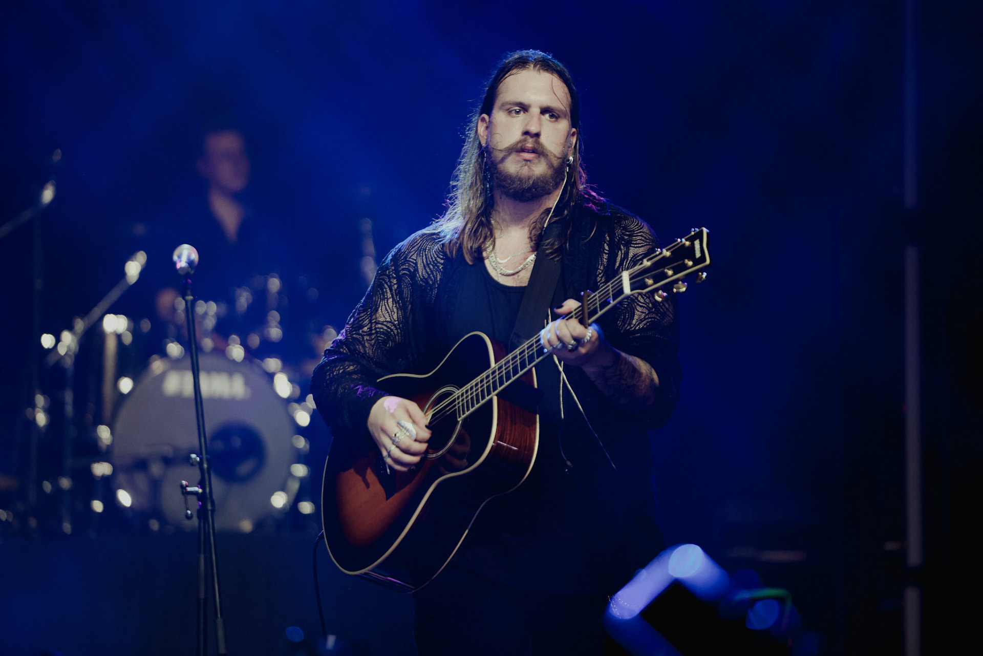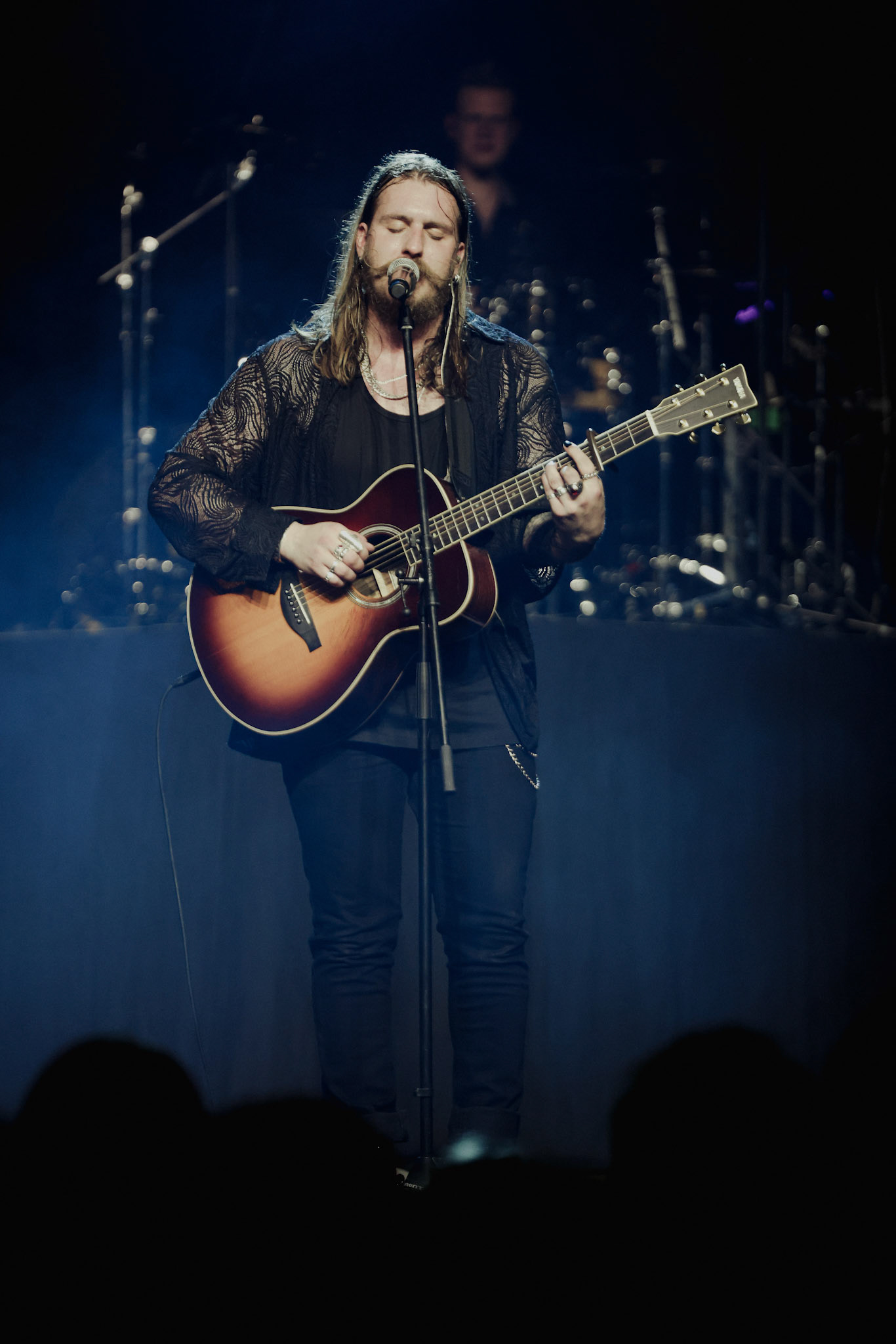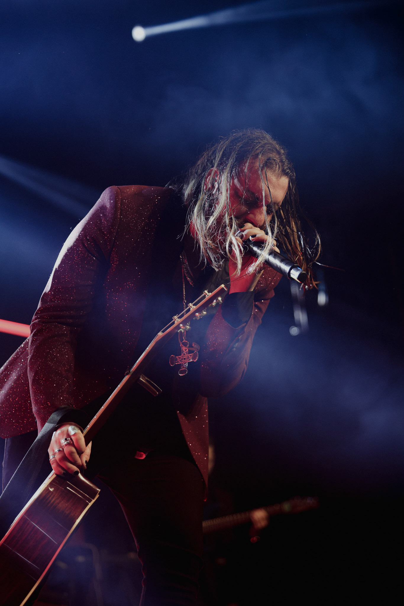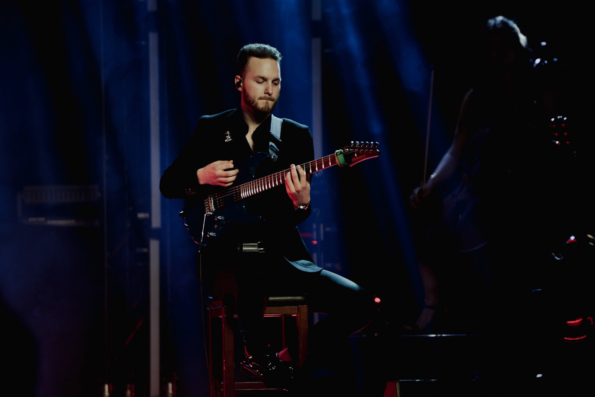 Concert photography from Miks Galvanovskis performance at Palladium Riga, capturing his emotional delivery, dynamic stage presence, and the intimate connection with the audience.